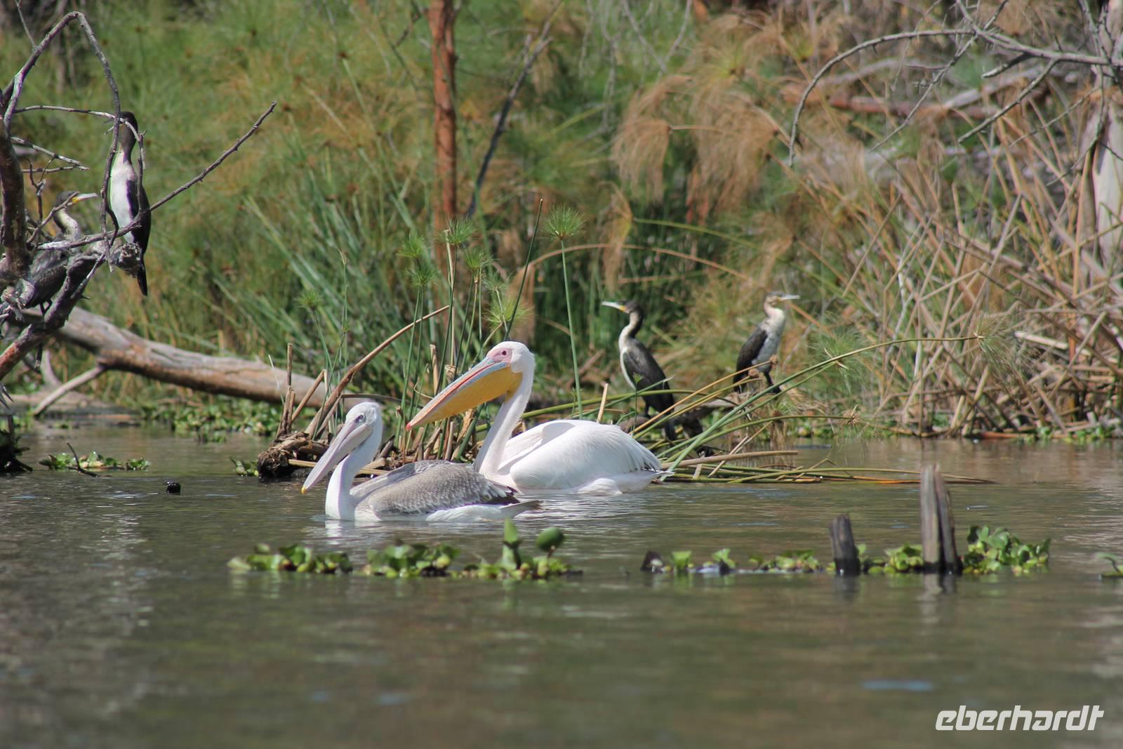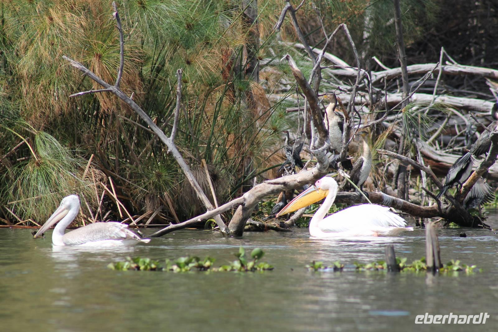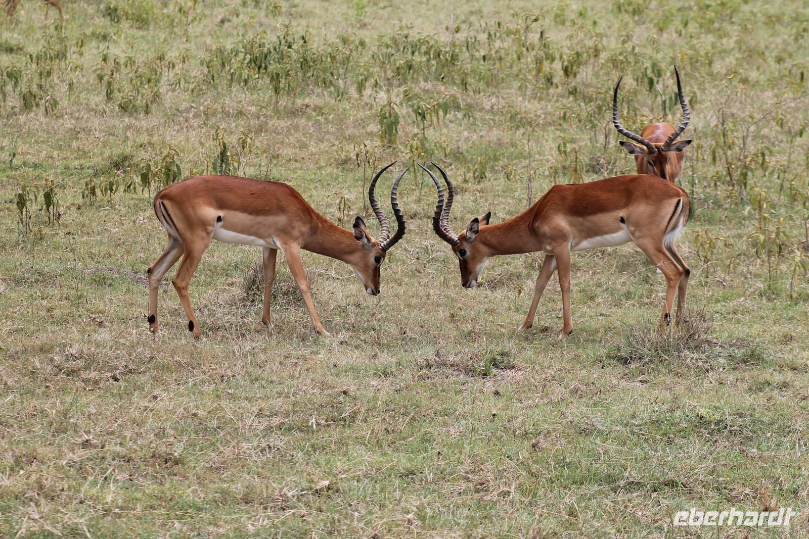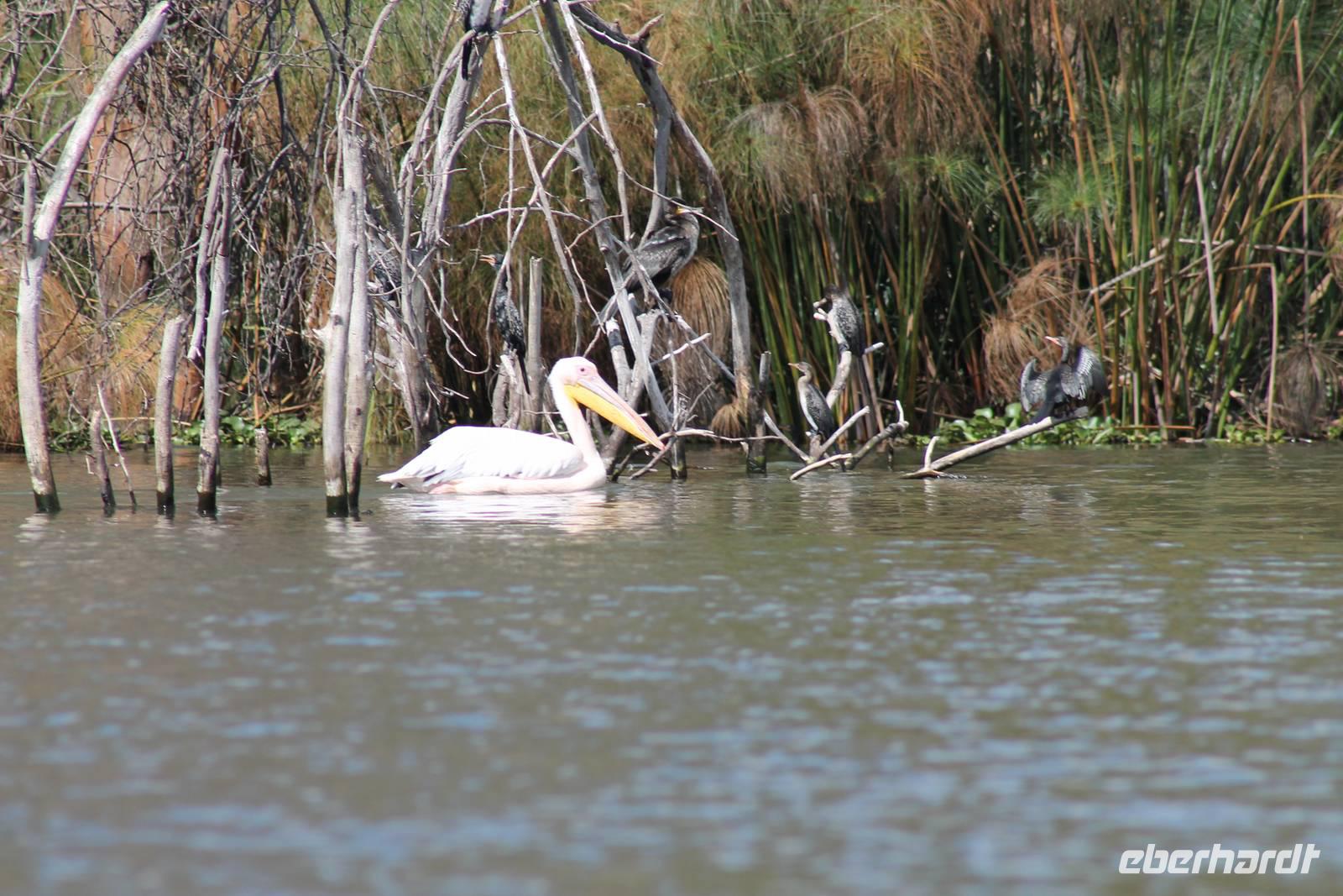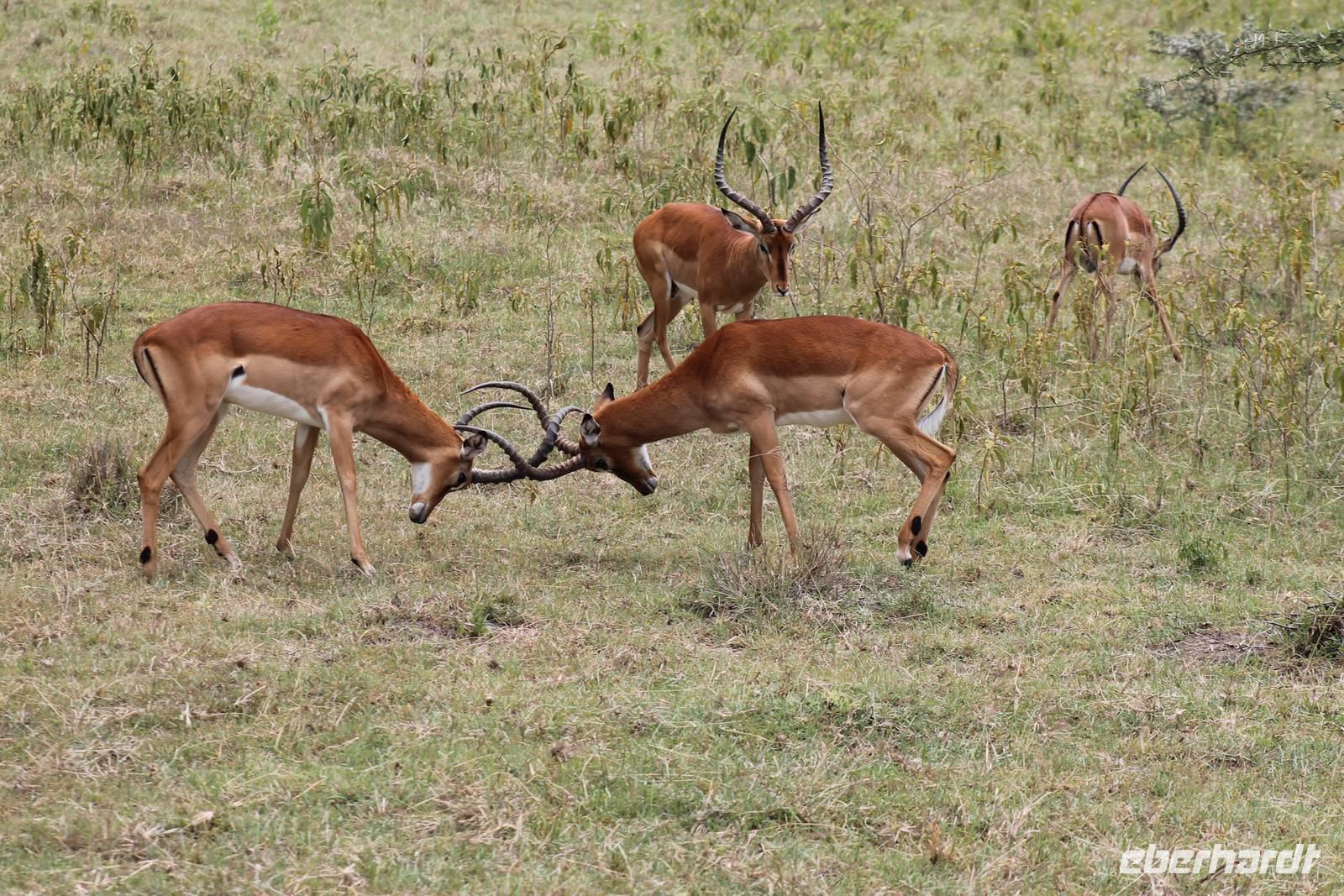 Nach einem ausgiebigen Frühstück machen wir uns heute auf zu unserer Bootsfahrt auf dem Naivasha See. Er ist der höchstgelegene See im östlichen Arm des Ostafrikanischen Grabens und ebenso wie der Baringosee ein Süßwassersee, während alle weiteren Seen im Ostarm des Grabens stark alkalisch sind. An unserer Bootsanlegestelle angekommen staunen wir nicht schlecht über die kleinen Boote, aber natürlich kann man diese auch nicht mit den deutschen Motorbooten vergleichen. So ist es schon gut, dass jeder eine Schwimmweste trägt. In jedem Fall gibt es am Wasser wieder viel zu schauen. So sehen wir gleich zu Beginn einige Pelikane und einen Hammerkopf, den wir auch noch nicht so oft vor der Linse hatten. Später sehen wir auch einige Hippos. Die Bootsführer versuchen außerdem mit einer Beute die Fischadler anzulocken und das klappt auch. So bekommen wir zu all der Vögelei auch noch einen Fischadler im Flug vor die Linse. So ist der Tag für die Ornitologen unter uns schon wieder gelungen. Nach einer einstündigen Bootsfahrt machen wir Halt auf Crecent Island und verabschieden unsere Bootsführer. Auf der Insel können wir die Tiere ganz nah beobachten und unternehmen so eine kleine Wanderung auf der Insel mit einem örtlichen Führer. Hier sehen wir Scharen von Flamingos, Zebras, Wasserböcken und Giraffen mit denen wir uns ganz nah fotografieren können. Für viele von uns auch ein einzigartiges Erlebnis. Zurück an unseren Jeeps fahren wir zurück zu unserer Lodge und genießen hier ein wohlverdientes Mittagessen nach einem ereignisreichen Vormittag. Am Nachmittag fahren wir gemeinsam zum Elsamere Tierschutzzentrum. Das Elsamere Conservation Center ist das ehemalige Wohnhaus von Joy und George Adamson, die mit der Aufzucht der Löwin Elsa sowie vielen weiteren Tierschutzprojekten und den daraus entstandenen Büchern und Filmen berühmt wurden. Wir beobachteten zuerst im wunderschön angelegten Garten die Colobus-Affen und sahen im Anschluss einen tollen Film über das Leben und das Lebenswerk der Familie Adamson. Danach wurde uns Kaffee, Tee und Kuchen angeboten und wir konnten einen Blick in das kleine Museum werfen. Nicht jeder war vor den Affen sicher und so wurde uns auch der ein oder andere Keks zum Verhängnis. Aber wir nahmen es mit Humor, denn Affen gibt man doch gern etwas ab. Zurück in unserer Lodge genossen wir noch ein Abendessen und suchten dann alle die Nachtruhe.