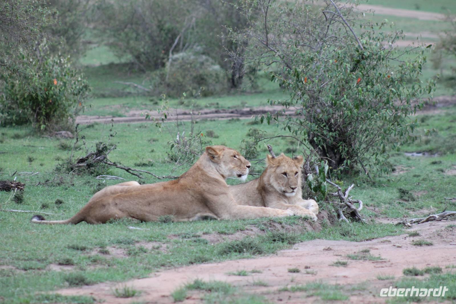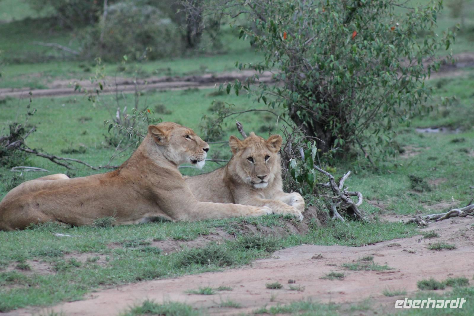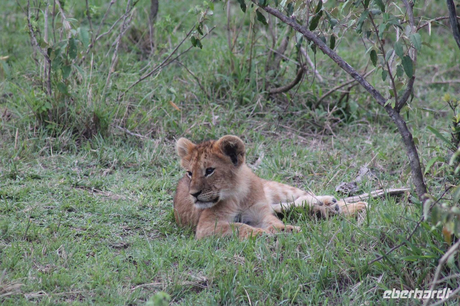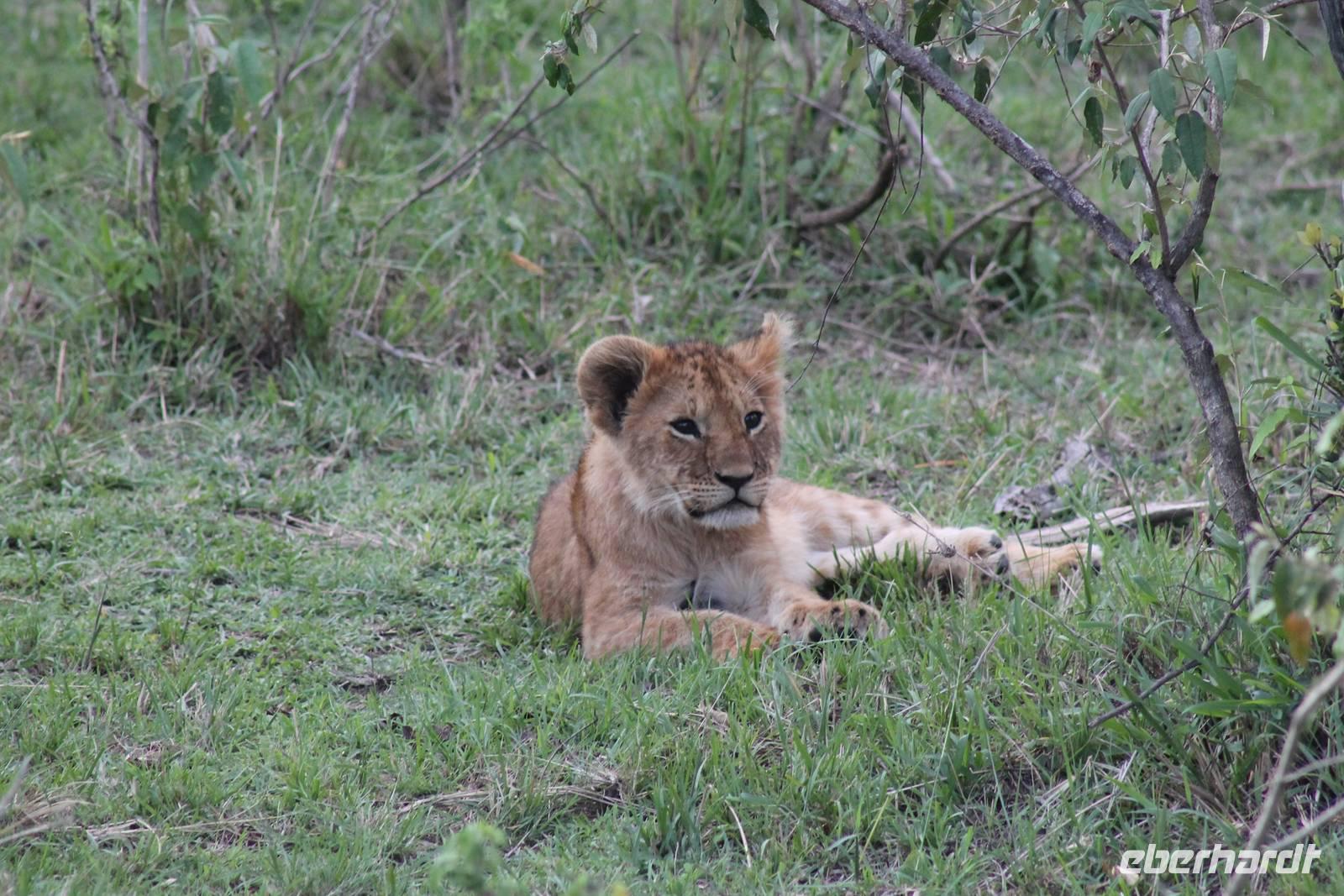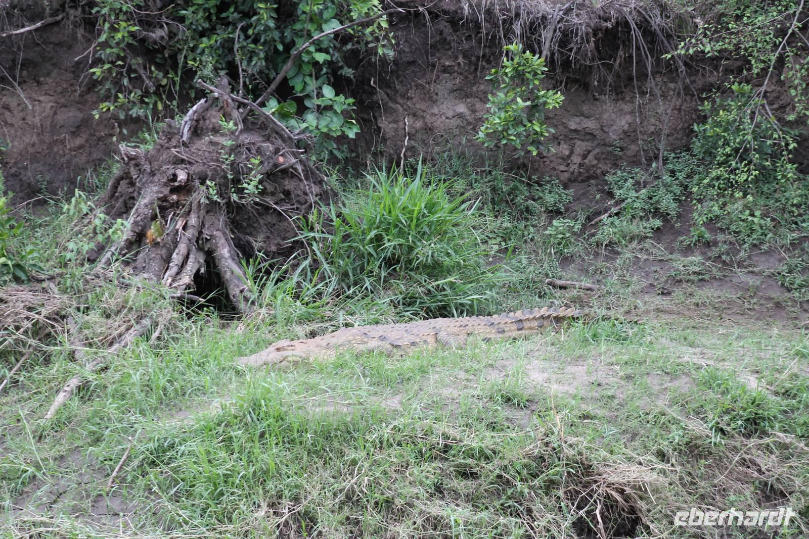 Am Nachmittag erreichen wir endlich unser Camp und werden schon von den netten Angestellten und den Massai, die uns hier bedienen, erwartet. Das Mara Bush Camp ist mitten im Nationalpark gelegen und direkt am Mara-Fluss und ist nicht eingezäunt. Wir übernachten in komfortablen Zelten, die uns aber alles bieten, was wir benötigen. Ein klein bisschen mulmig ist uns aber doch schon, als wir einige Krokodile am Fluss sehen und auch viele Hippospuren direkt vor unseren Zelten. Trotzdem freuen wir uns auf die nächsten Tage, denn Afrika ist ja auch ein Abenteuer. Nach einem späten Mittagessen unternehmen wir unsere erste Pirsch im Nationalpark. Kaum zu glauben was wir hier innerhalb von einer Stunde alles sehen: Ein Hippo direkt am Eingang des Camps, viele Topis, einige Hippos im Fluss, Hyänen, Graureiher und plötzlich zwei wunderschöne Geparden unter einem Busch, die wohl gerade gefressen haben und sich nun zur Ruhe gelegt haben. Unglaublich wunderschöne Tiere. Nur kurze Zeit später erwartet uns eine Löwenfamilie, als hätte sich diese für uns dorthin gelegt. Wir sehen einen Löwenvater sowie eine Löwenmutter mit ihren drei Kindern und kommen diesen nah wie nie. So können wir das Treiben aus nächster Nähe beobachten und es scheint, als würden die Fotos, die wir hier schießen von einer Postkarte stammen. Später kommt noch der Onkel der Bande hinzu und wir können ihn beim Trinken beobachten. Wir können unser Glück kaum fassen und könnten hier noch ewig verweilen. Es bleibt dabei zu bemerken, dass wir nur kurz über eine Stunde im Park unterwegs waren. Am Abend kommen wir wieder zurück und genießen nach einer Dusche unser abendliches Dinner mit allerlei Köstlichkeiten. Verhungern müssen wir hier wirklich nicht. Da wir ja in einem nicht eingezäunten Gebiet mitten im Busch wohnen hat ein jeder seinen eigenen Askari, ein Massai, der uns sicher zu unserem Zelt bringt und auch wieder abholt. So fühlen wir uns schon ein wenig sicherer. Die Geräusche in der Nacht hören wir natürlich trotzdem, aber am nächsten Morgen stellt sich raus, dass auch hier wieder alle TRAVEL Gäste überlebt haben.