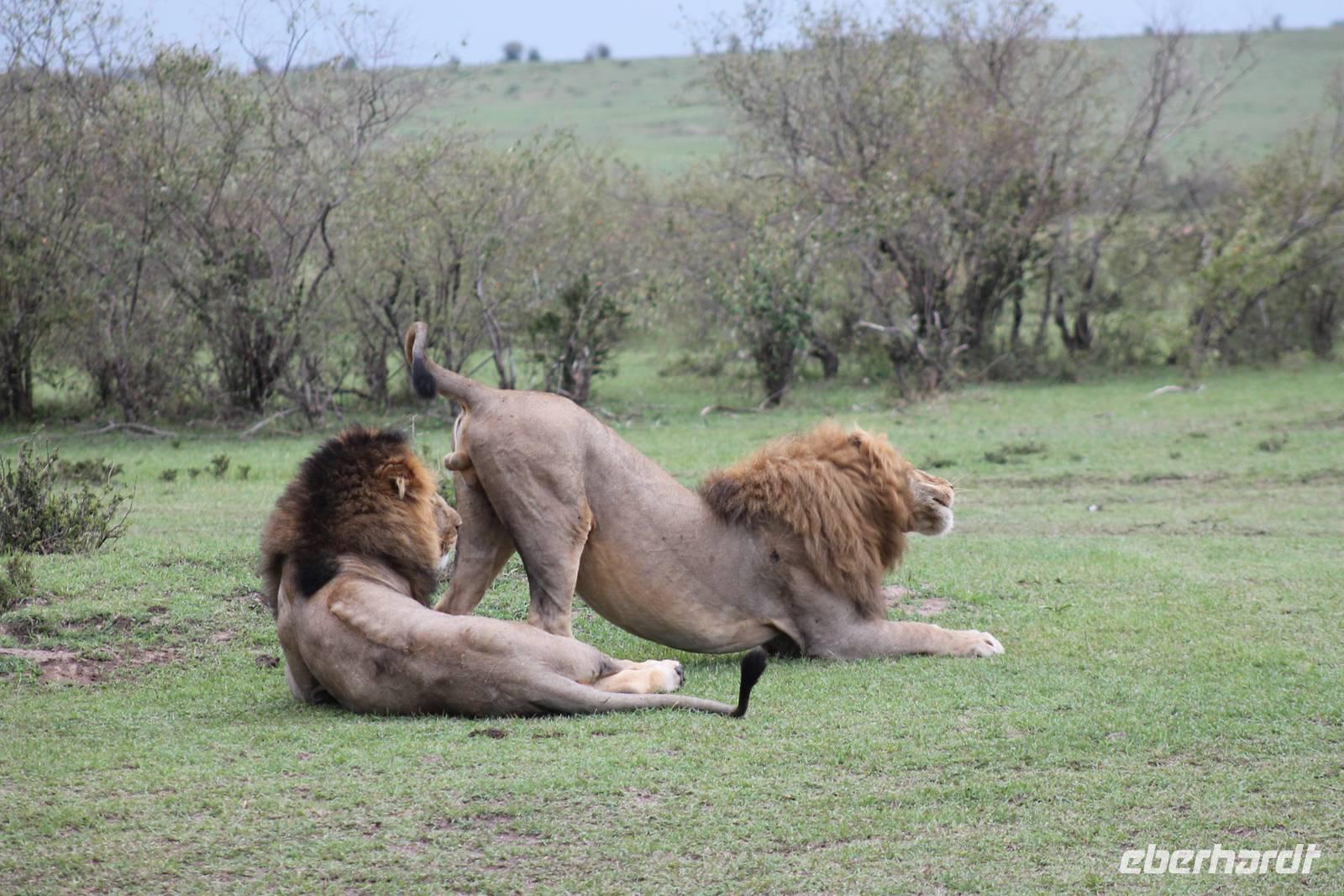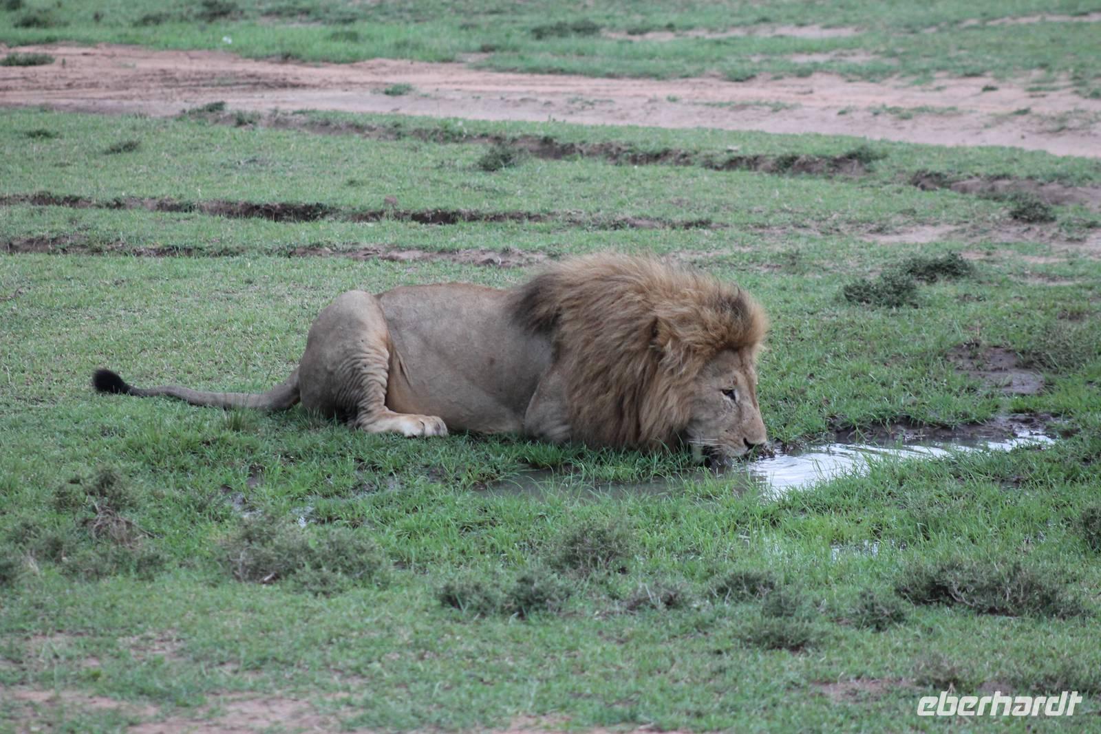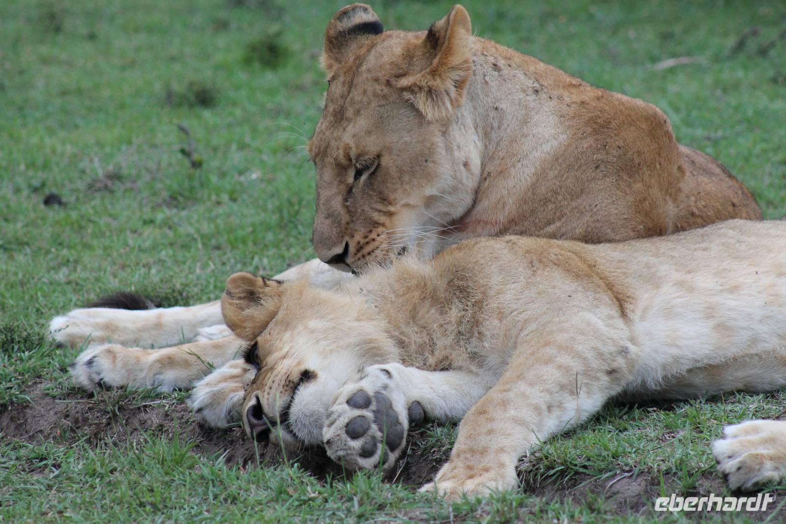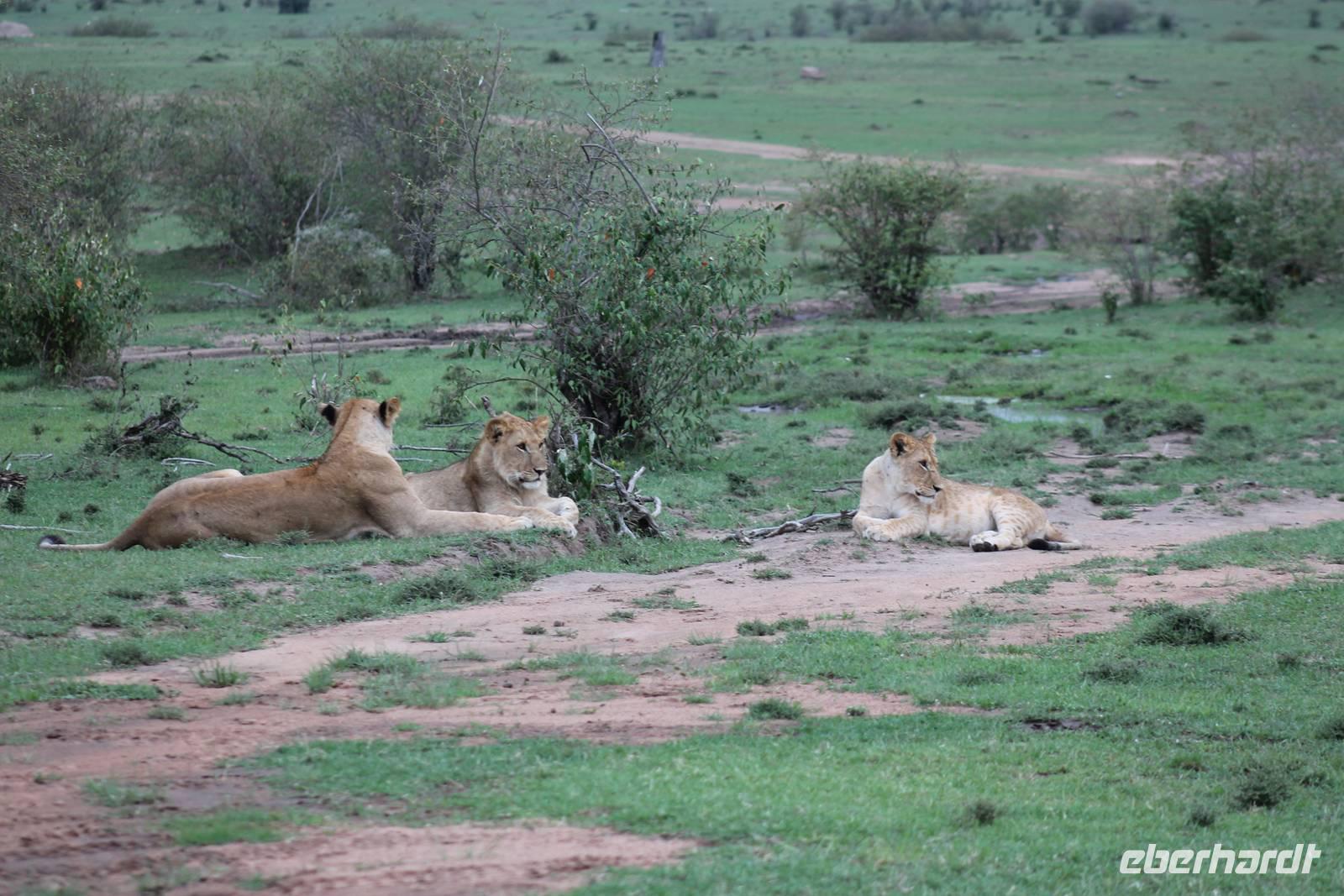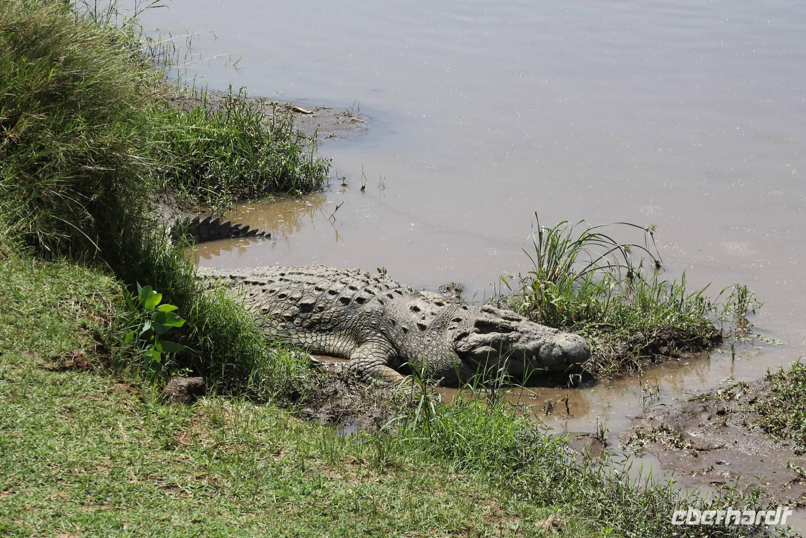 Am Nachmittag erreichen wir endlich unser Camp und werden schon von den netten Angestellten und den Massai, die uns hier bedienen, erwartet. Das Mara Bush Camp ist mitten im Nationalpark gelegen und direkt am Mara-Fluss und ist nicht eingezäunt. Wir übernachten in komfortablen Zelten, die uns aber alles bieten, was wir benötigen. Ein klein bisschen mulmig ist uns aber doch schon, als wir einige Krokodile am Fluss sehen und auch viele Hippospuren direkt vor unseren Zelten. Trotzdem freuen wir uns auf die nächsten Tage, denn Afrika ist ja auch ein Abenteuer. Nach einem späten Mittagessen unternehmen wir unsere erste Pirsch im Nationalpark. Kaum zu glauben was wir hier innerhalb von einer Stunde alles sehen: Ein Hippo direkt am Eingang des Camps, viele Topis, einige Hippos im Fluss, Hyänen, Graureiher und plötzlich zwei wunderschöne Geparden unter einem Busch, die wohl gerade gefressen haben und sich nun zur Ruhe gelegt haben. Unglaublich wunderschöne Tiere. Nur kurze Zeit später erwartet uns eine Löwenfamilie, als hätte sich diese für uns dorthin gelegt. Wir sehen einen Löwenvater sowie eine Löwenmutter mit ihren drei Kindern und kommen diesen nah wie nie. So können wir das Treiben aus nächster Nähe beobachten und es scheint, als würden die Fotos, die wir hier schießen von einer Postkarte stammen. Später kommt noch der Onkel der Bande hinzu und wir können ihn beim Trinken beobachten. Wir können unser Glück kaum fassen und könnten hier noch ewig verweilen. Es bleibt dabei zu bemerken, dass wir nur kurz über eine Stunde im Park unterwegs waren. Am Abend kommen wir wieder zurück und genießen nach einer Dusche unser abendliches Dinner mit allerlei Köstlichkeiten. Verhungern müssen wir hier wirklich nicht. Da wir ja in einem nicht eingezäunten Gebiet mitten im Busch wohnen hat ein jeder seinen eigenen Askari, ein Massai, der uns sicher zu unserem Zelt bringt und auch wieder abholt. So fühlen wir uns schon ein wenig sicherer. Die Geräusche in der Nacht hören wir natürlich trotzdem, aber am nächsten Morgen stellt sich raus, dass auch hier wieder alle TRAVEL Gäste überlebt haben.