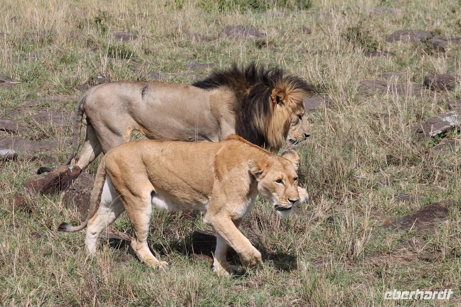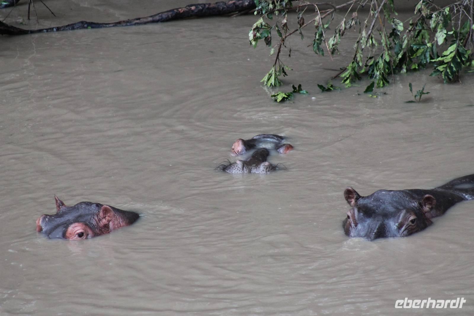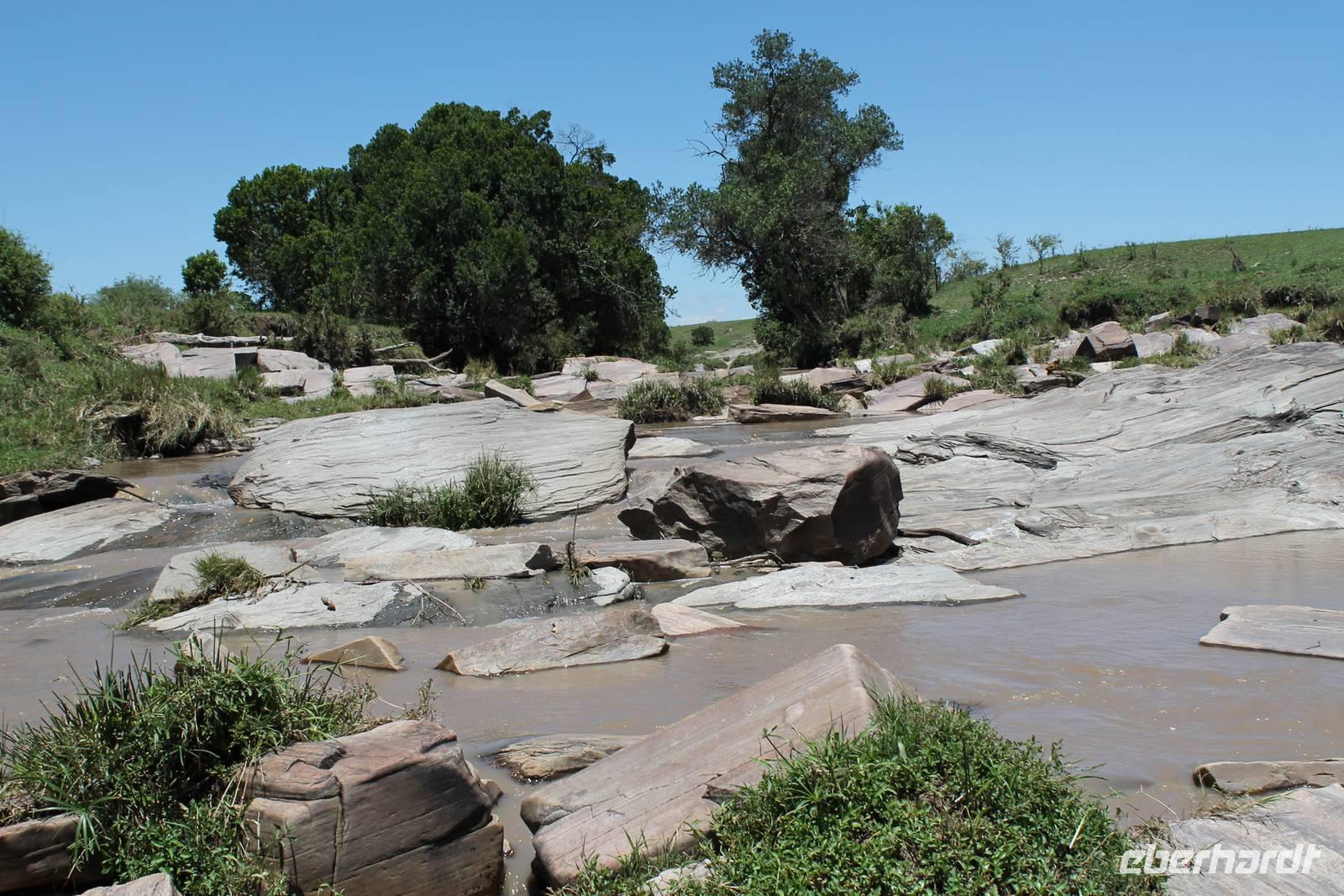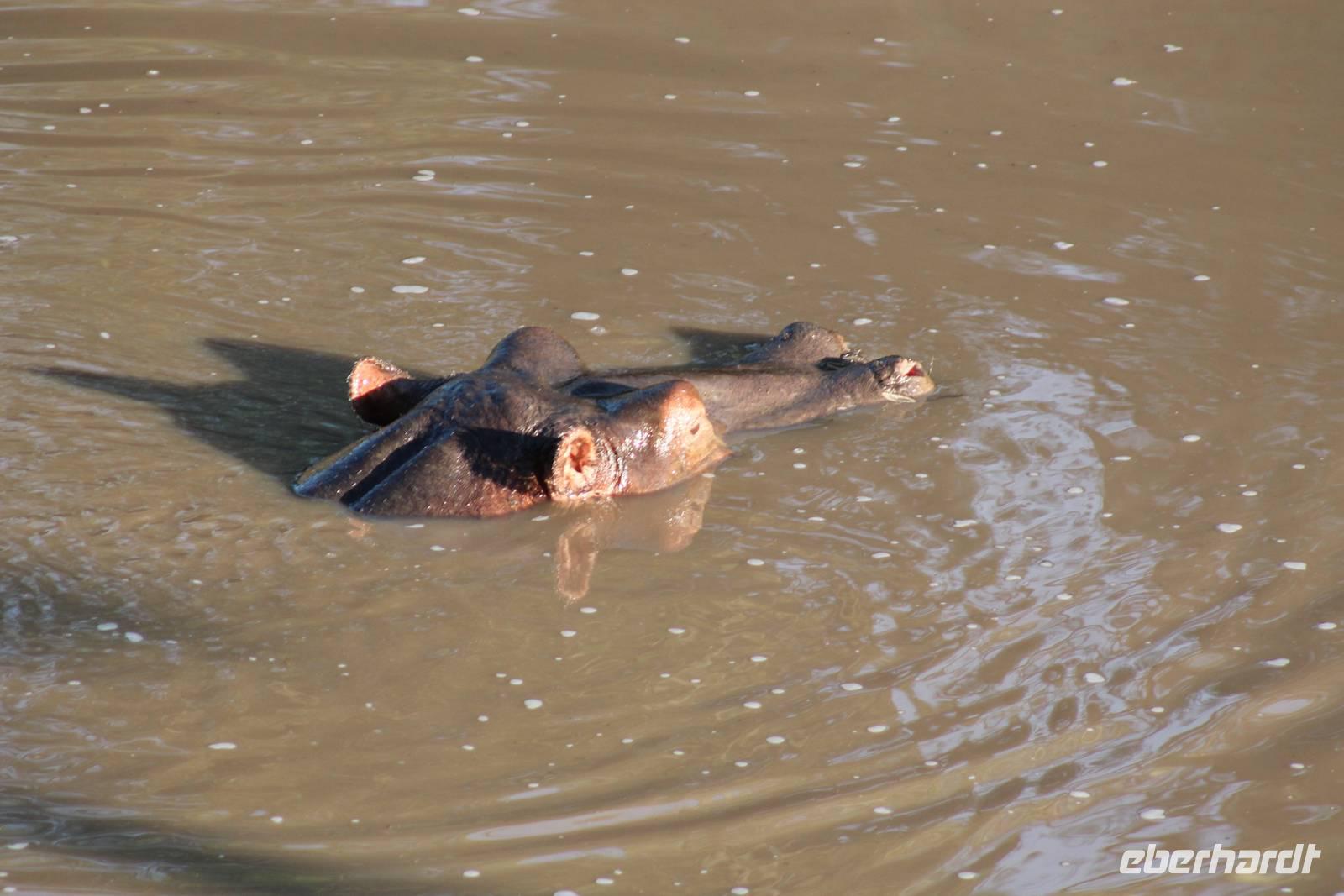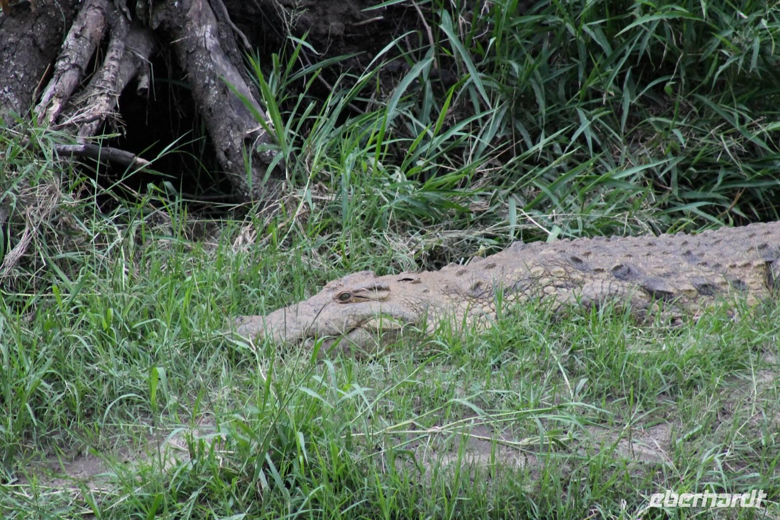 Am Nachmittag erreichen wir endlich unser Camp und werden schon von den netten Angestellten und den Massai, die uns hier bedienen, erwartet. Das Mara Bush Camp ist mitten im Nationalpark gelegen und direkt am Mara-Fluss und ist nicht eingezäunt. Wir übernachten in komfortablen Zelten, die uns aber alles bieten, was wir benötigen. Ein klein bisschen mulmig ist uns aber doch schon, als wir einige Krokodile am Fluss sehen und auch viele Hippospuren direkt vor unseren Zelten. Trotzdem freuen wir uns auf die nächsten Tage, denn Afrika ist ja auch ein Abenteuer. Nach einem späten Mittagessen unternehmen wir unsere erste Pirsch im Nationalpark. Kaum zu glauben was wir hier innerhalb von einer Stunde alles sehen: Ein Hippo direkt am Eingang des Camps, viele Topis, einige Hippos im Fluss, Hyänen, Graureiher und plötzlich zwei wunderschöne Geparden unter einem Busch, die wohl gerade gefressen haben und sich nun zur Ruhe gelegt haben. Unglaublich wunderschöne Tiere. Nur kurze Zeit später erwartet uns eine Löwenfamilie, als hätte sich diese für uns dorthin gelegt. Wir sehen einen Löwenvater sowie eine Löwenmutter mit ihren drei Kindern und kommen diesen nah wie nie. So können wir das Treiben aus nächster Nähe beobachten und es scheint, als würden die Fotos, die wir hier schießen von einer Postkarte stammen. Später kommt noch der Onkel der Bande hinzu und wir können ihn beim Trinken beobachten. Wir können unser Glück kaum fassen und könnten hier noch ewig verweilen. Es bleibt dabei zu bemerken, dass wir nur kurz über eine Stunde im Park unterwegs waren. Am Abend kommen wir wieder zurück und genießen nach einer Dusche unser abendliches Dinner mit allerlei Köstlichkeiten. Verhungern müssen wir hier wirklich nicht. Da wir ja in einem nicht eingezäunten Gebiet mitten im Busch wohnen hat ein jeder seinen eigenen Askari, ein Massai, der uns sicher zu unserem Zelt bringt und auch wieder abholt. So fühlen wir uns schon ein wenig sicherer. Die Geräusche in der Nacht hören wir natürlich trotzdem, aber am nächsten Morgen stellt sich raus, dass auch hier wieder alle TRAVEL Gäste überlebt haben.