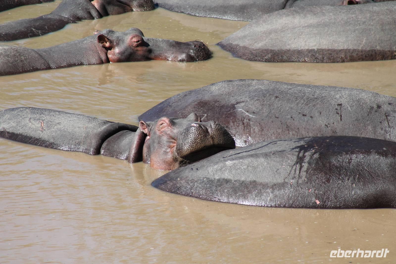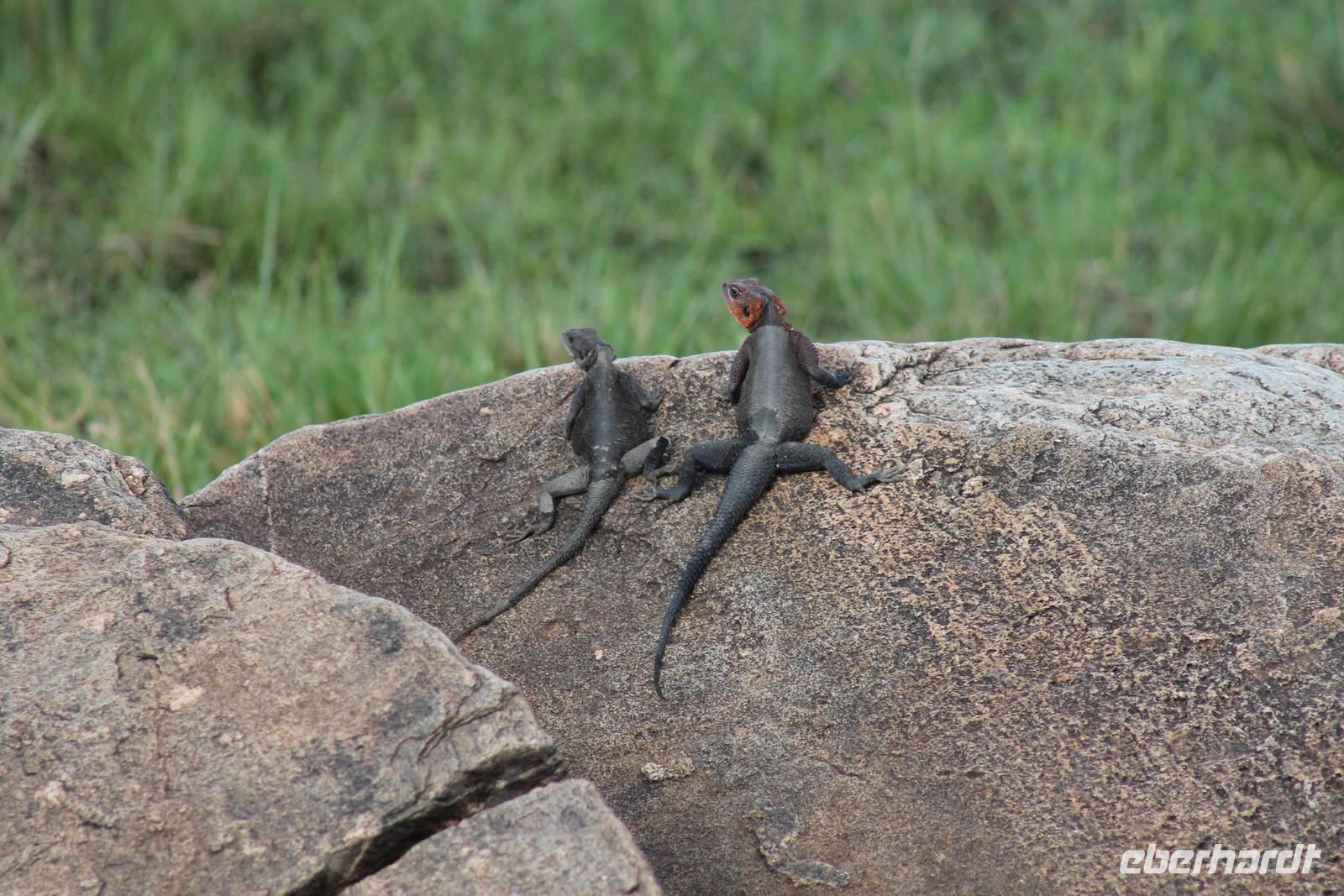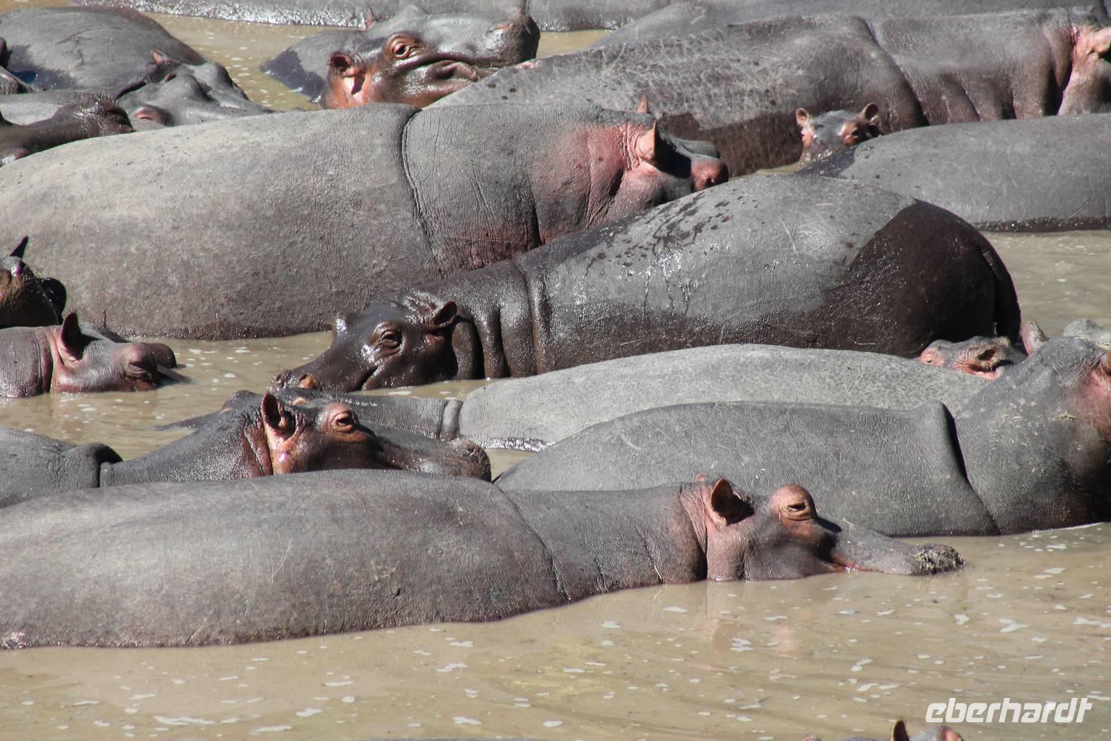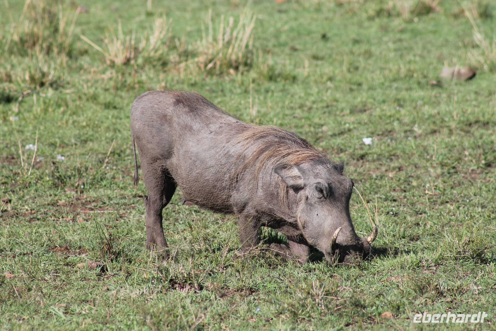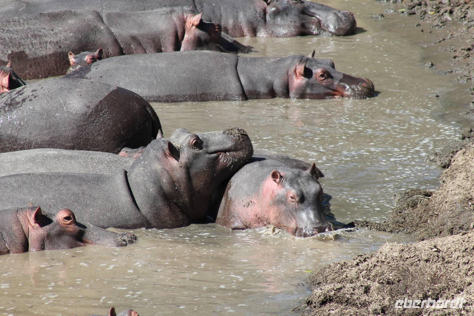Heute gehen wir auf eine zweite morgendliche Pirschfahrt und sehen einige Büffel, zwei Agamas, die sich in der Sonne rekeln und viele Warzenschweine. Davon hat es uns eines besonders angetan, weil es so gemütlich vor seinem Bau sitz. Ein tolles Fotomotiv. Am Vormittag besuchen wir heute eine Masai-Schule und erfahren wie die Kinder hier unterrichtet werden. Wir dürfen sogar einen Blick in die Klassenräume werden und live beim Unterricht dabei sein. Natürlich fällt uns hier gleich der Unterschied zu Europa auf, der hier schon gravierend ist. Hier fehlt es an allen Ecken und Enden. Wir erfahren auch, dass die Kinder am Tag zwei Kilometer zur Schule laufen müssen und dabei nicht selten auch gefährliche Gebiete mit Raubkatzen durchqueren. So lassen wir es uns natürlich nicht nehmen, über das Mara Bush Camp, welches die Schule unterstützt, entsprechende Spenden dazulassen. Vicky spendet eine Schuluniform für ein Mädchen, dessen Eltern sich diese nicht leisten können. Da die Kinder hier auch dringend auf Schatten angewiesen sind, planzt ein jeder mit uns einen Baum als Zeichen unserer Dankbarkeit. Jeder bekommt einen Schüler als Paten zugteilt und später ein Diplom, welches er zu Hause als Erinnerung aufbewahren kann. In jedem Fall eine tolle Sache. Einige Gästen haben auch Schulsachen und Stifte von zu Hause mitgebracht, die hier dankend angenommen werden. Nach unserem Mittagessen unternehmen wir heute einen kleinen Spaziergang entlang des Mara Bush Camps und kommen zu einem fantastischen Hippo Pool, an dem wir heute eine Weile verweilen. Ein Askari begleitet uns und erklärt uns auch einiges über die Pflanzenwelt hier. Am Nachmittag besuchen wir heute noch ein Masai-Dorf. Die Massai, Maasai, Maassai oder Masai sind eine ostafrikanische Volksgruppe, die in den weiten Ebenen im Süden Kenias sowie im Norden Tansanias beheimatet ist. Trotz ihres vergleichsweise kleinen Bevölkerungsanteils sind die Massai wegen ihrer weitgehend beibehaltenen halbnomadischen Lebensweise, ihrer auffallenden Kleidung und ihres Wohngebietes nahe den Nationalparks die vermutlich bekannteste Volksgruppe Ostafrikas. Schon am Eingang des Dorfes werden wir lautstark empfangen. Im Dorf angekommen, erfahren wir alles Wissenswerte über die Massai und lernen auch deren Behausung und Traditionen kennen. Etwas gewöhnunsbedürftig ist das fremde Leben für uns schon. Die Hütte (Enkaji) der Massai besteht aus getrocknetem Kuhdung, mehrere Hütten einer Familie bilden ein Enkang. Es gibt viele Zeremonien. Sehr bekannt ist das springende Tanzen der Männer. Die jungen Massai, Morani, springen dabei auf der Stelle so hoch wie möglich und beweisen so ihre Stärke. Natürlich dürfen auch wir an diesem Schauspiel teilhaben und auch einige von uns versuchen sich als Massai, können aber bei Weitem nicht so hoch springen :-). In der Dämmerung verabschieden wir heute die wunderschöne Masai Mara mit einem wundervollen Sonnenuntergang und bekommen dabei auch eine schöne Schirmakazie auf unser Foto. Ein tolles Bild, was wir sicher auch noch lange in Erinnerung behalten.