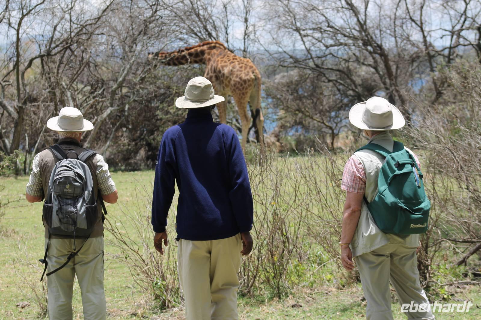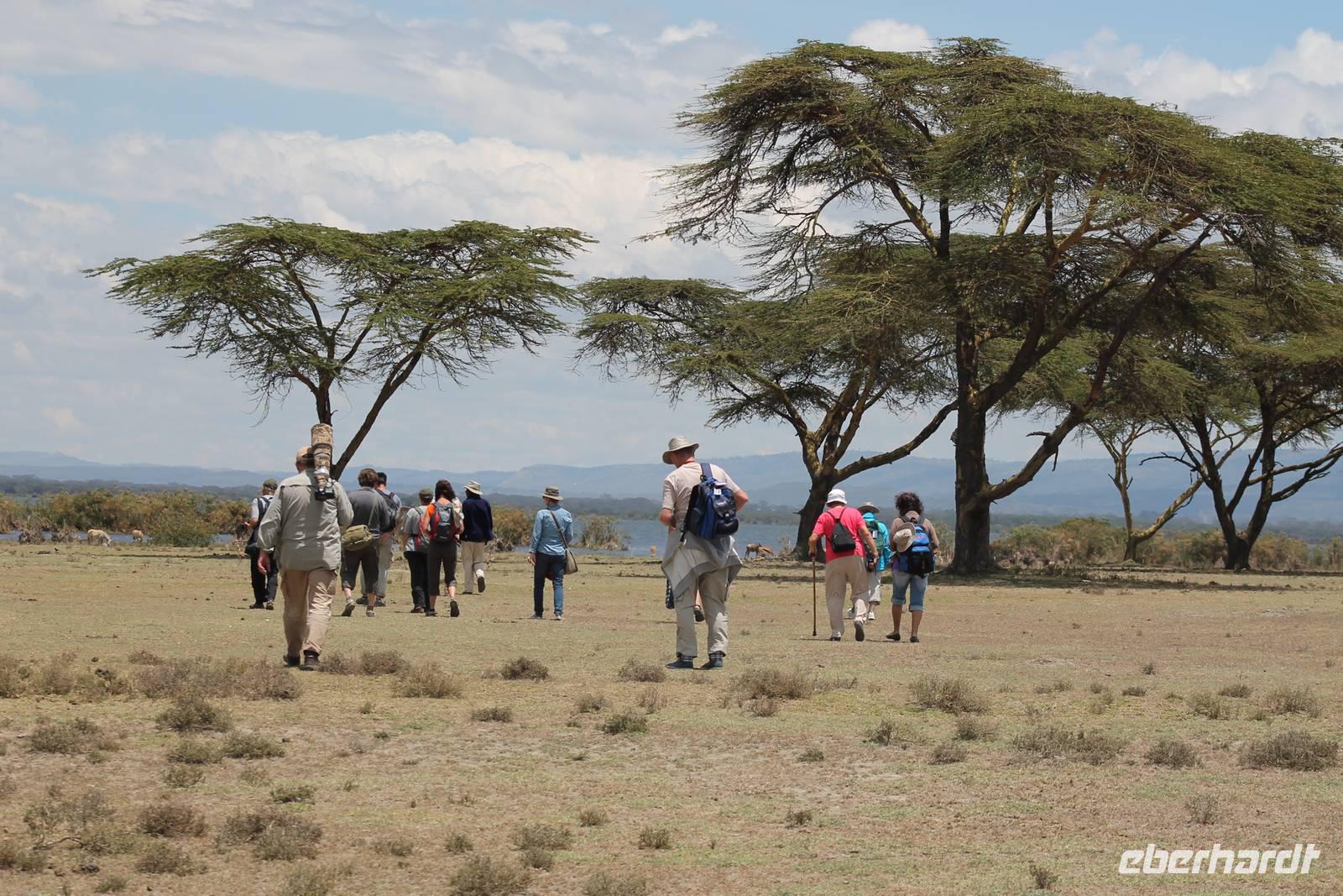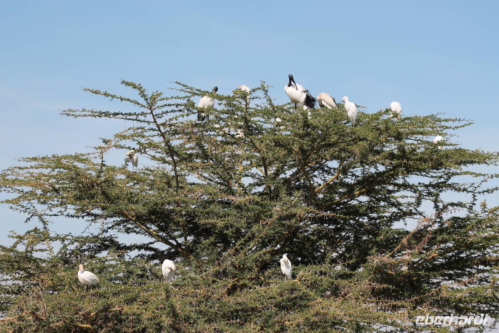 Heute führt uns eine lange und holprige Buckelpiste nach Naivasha. Gegen Mittag hier angekommen, werden wir aber mit einer tollen Anlage mitten am See für die weite Reise und Anstrengung belohnt. Hier können wir in Ruhe das Treiben am See beobachten. Nach einem Mittagessen bleibt etwas Zeit um die Stille und Ruhe zu genießen. Heute ist auch Bergfest und so stoßen wir mit einem kenianischen Viceroy auf die bisher wundervollen Tage an und freuen uns gleichzeitig auf das, was noch kommen mag. Etwas beschwipst erkunden wir anschließend mit einem Ranger das Lodgegelände. Wir erfahren viel über die Pflanzenwelt, die hier vorherrschend ist und natürlich auch über die Tierwelt, vor allem über die Vögel, die hier leben. Mitten auf dem Gelände begegnen uns Zebras, Wasserböcke und Gnus. Außerdem sehen wir viele Vögel wie den Nimmersatt, einen Kingfisher sowie einen Widehopf und viele andere. Den restlichen Tag nutzt jeder individuell und viele sind froh, auch mal die Ruhe am See zu genießen und die Vögel zu beobachten. Auch einige seltene Colobus Affen tummeln sich auf dem Gelände. Am Abend genießen wir noch ein Abendessen, dass keine Wünsche offen lässt und freuen uns auf unseren nächsten Tag am Naivasha See.