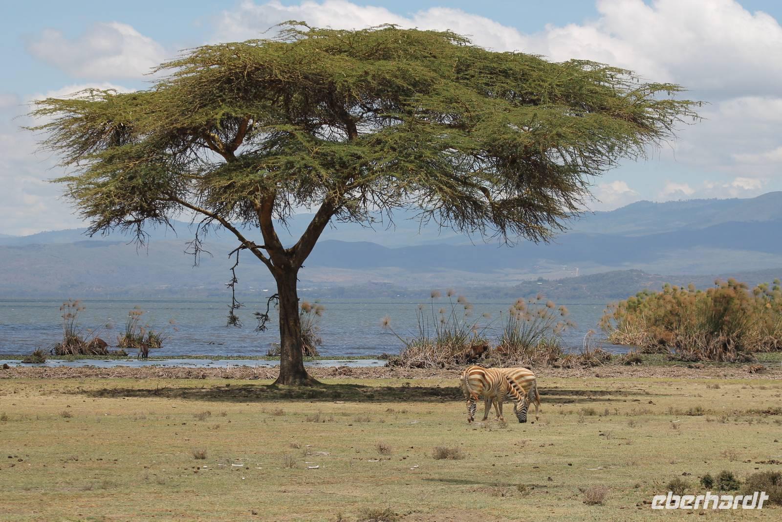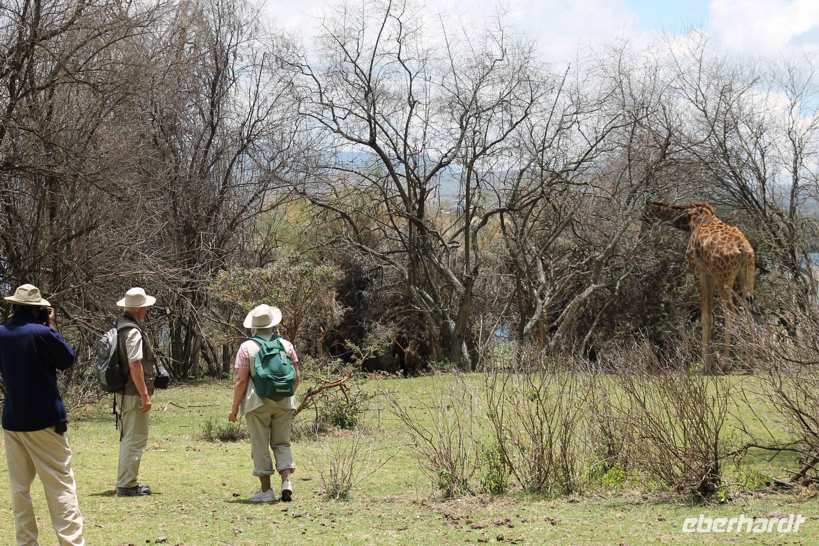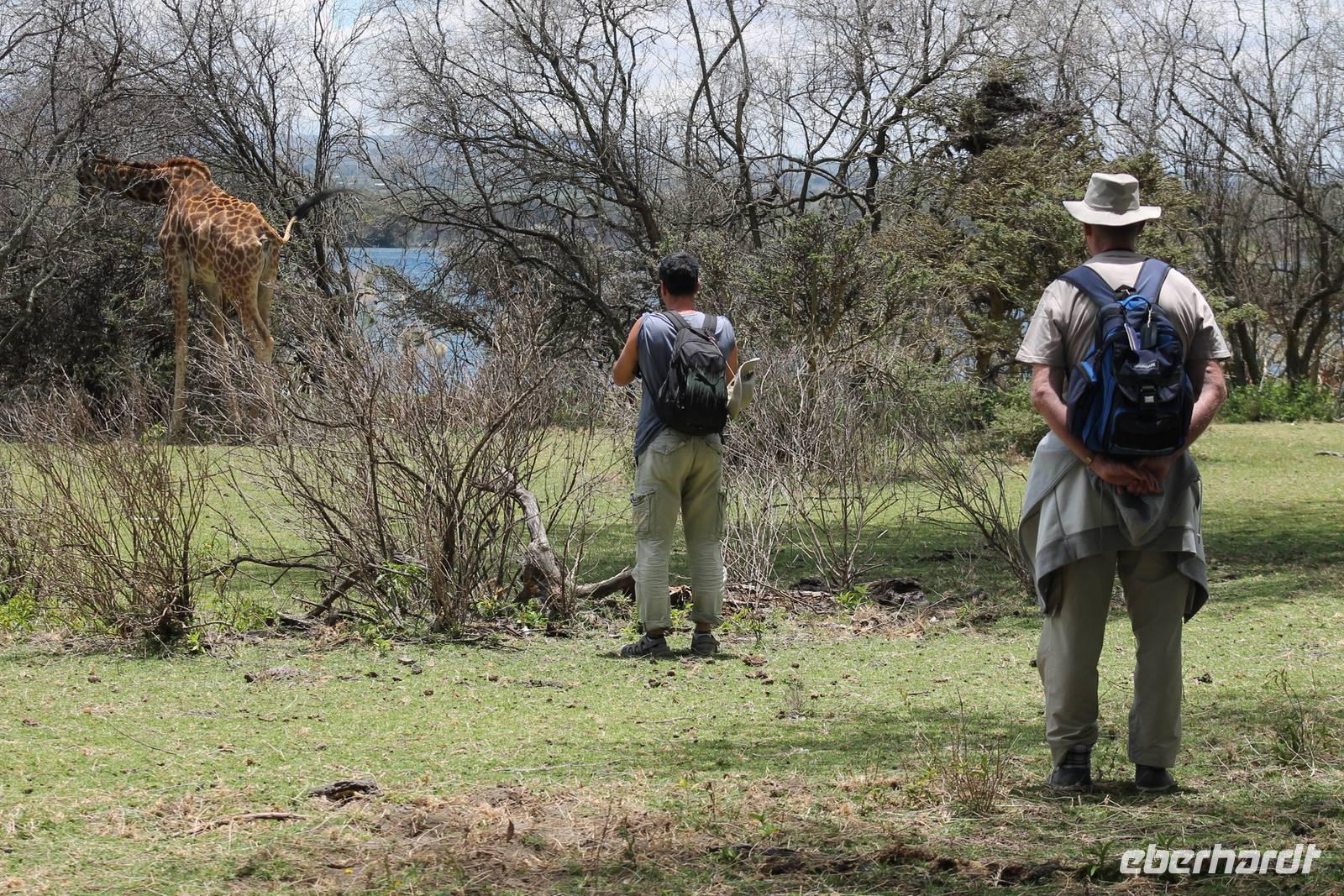 Heute führt uns eine lange und holprige Buckelpiste nach Naivasha. Gegen Mittag hier angekommen, werden wir aber mit einer tollen Anlage mitten am See für die weite Reise und Anstrengung belohnt. Hier können wir in Ruhe das Treiben am See beobachten. Nach einem Mittagessen bleibt etwas Zeit um die Stille und Ruhe zu genießen. Heute ist auch Bergfest und so stoßen wir mit einem kenianischen Viceroy auf die bisher wundervollen Tage an und freuen uns gleichzeitig auf das, was noch kommen mag. Etwas beschwipst erkunden wir anschließend mit einem Ranger das Lodgegelände. Wir erfahren viel über die Pflanzenwelt, die hier vorherrschend ist und natürlich auch über die Tierwelt, vor allem über die Vögel, die hier leben. Mitten auf dem Gelände begegnen uns Zebras, Wasserböcke und Gnus. Außerdem sehen wir viele Vögel wie den Nimmersatt, einen Kingfisher sowie einen Widehopf und viele andere. Den restlichen Tag nutzt jeder individuell und viele sind froh, auch mal die Ruhe am See zu genießen und die Vögel zu beobachten. Auch einige seltene Colobus Affen tummeln sich auf dem Gelände. Am Abend genießen wir noch ein Abendessen, dass keine Wünsche offen lässt und freuen uns auf unseren nächsten Tag am Naivasha See.