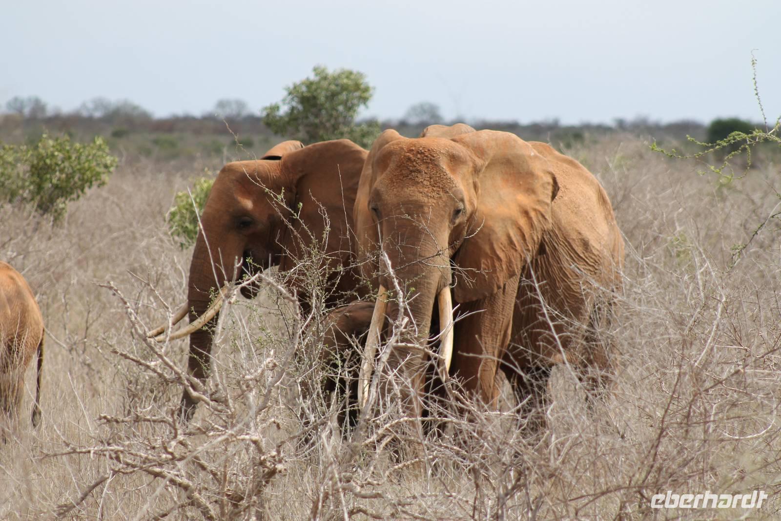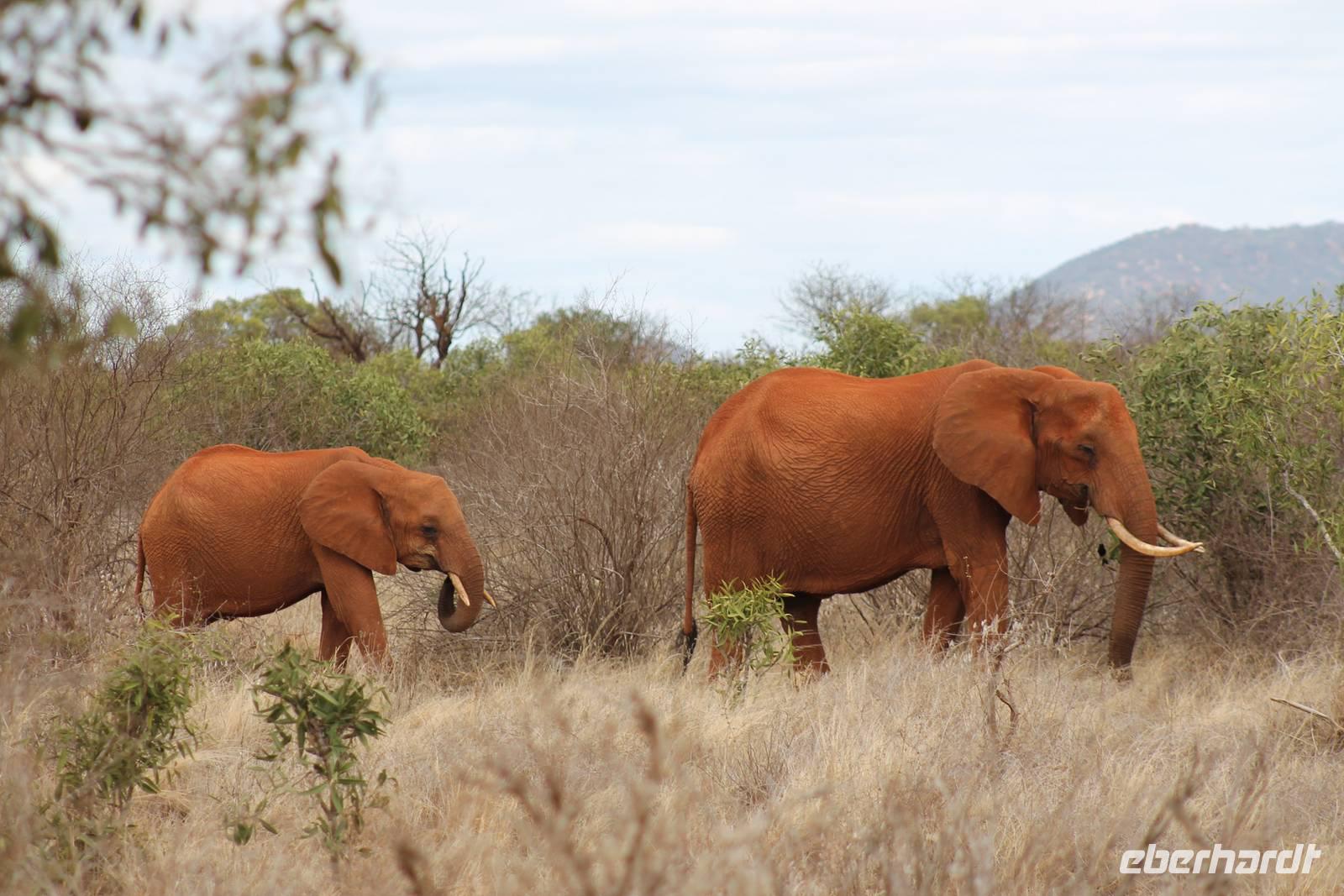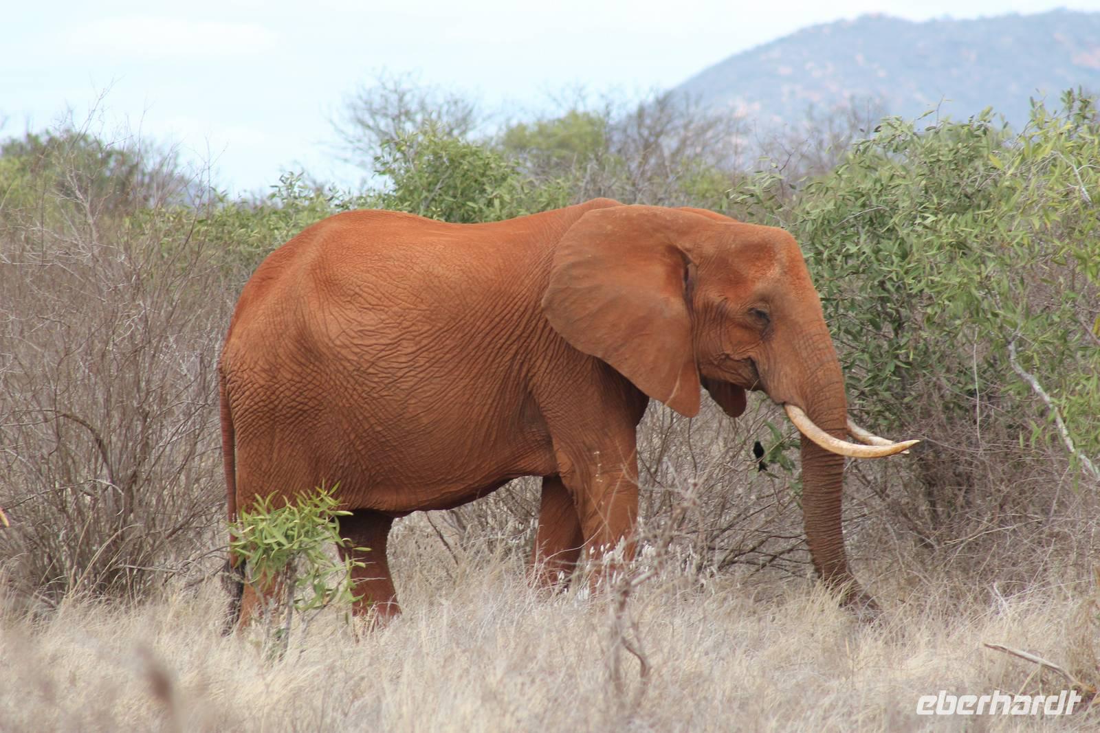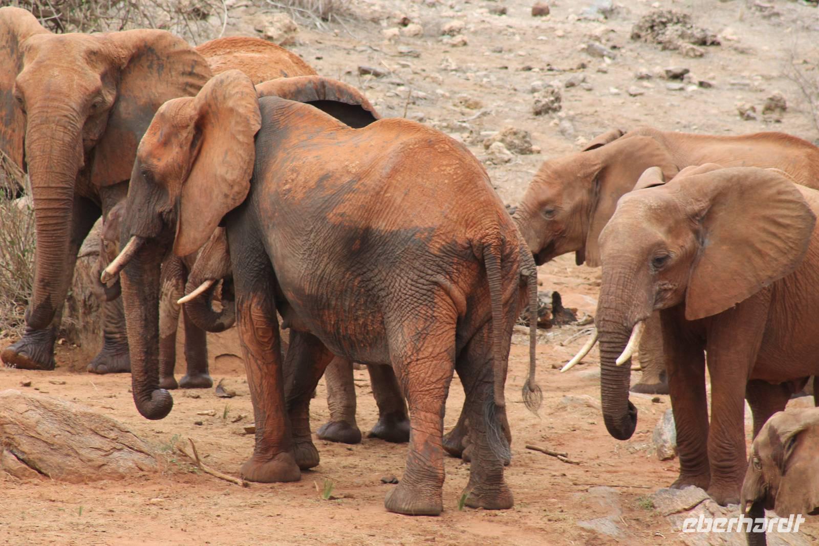 Natürlich werden wir den Amboseli Nationalpark heute nicht verlassen ohne die schneebedeckte Spitze des Kilimanjaros zu sehen. So haben wir heute doch noch einmal Glück und können einen unbedeckten Blick auf ihn erhaschen. Diesen nutzen wir natürlich gleich für ein Gruppenbild. Später bekommen wir auch noch das berühmte Bild mit der Elefantenherde vor dem Kilimanjaro auf die Linse und freuen uns darüber sehr. So fahren wir mit unseren sieben Sachen weiter zum Tsavo-Ost Nationalpark. Der Park zeichnet sich durch seine besondere Artenvielfalt an großen Tieren aus. Bekannt ist Tsavo vor allem für die große Elefantenpopulation (die größte in Kenia) und seine Löwen. Die „roten Elefanten vom Tsavo" verdanken ihrer Farbe der roten Erde im Nationalpark. Mit dieser pudern sie sich bei Staubbädern oder Schlammbädern ein. Gegen Mittag erreichen wir endlich unsere Luxuslodge "Galdessa", die sich wirklich als solche bezeichen kann. Sie ist direkt am Galana-Fluss gelegen. Vom Restaurant aus bietet sich Ihnen ein hervorragender Blick auf die umgebende Landschaft. Durch die 11 Bungalow-Zelte sind wir als Gruppe alleine in der Lodge und genießen dies in vollen Zügen. Zu unseren Zelten dürfen wir allerdings nur mit Begleitung gelangen, weil sich mehrere Elefanten auf dem Lodgegelände tummeln. Nach unserem Mittagessen bekommen wir dies auch selbst zu spüren, denn ein Elefant bahnt sich seinen Weg zwischen den Zelten und lässt sich beim Fressen nicht stören. Bei einer kleinen Siesta können wir auch das unglaubliche Treiben am Fluss beobachten. Mehrere Elefanten suchen sich Ihren Weg an das andere Ufer des Flusses. Ein tolles Schauspiel und so etwas will glaube ich jeder auch zu Hause haben. Dazu muss man nicht mehr ins Kino gehen. Nach so vielen Eindrücken treffen wir uns am Nachmittag wieder und unternehmen eine erste Pirsch im Nationalpark. Dabei sehen wir nicht nur die berühmten roten Elefanten sondern auch andere Tiere, die wir noch nicht so oft gesehen haben wie ein Dik Dik, eine wunderschöne Gabelrake, Rotschnabeltokos und Zwerfalken mit Beute. Wieder ein toller Tag für die Ornitologen aber auch für alle anderen. Am Abend genießen wir ein tolles Abendessen mit einem unvergleichen Blick auf der Terrasse der Lodge. In jedem Fall ein Höhepunkt der Reise und auch ein gebührender Abschluss.