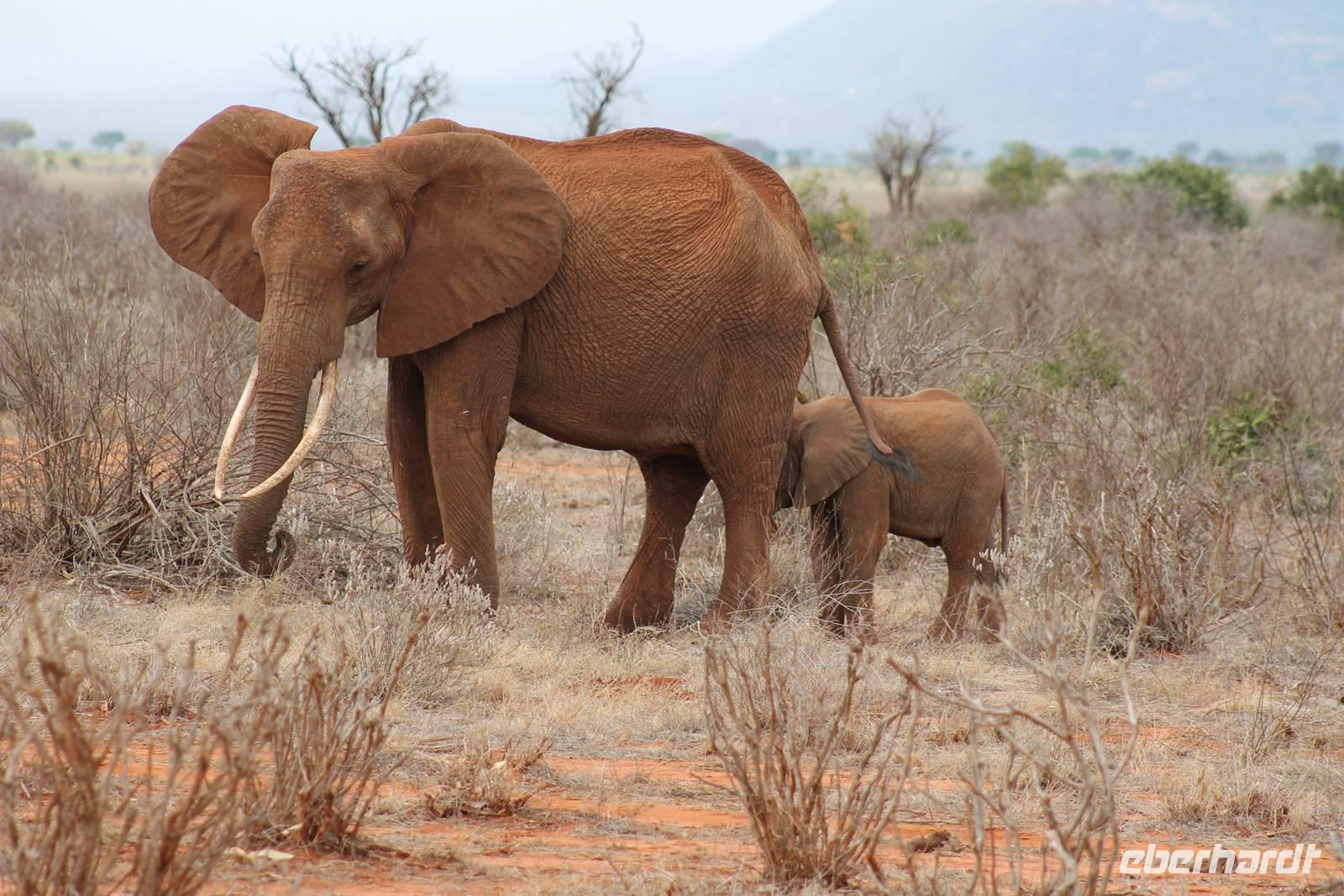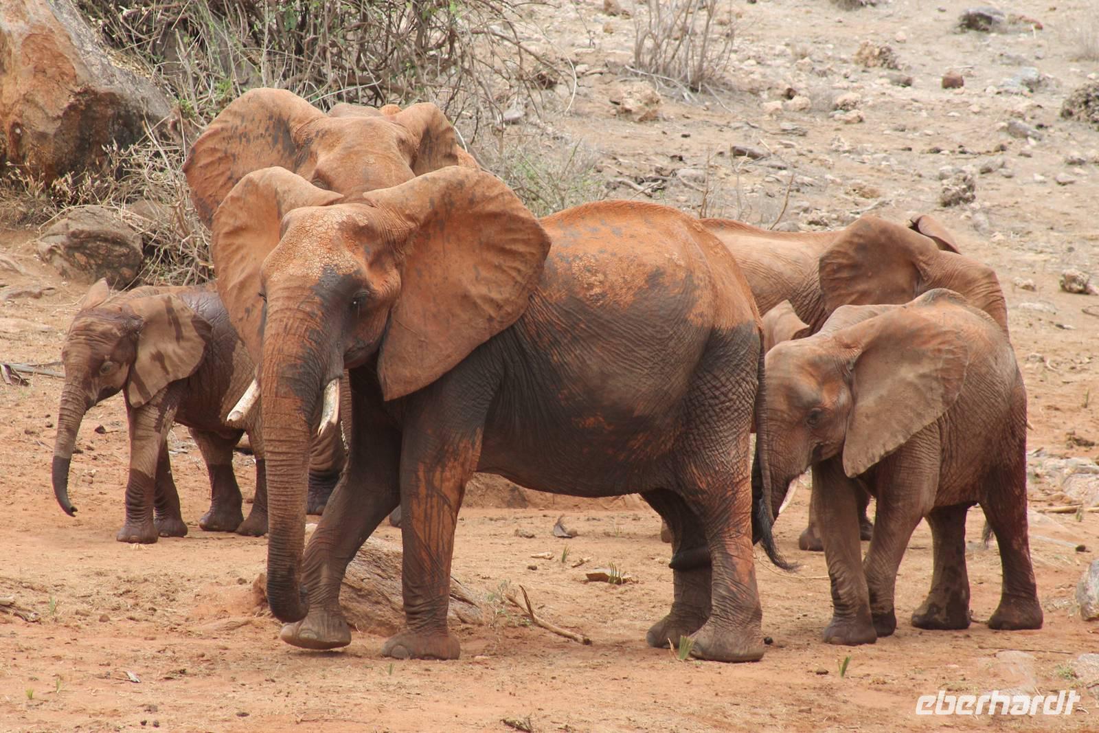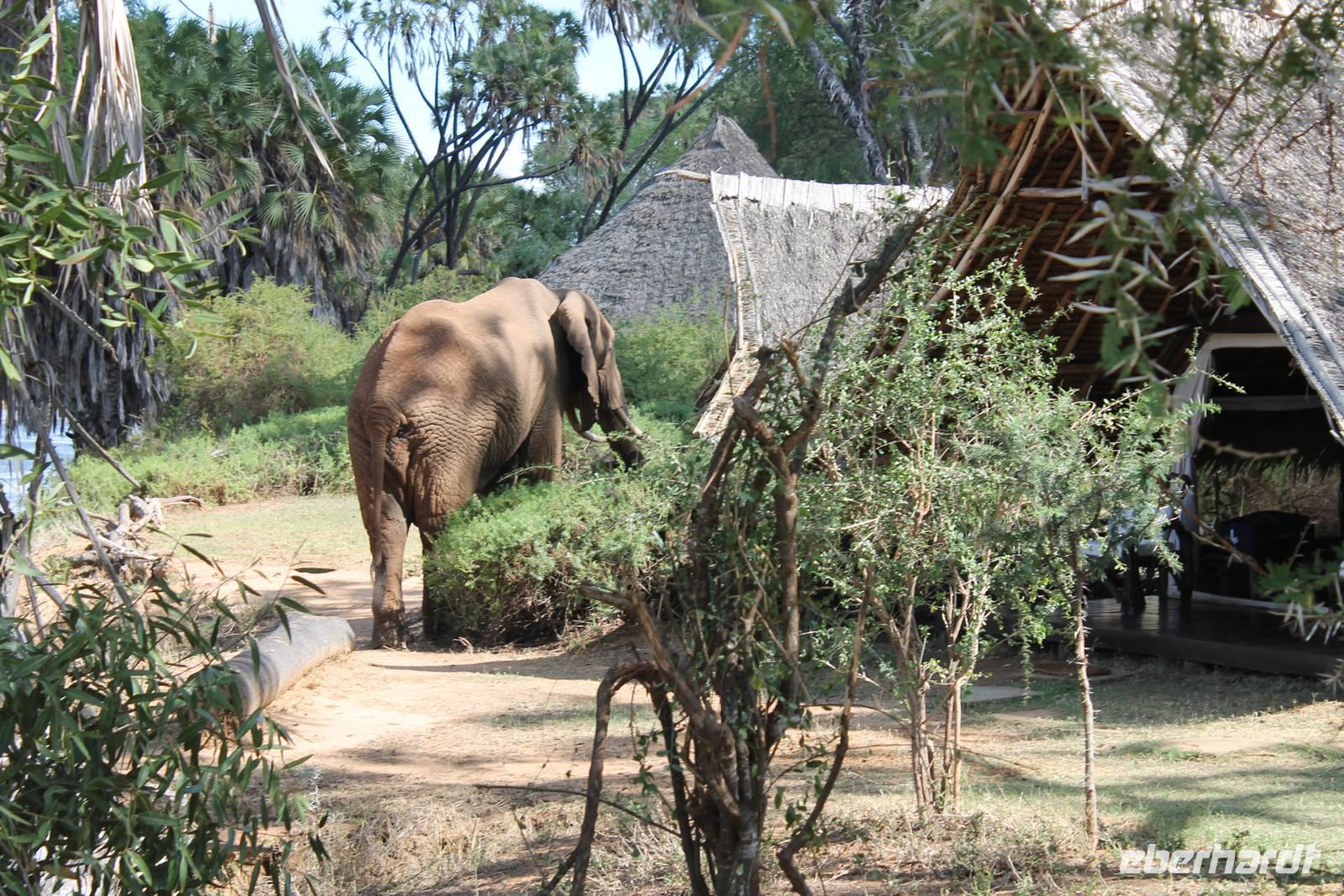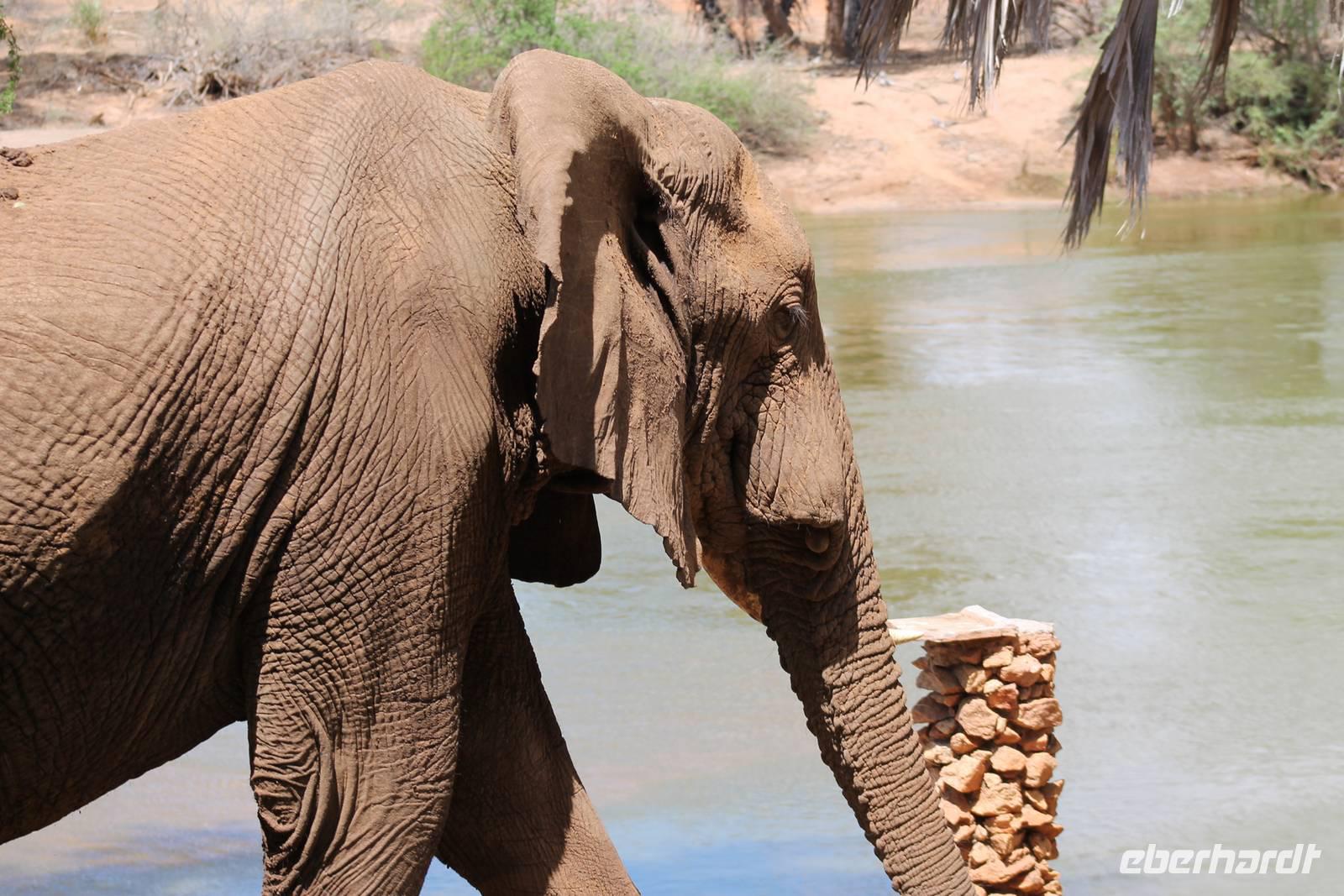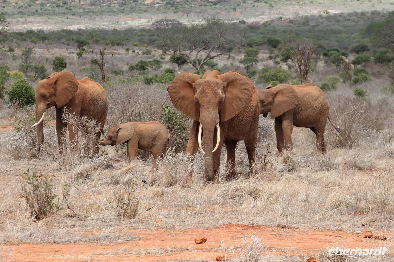 Natürlich werden wir den Amboseli Nationalpark heute nicht verlassen ohne die schneebedeckte Spitze des Kilimanjaros zu sehen. So haben wir heute doch noch einmal Glück und können einen unbedeckten Blick auf ihn erhaschen. Diesen nutzen wir natürlich gleich für ein Gruppenbild. Später bekommen wir auch noch das berühmte Bild mit der Elefantenherde vor dem Kilimanjaro auf die Linse und freuen uns darüber sehr. So fahren wir mit unseren sieben Sachen weiter zum Tsavo-Ost Nationalpark. Der Park zeichnet sich durch seine besondere Artenvielfalt an großen Tieren aus. Bekannt ist Tsavo vor allem für die große Elefantenpopulation (die größte in Kenia) und seine Löwen. Die „roten Elefanten vom Tsavo" verdanken ihrer Farbe der roten Erde im Nationalpark. Mit dieser pudern sie sich bei Staubbädern oder Schlammbädern ein. Gegen Mittag erreichen wir endlich unsere Luxuslodge "Galdessa", die sich wirklich als solche bezeichen kann. Sie ist direkt am Galana-Fluss gelegen. Vom Restaurant aus bietet sich Ihnen ein hervorragender Blick auf die umgebende Landschaft. Durch die 11 Bungalow-Zelte sind wir als Gruppe alleine in der Lodge und genießen dies in vollen Zügen. Zu unseren Zelten dürfen wir allerdings nur mit Begleitung gelangen, weil sich mehrere Elefanten auf dem Lodgegelände tummeln. Nach unserem Mittagessen bekommen wir dies auch selbst zu spüren, denn ein Elefant bahnt sich seinen Weg zwischen den Zelten und lässt sich beim Fressen nicht stören. Bei einer kleinen Siesta können wir auch das unglaubliche Treiben am Fluss beobachten. Mehrere Elefanten suchen sich Ihren Weg an das andere Ufer des Flusses. Ein tolles Schauspiel und so etwas will glaube ich jeder auch zu Hause haben. Dazu muss man nicht mehr ins Kino gehen. Nach so vielen Eindrücken treffen wir uns am Nachmittag wieder und unternehmen eine erste Pirsch im Nationalpark. Dabei sehen wir nicht nur die berühmten roten Elefanten sondern auch andere Tiere, die wir noch nicht so oft gesehen haben wie ein Dik Dik, eine wunderschöne Gabelrake, Rotschnabeltokos und Zwerfalken mit Beute. Wieder ein toller Tag für die Ornitologen aber auch für alle anderen. Am Abend genießen wir ein tolles Abendessen mit einem unvergleichen Blick auf der Terrasse der Lodge. In jedem Fall ein Höhepunkt der Reise und auch ein gebührender Abschluss.