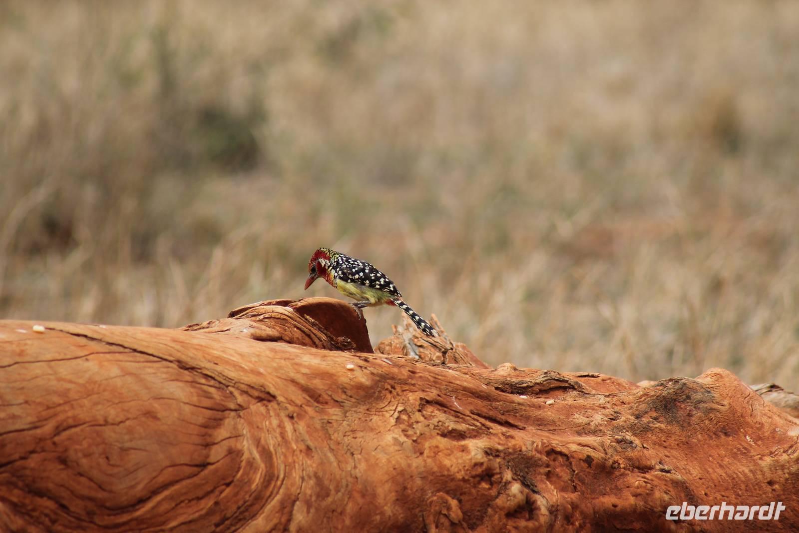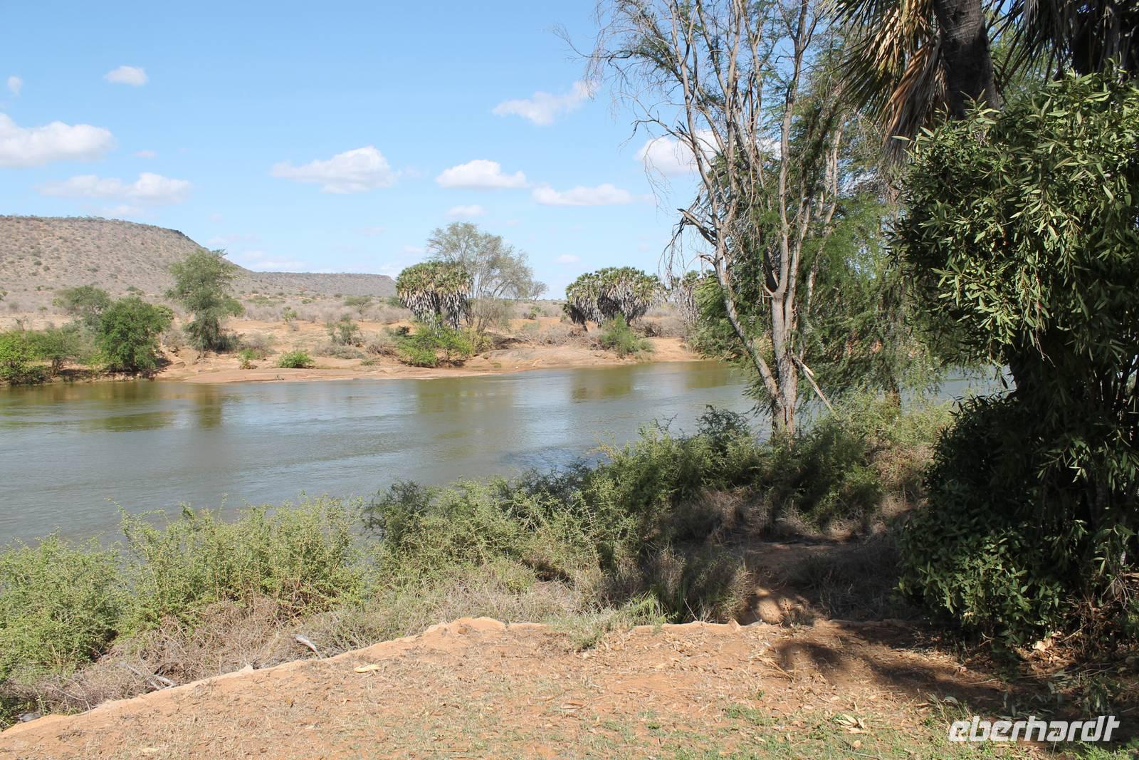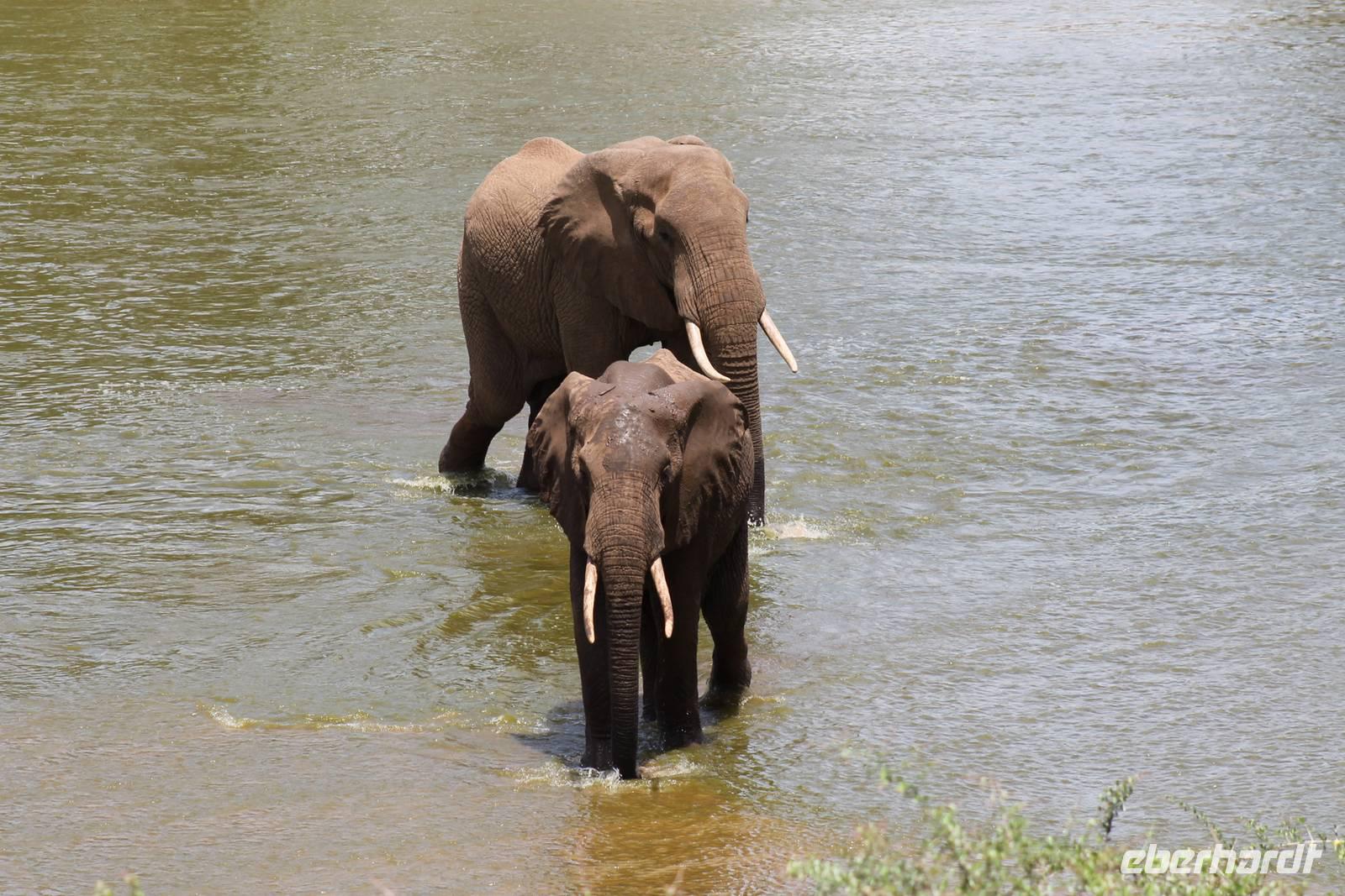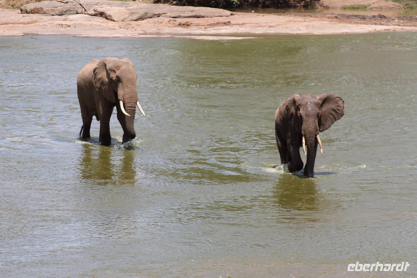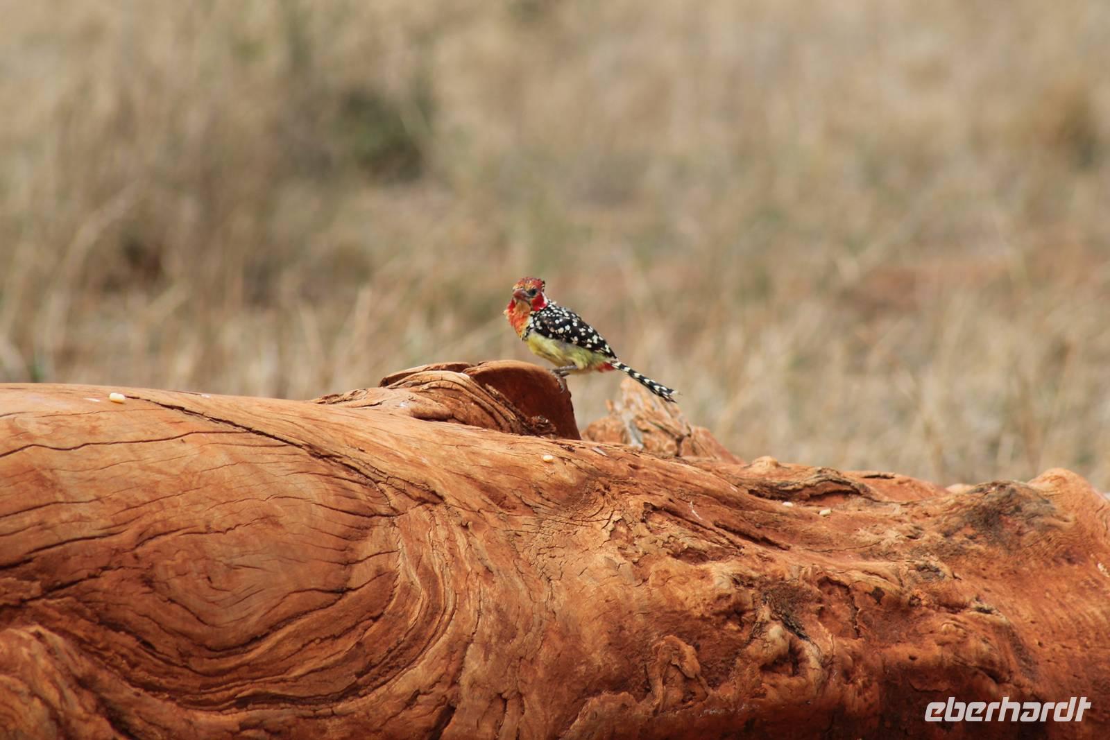 Natürlich werden wir den Amboseli Nationalpark heute nicht verlassen ohne die schneebedeckte Spitze des Kilimanjaros zu sehen. So haben wir heute doch noch einmal Glück und können einen unbedeckten Blick auf ihn erhaschen. Diesen nutzen wir natürlich gleich für ein Gruppenbild. Später bekommen wir auch noch das berühmte Bild mit der Elefantenherde vor dem Kilimanjaro auf die Linse und freuen uns darüber sehr. So fahren wir mit unseren sieben Sachen weiter zum Tsavo-Ost Nationalpark. Der Park zeichnet sich durch seine besondere Artenvielfalt an großen Tieren aus. Bekannt ist Tsavo vor allem für die große Elefantenpopulation (die größte in Kenia) und seine Löwen. Die „roten Elefanten vom Tsavo" verdanken ihrer Farbe der roten Erde im Nationalpark. Mit dieser pudern sie sich bei Staubbädern oder Schlammbädern ein. Gegen Mittag erreichen wir endlich unsere Luxuslodge "Galdessa", die sich wirklich als solche bezeichen kann. Sie ist direkt am Galana-Fluss gelegen. Vom Restaurant aus bietet sich Ihnen ein hervorragender Blick auf die umgebende Landschaft. Durch die 11 Bungalow-Zelte sind wir als Gruppe alleine in der Lodge und genießen dies in vollen Zügen. Zu unseren Zelten dürfen wir allerdings nur mit Begleitung gelangen, weil sich mehrere Elefanten auf dem Lodgegelände tummeln. Nach unserem Mittagessen bekommen wir dies auch selbst zu spüren, denn ein Elefant bahnt sich seinen Weg zwischen den Zelten und lässt sich beim Fressen nicht stören. Bei einer kleinen Siesta können wir auch das unglaubliche Treiben am Fluss beobachten. Mehrere Elefanten suchen sich Ihren Weg an das andere Ufer des Flusses. Ein tolles Schauspiel und so etwas will glaube ich jeder auch zu Hause haben. Dazu muss man nicht mehr ins Kino gehen. Nach so vielen Eindrücken treffen wir uns am Nachmittag wieder und unternehmen eine erste Pirsch im Nationalpark. Dabei sehen wir nicht nur die berühmten roten Elefanten sondern auch andere Tiere, die wir noch nicht so oft gesehen haben wie ein Dik Dik, eine wunderschöne Gabelrake, Rotschnabeltokos und Zwerfalken mit Beute. Wieder ein toller Tag für die Ornitologen aber auch für alle anderen. Am Abend genießen wir ein tolles Abendessen mit einem unvergleichen Blick auf der Terrasse der Lodge. In jedem Fall ein Höhepunkt der Reise und auch ein gebührender Abschluss.