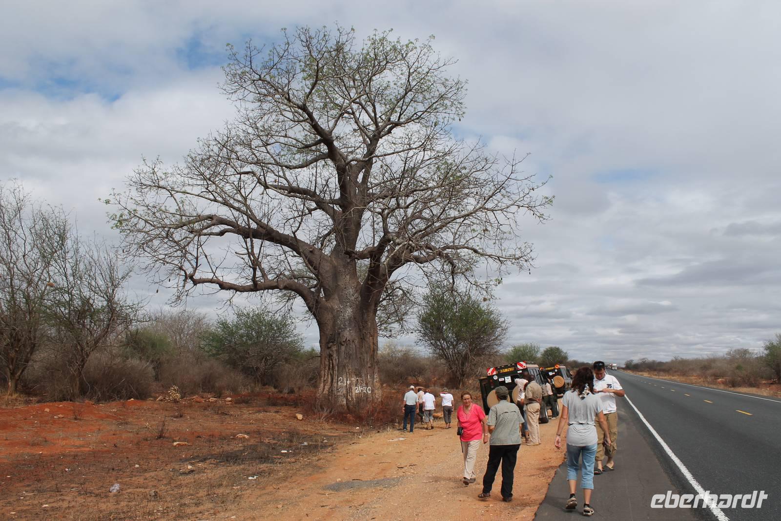 Heute müssen wir Abschied nehmen von unserem wunderschönen Galdessa-Camp und fahren zurück nach Nairobi, aber nicht ohne uns zu verabschieden von der schier unglaublichen Tierwelt. So entdeckt unser Fahrer Jackson mit seinen Adleraugen noch einen Leoparden im Baum, den auch wir von der Ferne erkennen können. Außerdem verlassen wir Kenia nicht ohne einen Baobab umarmt zu haben, denn das soll Glück bringen. So halten wir noch einmal und umarmen gemeinsam den Baobab. Am Nachmittag erreichen wir wieder unser schon bekanntes Eka Hotel in Nairobi und uns steht hier ein Tageszimmer zur Verfügung, welches wir bis zu unserer Abreise am Abend um 20:00 Uhr nutzen können. Das freut uns sehr, denn so kann sich der ein oder andere nochmal hinlegen und frisch machen für die Heimreise. Am Abend genießen wir noch ein letztes gemeinsam Abendessen bevor uns unsere Jeepfahrer und Leo zum Flughafen bringen.