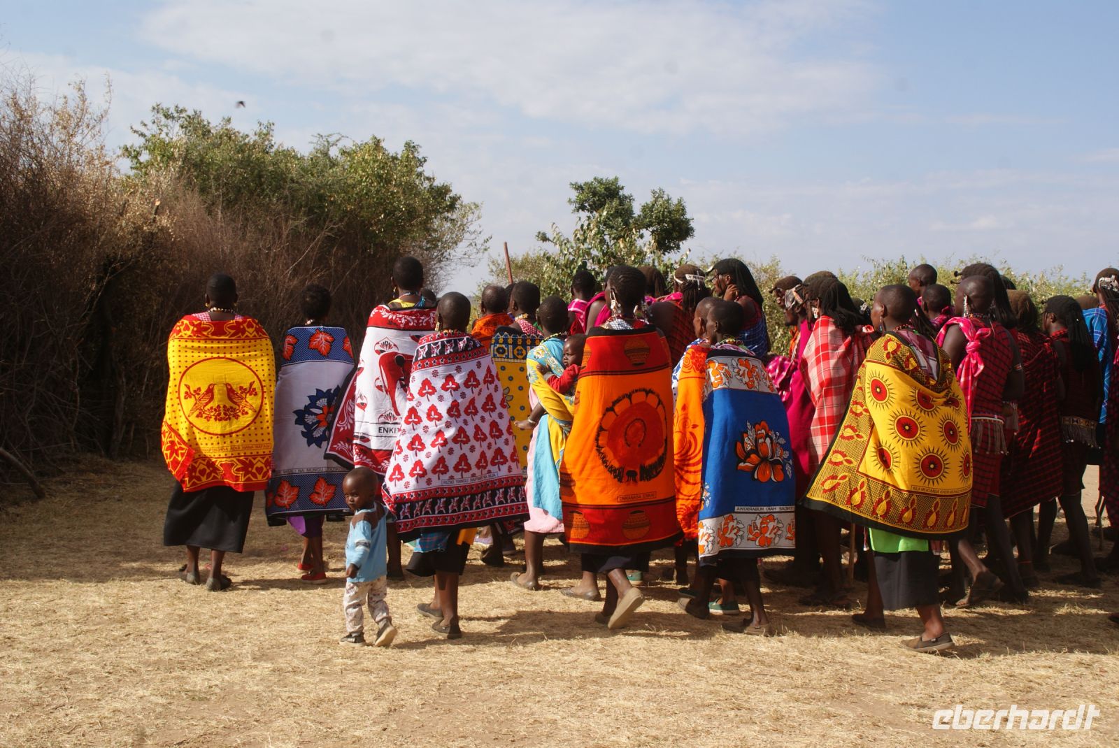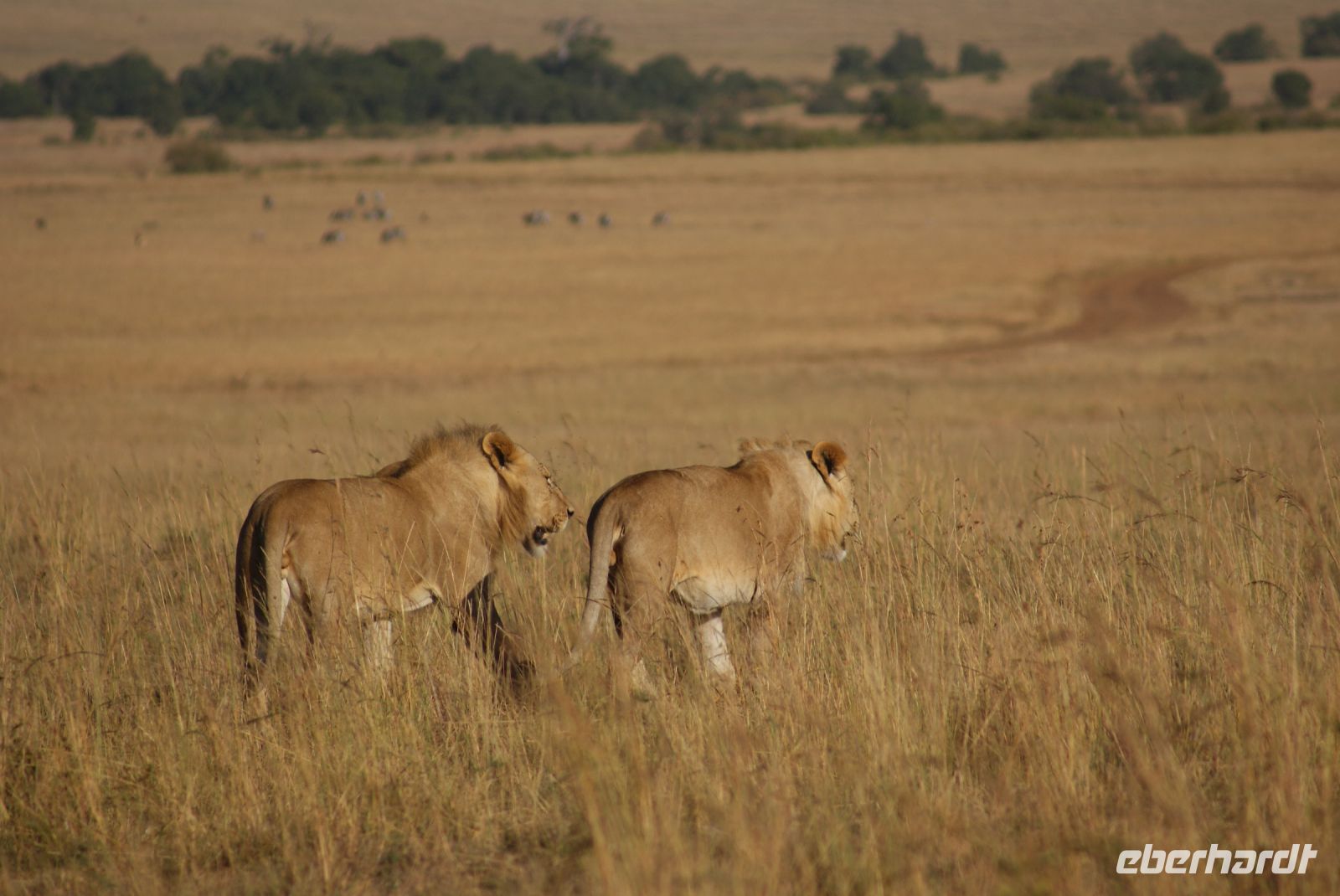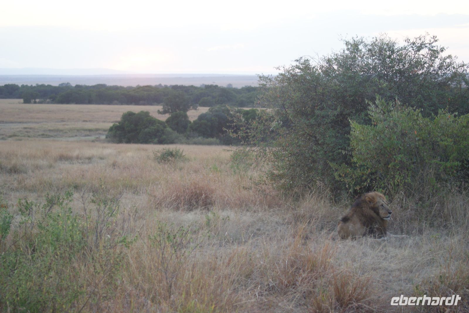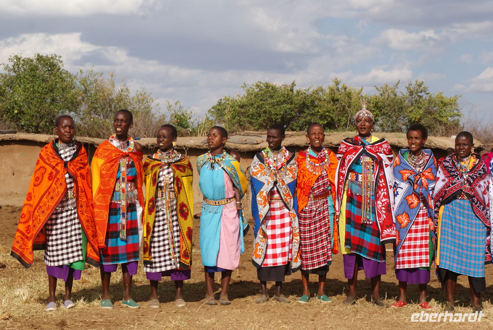 Mit so manchen Tiergeräuschen haben wir die Nacht gut verbracht und brechen schon am frühen Morgen in die Masai Mara auf. Sofort werden wir belohnt und treffen auf ein Löwenrudel, sehen Mütter mit drei Jungtieren, die uns verzücken. Kurz darauf ebenfalls ein Männchen mit prächtiger Mähne, dazu der Sonnenaufgang im Hintergrund, schöner können wir es uns nicht vorstellen. Nochmals suchen wir uns ein schönes Plätzchen unter einer Schirmakazie und frühstücken nochmals unter freiem Himmel mit Blick in die uns umrundende Natur. So verbringen wir einen wunderbaren Vormittag mit weiteren Tiersichtungen zu denen Geier und Marabus an einem Kadaverrest gehören, sowie Giraffen, Elefanten, Fischadler und tausende Gnus und Zebras auf der nicht enden wollenden Savanne Afrikas. Ein Traum für jeden Tierfreund, der dies einmal hautnah erleben möchte. Mittags kehren wir zurück ins Camp, wo exklusiv für uns ein Buffet mit Showkoch bereitgestellt ist. Einfach köstlich und ein super toller Service, da alles für uns frisch und nach unseren Wünschen zubereitet wird. Am Nachmittag treffen wir uns erneut, um ein in der Nähe gelegenes Masai Dorf zu besuchen. Wir fahren zunächst in das benachbarte Dorf außerhalb des Reservats und kaufen in einem Dorfladen Stifte und Schulhefte für die Masai Kinder, da uns Guide Caleb von Süßigkeiten, etc. abgeraten hat. Da diese schlecht für Zähne sind und nur Müll produzieren, entscheiden wir uns für ein nützliches Mitbringsel. Nach Ankunft im Masai Dorf werden wir von Guide Dickson in Empfang genommen sowie 40 weiteren Dorfmitgliedern begrüßt und mit zwei Liedern der Masaifrauen willkommen heißen. Danach tanzen die Masai Krieger für uns und zeigen ihre enorme Sprungkraft. Anschließend demonstriert man uns, wie ohne moderne Hilfsmittel mit Reibung und verschiedenen Hölzern, dazu Elefantendung, Feuer gemacht wird. Wer möchte, darf einen Blick in eine Masai Hütte werfen. Diese wird von den Frauen mit Kuhdung und Erde gefertigt. Innen angekommen, besteht diese aus drei Räumen. Elternschlafzimmer, Kinder-und Gästezimmer. In der Mitte der Kochbereich und ein kleines Fenster, dass dem Tageslicht und Rauchabzug dient. Wir staunen über die Kühle innerhalb, während es draußen recht heiß ist. Wir hören, dass das Dorf 250 Personen fasst, es 46 Häuser gibt, in denen 46 Frauen, deren Kinder und teilweise auch deren Ehemänner anwesend sind. Ein Masai Mann kann bis zu 11 Frauen heiraten, wenn er für jede Frau 10 Kühe aufbringt… Das Leben findet tagsüber eher außerhalb der Hütten statt und abends wird zur Sicherheit das Vieh in den Kral, also in das Innere der Community getrieben. Abschließend verteilen wir unsere Gaben an die sich brav aufreihenden Kinder, für die wir sicherlich mit unseren Geschenken ebenfalls eine Attraktion sind. Wir verlassen die Masai und kehren zurück in die Masai Mara. Hier erleben wir abschließend noch ein unvergessliches Erlebnis: Ein großes Rudel Löwen mit mehr als dreißzig Tieren findet sich auf einem Hügel ein und wir befinden uns mittendrin. Ein herrlicher Anblick, den Jungtieren beim Herumtollen zuzuschauen und die große Freude zu sehen, als Frau Mama hinzustieß. Einfach unglaublich, diese Vielzahl an Löwen auf einer Stelle zu finden. Am Abend erleben wir ein Bushdinner und werden zu einem Platz außerhalb des Camps gebracht. Es erfolgt ein Abendessen unterm Himmelszelt mit Lagerfeuer, Musikant und nächtlicher Atmosphäre. Über uns die Milchstraße und hunderte von Sterne. Geht es noch idyllischer? Schwer vorstellbar.