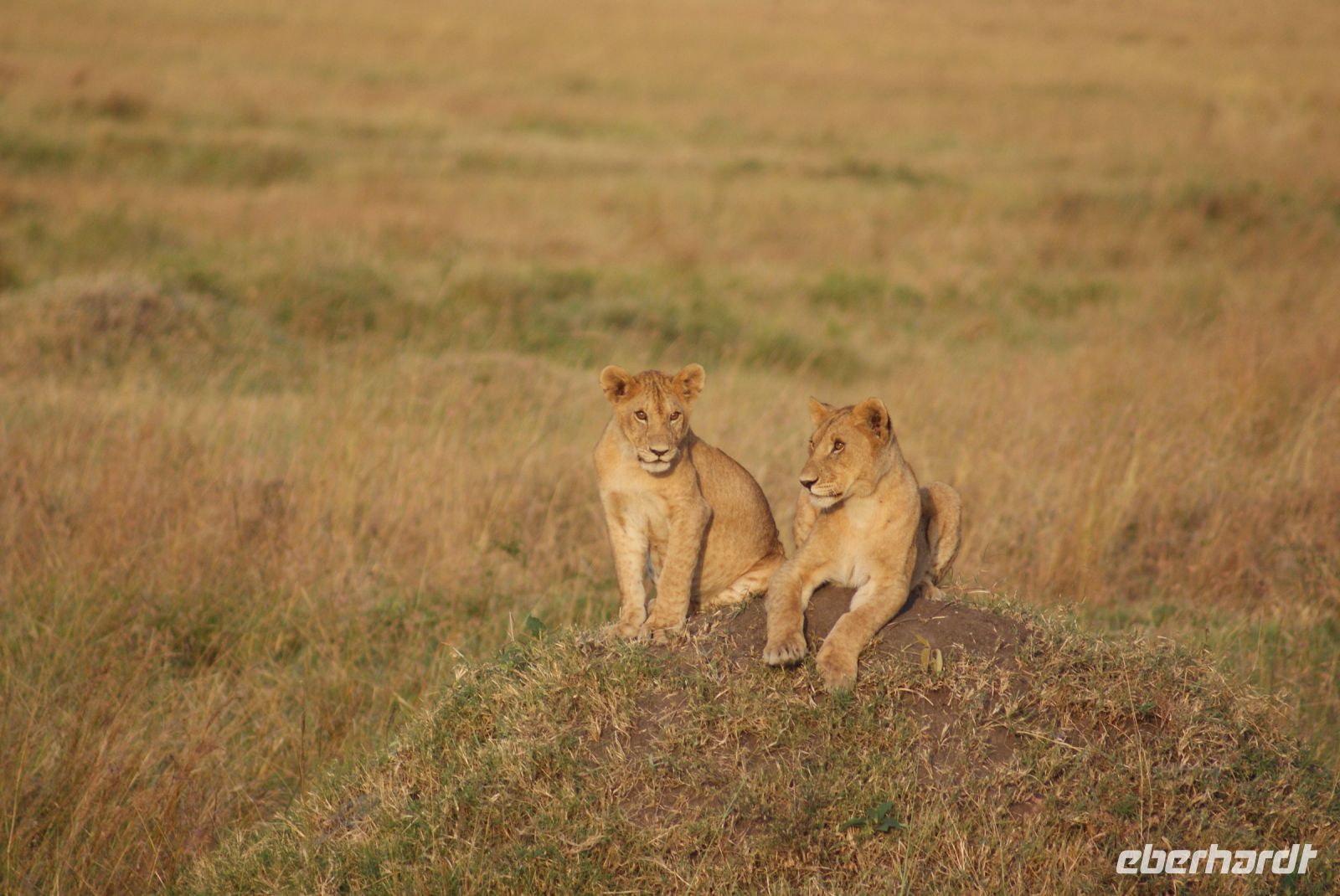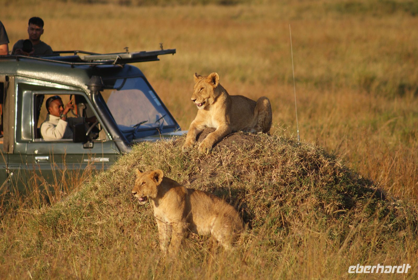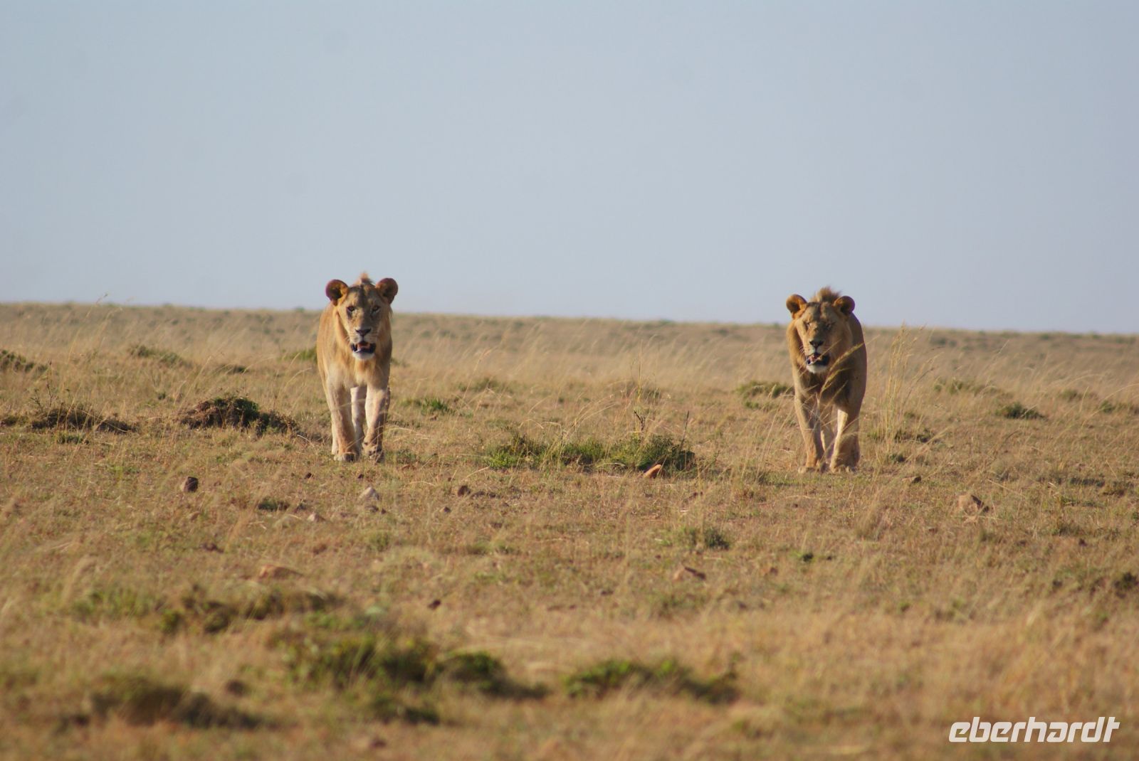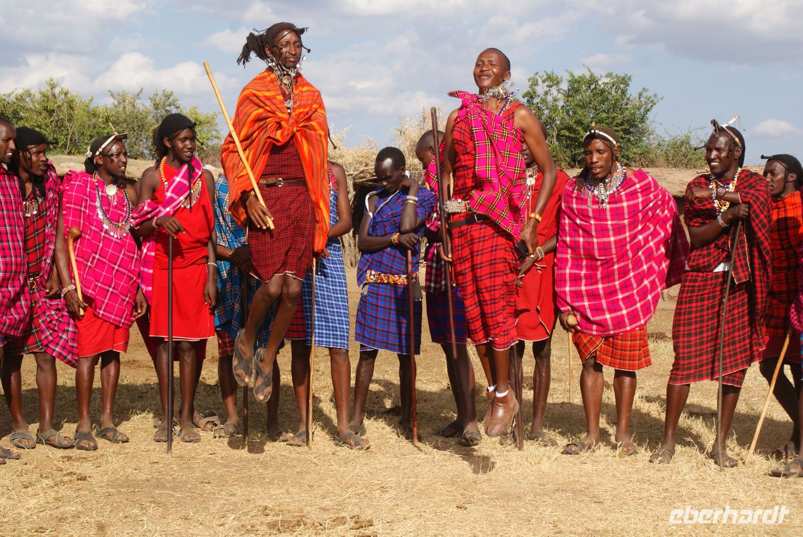Mit so manchen Tiergeräuschen haben wir die Nacht gut verbracht und brechen schon am frühen Morgen in die Masai Mara auf. Sofort werden wir belohnt und treffen auf ein Löwenrudel, sehen Mütter mit drei Jungtieren, die uns verzücken. Kurz darauf ebenfalls ein Männchen mit prächtiger Mähne, dazu der Sonnenaufgang im Hintergrund, schöner können wir es uns nicht vorstellen. Nochmals suchen wir uns ein schönes Plätzchen unter einer Schirmakazie und frühstücken nochmals unter freiem Himmel mit Blick in die uns umrundende Natur. So verbringen wir einen wunderbaren Vormittag mit weiteren Tiersichtungen zu denen Geier und Marabus an einem Kadaverrest gehören, sowie Giraffen, Elefanten, Fischadler und tausende Gnus und Zebras auf der nicht enden wollenden Savanne Afrikas. Ein Traum für jeden Tierfreund, der dies einmal hautnah erleben möchte. Mittags kehren wir zurück ins Camp, wo exklusiv für uns ein Buffet mit Showkoch bereitgestellt ist. Einfach köstlich und ein super toller Service, da alles für uns frisch und nach unseren Wünschen zubereitet wird. Am Nachmittag treffen wir uns erneut, um ein in der Nähe gelegenes Masai Dorf zu besuchen. Wir fahren zunächst in das benachbarte Dorf außerhalb des Reservats und kaufen in einem Dorfladen Stifte und Schulhefte für die Masai Kinder, da uns Guide Caleb von Süßigkeiten, etc. abgeraten hat. Da diese schlecht für Zähne sind und nur Müll produzieren, entscheiden wir uns für ein nützliches Mitbringsel. Nach Ankunft im Masai Dorf werden wir von Guide Dickson in Empfang genommen sowie 40 weiteren Dorfmitgliedern begrüßt und mit zwei Liedern der Masaifrauen willkommen heißen. Danach tanzen die Masai Krieger für uns und zeigen ihre enorme Sprungkraft. Anschließend demonstriert man uns, wie ohne moderne Hilfsmittel mit Reibung und verschiedenen Hölzern, dazu Elefantendung, Feuer gemacht wird. Wer möchte, darf einen Blick in eine Masai Hütte werfen. Diese wird von den Frauen mit Kuhdung und Erde gefertigt. Innen angekommen, besteht diese aus drei Räumen. Elternschlafzimmer, Kinder-und Gästezimmer. In der Mitte der Kochbereich und ein kleines Fenster, dass dem Tageslicht und Rauchabzug dient. Wir staunen über die Kühle innerhalb, während es draußen recht heiß ist. Wir hören, dass das Dorf 250 Personen fasst, es 46 Häuser gibt, in denen 46 Frauen, deren Kinder und teilweise auch deren Ehemänner anwesend sind. Ein Masai Mann kann bis zu 11 Frauen heiraten, wenn er für jede Frau 10 Kühe aufbringt… Das Leben findet tagsüber eher außerhalb der Hütten statt und abends wird zur Sicherheit das Vieh in den Kral, also in das Innere der Community getrieben. Abschließend verteilen wir unsere Gaben an die sich brav aufreihenden Kinder, für die wir sicherlich mit unseren Geschenken ebenfalls eine Attraktion sind. Wir verlassen die Masai und kehren zurück in die Masai Mara. Hier erleben wir abschließend noch ein unvergessliches Erlebnis: Ein großes Rudel Löwen mit mehr als dreißzig Tieren findet sich auf einem Hügel ein und wir befinden uns mittendrin. Ein herrlicher Anblick, den Jungtieren beim Herumtollen zuzuschauen und die große Freude zu sehen, als Frau Mama hinzustieß. Einfach unglaublich, diese Vielzahl an Löwen auf einer Stelle zu finden. Am Abend erleben wir ein Bushdinner und werden zu einem Platz außerhalb des Camps gebracht. Es erfolgt ein Abendessen unterm Himmelszelt mit Lagerfeuer, Musikant und nächtlicher Atmosphäre. Über uns die Milchstraße und hunderte von Sterne. Geht es noch idyllischer? Schwer vorstellbar.