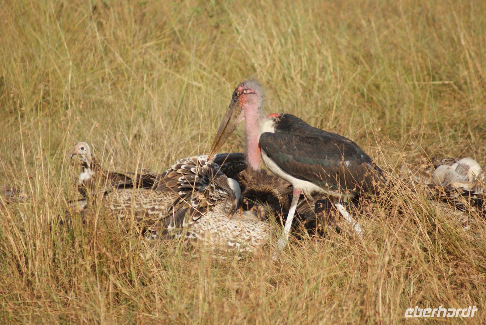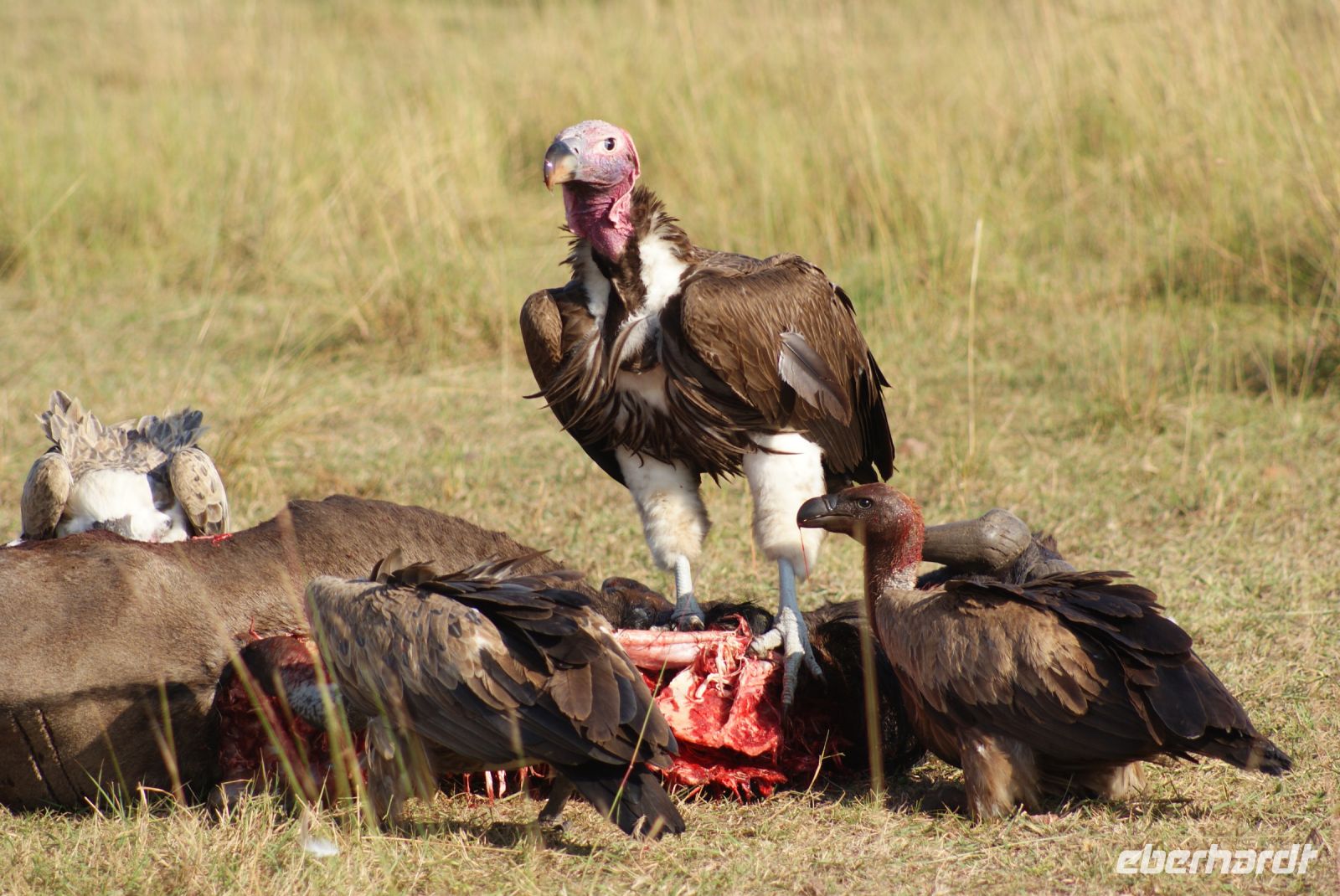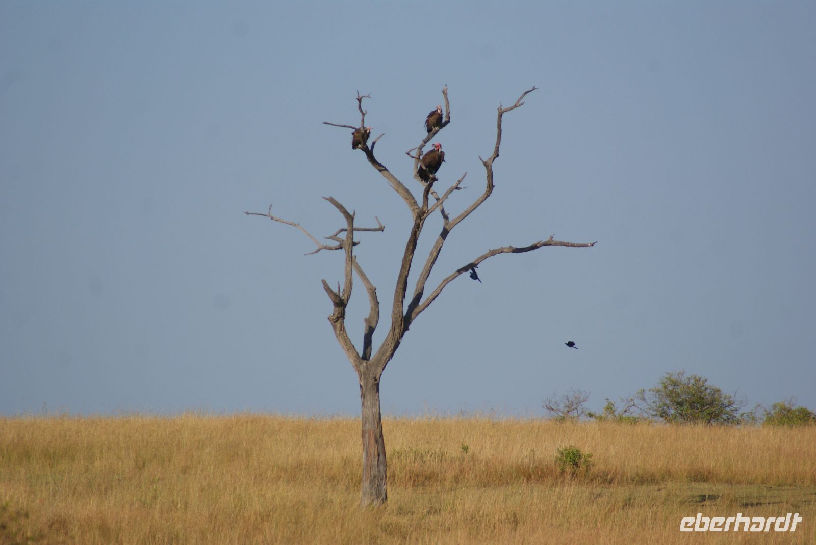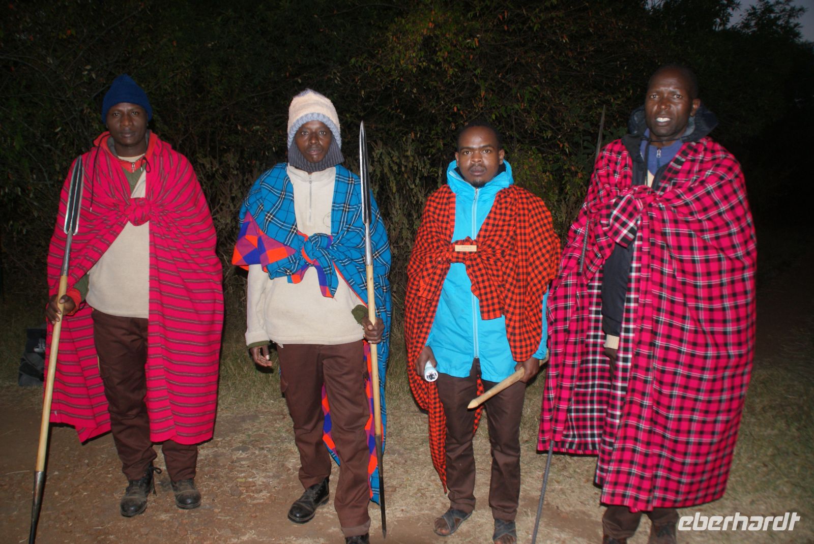 Mit so manchen Tiergeräuschen haben wir die Nacht gut verbracht und brechen schon am frühen Morgen in die Masai Mara auf. Sofort werden wir belohnt und treffen auf ein Löwenrudel, sehen Mütter mit drei Jungtieren, die uns verzücken. Kurz darauf ebenfalls ein Männchen mit prächtiger Mähne, dazu der Sonnenaufgang im Hintergrund, schöner können wir es uns nicht vorstellen. Nochmals suchen wir uns ein schönes Plätzchen unter einer Schirmakazie und frühstücken nochmals unter freiem Himmel mit Blick in die uns umrundende Natur. So verbringen wir einen wunderbaren Vormittag mit weiteren Tiersichtungen zu denen Geier und Marabus an einem Kadaverrest gehören, sowie Giraffen, Elefanten, Fischadler und tausende Gnus und Zebras auf der nicht enden wollenden Savanne Afrikas. Ein Traum für jeden Tierfreund, der dies einmal hautnah erleben möchte. Mittags kehren wir zurück ins Camp, wo exklusiv für uns ein Buffet mit Showkoch bereitgestellt ist. Einfach köstlich und ein super toller Service, da alles für uns frisch und nach unseren Wünschen zubereitet wird. Am Nachmittag treffen wir uns erneut, um ein in der Nähe gelegenes Masai Dorf zu besuchen. Wir fahren zunächst in das benachbarte Dorf außerhalb des Reservats und kaufen in einem Dorfladen Stifte und Schulhefte für die Masai Kinder, da uns Guide Caleb von Süßigkeiten, etc. abgeraten hat. Da diese schlecht für Zähne sind und nur Müll produzieren, entscheiden wir uns für ein nützliches Mitbringsel. Nach Ankunft im Masai Dorf werden wir von Guide Dickson in Empfang genommen sowie 40 weiteren Dorfmitgliedern begrüßt und mit zwei Liedern der Masaifrauen willkommen heißen. Danach tanzen die Masai Krieger für uns und zeigen ihre enorme Sprungkraft. Anschließend demonstriert man uns, wie ohne moderne Hilfsmittel mit Reibung und verschiedenen Hölzern, dazu Elefantendung, Feuer gemacht wird. Wer möchte, darf einen Blick in eine Masai Hütte werfen. Diese wird von den Frauen mit Kuhdung und Erde gefertigt. Innen angekommen, besteht diese aus drei Räumen. Elternschlafzimmer, Kinder-und Gästezimmer. In der Mitte der Kochbereich und ein kleines Fenster, dass dem Tageslicht und Rauchabzug dient. Wir staunen über die Kühle innerhalb, während es draußen recht heiß ist. Wir hören, dass das Dorf 250 Personen fasst, es 46 Häuser gibt, in denen 46 Frauen, deren Kinder und teilweise auch deren Ehemänner anwesend sind. Ein Masai Mann kann bis zu 11 Frauen heiraten, wenn er für jede Frau 10 Kühe aufbringt… Das Leben findet tagsüber eher außerhalb der Hütten statt und abends wird zur Sicherheit das Vieh in den Kral, also in das Innere der Community getrieben. Abschließend verteilen wir unsere Gaben an die sich brav aufreihenden Kinder, für die wir sicherlich mit unseren Geschenken ebenfalls eine Attraktion sind. Wir verlassen die Masai und kehren zurück in die Masai Mara. Hier erleben wir abschließend noch ein unvergessliches Erlebnis: Ein großes Rudel Löwen mit mehr als dreißzig Tieren findet sich auf einem Hügel ein und wir befinden uns mittendrin. Ein herrlicher Anblick, den Jungtieren beim Herumtollen zuzuschauen und die große Freude zu sehen, als Frau Mama hinzustieß. Einfach unglaublich, diese Vielzahl an Löwen auf einer Stelle zu finden. Am Abend erleben wir ein Bushdinner und werden zu einem Platz außerhalb des Camps gebracht. Es erfolgt ein Abendessen unterm Himmelszelt mit Lagerfeuer, Musikant und nächtlicher Atmosphäre. Über uns die Milchstraße und hunderte von Sterne. Geht es noch idyllischer? Schwer vorstellbar.
