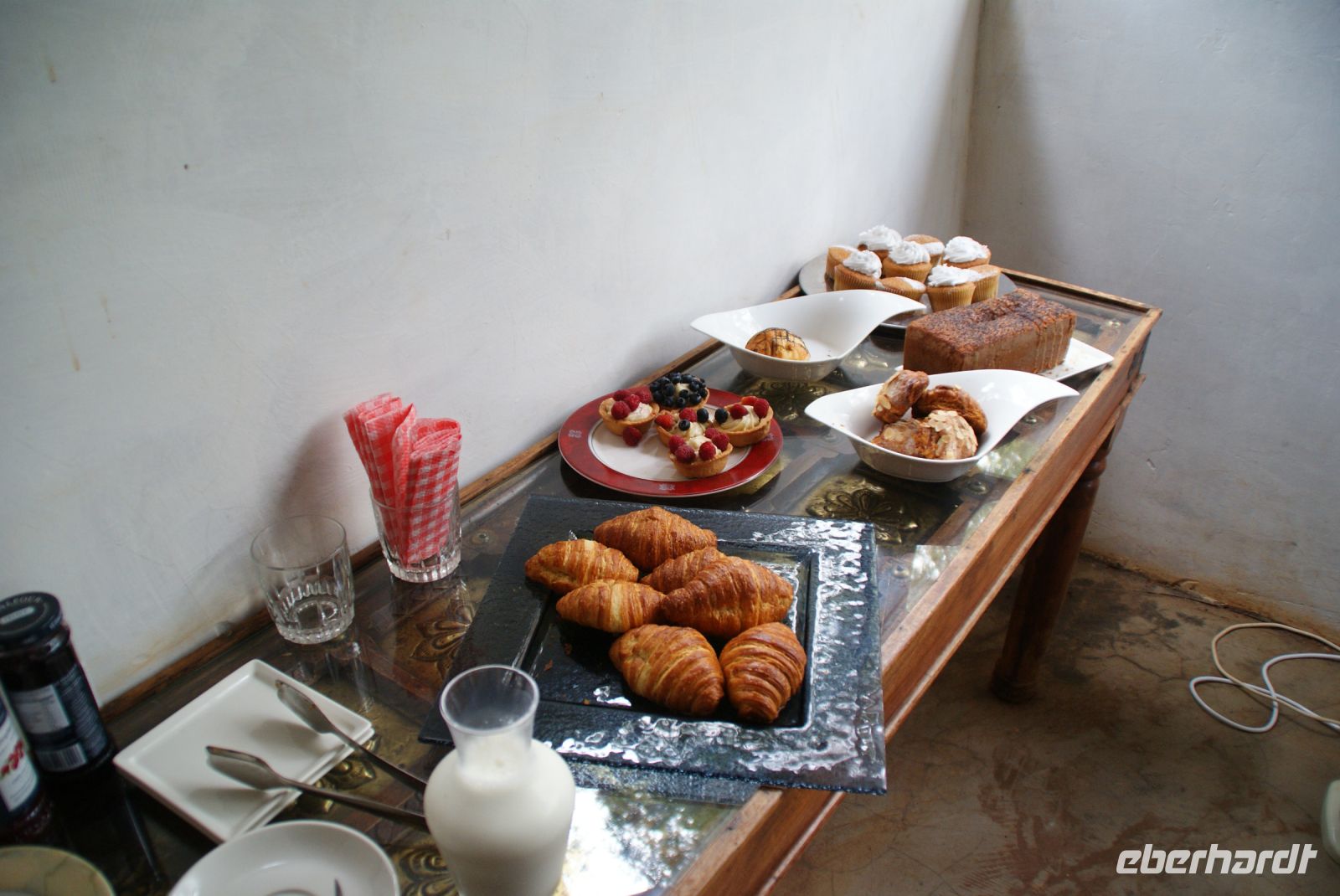 Nach einer erholsamen Nacht treffen wir uns morgens zum ersten tollen Frühstück am Buffet. Bestens gestärkt starten wir bald darauf mit unserem Fahrer und Guide Caleb und unserem Jeep „Becky“. Nachdem alles Gepäck verteilt ist (eine Meisterleistung für Caleb), wir alle unsere Plätze eingenommen und die ersten Geschenke erhalten haben (hochwertige Thermoflaschen, die täglich mit bereitgestelltem Wasser befüllt werden können, sowie ein schöner Safarihut), geht es los und wir verlassen Nairobi. So leicht wie es klingt, geht es jedoch nicht, denn Montagmorgen-Rush Hour und viele Kenianer auf dem Weg zur Arbeit, quälen wir uns erst mal durch den Verkehr. Bestaunen die unzähligen Menschen, die zu Fuß oder in Matatus (Kleinbusse) unterwegs sind und nicht zuletzt schon jetzt über die Fahrkünste unseres Guides Caleb, der uns seelenruhig durch Nairobi fährt. Irgendwann ist es vollbracht und wir erreichen eine privat geführte Kaffeefarm. Hier werden wir von Besitzerin Jane herzlich empfangen und über das Gelände geführt. Sie berichtet, dass sich die Farm seit 50 Jahren im Familienbesitz befindet und hier beinahe nur Frauen einen Broterwerb gefunden haben. Auf dem 35 ha großen Areal befinden sich unendlich viele Kaffeesträucher der Sorte Arabica, die hier im Hochland angebaut wird. Die Arbeit der Pflückerinnen bestaunend, gewinnen wir einen ersten Eindruck, wie mühsam sich der Prozess der Kaffeegewinnung darstellt. Jane erklärt, dass von einem Kaffeestrauch gerade mal zwei Kg Kaffee gewonnen werden können, womit sie insgesamt 12,00 € verdienen. Der Haupterlös fällt an die, die den Kaffee auf Auktionen erworben haben, weiterverarbeiten oder uns final die Tasse Kaffee verkaufen. Wir sind sehr beeindruckt von Janes Engagement und Energie, mit der sie uns über Ihr Schaffen berichtet und was sie noch erreichen will. Abschließend sind wir zu Kaffee und süßen Köstlichkeiten geladen, die wir noch in Ruhe genießen und unseren Besuch hier abschließen. Weiter geht die Reise (Safari auf Suaheli) Richtung Norden zur Rhino Lodge, wo wir die nächsten beiden Nächte verbringen werden. Unterwegs gibt es viel zu bestaunen, die verschiedenen Regionen, wo viele Früchte wie Mangos, Papayas, Ananas oder Bananen angebaut und entlang unserer Strecke verkauft werden. Nach einem gemütlichen Mittagessen in der Lodge dürfen wir am Nachmittag entspannen, denn morgen früh geht es schon zeitig los, damit wir möglichst viel vom Solo Reservat und den dort ansässigen Nashörnern sehen können. Am Abend nach kurzem Stromausfall genießen wir unser Abendbuffet mit netten Gesprächen am Tisch. Zurück auf den Zimmern sind in den Betten bereits Wärmflaschen eingesetzt und Thermoskannen mit Kaffee/Tee stehen bereit- so lässt es sich gut aushalten hier im Hochland in Kenia, wo es erstaunlicherweise sehr frisch ist. Lala salama-gute Nacht von uns.