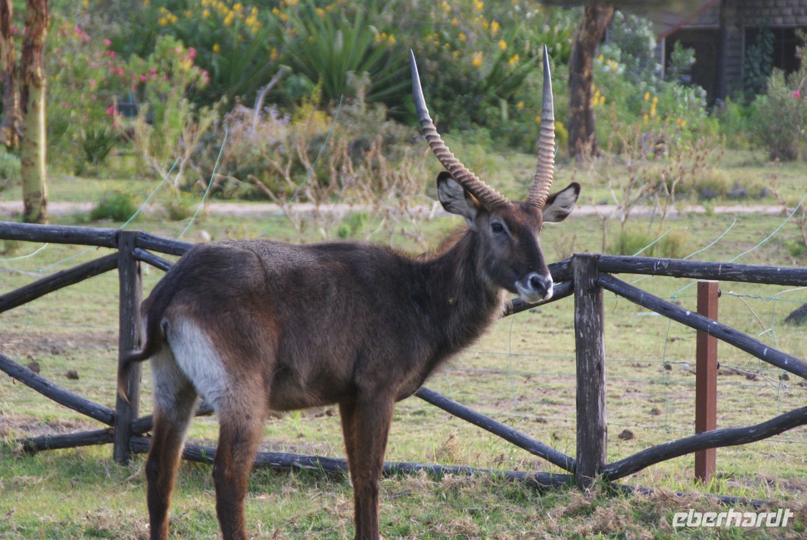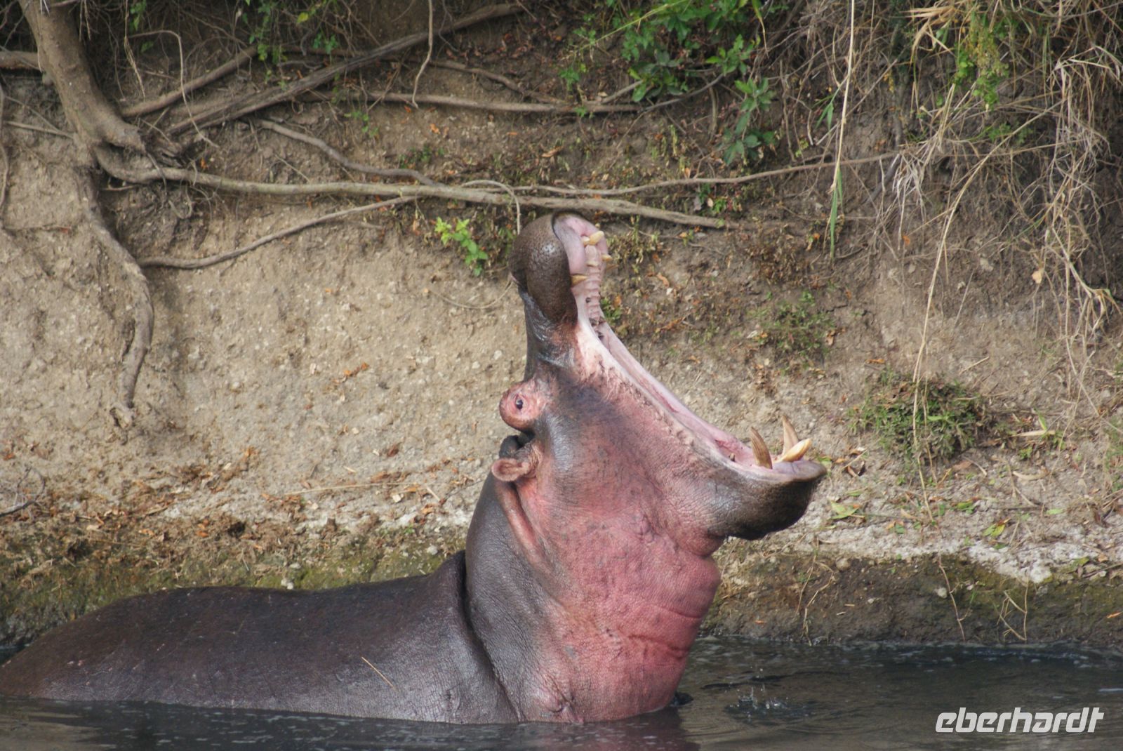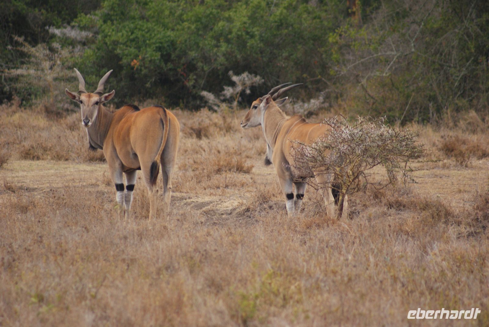 Unser letzter Safaritag in Kenia bricht heran. Heute heißt es nochmals alle Eindrücke genießen, aufsaugen und für immer in Erinnerung behalten… Schnell werden wir belohnt, nochmals sehen wir im Laufe des gesamten Tages unzählige Elefanten, ganze Herden, die unseren Weg passieren, Löwen, die sich ein Scharmützel mit Elefanten liefern, sehr seltene Hunter Antilopen, die selbst unseren Guide entzücken, Riesentrappen, einen Uhu im Baum, Giraffenhalsantilopen mit Jungtieren, und Elefanten, Elefanten, Elefanten. Wir besuchen die Lugard-Wasserfälle, bei denen wir uns die Beine vertreten und dem Naturschauspiel beiwohnen, am Crododil Point halten wir Ausschau nach Krokodilen-finden stattdessen Hippos vor, auch gut! Wir steuern am Nachmittag einen Campingplatz an, wo wir nochmals auf die bestens gelungene Reise anstoßen, unseren Guide und Fahrer Caleb hochleben lassen, alles umrahmt von Elefanten und vielen Pavianen, die uns neugierig beobachten. Ein schöner Abschlusstag einer wunderbaren Reise durch ein vielseitiges und abwechslungsreiches Kenia. Die unvergessliche Landschaft, die verschiedenen Nationalparks und Schutzgebiete mit ihren besonderen Tieren-wir werden diese sicher auf ewig in Erinnerung behalten. Abends greifen wir ein letztes Mal am tollen Buffet zu, während sämtliche Köche und Kellner erneut ein Geburtstagsständchen anstimmen und durch das Lokal tanzen...einfach herrlich. Auch die Fröhlichkeit der Menschen hier werden wir bald vermissen.