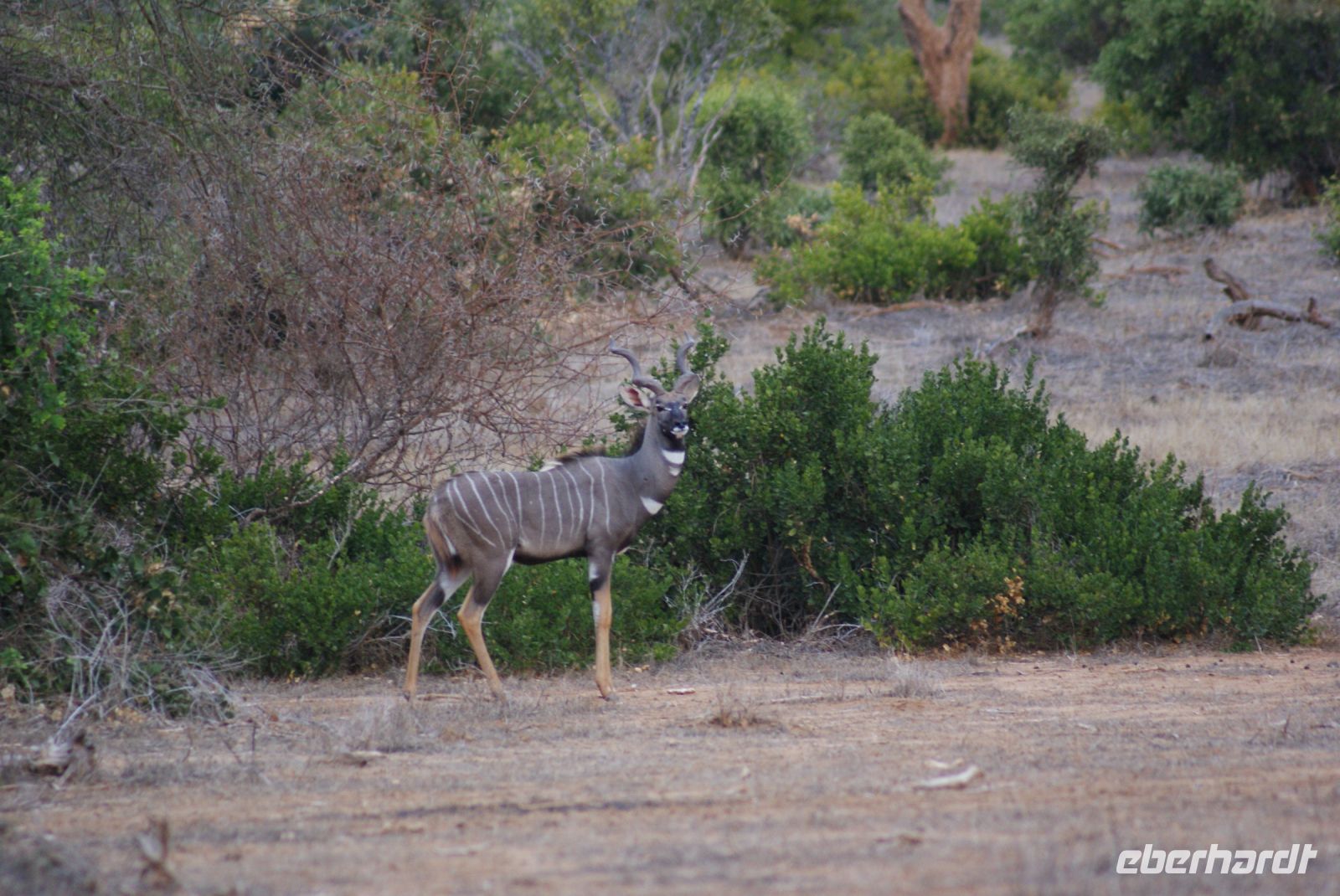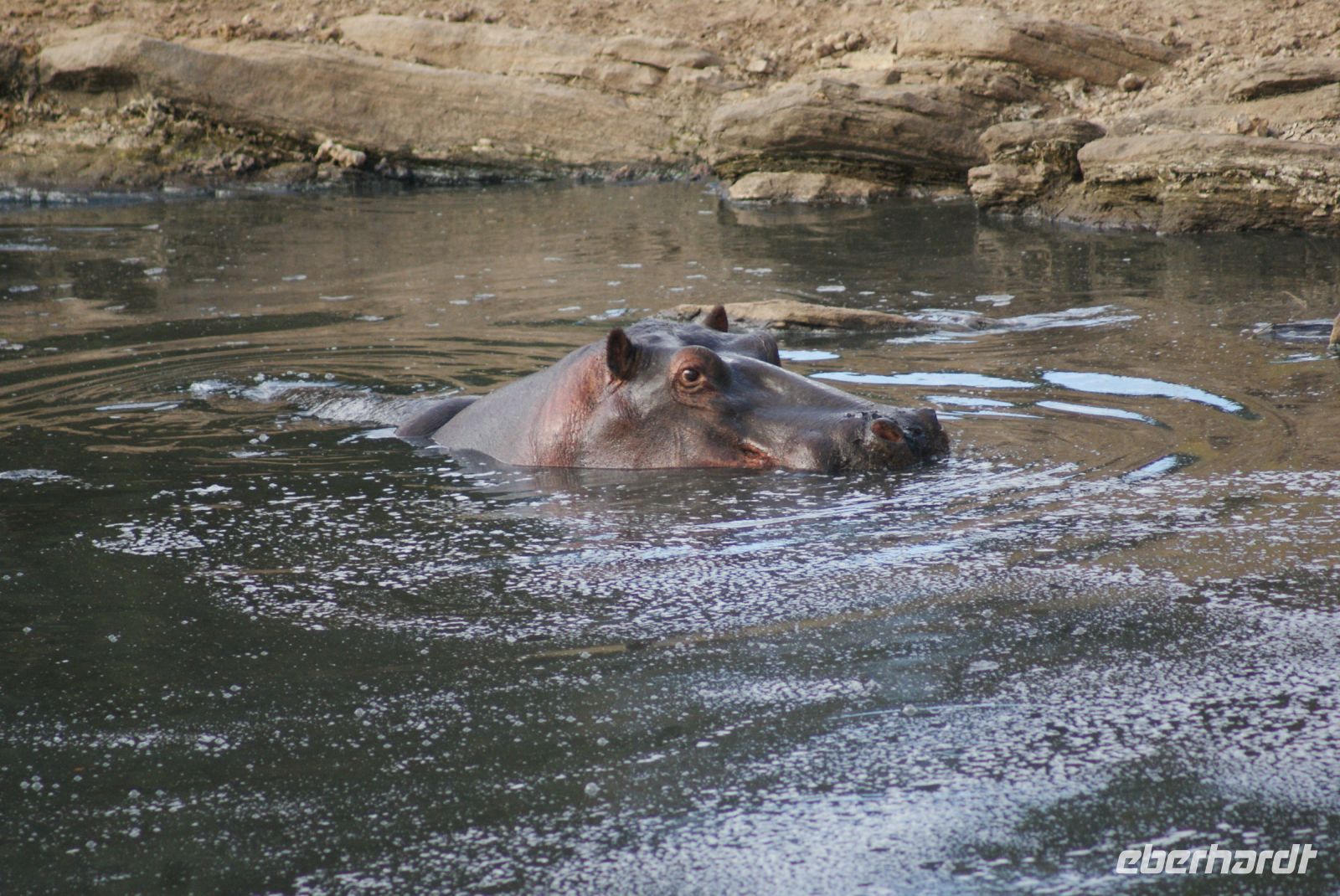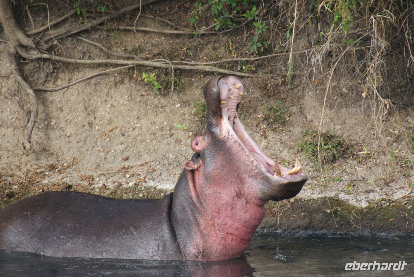 Unser letzter Safaritag in Kenia bricht heran. Heute heißt es nochmals alle Eindrücke genießen, aufsaugen und für immer in Erinnerung behalten… Schnell werden wir belohnt, nochmals sehen wir im Laufe des gesamten Tages unzählige Elefanten, ganze Herden, die unseren Weg passieren, Löwen, die sich ein Scharmützel mit Elefanten liefern, sehr seltene Hunter Antilopen, die selbst unseren Guide entzücken, Riesentrappen, einen Uhu im Baum, Giraffenhalsantilopen mit Jungtieren, und Elefanten, Elefanten, Elefanten. Wir besuchen die Lugard-Wasserfälle, bei denen wir uns die Beine vertreten und dem Naturschauspiel beiwohnen, am Crododil Point halten wir Ausschau nach Krokodilen-finden stattdessen Hippos vor, auch gut! Wir steuern am Nachmittag einen Campingplatz an, wo wir nochmals auf die bestens gelungene Reise anstoßen, unseren Guide und Fahrer Caleb hochleben lassen, alles umrahmt von Elefanten und vielen Pavianen, die uns neugierig beobachten. Ein schöner Abschlusstag einer wunderbaren Reise durch ein vielseitiges und abwechslungsreiches Kenia. Die unvergessliche Landschaft, die verschiedenen Nationalparks und Schutzgebiete mit ihren besonderen Tieren-wir werden diese sicher auf ewig in Erinnerung behalten. Abends greifen wir ein letztes Mal am tollen Buffet zu, während sämtliche Köche und Kellner erneut ein Geburtstagsständchen anstimmen und durch das Lokal tanzen...einfach herrlich. Auch die Fröhlichkeit der Menschen hier werden wir bald vermissen.