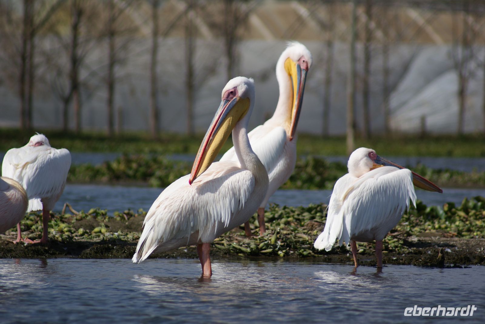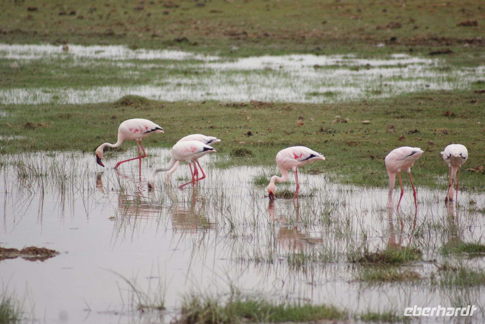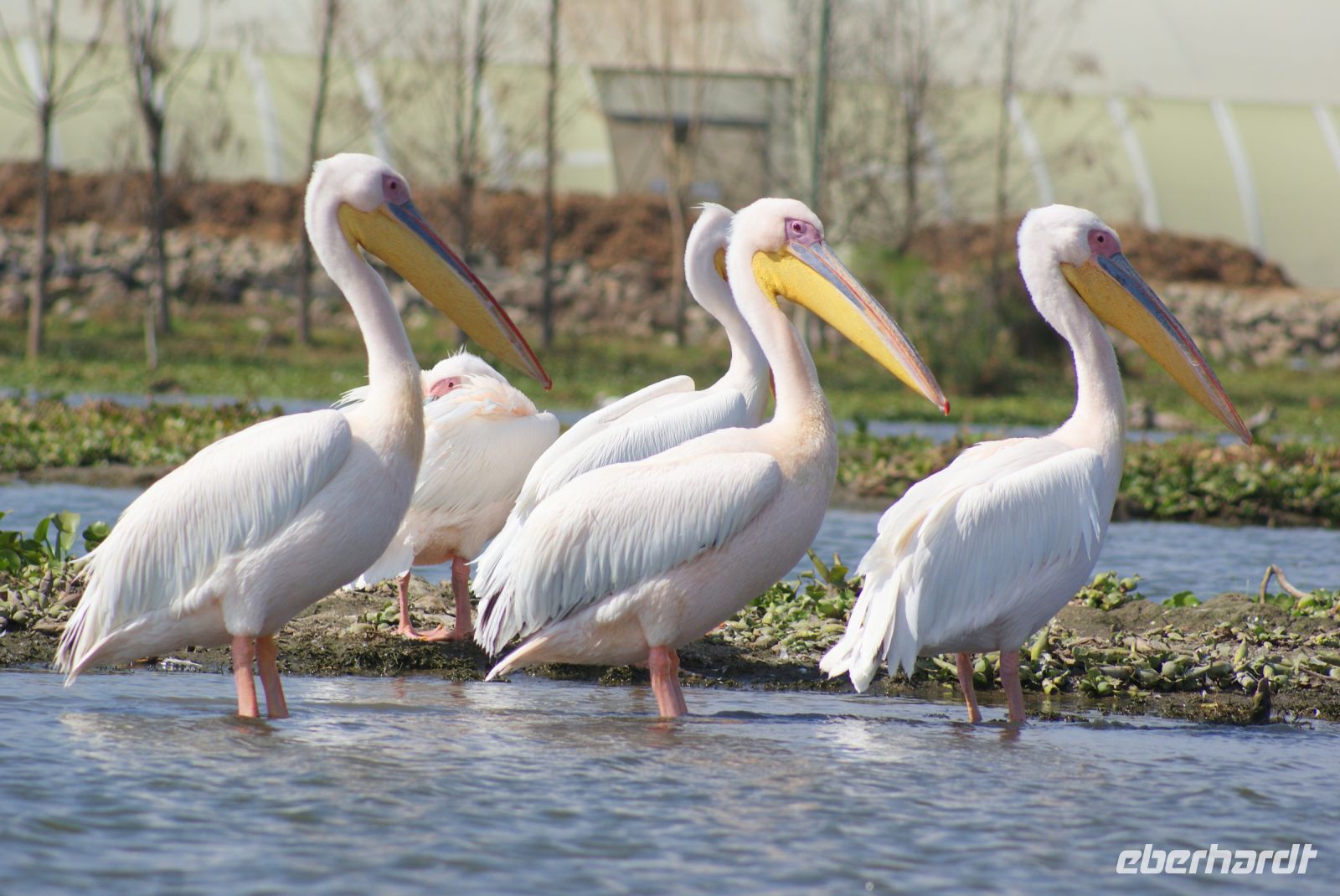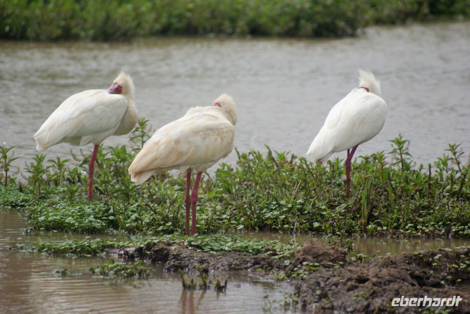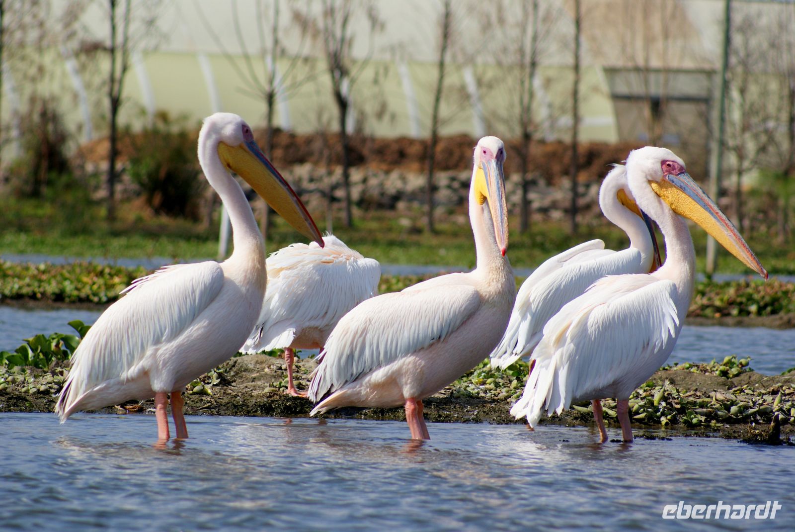 Nach einer geruhsamen Nacht und Frühstück verlassen wir die Region des Aberdere Nationalparks und ziehen weiter Richtung Lake Nakuru unserem heutigen Tagesziel. Wir fahren nun durch die Region der Kikuju, eine der vielen Volksgruppen Kenias. Hügelige Landschaft, Marktstände mit vielen Wassermelonen und roten Zwiebeln, die hier angebaut werden, kleinere Orte mit jeglichen Besonderheiten ziehen an uns vorbei, bis wir schließlich den Äquator passieren. Hier erfolgt ein Stopp am berühmten Äquatorschild, was natürlich nicht fehlen darf. So entstehen schöne Aufnahmen, ein erster Kampf mit geschäftstüchtigen Händlern und der bekannten Wasser-Zeremonie. Wie unterschiedlich sich der Wasserstrudel jeweils auf der Nord-und Südkugel der Erde verhält, wird uns nun veranschaulicht. Staunend sehen wir, wie sich dieser im Norden im Uhrzeigersinn und im Süden gegen den Uhrzeigersinn dreht. Genau auf dem Äquator dreht sich gar nichts. Sehr imposant, wie auch immer das in diesen kurzen Abständen hier funktioniert. Abschließend erhalten wir noch ein schönes Zertifikat, dass wir am Äquator waren und können uns dieses gegen eine kleine Gebühr ausstellen und stempeln lassen. Pünktlich zur Mittagszeit erreichen wir den auf 1700 m gelegenen Nakuru See und gleichnamigen Nationalpark. Der bis zu vier Meter tiefe alkalische und abflusslose See im östlichen Ostafrikanischen Grabenbruch, dem Rift Valley, ist besonders wegen seiner zahlreichen Flamingos weltberühmt. Die zeitweise bis zu zwei Millionen Flamingos ernähren sich von Blaualgen oder Kleinkrebsen, wodurch die eigentlich weißen Tiere erst ihre rosa Farbe erhalten. Schon von weitem kann man ein rosa Band erkennen, das sich am Seeufer meist um den ganzen See herumzieht. In der wunderschönen Savora Lions Hill Game Lodge werden wir freudig erwartet. Wir beziehen zunächst unsere Zimmer und nehmen dann ein herrliches Mittagessen auf der Terrasse ein. Zunächst beobachten wir jedoch noch die Fütterung unzähliger Webervögel. Bis zur Safari am Nachmittag haben wir noch ausreichend Zeit, die Anlage zu genießen, ein kühles Bad im blauen Pool zu nehmen oder einfach die Seele baumeln zu lassen. Es geht wieder los, unsere Safari am Nakuru See entlang beginnt. Wir sehen die ersten Flamingos, Kormorane, Fischadler und plötzlich: zwei Löwinnen beinahe direkt über uns schlafend im Geäst eines Baums. Was für ein Erlebnis, sie lassen sich nicht stören, schauen gelegentlich auf und wir können in Ruhe fotografieren. Ein absolut seltenes Bild, was sich uns bietet und wir sind begeistert. Am Kopfe des bis zu 4 m tiefen Sees sehen wir eine große Gruppe Flamingos, die hier zu Hochzeiten bis zu zwei Millionen Tiere werden können, womit der Nakuru See dann wie ein rosafarbener Teppich erscheint. Wir ziehen weiter zum Mahalia Wasserfall, wo wir zunächst die Colobus (auch schwarz-weiße Stummelaffen genannt) im Baum sitzen sehen und dann mit Vinceroy/kenianischer Brandy auf den bisherigen tollen Reiseverlauf und unser gutes Gelingen in allen Facetten anstoßen. Am frühen Abend zurückkehrend haben wir heute Nachmittag folgendes gesehen: Komorane, Pelikane, sehr viele Flamingos, Fischadler, Kronenkraniche, Sekretärvögel, Nashörner, Löwen, Büffel, Impalas, Zebras, Rotschildgiraffen, Warzenschweine, etc. Abschließend genießen wir nochmals das tolle Hotelbuffet und lassen den Abend am herrlichen Lagerfeuer ausklingen.