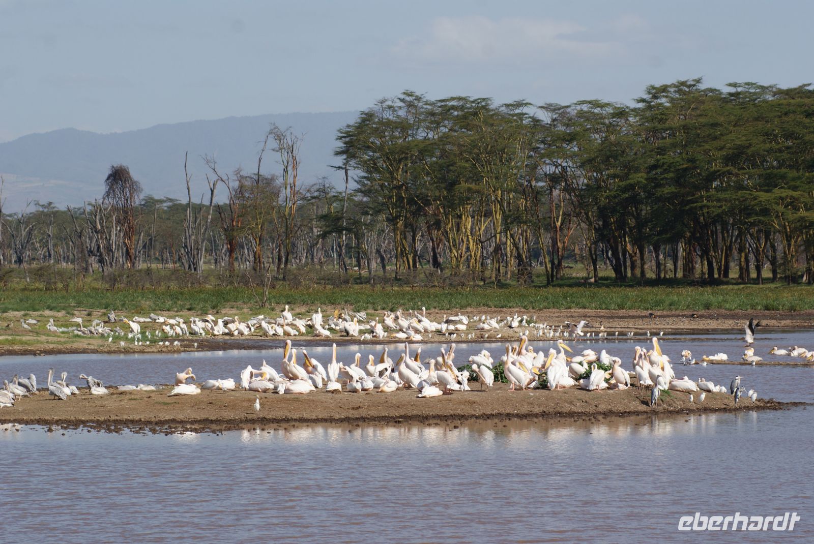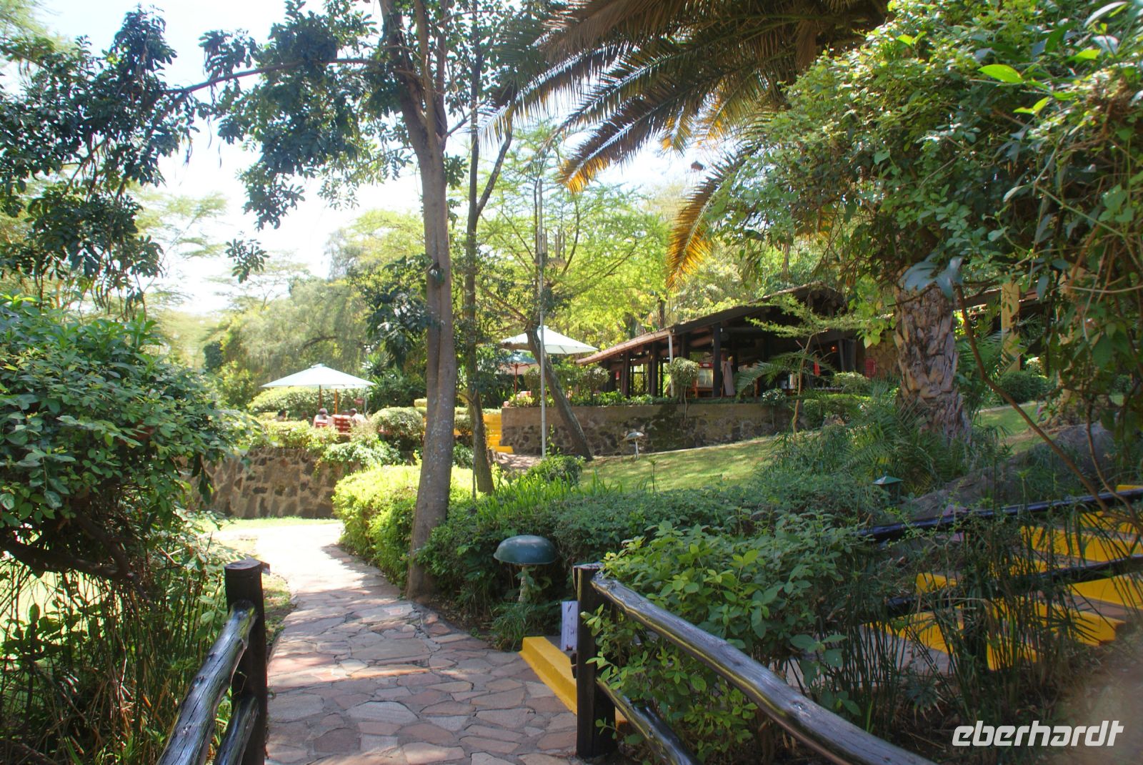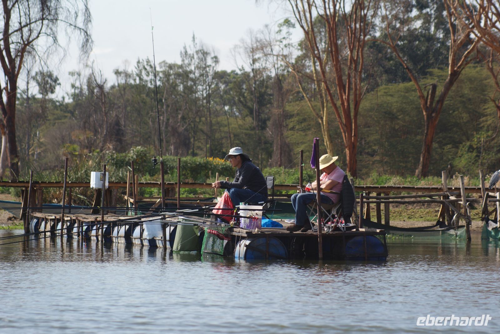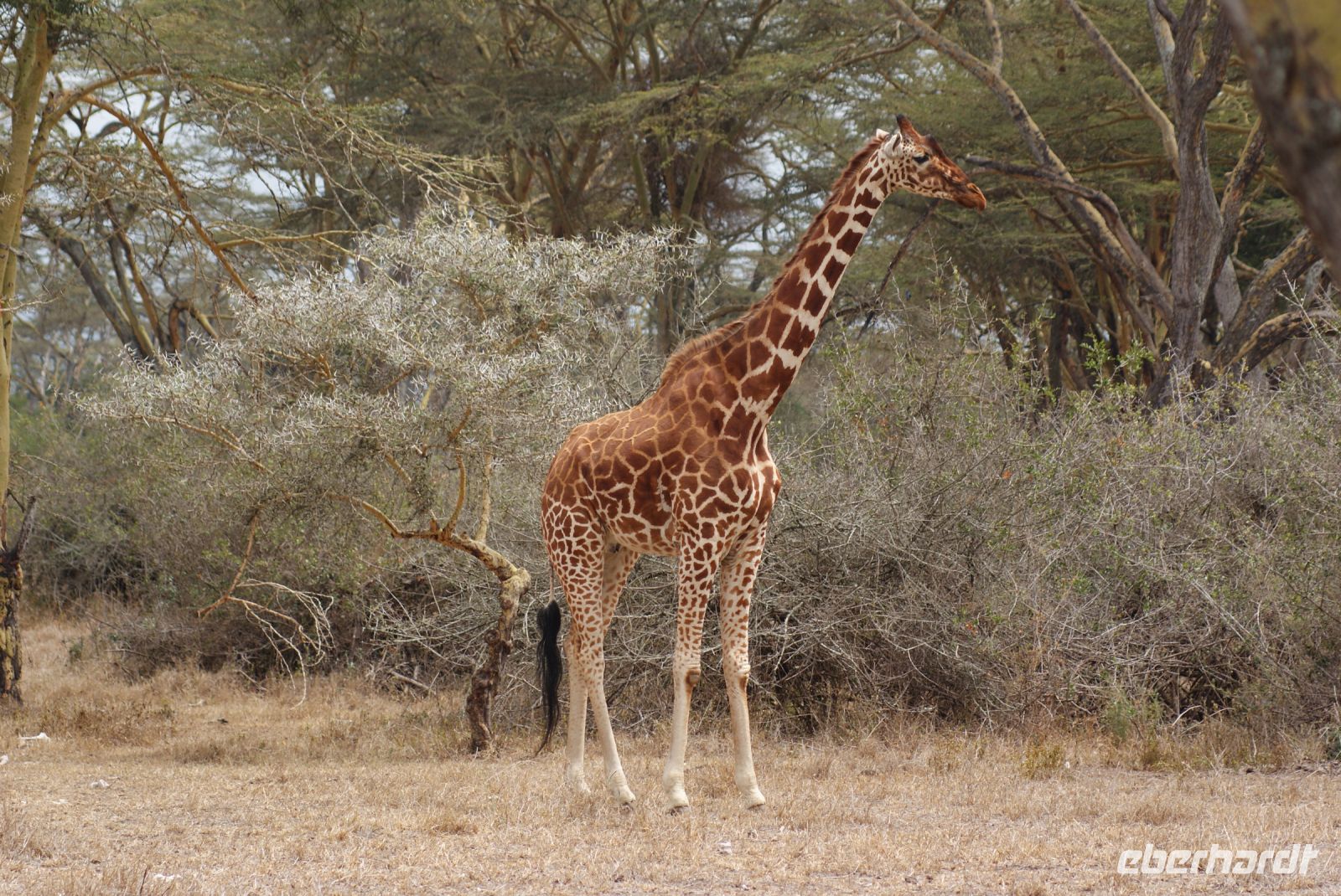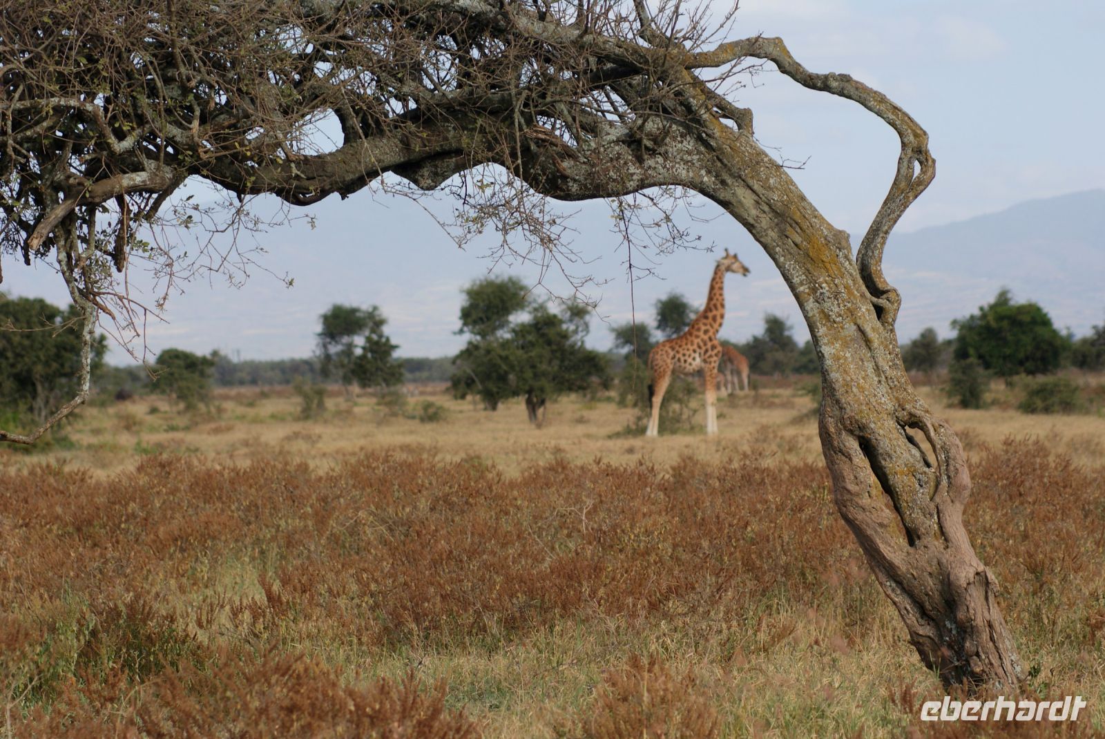 Vom reichhaltigen Buffet gestärkt, starten wir zunächst mit einer einstündigen Bootsfahrt, auf der uns unsere Bootsführer die Tiere der Umgebung näher bringen. Der Naivasha See fast 139 Km² und liegt auf 1880 m Höhe. Er ist einer der zwei höchsten Süßwasserseen Afrikas und im afrikanischen Grabenbruch gelegen. Neben vielen Vögeln und dem besonderen Goliath Reiher, sehen wir zahlreiche Hippos am Uferrand. Mit Erreichen der „Halbmondinsel“ Crescent Island, werden wir von einem örtlichen Guide in Empfang genommen, der uns nun zwei Stunden auf unserer Safari zu Fuß begleitet. Wir befinden uns hier an einem der original Drehplätze von Filmen wie „Jenseits von Afrika“, „Die Löwin Elsa“ oder „Tomb Raider“, deren Sequnenzen einst hier entstanden sind. Wir können uns unbeschwert bewegen, denn es gibt hier keine gefährlichen Tiere. So genießen wir die ruhige Atmosphäre und sind im Grunde alleine auf der knapp 40 Hektar großen Insel. Fünf Giraffen begegnen uns und sind völlig entspannt mit unserem nahen Herantreten. So entstehen herrliche Aufnahmen mit den Tieren und der schönen Kulisse. Unsere Bootsfahrer bringen uns wieder zurück zum Festland, nicht ohne vorher noch die schon wartenden Schreiseeadler zu füttern. Diese werden durch Pfeifen und werfen verschiedener Fische angelockt, was auch prompt gelingt. Zurück an Land geht es am frühen Nachmittag zurück in die Lodge zu einem späteren Mittagessen. Anschließend hat sich die Gruppe für einen freien Nachmittag entschieden, sodass jeder die Möglichkeit hat, die Anlage auf seine Art und Weise, sei es am Pool oder im Garten, mit den Tieren zu genießen. Abends finden wir uns zum Essen wieder ein und schließen unseren Aufenthalt hier am Lake Naivasha mit einem kühlen Getränk ab.