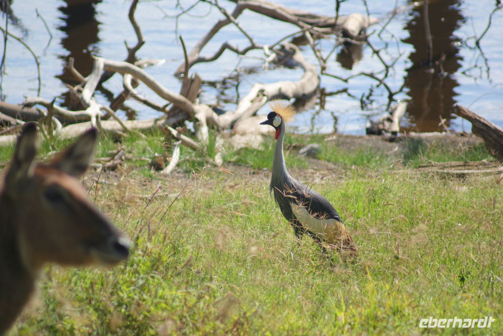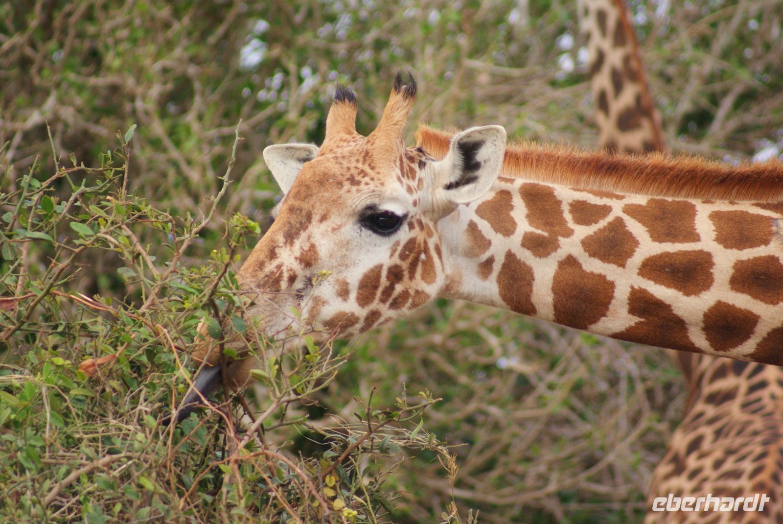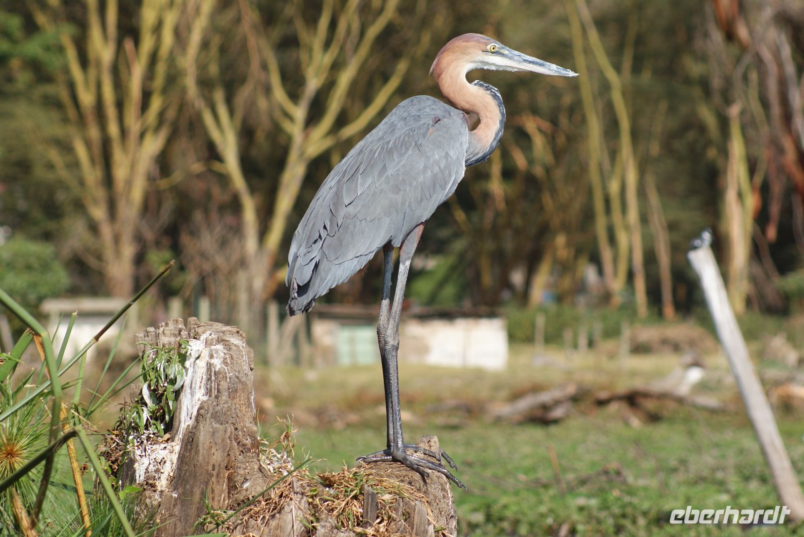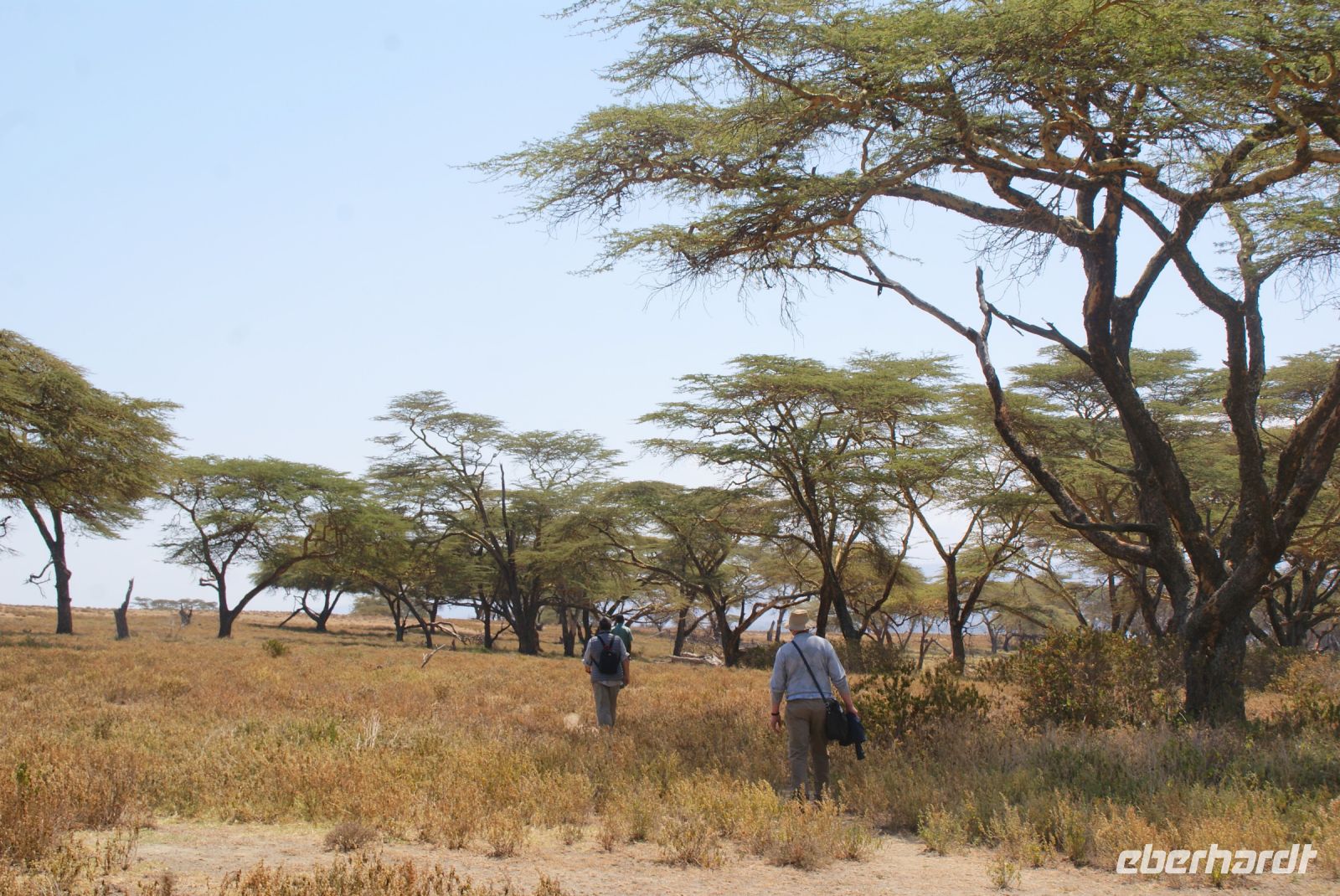 Vom reichhaltigen Buffet gestärkt, starten wir zunächst mit einer einstündigen Bootsfahrt, auf der uns unsere Bootsführer die Tiere der Umgebung näher bringen. Der Naivasha See fast 139 Km² und liegt auf 1880 m Höhe. Er ist einer der zwei höchsten Süßwasserseen Afrikas und im afrikanischen Grabenbruch gelegen. Neben vielen Vögeln und dem besonderen Goliath Reiher, sehen wir zahlreiche Hippos am Uferrand. Mit Erreichen der „Halbmondinsel“ Crescent Island, werden wir von einem örtlichen Guide in Empfang genommen, der uns nun zwei Stunden auf unserer Safari zu Fuß begleitet. Wir befinden uns hier an einem der original Drehplätze von Filmen wie „Jenseits von Afrika“, „Die Löwin Elsa“ oder „Tomb Raider“, deren Sequnenzen einst hier entstanden sind. Wir können uns unbeschwert bewegen, denn es gibt hier keine gefährlichen Tiere. So genießen wir die ruhige Atmosphäre und sind im Grunde alleine auf der knapp 40 Hektar großen Insel. Fünf Giraffen begegnen uns und sind völlig entspannt mit unserem nahen Herantreten. So entstehen herrliche Aufnahmen mit den Tieren und der schönen Kulisse. Unsere Bootsfahrer bringen uns wieder zurück zum Festland, nicht ohne vorher noch die schon wartenden Schreiseeadler zu füttern. Diese werden durch Pfeifen und werfen verschiedener Fische angelockt, was auch prompt gelingt. Zurück an Land geht es am frühen Nachmittag zurück in die Lodge zu einem späteren Mittagessen. Anschließend hat sich die Gruppe für einen freien Nachmittag entschieden, sodass jeder die Möglichkeit hat, die Anlage auf seine Art und Weise, sei es am Pool oder im Garten, mit den Tieren zu genießen. Abends finden wir uns zum Essen wieder ein und schließen unseren Aufenthalt hier am Lake Naivasha mit einem kühlen Getränk ab.