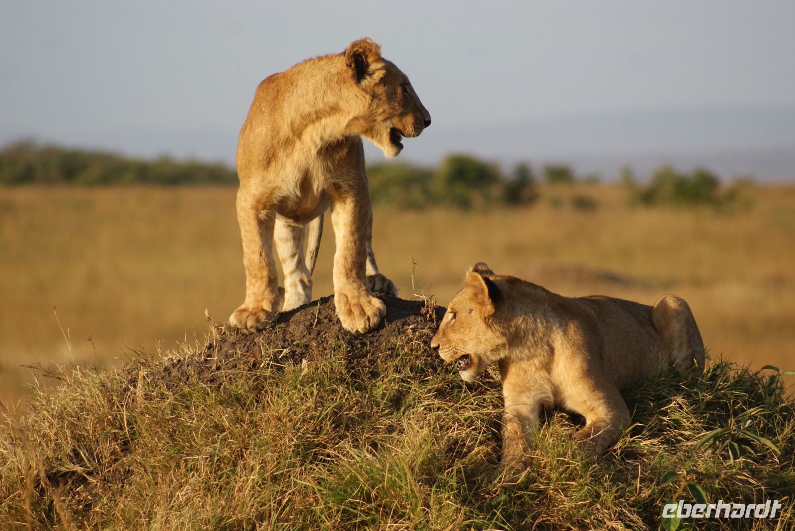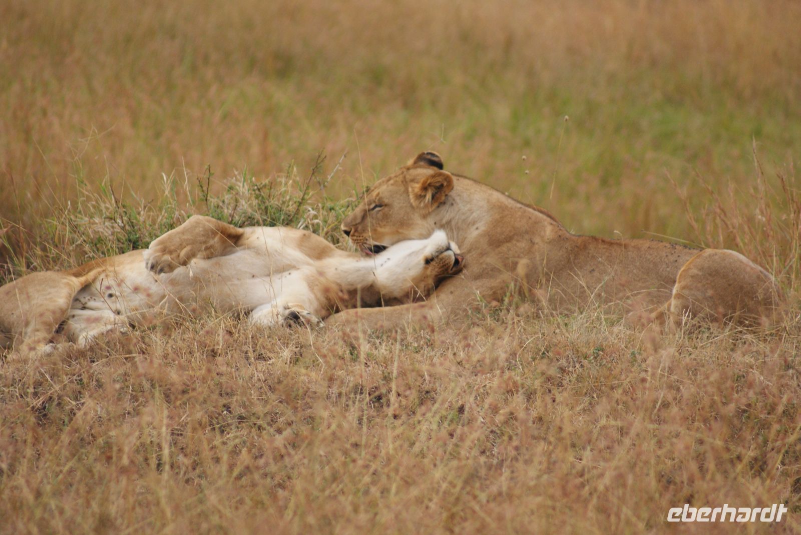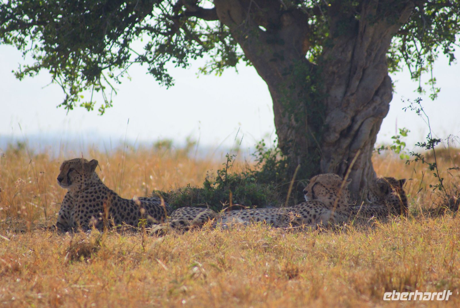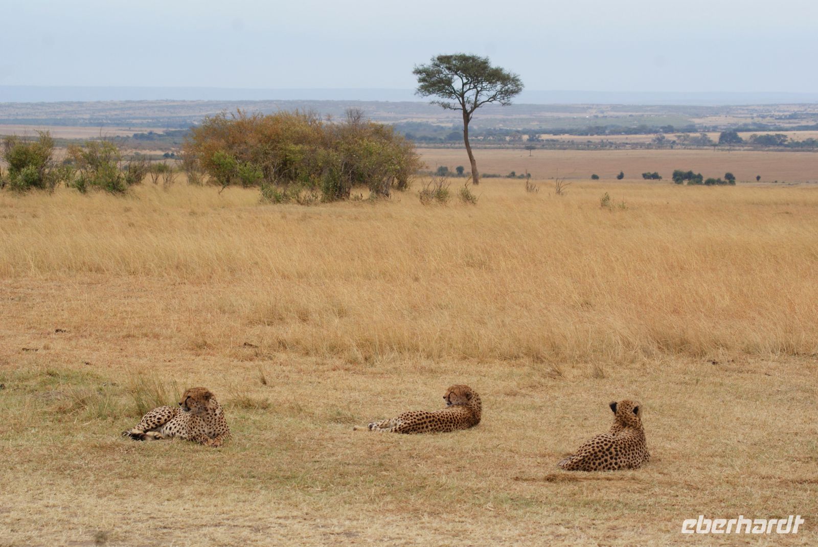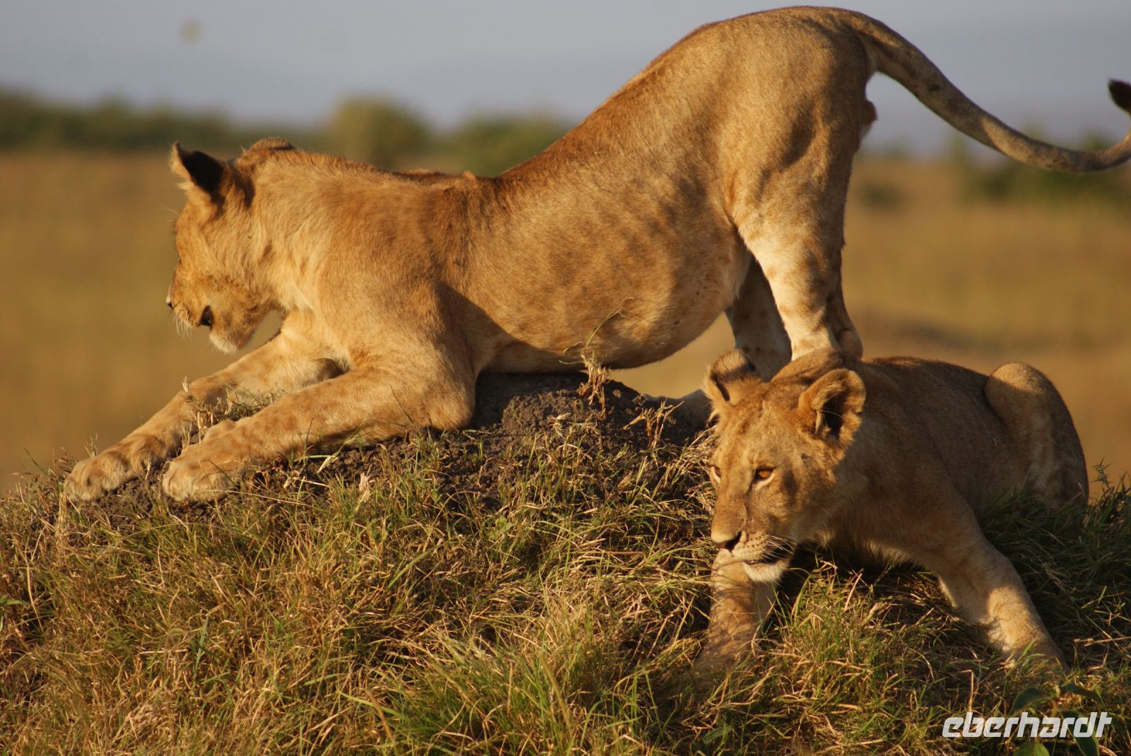 Ein letztes Frühstück in unserer tollen Lodge und wir brechen zum heutigen Tagesziel, der berühmten Masai Mara, auf. Hierzu benötigen wir ca. 5 Stunden und haben eine Strecke von etwa 240 Km vor uns. Diese erfolgt größtenteils auf einer sehr gut ausgebauten Straße, jedoch darf etwas „afrikanische Massage“ auf Schotterpiste natürlich auch nicht fehlen. Schon kurz nach der Einfahrt in das Reservat werden wir mit einem Highlight willkommen geheißen. Wir entdecken drei junge Geparden, die es sich unter einer Akazie gemütlich gemacht haben, was für ein seltener und friedlicher Anblick. Auf der Fahrt zum Camp sehen wir schon so manche Tiere entlang unserer Strecke. Pünktlich um 13.30 Uhr erreichen wir das Masai Mara Bush Camp, werden sehr freundlich von Manager Nelson erwartet und erhalten ein kurzes Briefing über die Besonderheiten der Anlage. Wir befinden uns nun mitten im Busch, keine Zäune schützen das Camp, sodass wir nach Sonnenuntergang nur noch in Begleitung von Askaris unterwegs sein dürfen. Hier leben außer uns für die kommenden 3 Tage auch Hippos, Krokodile und vielleicht auch der ein oder andere Elefant. Ein leckeres Mittagsmahl nehmen wir draußen im Garten ein und starten um 16.00 Uhr zur ersten Nachmittagssafari in der berühmten Masai Mara. Schon bald werden wir mit einem großen Highlight belohnt-wir sehen zwei Löwinnen, die in greifbarer Nähe auf einer Anhöhe liegen und ruhen. Was für eine Begegnung und wir sind den Tieren sehr nah, einfach wunderbar. Heute scheint Löwentag zu sein, denn kurz darauf kommen wir an einen Ort, wo an die 20 Löwen liegen, da jedoch das Gras recht hoch ist, sind die Tiere schlecht zu sehen. Nach weiterer kurzer Fahrt werden wir erneut fündig. Sechs Löwinnen liegend schlafend im hohen Gras, umgeben ihrer spielenden Jungen. Was für ein wunderbarer Moment, der sich uns hier bietet. So verbringen wir einen tollen ersten Nachmittag in der berühmten Masai Mara, deren Name so viel bedeutet wie „getupfte Savanne der Masai“. Diese ist 1500 km² groß und ein Teil der Serengeti. Bekannt ist diese ebenfalls für die Migration der Tiere und insbesondere der Gnuwanderung von Juli –September durch den Mara Fluss. Am frühen Abend kehren wir zu unserem Luxuscamp mit nur 12 Zelten zurück und werden von Manager Nelson erneut freundlich empfangen. Zum Abendessen unter dem Sternenhimmel werden wir von unseren Askari gebracht und es erwartet uns ein wunderbares 3-Gang Menü vom Feinsten. Zurück in unseren Zelten vernehmen wir für uns ungewohnte Geräusche der Tierwelt Kenias wie Hyäne und Hippo, die uns auf besondere Weise in den Schlaf wiegen…