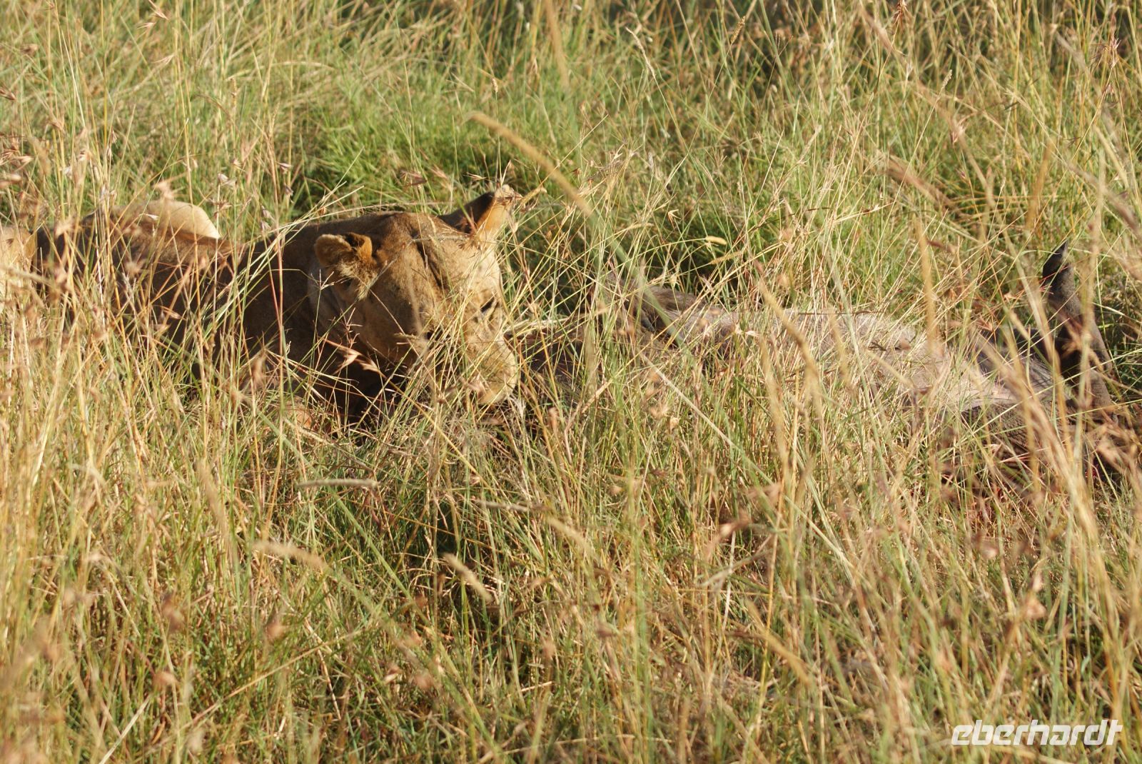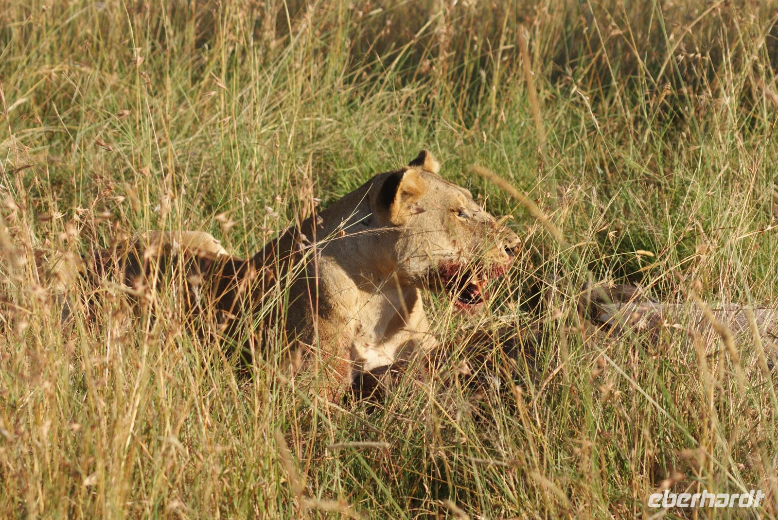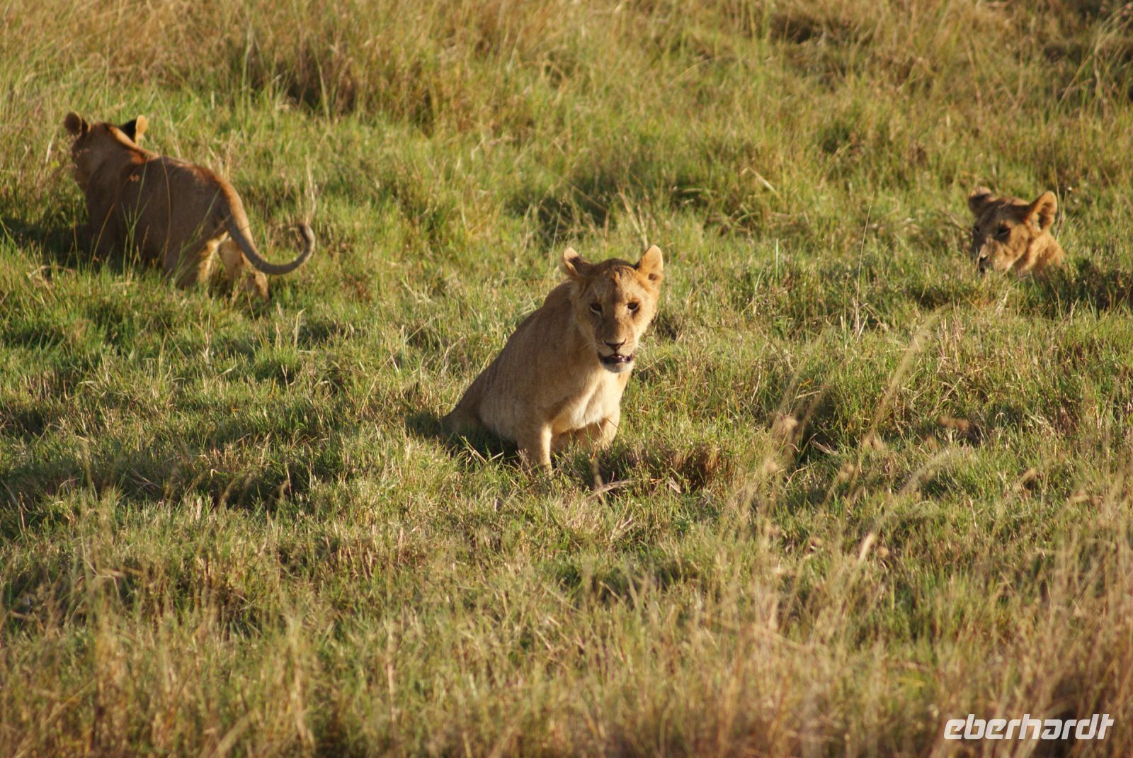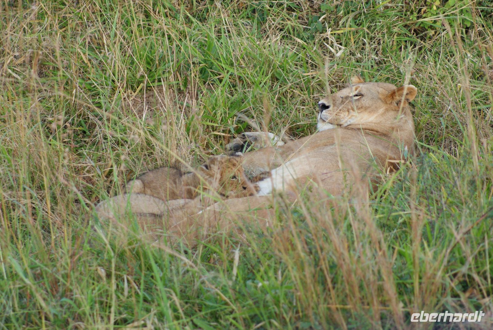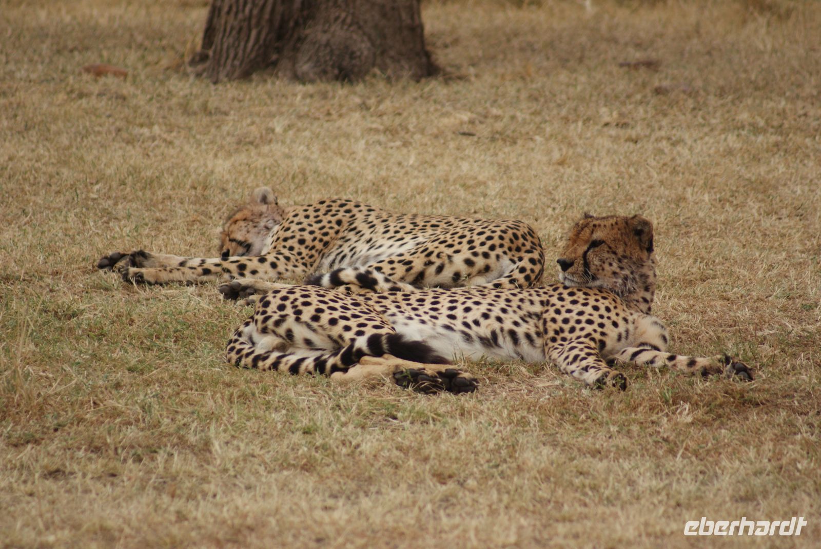 Ein letztes Frühstück in unserer tollen Lodge und wir brechen zum heutigen Tagesziel, der berühmten Masai Mara, auf. Hierzu benötigen wir ca. 5 Stunden und haben eine Strecke von etwa 240 Km vor uns. Diese erfolgt größtenteils auf einer sehr gut ausgebauten Straße, jedoch darf etwas „afrikanische Massage“ auf Schotterpiste natürlich auch nicht fehlen. Schon kurz nach der Einfahrt in das Reservat werden wir mit einem Highlight willkommen geheißen. Wir entdecken drei junge Geparden, die es sich unter einer Akazie gemütlich gemacht haben, was für ein seltener und friedlicher Anblick. Auf der Fahrt zum Camp sehen wir schon so manche Tiere entlang unserer Strecke. Pünktlich um 13.30 Uhr erreichen wir das Masai Mara Bush Camp, werden sehr freundlich von Manager Nelson erwartet und erhalten ein kurzes Briefing über die Besonderheiten der Anlage. Wir befinden uns nun mitten im Busch, keine Zäune schützen das Camp, sodass wir nach Sonnenuntergang nur noch in Begleitung von Askaris unterwegs sein dürfen. Hier leben außer uns für die kommenden 3 Tage auch Hippos, Krokodile und vielleicht auch der ein oder andere Elefant. Ein leckeres Mittagsmahl nehmen wir draußen im Garten ein und starten um 16.00 Uhr zur ersten Nachmittagssafari in der berühmten Masai Mara. Schon bald werden wir mit einem großen Highlight belohnt-wir sehen zwei Löwinnen, die in greifbarer Nähe auf einer Anhöhe liegen und ruhen. Was für eine Begegnung und wir sind den Tieren sehr nah, einfach wunderbar. Heute scheint Löwentag zu sein, denn kurz darauf kommen wir an einen Ort, wo an die 20 Löwen liegen, da jedoch das Gras recht hoch ist, sind die Tiere schlecht zu sehen. Nach weiterer kurzer Fahrt werden wir erneut fündig. Sechs Löwinnen liegend schlafend im hohen Gras, umgeben ihrer spielenden Jungen. Was für ein wunderbarer Moment, der sich uns hier bietet. So verbringen wir einen tollen ersten Nachmittag in der berühmten Masai Mara, deren Name so viel bedeutet wie „getupfte Savanne der Masai“. Diese ist 1500 km² groß und ein Teil der Serengeti. Bekannt ist diese ebenfalls für die Migration der Tiere und insbesondere der Gnuwanderung von Juli –September durch den Mara Fluss. Am frühen Abend kehren wir zu unserem Luxuscamp mit nur 12 Zelten zurück und werden von Manager Nelson erneut freundlich empfangen. Zum Abendessen unter dem Sternenhimmel werden wir von unseren Askari gebracht und es erwartet uns ein wunderbares 3-Gang Menü vom Feinsten. Zurück in unseren Zelten vernehmen wir für uns ungewohnte Geräusche der Tierwelt Kenias wie Hyäne und Hippo, die uns auf besondere Weise in den Schlaf wiegen…
