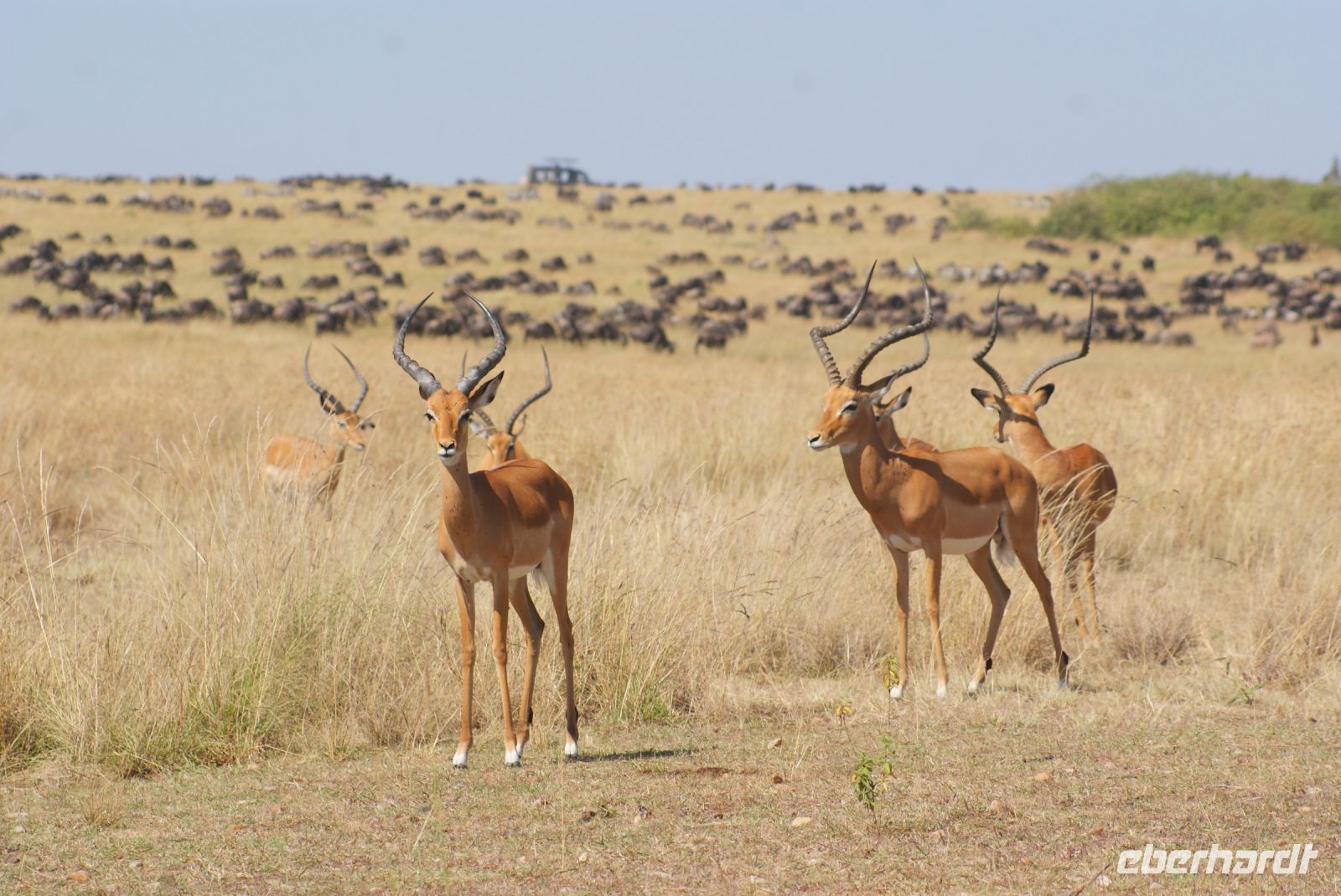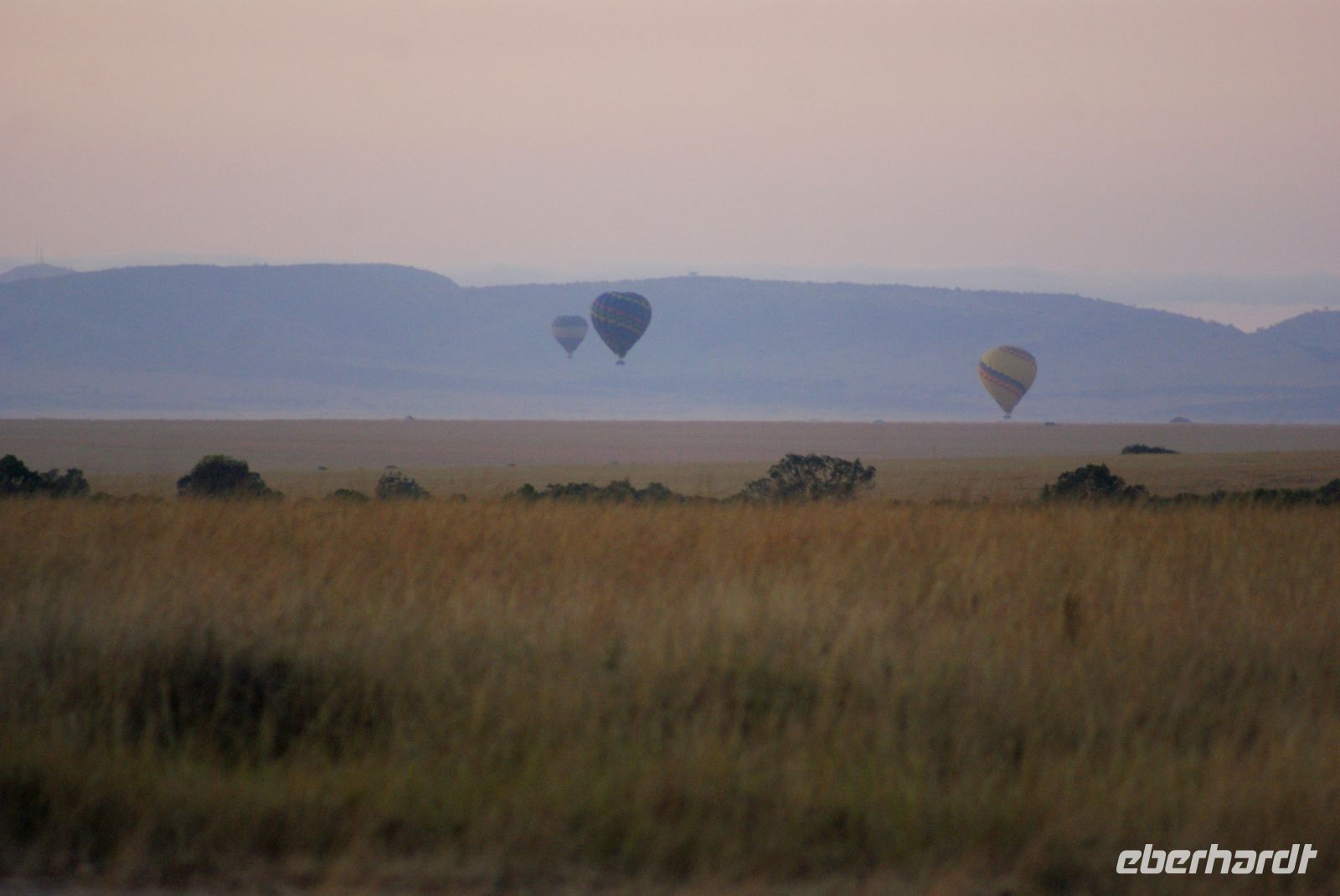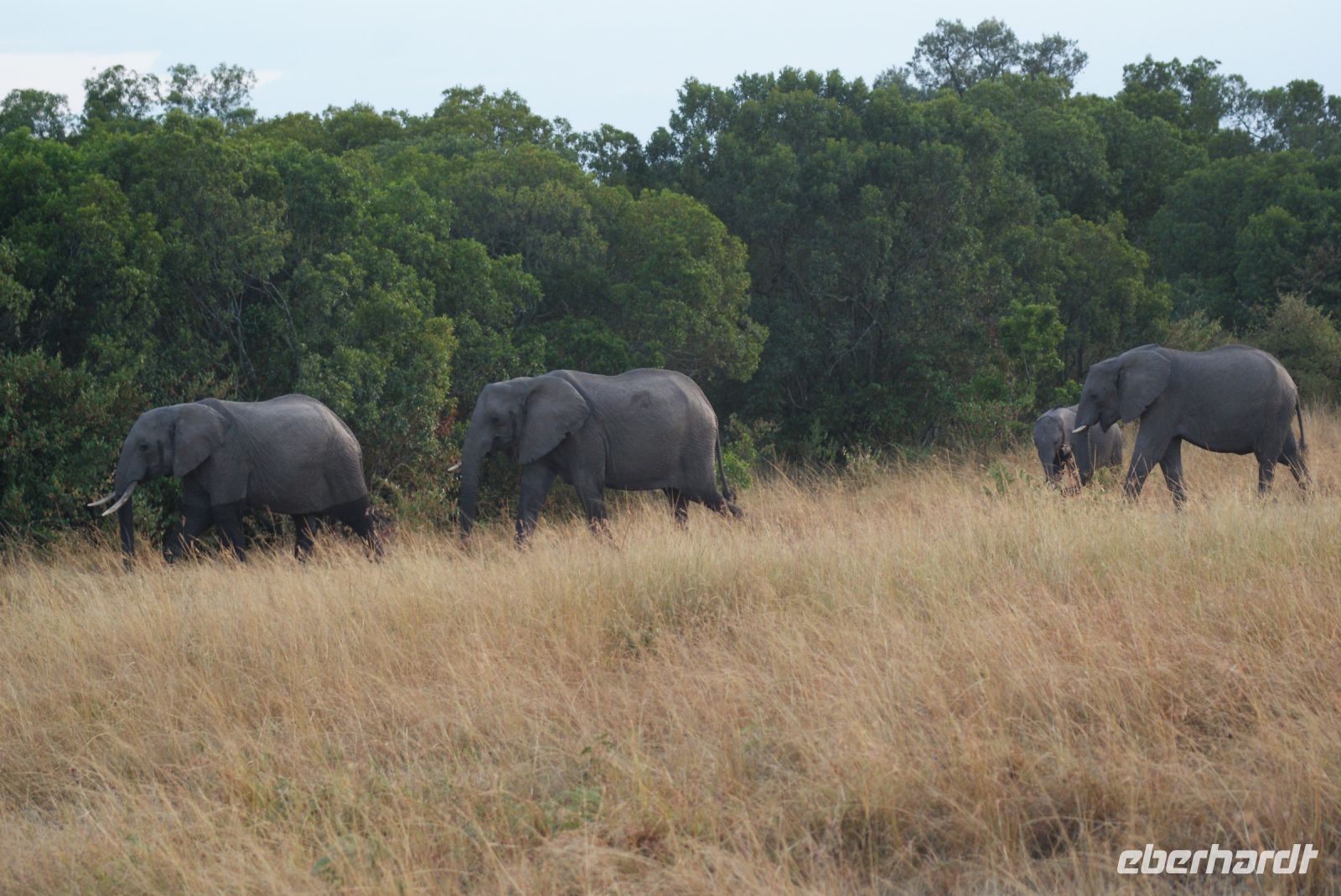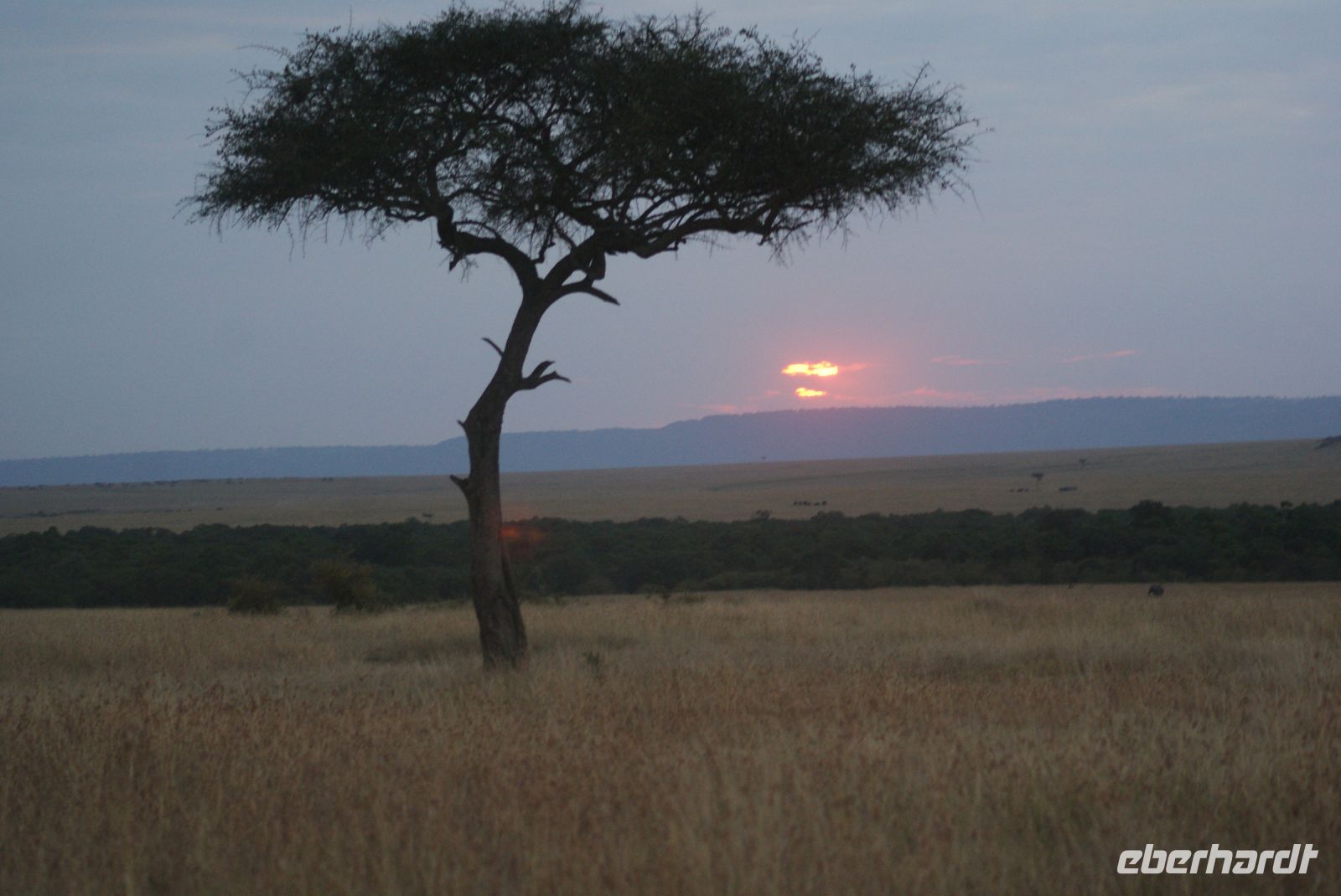 Unser Blick schweift auf den schier endlosen Horizont der Masai Mara...Die Migration der Tiere hat begonnen und tausende Gnus ziehen an uns vorbei, kreuzen den Mara Fluss. Elefantenherden begegnen uns