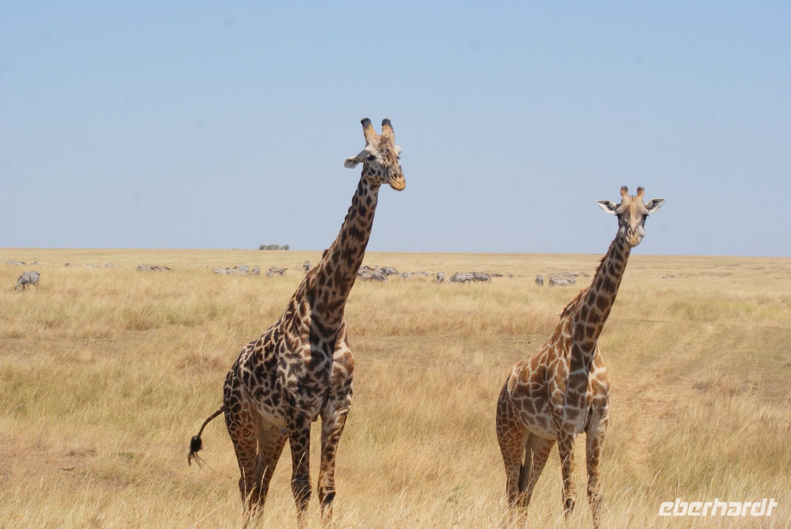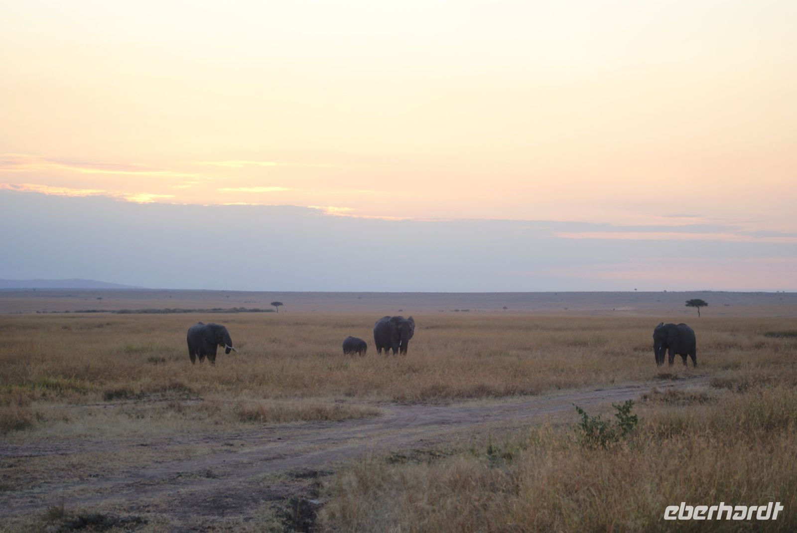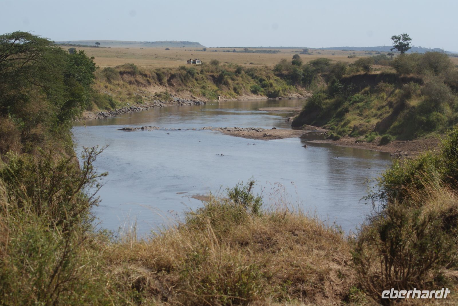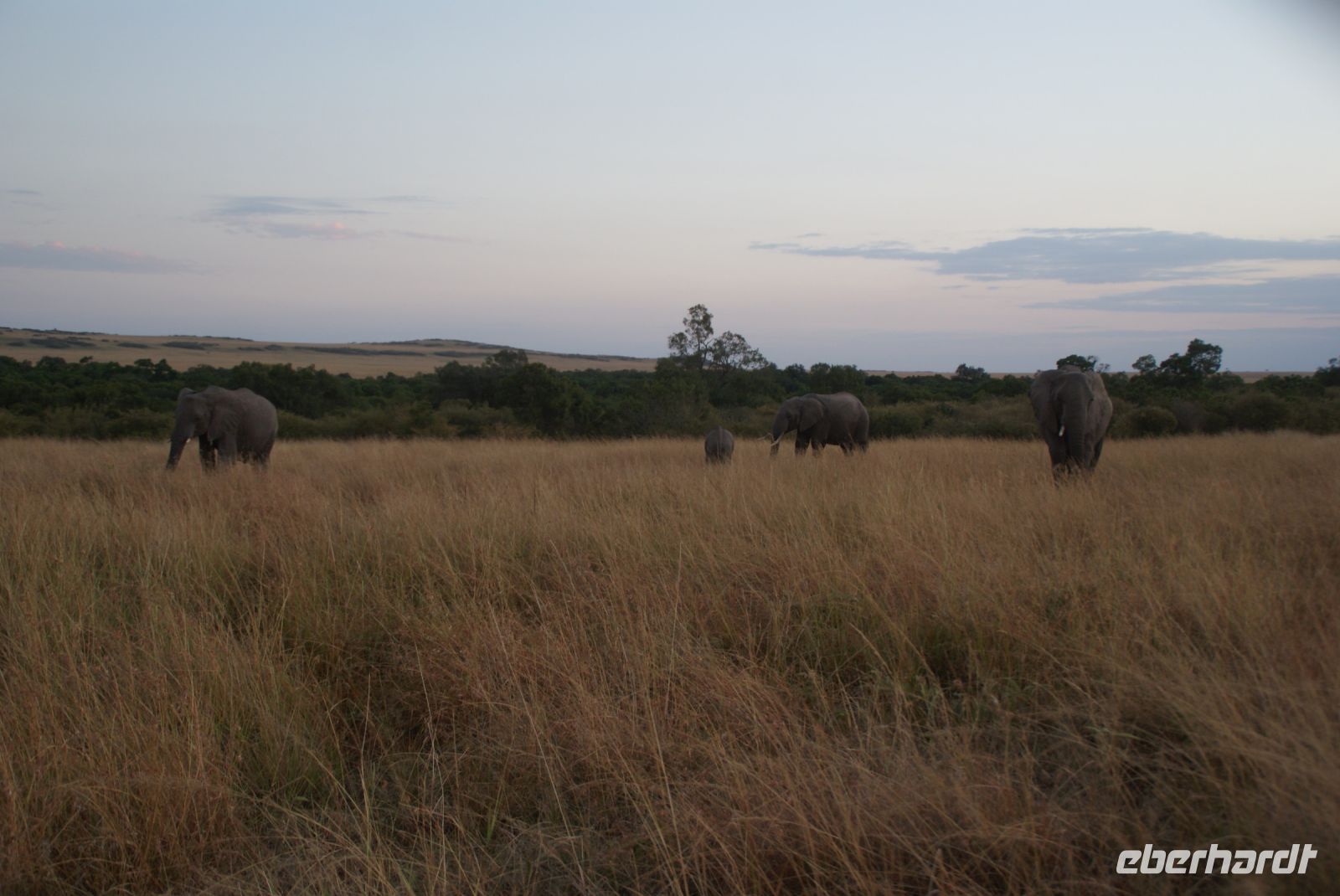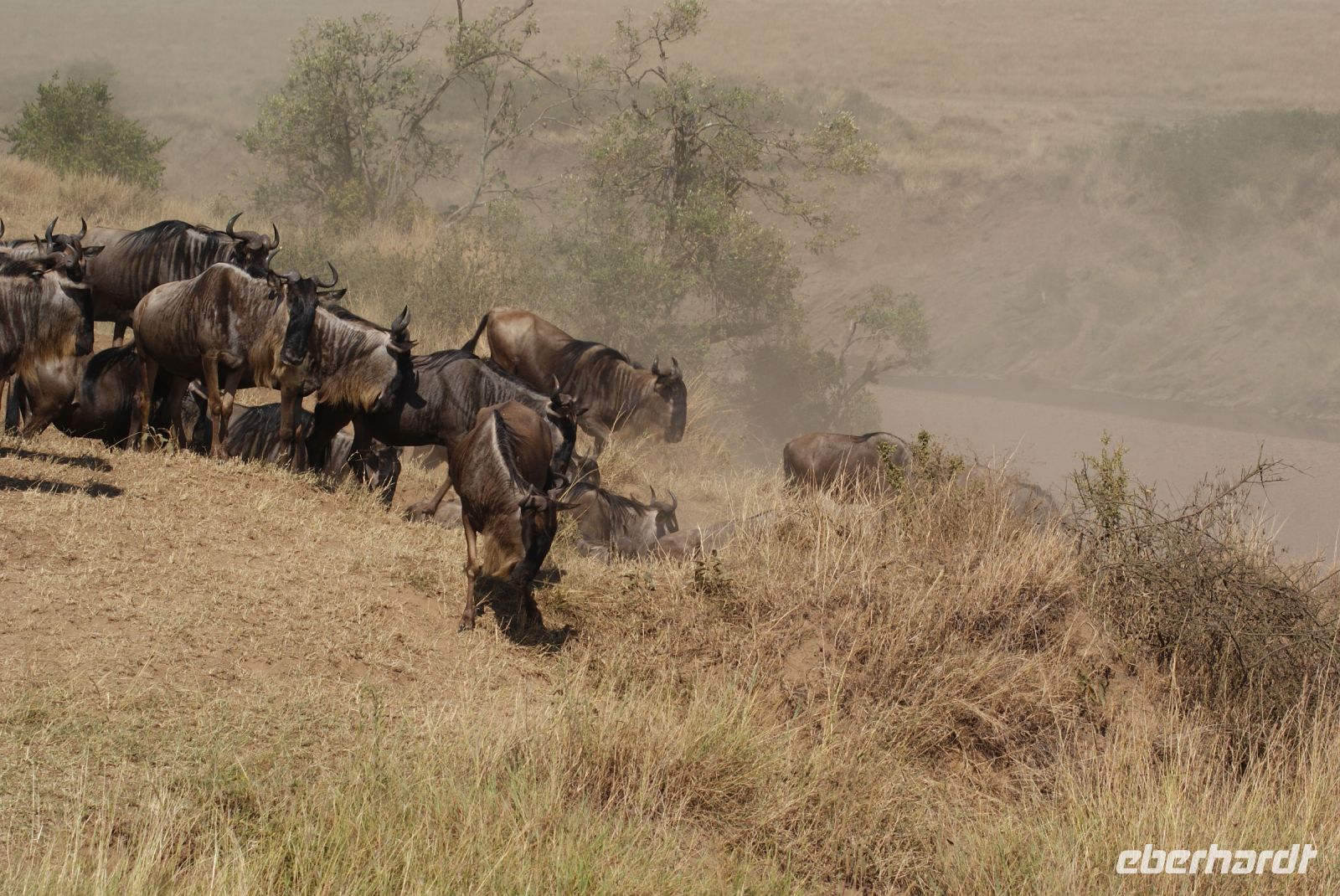 Unser Blick schweift auf den schier endlosen Horizont der Masai Mara...Die Migration der Tiere hat begonnen und tausende Gnus ziehen an uns vorbei, kreuzen den Mara Fluss. Elefantenherden begegnen uns