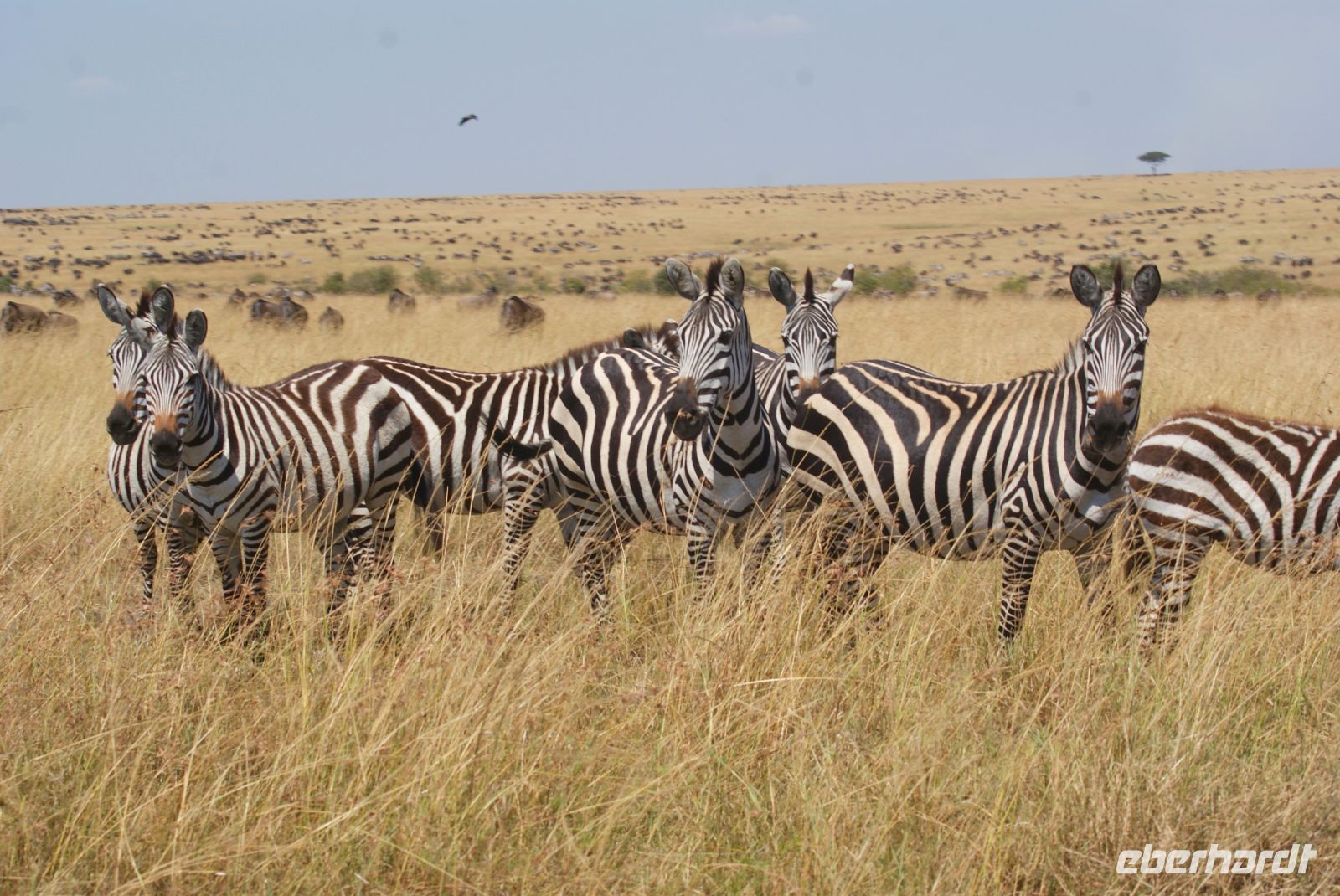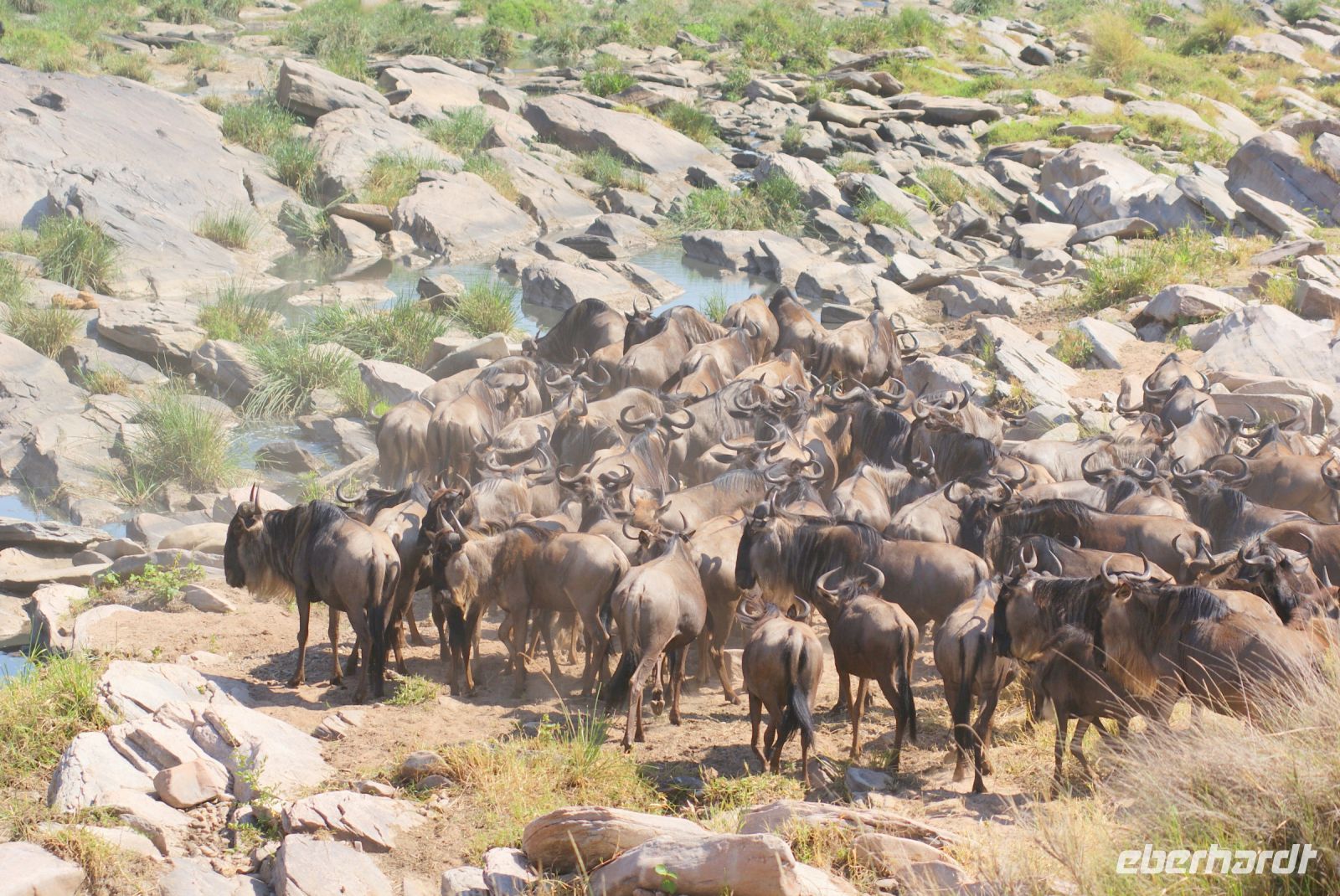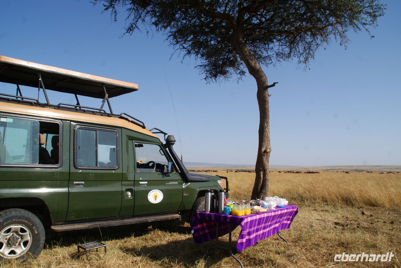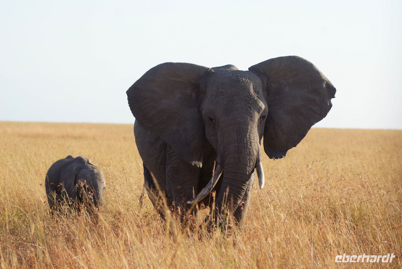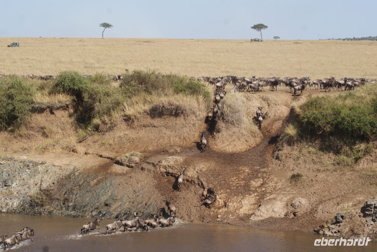 Unser Blick schweift auf den schier endlosen Horizont der Masai Mara...Die Migration der Tiere hat begonnen und tausende Gnus ziehen an uns vorbei, kreuzen den Mara Fluss. Elefantenherden begegnen uns