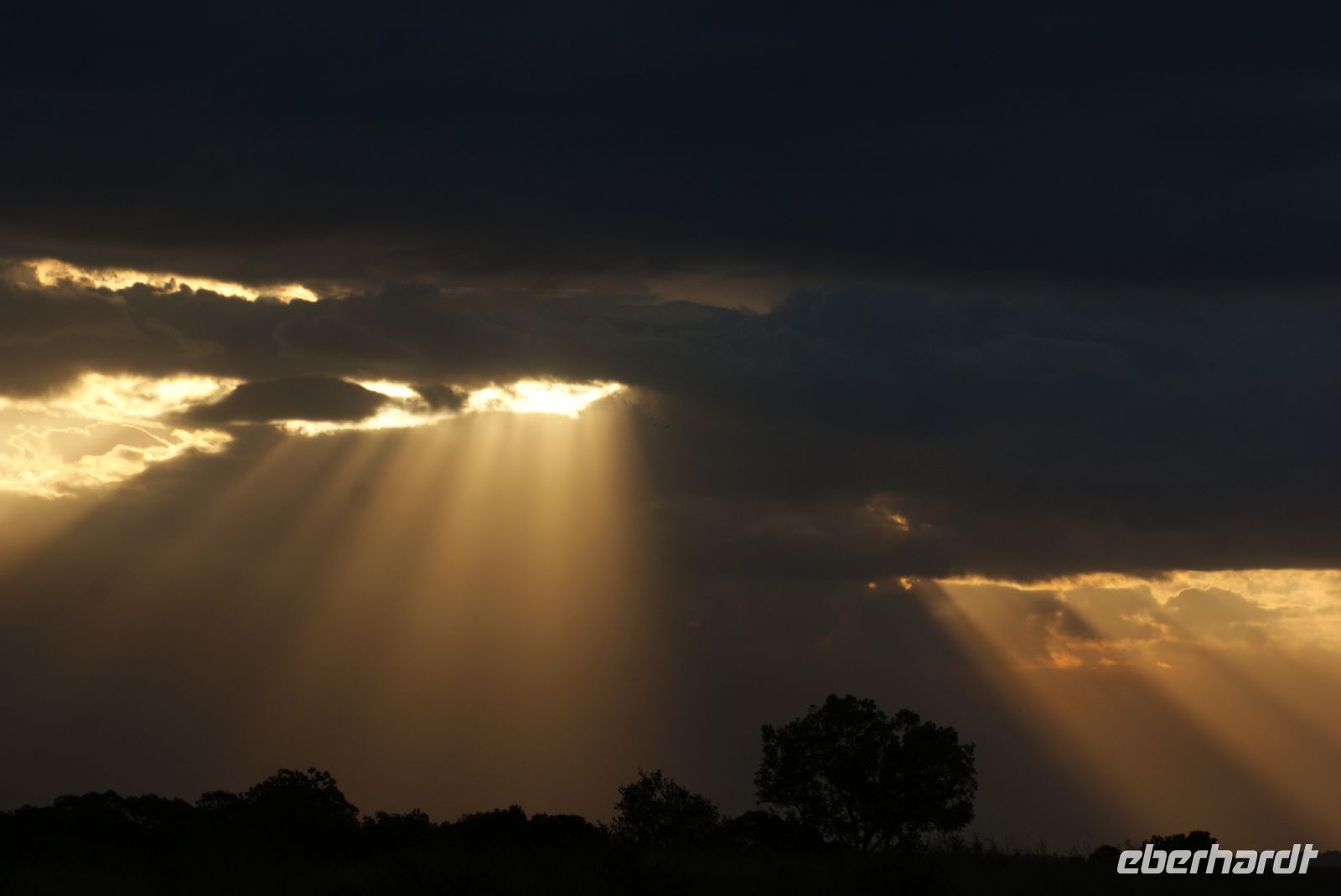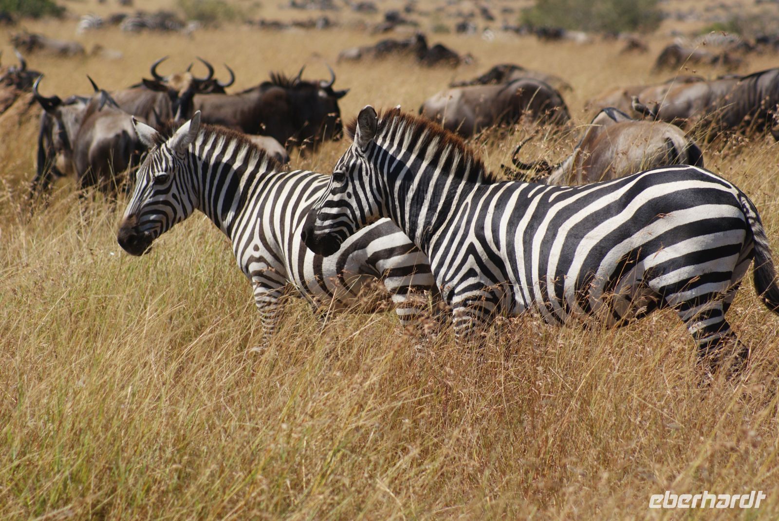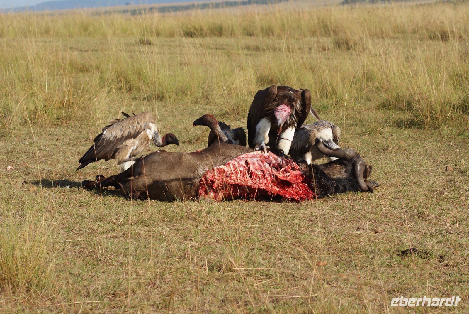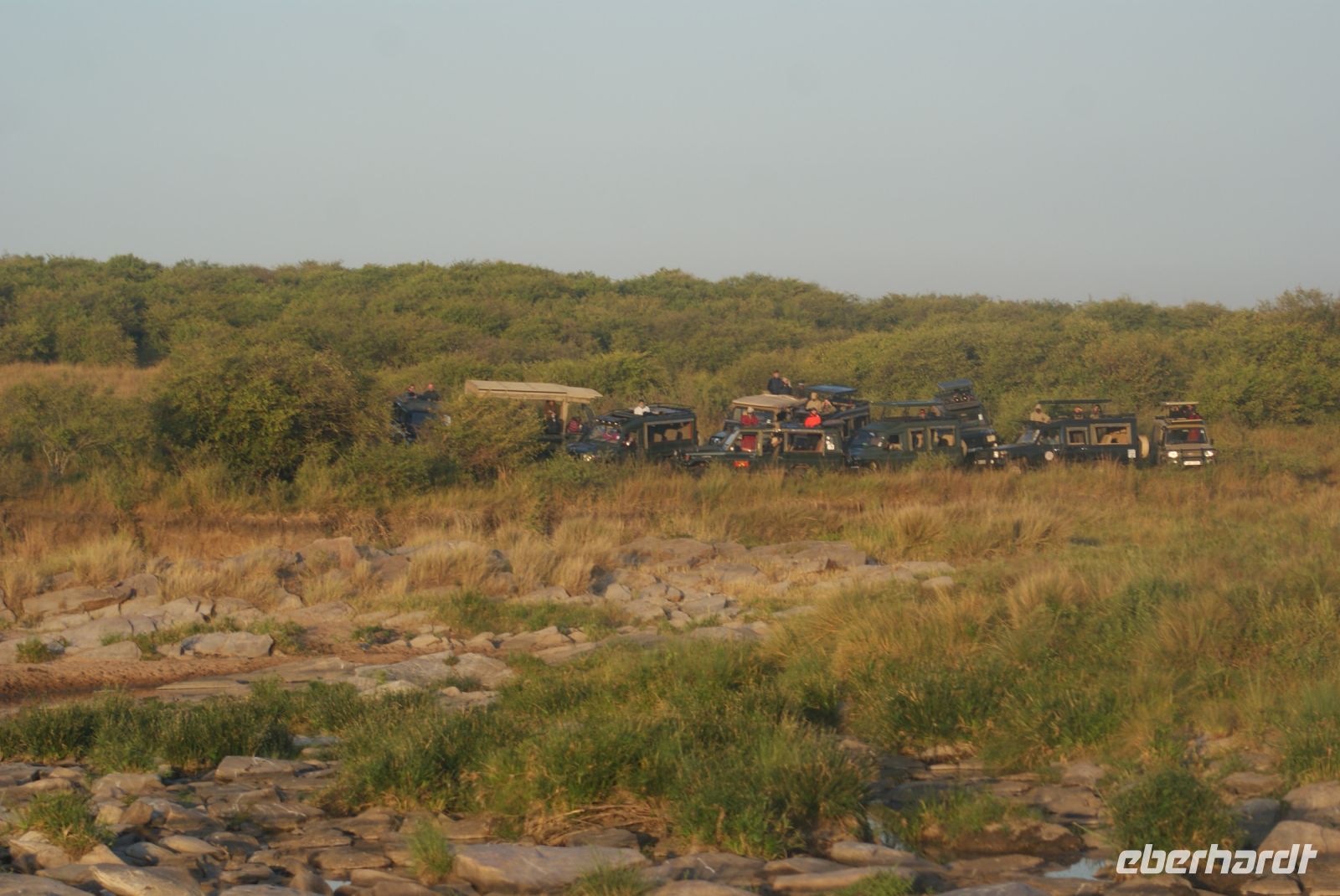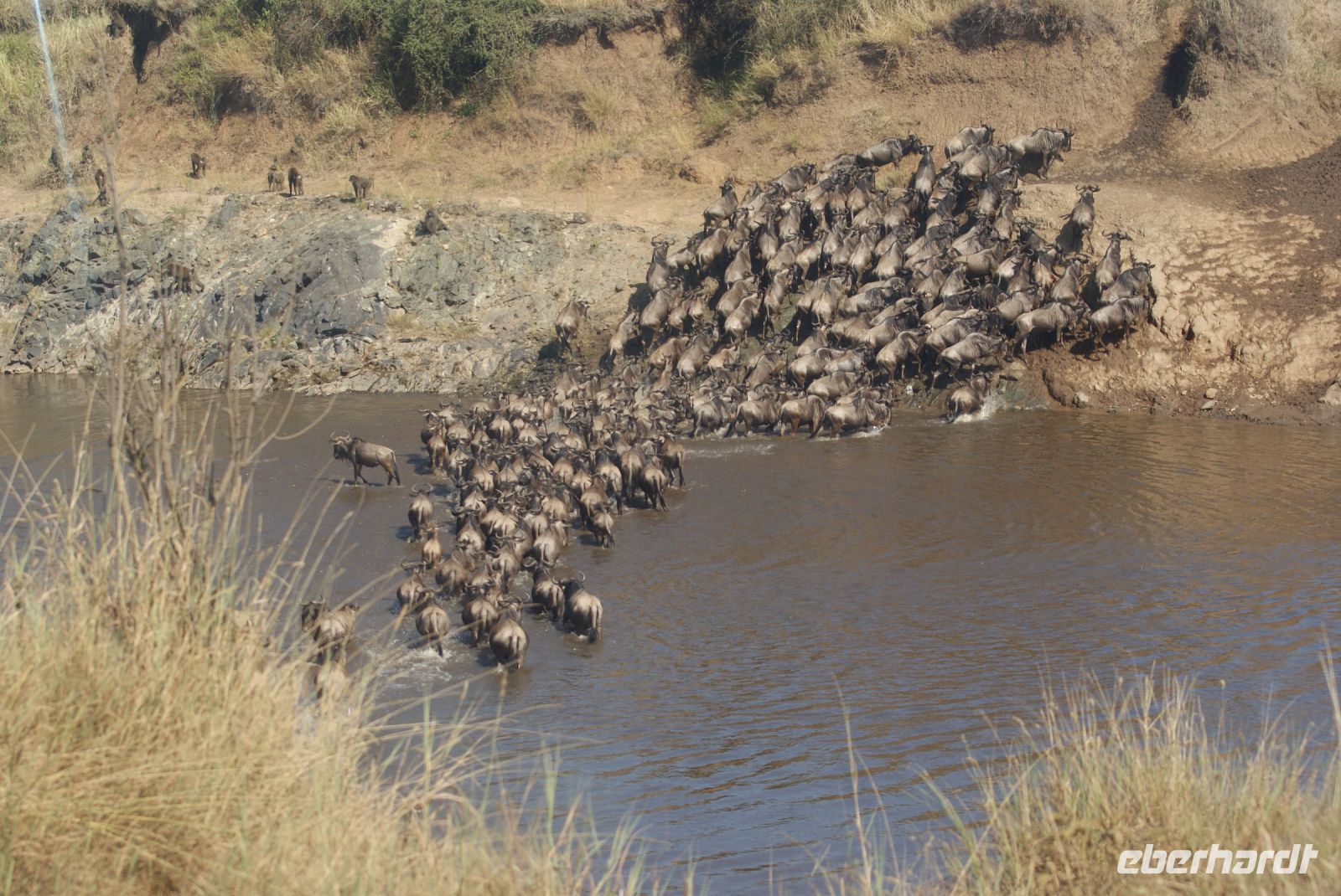 Unser Blick schweift auf den schier endlosen Horizont der Masai Mara...Die Migration der Tiere hat begonnen und tausende Gnus ziehen an uns vorbei, kreuzen den Mara Fluss. Elefantenherden begegnen uns