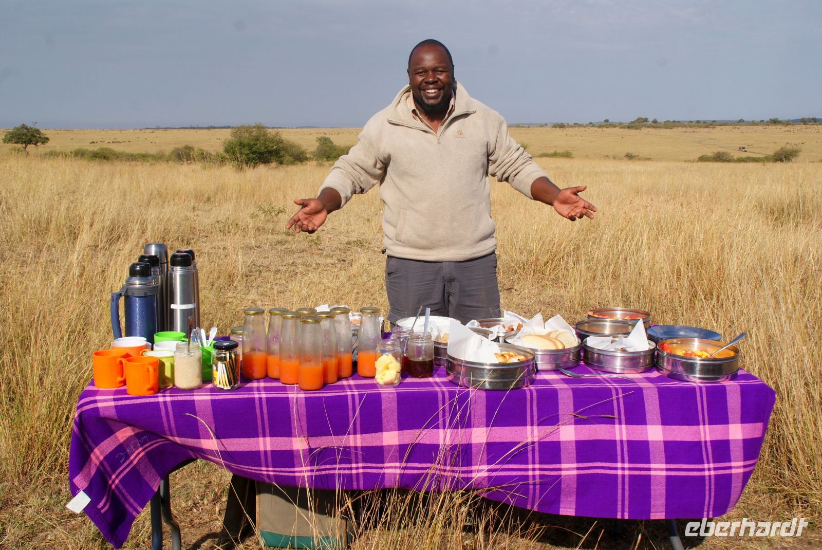 Leider heißt es vorab Abschied nehmen von Guide Caleb, der uns in den letzten 16 Tagen wunderbar durch Kenia und den zurückgelegten 2570 Km gefahren hat. Er war nicht nur unser Fahrer, sondern auch unser Guide und hat immer dafür gesorgt, dass wir zur richtigen Zeit am richtigen Ort waren. Zu sämtlichen Highlights, wie die Migration der Tiere und das Durchqueren des Mara Flusses unzähliger Gnus durften wir erleben, genauso wie seltene Geparden oder einen Leoparden live erleben. Der Buschfunk und Calebs super timing machten all dies möglich. Seine Fahr-und Ortskenntnisse fanden wir sagenhaft und waren uns alle einig, ohne ihn wären hätten wir all dies so nicht erlebt.