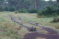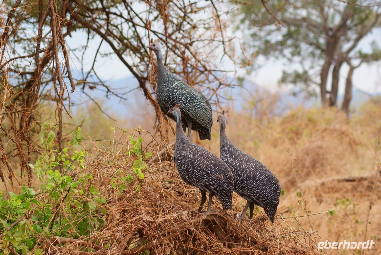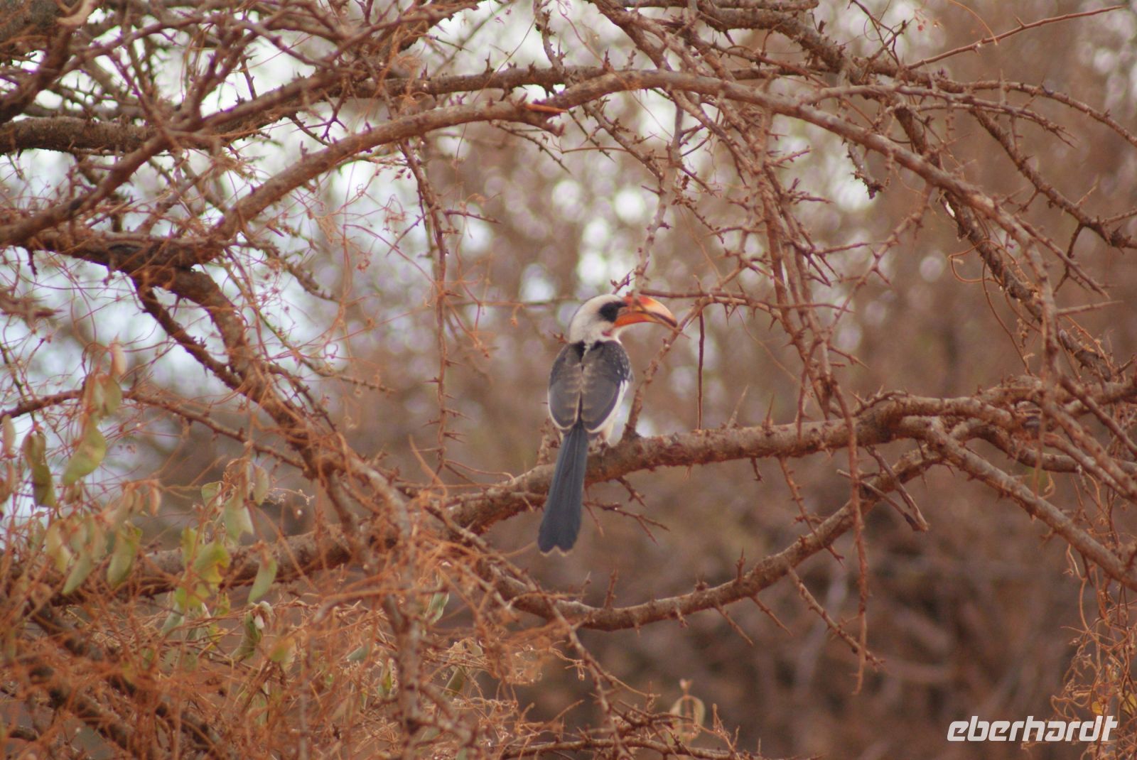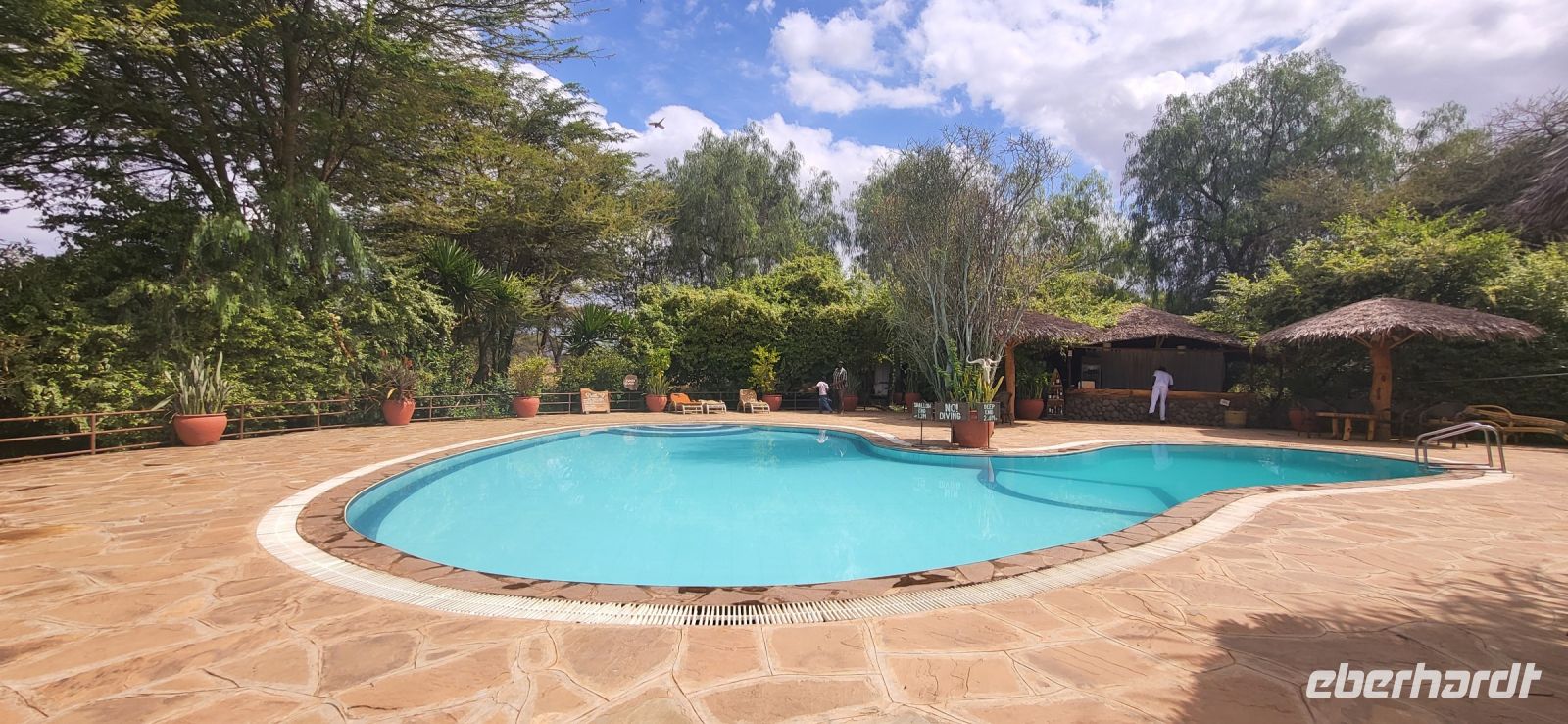Unser letzter Safaritag in Tsavo-West bricht an. Nach einem guten Frühstück begeben wir uns auf Pirschfahrt und steuern zunächst die Mzima Springs an. Hierzu nutzen wir die frühen Morgenstunden, denn zum einen ist es noch kühl und vor allem leer dort. Diese Quelle entspringt in den 50 Km entfernten Chyulu Hills und kommt vor uns an die Erdoberfläche. Da wir uns mitten im Nationalpark und ohne Zaun befinden, begleitet uns Ranger Robert, sodass wir uns sicher auf dem Gelände bewegen können. Es erfolgt ein schöner Rundgang, bei dem wir noch viel Interessantes erfahren. Unser Begleiter berichtet, dass die Mzima Quellen in den Tsavo Fluss fließen, der das Wasser durch ein natürliches Gefälle bis nach Mombasa trägt. Hier an den Quellen entlang sehen wir Flusspferde und auch Krokodile, die sich genüsslich im Wasser aufhalten. Alles in allem ist es ein schöner Spaziergang und wir sind dankbar, uns in so schöner Natur die Beine vertreten zu dürfen. Dank der stets guten Planung unserer Guides Nick und Caleb, sind wir an diesem beliebten Programmpunkt ganz für uns alleine und haben die schöne Naturkulisse ausschließlich für uns alleine. Weiter geht es zum "Poachers Lookout". Dieser Aussichtspunkt, der den Rangern zur Überwachung der Wilderer dient, ist hoch oben auf einem Hügel gelegen, von wo aus sich ein unglaublicher Blick auf die in der Tiefe gelegene Savanne bietet. Die Weite dieses traumhaft schönen Landes wird hier nochmals so richtig bewusst und so genießen wir den Augenblick. Bis Mittag fahren wir durch den Busch und sehen unter anderem noch Oryxantilopen, Giraffen, Kudus, schöne Baobab/Affenbrotbäume und auch imposante Termitenhügel. Plötzlich entdecken wir einen Leoparden hoch oben in einer Akazie schlafend. Wow …das haben wir nicht erwartet, zumal wir mit die einzigen Fahrzeuge sind, die das stattliche Tier gefunden haben. Beim schmackhaften Mittagessen bieten unsere Wasserlöcher vor der Lodge erneut eine besondere Kulisse, neben Zebras und Büffel erscheinen noch Perlhühner und Paviane und wir genießen das tierische Treiben in vollen Zügen. Der Nachmittag steht zur freien Verfügung, bis wir erneut auf Pirschfahrt gehen. Die Tiere geben ihr Bestes, um sich anscheinend vor uns zu verstecken und so ist die Nachmittagsausbeute leider etwas gering. Dafür widmen wir uns der schönen Natur, die malerischen Wege aus roter Erde vor uns, dazu doch noch so manche Tiere wie Dic Dics, Kudus, Pumbas und Giraffen. Am schwarz schimmernden Vulkan halten wir zu einem Fotostopp und halten eine Überraschung für unsere Gäste bereit. Mit atemberaubendem Blick über die Savanne und in den Busch, bilden die Chyulu Hills einen tollen Rahmen und so nutzen wir hier die Gelegenheit, um bei flüssigem Moskitoschutz wie Gin Tonic und Co. mit den Gästen auf die tolle Reise anzustoßen und uns bei den beiden Guides für eine wunderbare Rundreise durch Kenia zu bedanken. Eine schönere Abschlusskulisse können wir uns einfach nicht vorstellen. Unsere nette Reisegemeinschaft ganz unter uns umgeben von unglaublicher Natur, der Blick in die Landschaft. Nick stimmt noch ein schönes Lied für uns an, die Sonne geht unter und so manch schönes Gedicht wird vorgetragen. Asante sana! Noch ein letztes schönes Abendessen in der Kilaguni Lodge, heute ist Kenianischer Abend und es wird gegrillt. Als Abschlusshighlight schauen einige Elefantenherden am Wasserloch vorbei und wir sind einfach nur dankbar, dies noch erleben zu dürfen!