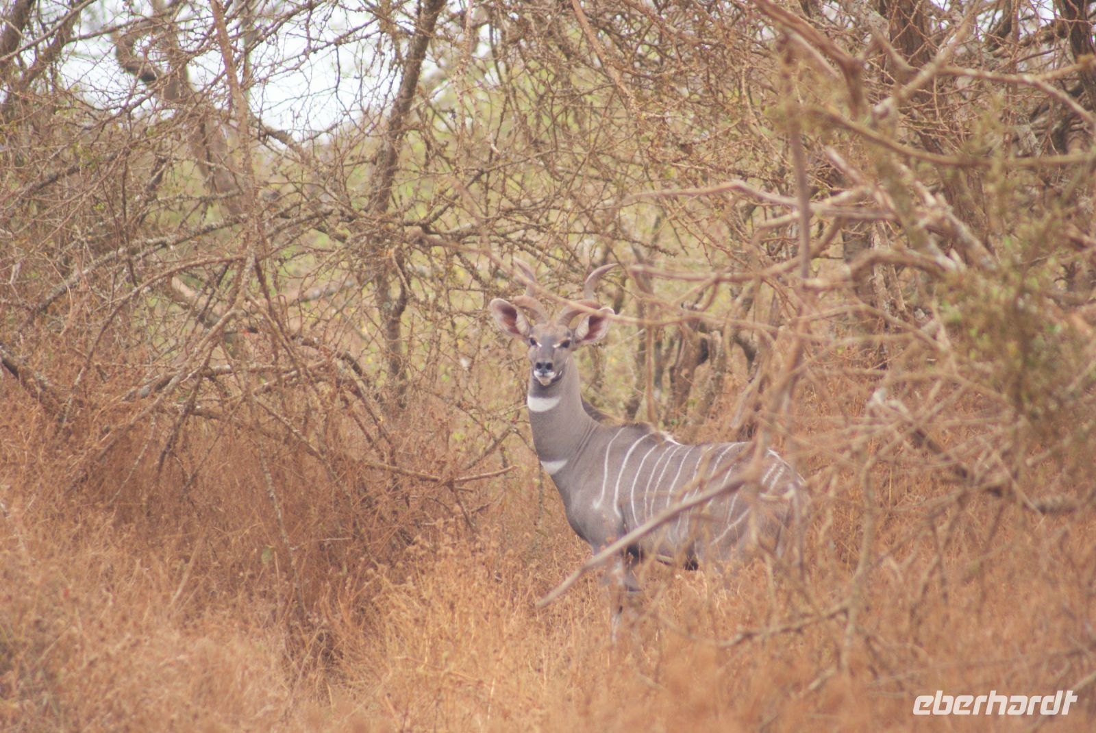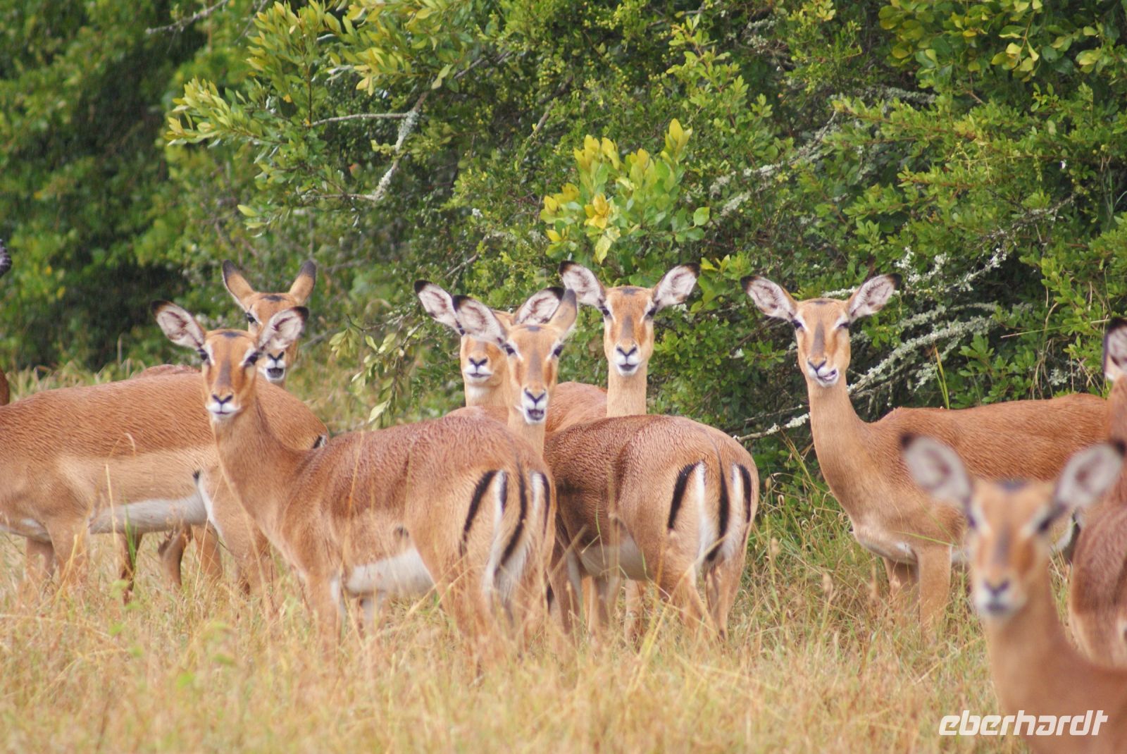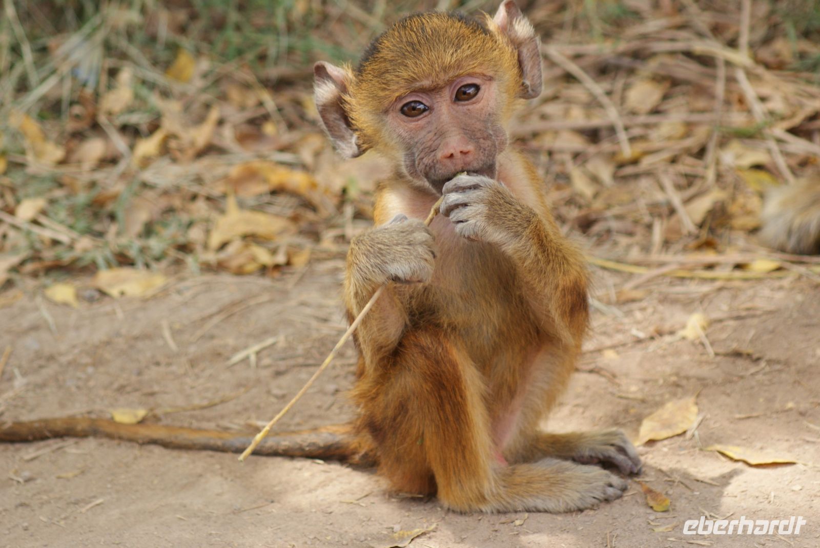 Unser letzter Safaritag in Tsavo-West bricht an. Nach einem guten Frühstück begeben wir uns auf Pirschfahrt und steuern zunächst die Mzima Springs an. Hierzu nutzen wir die frühen Morgenstunden, denn zum einen ist es noch kühl und vor allem leer dort. Diese Quelle entspringt in den 50 Km entfernten Chyulu Hills und kommt vor uns an die Erdoberfläche. Da wir uns mitten im Nationalpark und ohne Zaun befinden, begleitet uns Ranger Robert, sodass wir uns sicher auf dem Gelände bewegen können. Es erfolgt ein schöner Rundgang, bei dem wir noch viel Interessantes erfahren. Unser Begleiter berichtet, dass die Mzima Quellen in den Tsavo Fluss fließen, der das Wasser durch ein natürliches Gefälle bis nach Mombasa trägt. Hier an den Quellen entlang sehen wir Flusspferde und auch Krokodile, die sich genüsslich im Wasser aufhalten. Alles in allem ist es ein schöner Spaziergang und wir sind dankbar, uns in so schöner Natur die Beine vertreten zu dürfen. Dank der stets guten Planung unserer Guides Nick und Caleb, sind wir an diesem beliebten Programmpunkt ganz für uns alleine und haben die schöne Naturkulisse ausschließlich für uns alleine. Weiter geht es zum "Poachers Lookout". Dieser Aussichtspunkt, der den Rangern zur Überwachung der Wilderer dient, ist hoch oben auf einem Hügel gelegen, von wo aus sich ein unglaublicher Blick auf die in der Tiefe gelegene Savanne bietet. Die Weite dieses traumhaft schönen Landes wird hier nochmals so richtig bewusst und so genießen wir den Augenblick. Bis Mittag fahren wir durch den Busch und sehen unter anderem noch Oryxantilopen, Giraffen, Kudus, schöne Baobab/Affenbrotbäume und auch imposante Termitenhügel. Plötzlich entdecken wir einen Leoparden hoch oben in einer Akazie schlafend. Wow …das haben wir nicht erwartet, zumal wir mit die einzigen Fahrzeuge sind, die das stattliche Tier gefunden haben. Beim schmackhaften Mittagessen bieten unsere Wasserlöcher vor der Lodge erneut eine besondere Kulisse, neben Zebras und Büffel erscheinen noch Perlhühner und Paviane und wir genießen das tierische Treiben in vollen Zügen. Der Nachmittag steht zur freien Verfügung, bis wir erneut auf Pirschfahrt gehen. Die Tiere geben ihr Bestes, um sich anscheinend vor uns zu verstecken und so ist die Nachmittagsausbeute leider etwas gering. Dafür widmen wir uns der schönen Natur, die malerischen Wege aus roter Erde vor uns, dazu doch noch so manche Tiere wie Dic Dics, Kudus, Pumbas und Giraffen. Am schwarz schimmernden Vulkan halten wir zu einem Fotostopp und halten eine Überraschung für unsere Gäste bereit. Mit atemberaubendem Blick über die Savanne und in den Busch, bilden die Chyulu Hills einen tollen Rahmen und so nutzen wir hier die Gelegenheit, um bei flüssigem Moskitoschutz wie Gin Tonic und Co. mit den Gästen auf die tolle Reise anzustoßen und uns bei den beiden Guides für eine wunderbare Rundreise durch Kenia zu bedanken. Eine schönere Abschlusskulisse können wir uns einfach nicht vorstellen. Unsere nette Reisegemeinschaft ganz unter uns umgeben von unglaublicher Natur, der Blick in die Landschaft. Nick stimmt noch ein schönes Lied für uns an, die Sonne geht unter und so manch schönes Gedicht wird vorgetragen. Asante sana! Noch ein letztes schönes Abendessen in der Kilaguni Lodge, heute ist Kenianischer Abend und es wird gegrillt. Als Abschlusshighlight schauen einige Elefantenherden am Wasserloch vorbei und wir sind einfach nur dankbar, dies noch erleben zu dürfen!