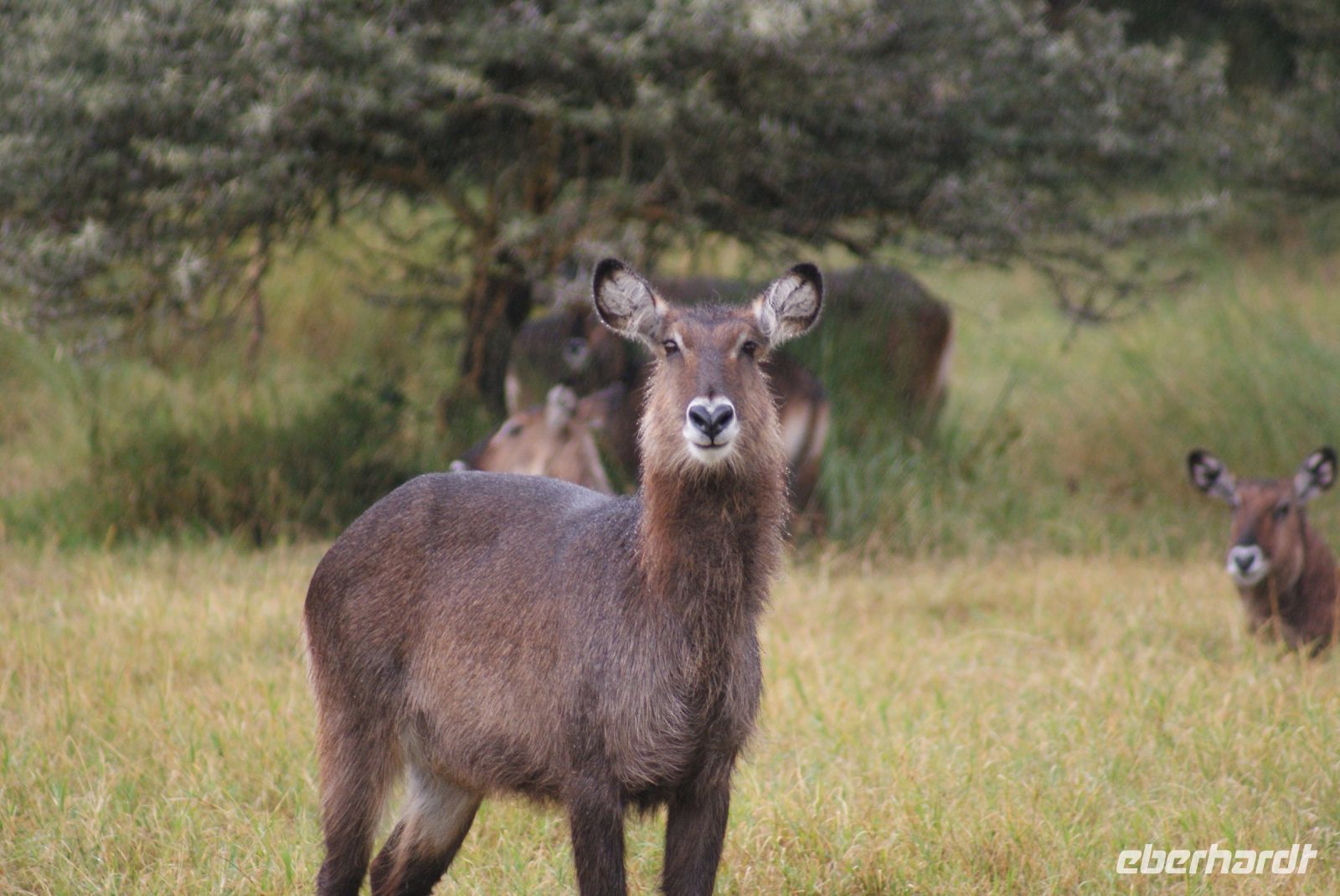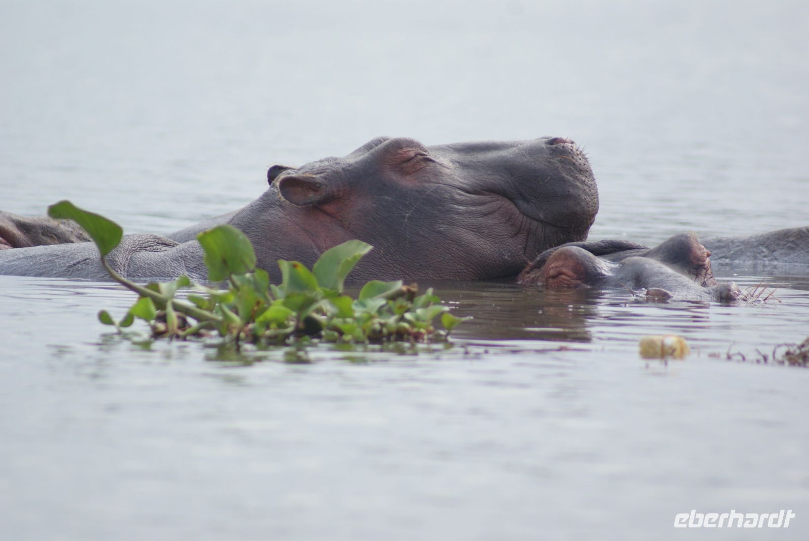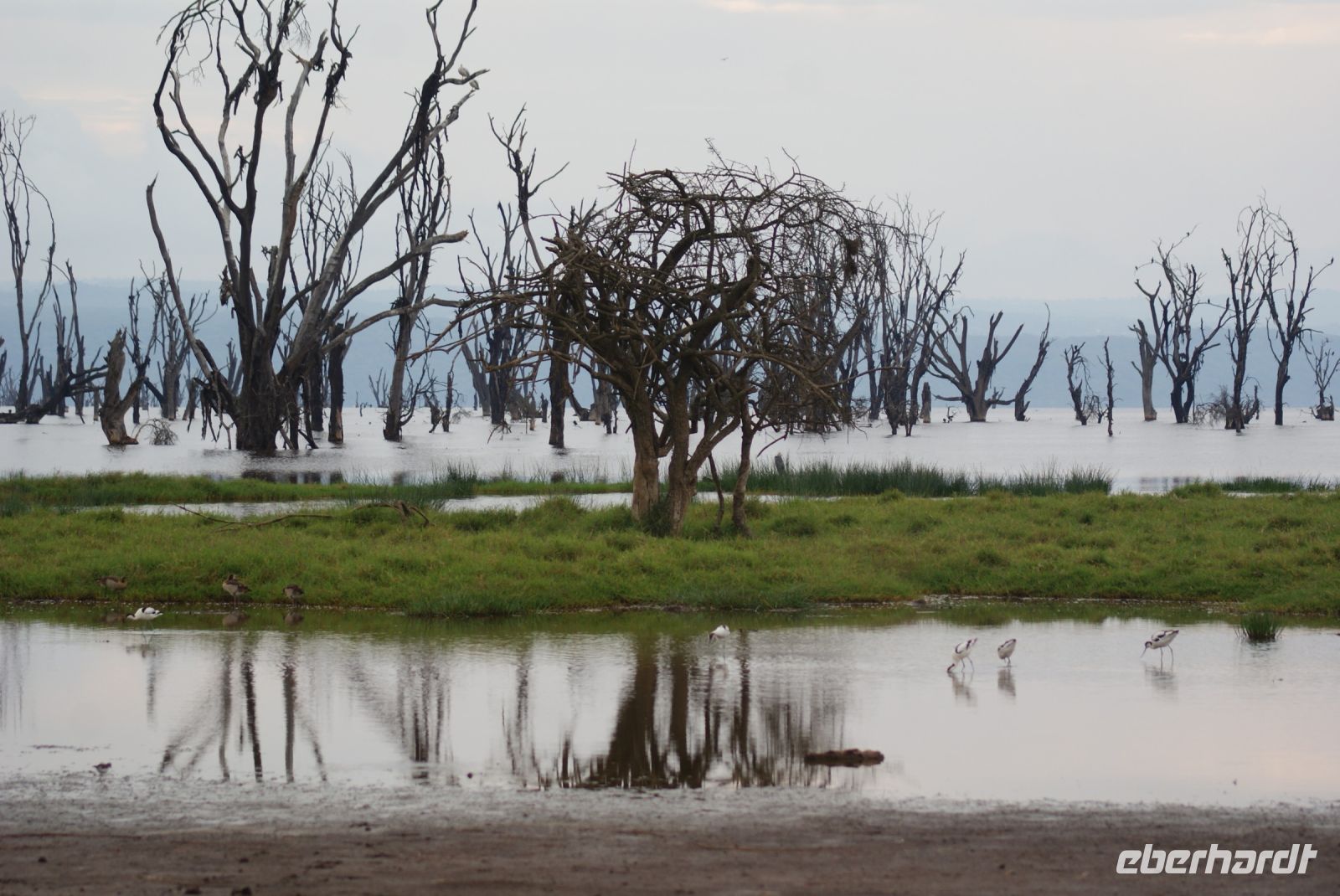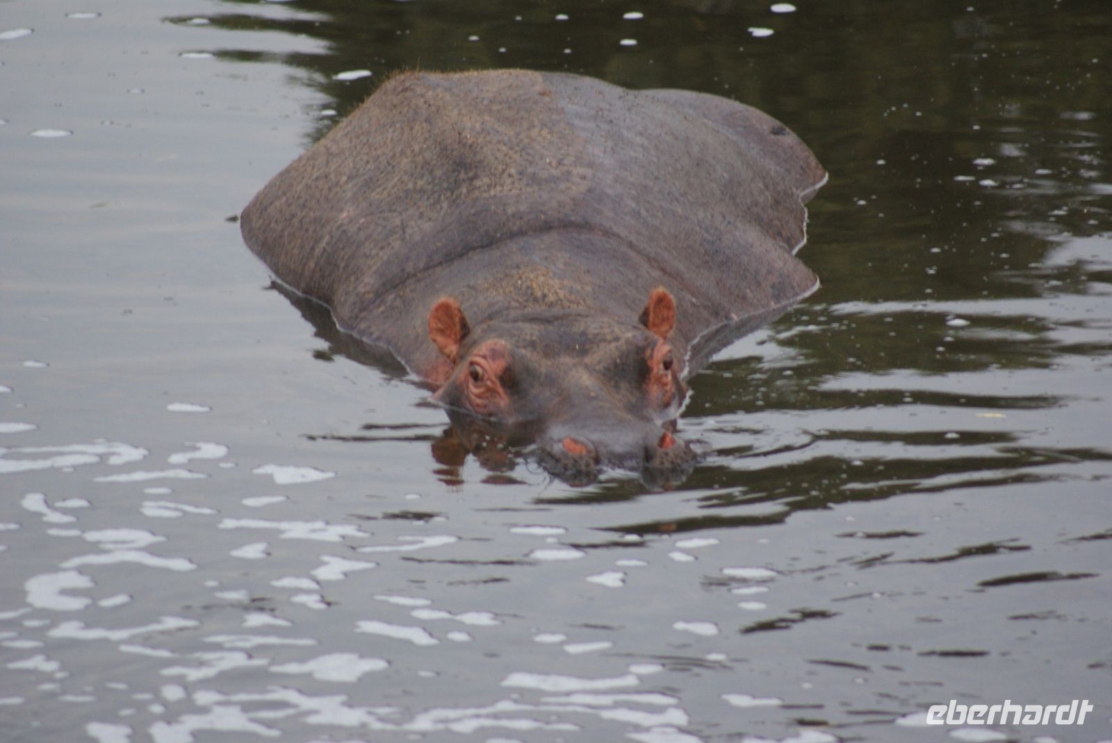 Heute Nacht hören wir erneut einige Hyänen und Löwen im Busch. Es erwartet uns vor unserer Abreise ein letztes köstliches Frühstück im Camp und herzlich erfolgt die Verabschiedung durch Campmanager Nelson. Ein letztes Mal fahren wir durch die Masai Mara, lassen nochmals die Weite sowie deren einzigartige Bewohner auf uns wirken. Eine wunderschöne Elefantenherde, die wie in einer Filmkulisse grast, dahinter Hunderte von Gnus, die sich auf den Weg über den Fluss machen, bieten wieder mal eine unglaubliche Kulisse. Über das Sekenani Gate verlassen wir die „getupfte Savanne der Masai“, unsere so einzigartige Masai Mara. Einige Stopps und 250 Km später erreichen wir mittags unser neues Domizil, das „Lake Naivasha Sopa Resort“, welches mit 21 Cottages und 84 Zimmern direkt am Wasser liegt. Der Naivasha See ist ebenfalls ein Naturreservat von 139 Km², auf 1880 m gelegen. Somit ist er einer der zwei höchsten Süßwasserseen Afrikas und Teil des Rift Valleys, des afrikanischen Grabenbruchs. Nachdem wir das Eingangstor passieren, zeigen sich bereits Zebras und Wasserböcke in der umliegenden Parkanlage. Seitens der Lodge werden wir wieder sehr freundlich willkommen geheißen und nach einem schmackhaften Mittagessen beziehen wir unsere schönen Zimmer mit Blick in den idyllischen Garten der Anlage. Später treffen wir Guide Henry zu einem einstündigen Rundgang und werden von diesem zu den hier lebenden Giraffen gebracht. Wir finden diese bei der Futtersuche im Gebüsch und können aus nur wenigen Metern Entfernung in Ruhe zuschauen. Fern von scheu zeigen sich Mütter mit Jungtieren, das kleinste gerade sechs Monate alt. Einfach nur schön. Schreiseeadler machen ihrem Namen alle Ehre, Hippos beäugen uns aus der Ferne, Hagedasch Ibisse sowie Eisvögel auf Nahrungssuche, Wasserböcke äsen im Gras, Zebras streifen umher-wir sind erneut in der Idylle angekommen. Bereits kurz nachdem wir vom Abendessen zurück sind, sehen wir die ersten Hippos auf der Wiese grasen, die jedoch durch einen Elektrozaun von unseren Häusern getrennt sind… Welch eine unwirkliche Kulisse als dann noch im Dunkeln eine Giraffe in direkter Nähe unseres Weges ruht und wir diese zunächst nur als Silhouette wahrnehmen.