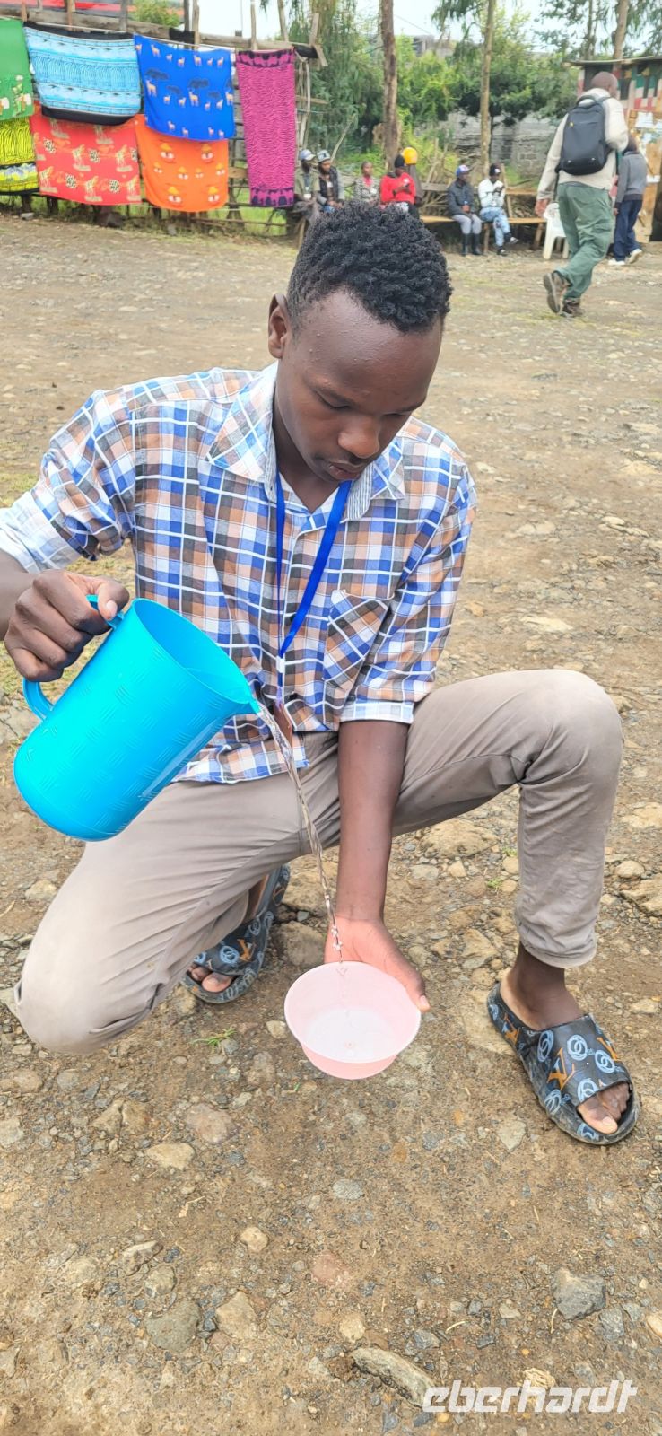 Ausgiebig gefrühstückt vom reichhaltigen Buffet des Four Points by Sheraton Hotel Nairobi erhalten wir ein schönes Gastgeschenk, welches uns durch Betreuer Baraka überreicht wird. Es gibt für alle Gäste ein schönes Poloshirt in Safari Beige sowie eine hochwertige Iso-Trinkflasche, die wir täglich im Jeep mit Wasser befüllen können. Anschließend werden wir von unseren Driverguides Nick und Caleb gemeinsam mit den beiden Toyota Landcruisern (Jeeps) begrüßt. Nachdem sämtliches Reisegepäck verstaut ist, starten wir durch den morgendlichen Verkehr Nairobis und staunen, was es links und rechts unseres Weges alles zu sehen gibt. Mit besten Deutschkenntnissen erzählen uns Guide Nick und Caleb schon viele interessante Dinge über ihr Heimatland und wir hören, dass die Hauptstadt Kenias heute 4,5 Mio. Einwohnern fasst und es in Kenia mit 50 Mio. EW 43 Stämme gibt, die in drei ethnische Gruppen eingeteilt sind. Hierzu zählen Bantu, Nilote (vom Fluss Nil hergeleitet) sowie die Kushiten. Das Land ist reich an Bodenschätzen, wie beispielsweise Öl, Gold, Eisen, Erdgas, etc. Unseren ersten Halt machen wir auf der auf 1750 m Höhe gelegenen Fairview Estate Kaffeefarm, ein über vierzig Hektar großes Areal und somit eine der größten und ältesten Plantagen des Landes. Guide James führt uns sehr engagiert über die Plantage, zeigt uns die Kaffeesträucher mit den Teils schon roten und somit reifen Kaffeebohnen, die zuerst gepflückt, dann vom Fruchtfleisch getrennt werden. Anschl. erfolgt das Einweichen der Kaffeebohnen, sodass sich der restliche Zucker, der an den Bohnen klebt, löst, bevor es in die Trocknung und schließlich Röstung der hier wachsenden Sorte Arabica geht. Imposant, wie viel Arbeit in der Ernte steckt. Abschließend heißt es, riechen und schlürfen, was das Zeug hält, denn wir sind zum Kaffee verkosten geladen. Nun gilt es per Blindverkostung herauszufinden, welche Sorte sich in der jeweiligen Tasse befindet, in denen leichte Röstung, mittlere Röstung und dunkle Röstung vorhanden sind. Mit darauffolgendem Kaffee und süßen Köstlichkeiten schließen wir unseren Besuch ab und ziehen weiter durchs Land nach Nyeri, wo unsere schöne Rhino Watch Lodge gelegen ist und wir die nächsten beiden Nächte verbringen werden. Unterwegs gibt es viel zu bestaunen, die verschiedenen Regionen, wo viele Früchte wie Mangos, Papayas, Ananas oder Bananen angebaut und entlang unserer Strecke verkauft werden. Am späteren Nachmittag erfolgt der Check-in und wir werden von Lodgemanager Alex herzlich begrüßt. Bei einem gemütlichen Abendessen lernen wir uns näher kennen, feiern einen ersten Geburtstag und ziehen uns früh zurück, da es morgen früh schon zeitig losgeht. Auf 2000 m Höhe träumen wir vom morgigen Tag und unseren mit Sicherheit vielen Nashornbegegnungen im Solo Reservat und Nashorn Schutzgebiet.