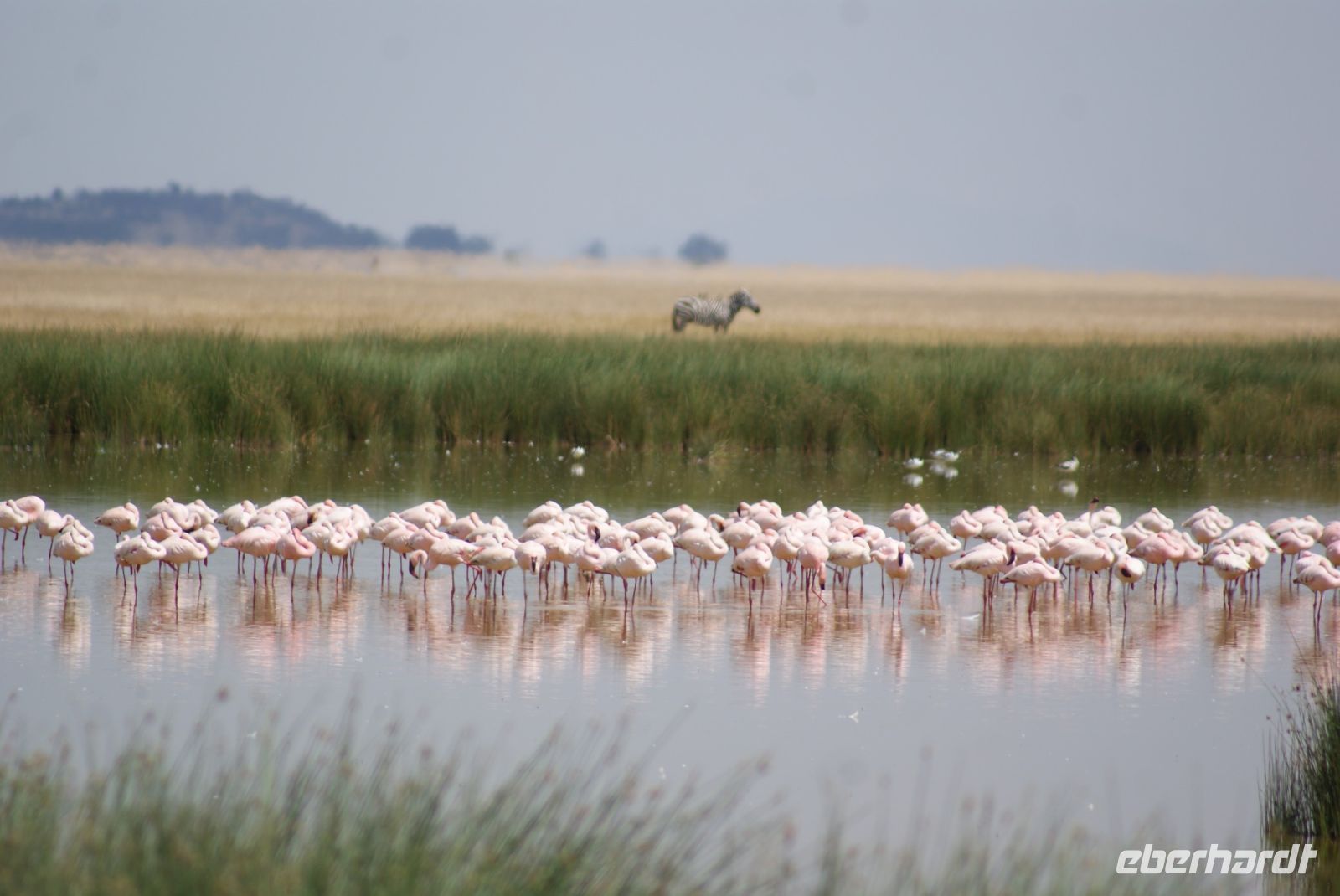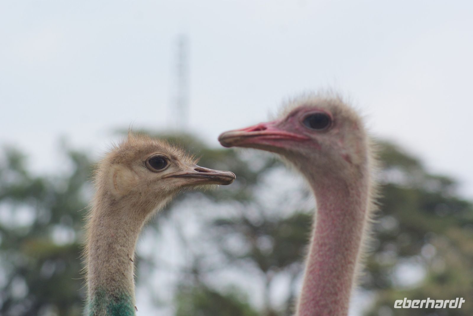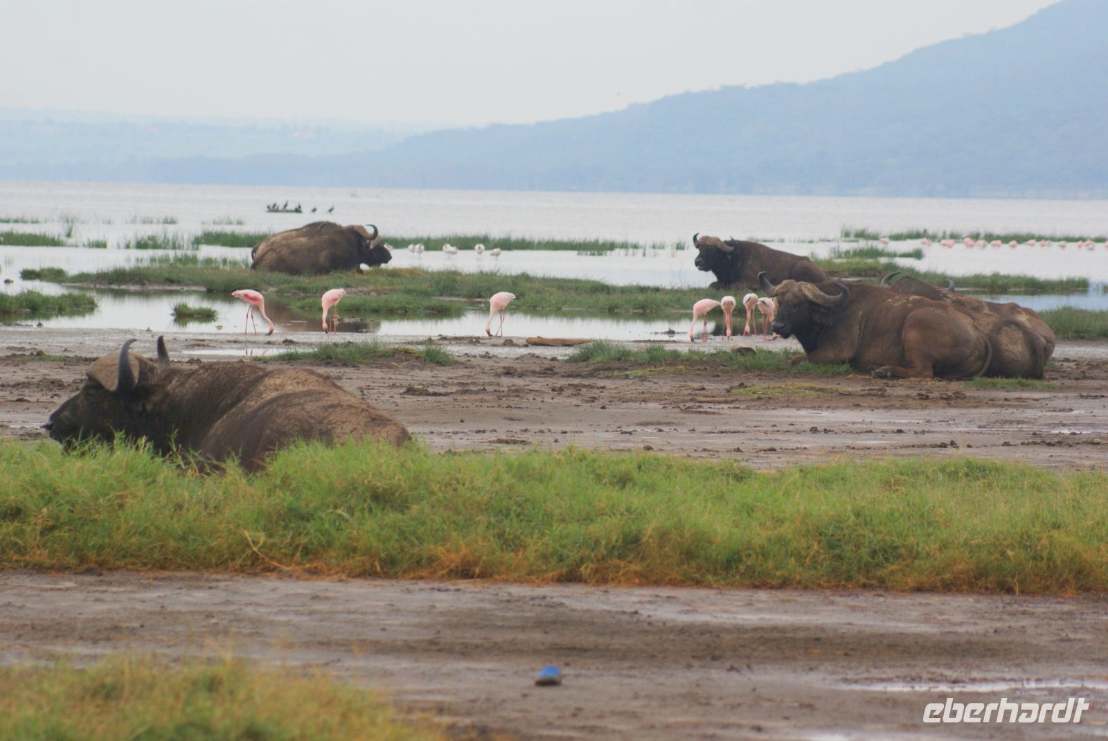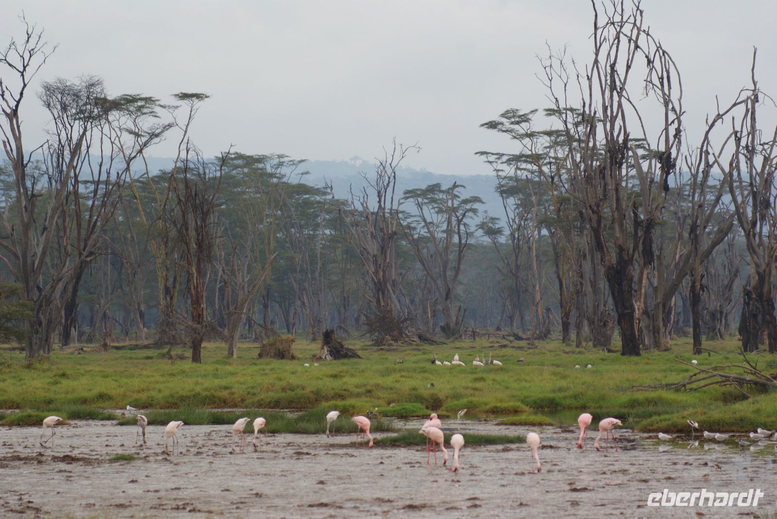 Nach einer kühlen und trüben Nacht geht es weiter Richtung Norden, die Region des Aberdere Nationalparks verlassend. Über hügelige und sehr ländliche Landschaften geht es weiter Richtung Lake Nakuru. Wir passieren so manch kleine Orte, deren Bewohner von Landwirtschaft und Milchvieh leben. Auf 2265 m Höhe erfolgt ein Stopp am berühmten Äquatorschild, was natürlich nicht fehlen darf. So entstehen schöne Aufnahmen und wir erhalten eine Einführung in den sogenannten Coriolis Effekt, der hier per Wasser-Zeremonie dargestellt wird. Wie unterschiedlich sich der Wasserstrudel jeweils auf der Nord-und Südkugel der Erde verhält, wird uns nun veranschaulicht. Staunend sehen wir, wie sich dieser im Norden im Uhrzeigersinn und im Süden gegen den Uhrzeigersinn dreht. Genau auf dem Äquator dreht sich gar nichts. Sehr imposant, wie auch immer das in diesen kurzen Abständen hier funktioniert. Abschließend erhalten wir noch ein schönes Zertifikat, dass wir am Äquator waren und können uns dieses gegen eine kleine Gebühr ausstellen und stempeln lassen. Leider ist es auch heute zunächst noch ziemlich ungewöhnlich verregnet, bessert sich jedoch nach dem wir den höchsten Punkt unserer Route, die Stadt Nyahuru, mit 2500 m verlassen haben. Pünktlich zur Mittagszeit erreichen wir den auf 1700 m gelegenen Nakuru See und gleichnamigen Nationalpark. Der bis zu vier Meter tiefe alkalische und abflusslose See im östlichen Ostafrikanischen Grabenbruch, dem Rift Valley, ist besonders wegen seiner zahlreichen Flamingos weltberühmt. Die zeitweise bis zu zwei Millionen Flamingos ernähren sich von Blaualgen oder Kleinkrebsen, wodurch die eigentlich weißen Tiere erst ihre rosa Farbe erhalten. Bevor wir an der Lodge ankommen, sichten wir (dank weiterer Safarifahrzeuge) ein Löwenpaar, welches es sich zur Paarung gemütlich gemacht hat, welch ein Start in unserem ersten Nationalpark. In der wunderschönen Sarova Lions Hill Game Lodge werden wir freudig erwartet. Wir genießen zunächst ein herrliches Mittagessen und beziehen anschließend unsere Zimmer. Nachmittags starten wir dann mit unserer heutigen Safari durch den Lake Nakuru Nationalpark. Wir sehen die ersten Kormorane, Fischadler, Kapbüffel, des Weiteren einen Schopfadler, Pavianhorden, Eisvögel, Marabus, Nimmersattstörche, Warzenschweine, viele Giraffen. Am See haltend, gibt es, vermutlich durch die Wasserhöhe bedingt, nur wenige Flamingos, dafür jedoch sehr viele Pelikane zu bestaunen, bevor wir weiter zum Mahalia Wasserfall fahren. Nach einem kurzen Spaziergang finden wir uns wieder gemeinsam ein und es erfolgt ein kleiner Umtrunk mit Vinceroy/kenianischem Brandy, um auf den schönen Start unserer tollen Rundreise anzustoßen. Für den erst zweiten Safaritag unserer Reise haben wir schon etliche Tiere gesehen und wir sind schon sehr gespannt, was uns ab morgen in der weltberühmten Masai Mara erwartet.