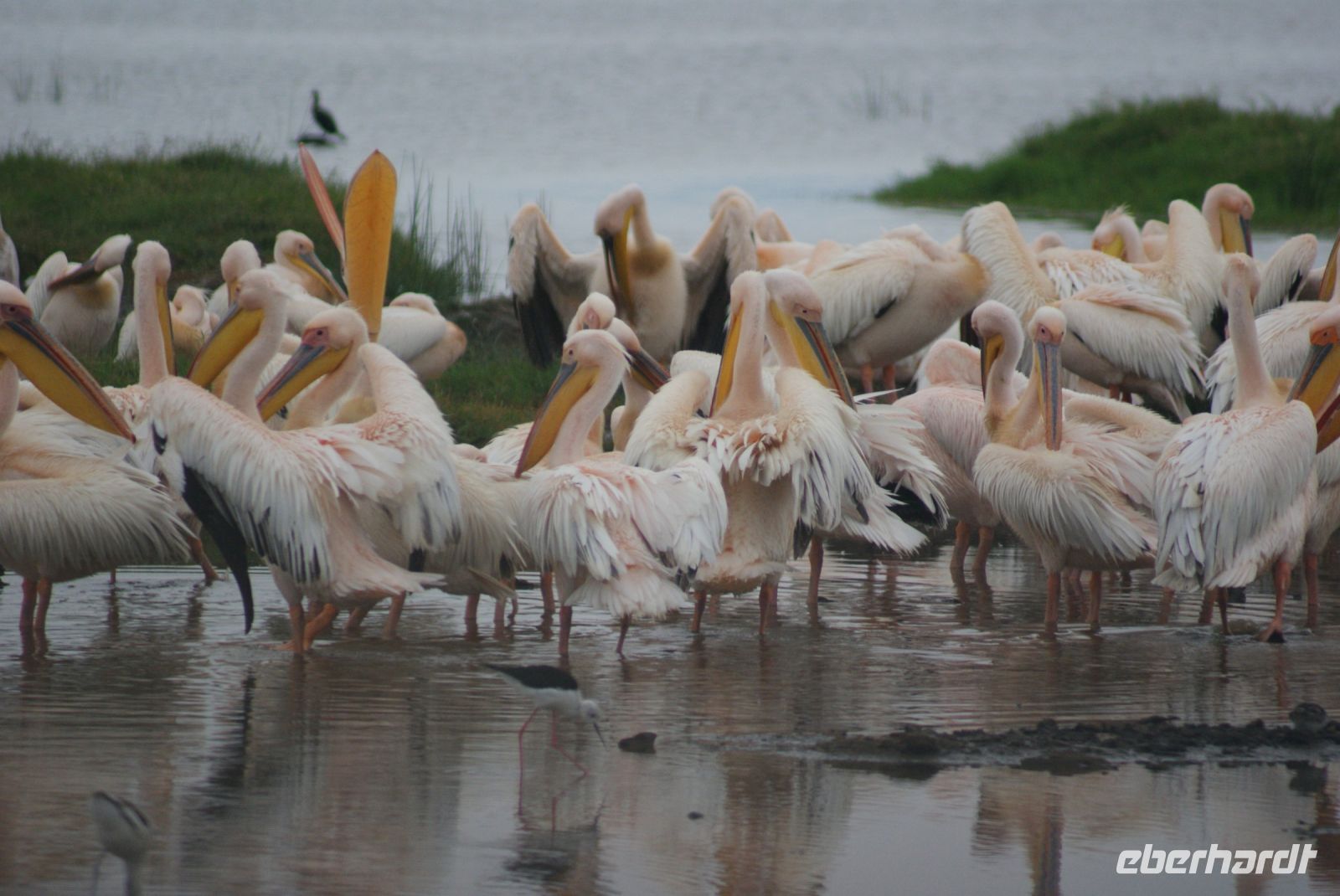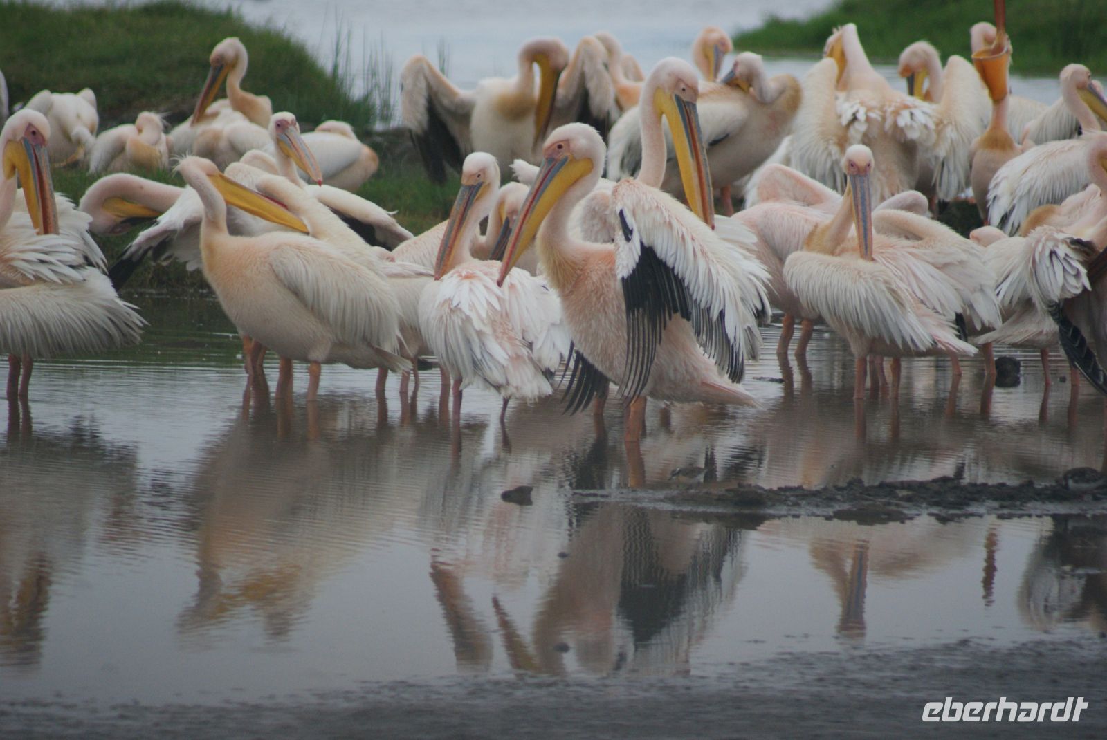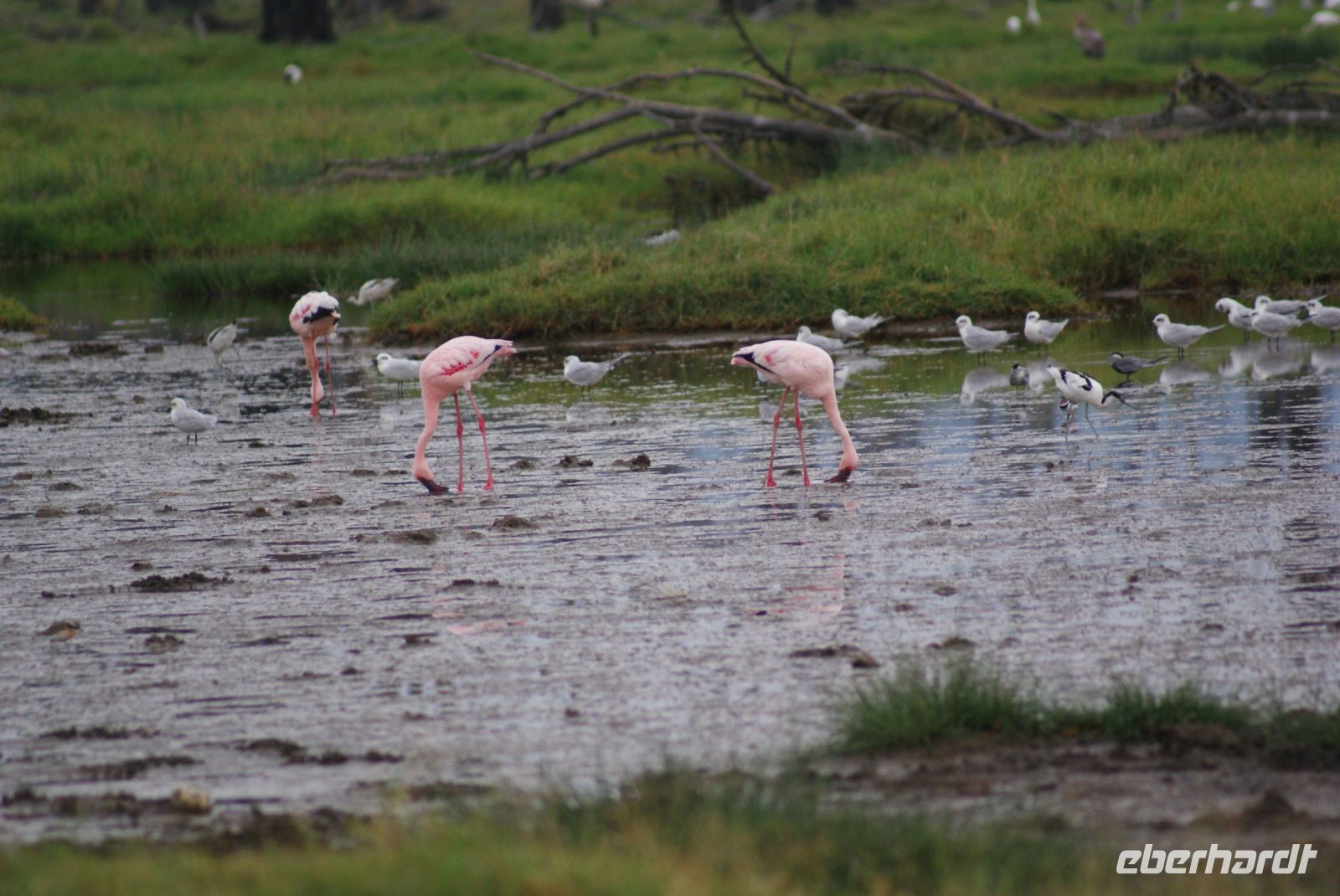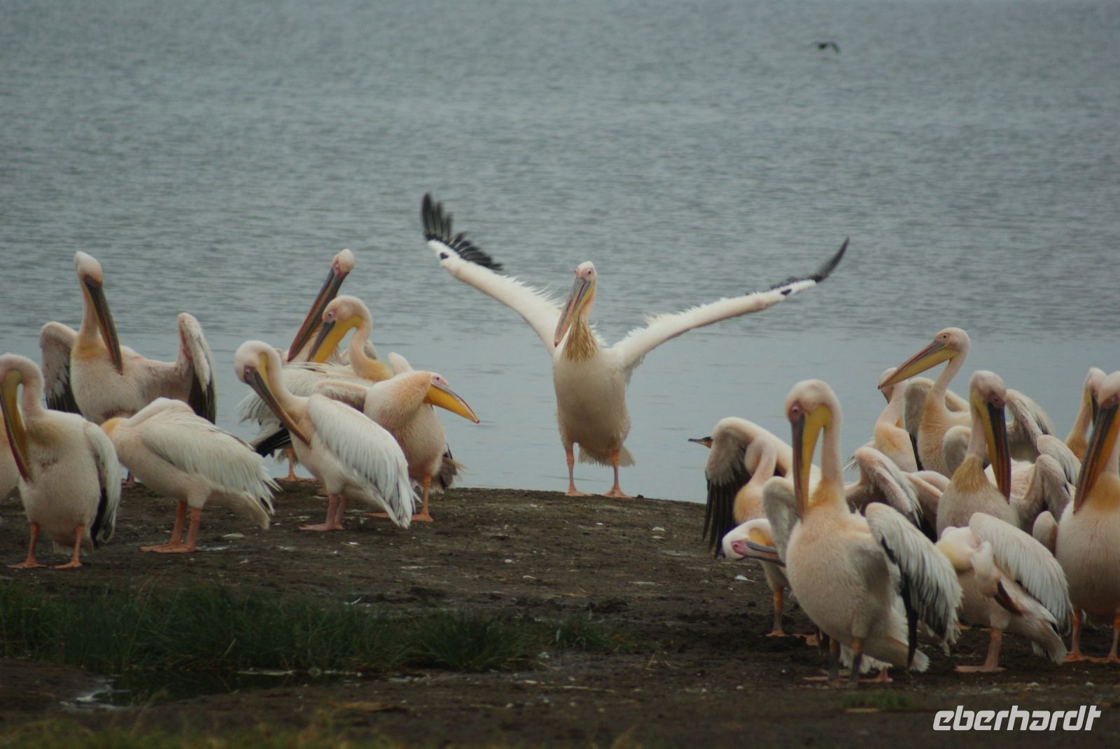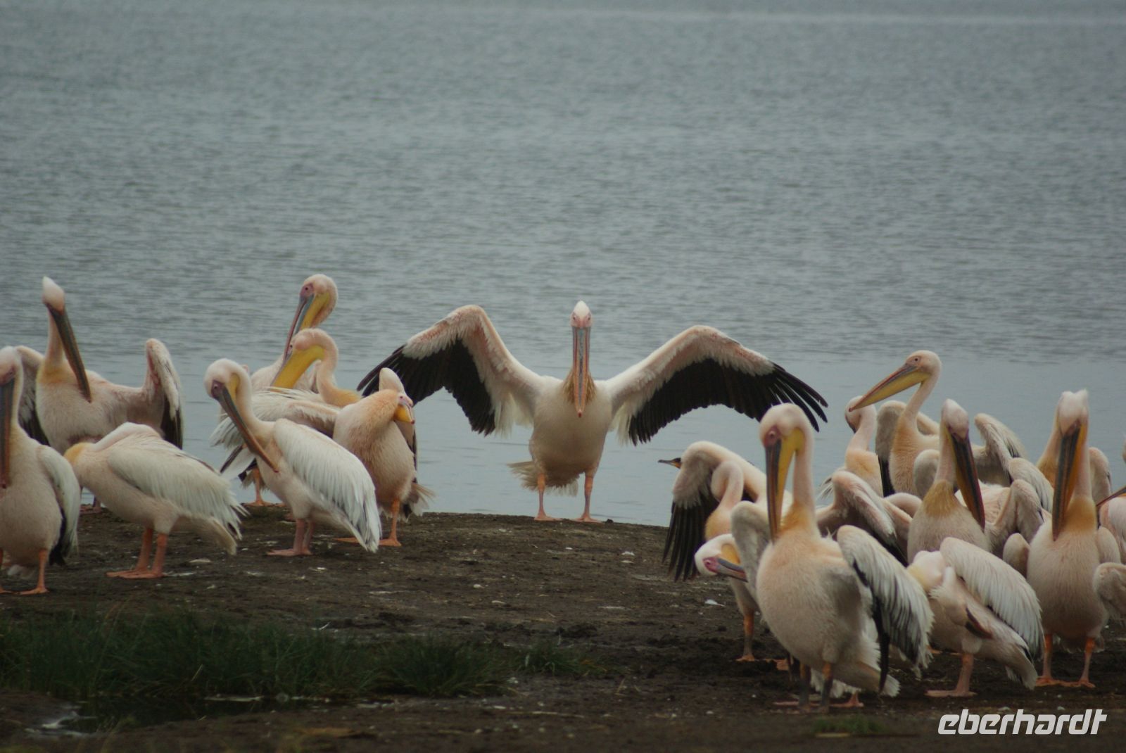 Nach einer kühlen und trüben Nacht geht es weiter Richtung Norden, die Region des Aberdere Nationalparks verlassend. Über hügelige und sehr ländliche Landschaften geht es weiter Richtung Lake Nakuru. Wir passieren so manch kleine Orte, deren Bewohner von Landwirtschaft und Milchvieh leben. Auf 2265 m Höhe erfolgt ein Stopp am berühmten Äquatorschild, was natürlich nicht fehlen darf. So entstehen schöne Aufnahmen und wir erhalten eine Einführung in den sogenannten Coriolis Effekt, der hier per Wasser-Zeremonie dargestellt wird. Wie unterschiedlich sich der Wasserstrudel jeweils auf der Nord-und Südkugel der Erde verhält, wird uns nun veranschaulicht. Staunend sehen wir, wie sich dieser im Norden im Uhrzeigersinn und im Süden gegen den Uhrzeigersinn dreht. Genau auf dem Äquator dreht sich gar nichts. Sehr imposant, wie auch immer das in diesen kurzen Abständen hier funktioniert. Abschließend erhalten wir noch ein schönes Zertifikat, dass wir am Äquator waren und können uns dieses gegen eine kleine Gebühr ausstellen und stempeln lassen. Leider ist es auch heute zunächst noch ziemlich ungewöhnlich verregnet, bessert sich jedoch nach dem wir den höchsten Punkt unserer Route, die Stadt Nyahuru, mit 2500 m verlassen haben. Pünktlich zur Mittagszeit erreichen wir den auf 1700 m gelegenen Nakuru See und gleichnamigen Nationalpark. Der bis zu vier Meter tiefe alkalische und abflusslose See im östlichen Ostafrikanischen Grabenbruch, dem Rift Valley, ist besonders wegen seiner zahlreichen Flamingos weltberühmt. Die zeitweise bis zu zwei Millionen Flamingos ernähren sich von Blaualgen oder Kleinkrebsen, wodurch die eigentlich weißen Tiere erst ihre rosa Farbe erhalten. Bevor wir an der Lodge ankommen, sichten wir (dank weiterer Safarifahrzeuge) ein Löwenpaar, welches es sich zur Paarung gemütlich gemacht hat, welch ein Start in unserem ersten Nationalpark. In der wunderschönen Sarova Lions Hill Game Lodge werden wir freudig erwartet. Wir genießen zunächst ein herrliches Mittagessen und beziehen anschließend unsere Zimmer. Nachmittags starten wir dann mit unserer heutigen Safari durch den Lake Nakuru Nationalpark. Wir sehen die ersten Kormorane, Fischadler, Kapbüffel, des Weiteren einen Schopfadler, Pavianhorden, Eisvögel, Marabus, Nimmersattstörche, Warzenschweine, viele Giraffen. Am See haltend, gibt es, vermutlich durch die Wasserhöhe bedingt, nur wenige Flamingos, dafür jedoch sehr viele Pelikane zu bestaunen, bevor wir weiter zum Mahalia Wasserfall fahren. Nach einem kurzen Spaziergang finden wir uns wieder gemeinsam ein und es erfolgt ein kleiner Umtrunk mit Vinceroy/kenianischem Brandy, um auf den schönen Start unserer tollen Rundreise anzustoßen. Für den erst zweiten Safaritag unserer Reise haben wir schon etliche Tiere gesehen und wir sind schon sehr gespannt, was uns ab morgen in der weltberühmten Masai Mara erwartet.