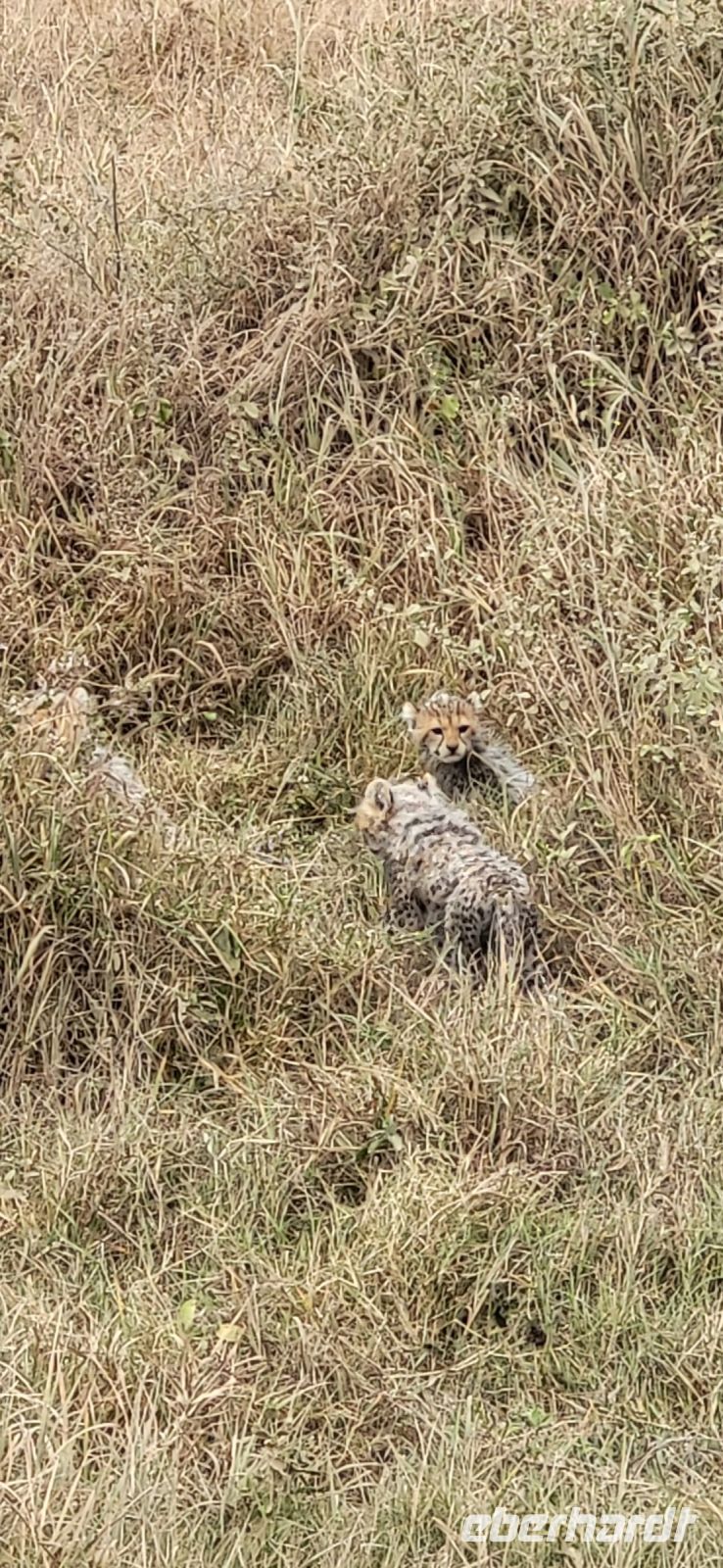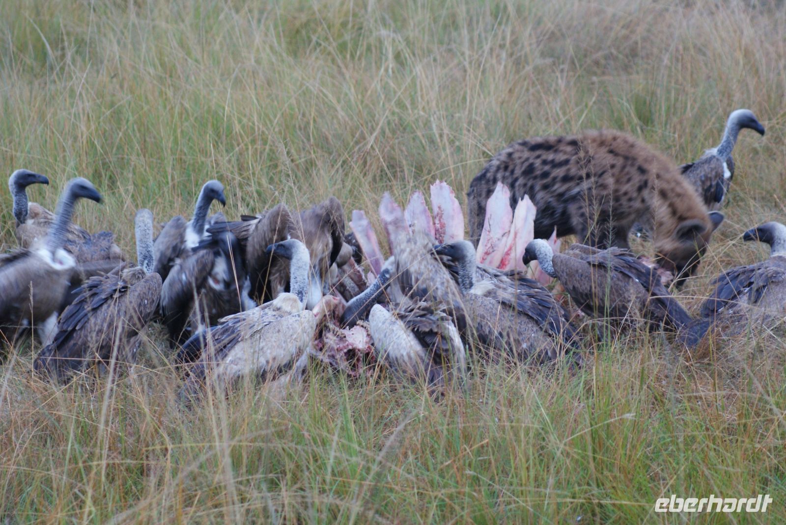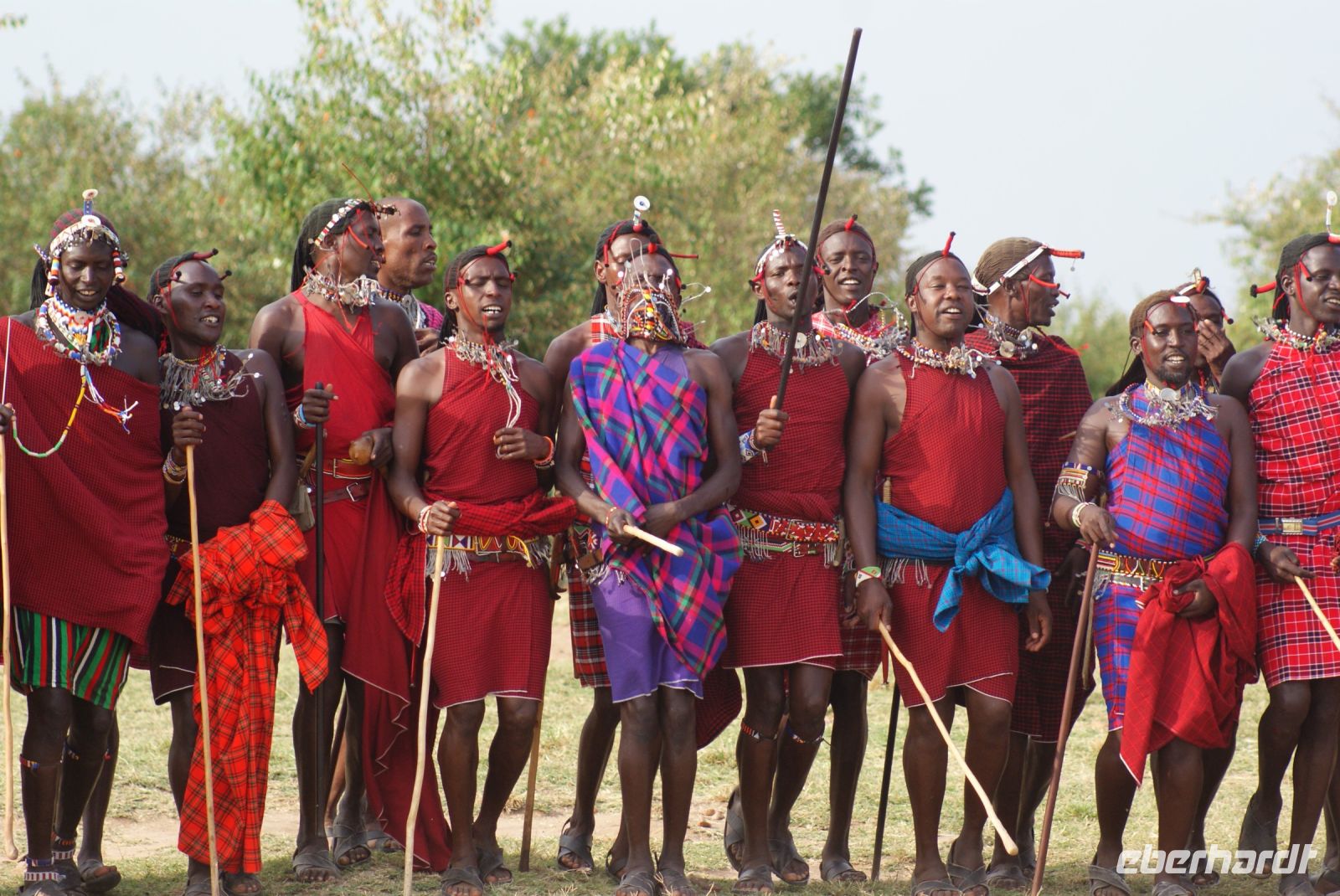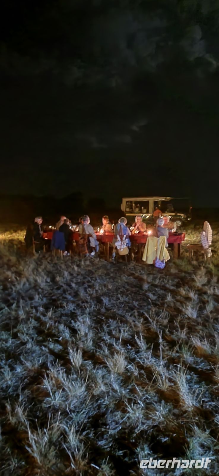 Wir sichten erneut viele Tiere, darunter einen Geparden, zwei Löwinnen, die ein Gnu erlegt haben und dies verspeisten. Auf der Weiterfahrt erreicht uns die Meldung, dass eine Leopardin gesichtet wurde, natürlich sind wir (leider) nicht die einzigen, die dieses besondere Tier sehen möchten und so versammeln sich zu viele Fahrzeuge, deren Guides ebenso die best möglichste Sicht bieten möchten. Nach längerer Suche erscheint das Tier unmittelbar neben unserem Jeep, sodass wir nur noch 2-3 m entfernt sind. Zurück im Camp gibt es wieder ein schmackhaftes Abendessen für uns. Das heutige Thema: Afrikanische Spezialitäten mit viel Gemüse, dazu Lamm, Huhn und Rind. Wir kosten u.a.die typisch kenianische Sättigungsbeilage „Ugali“, eine Art Maispolenta, die hier das absolute Grundnahrungsmittel ist, dazu Kochbananenbeilagen, Spinat-Kartoffel-Püree, etc. Nach dem Essen tanzen die Masaikrieger für uns, wir erkennen viele unserer Wächter darunter wieder. Auch die berühmten Sprünge und Gesänge dürfen natürlich nicht fehlen. So endet ein weiterer erlebnisreicher Tag in der Masai Mara und wir dürfen gespannt sein, was der morgige Tag uns bringt.