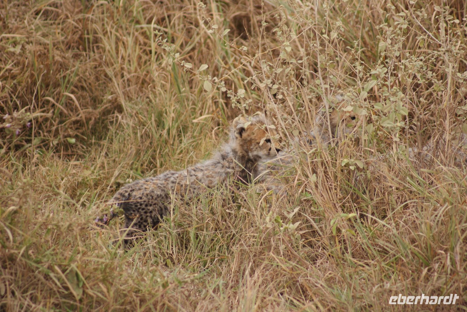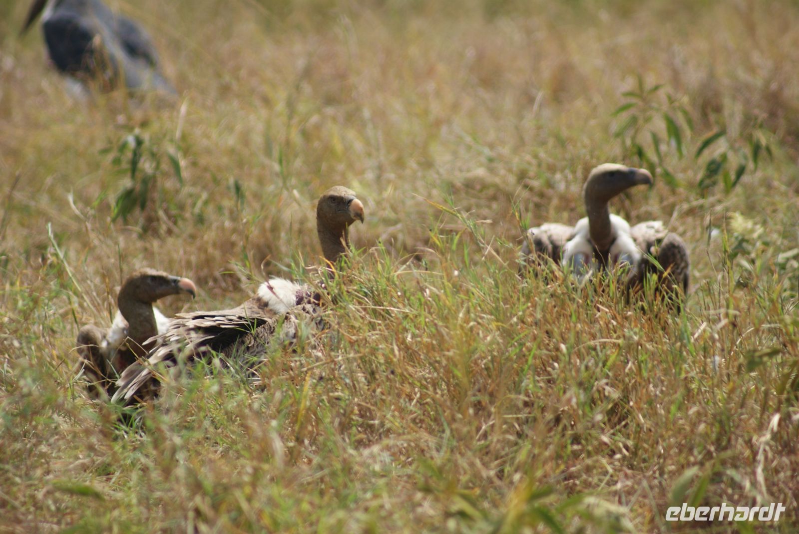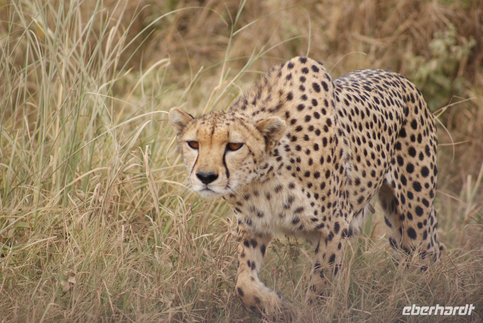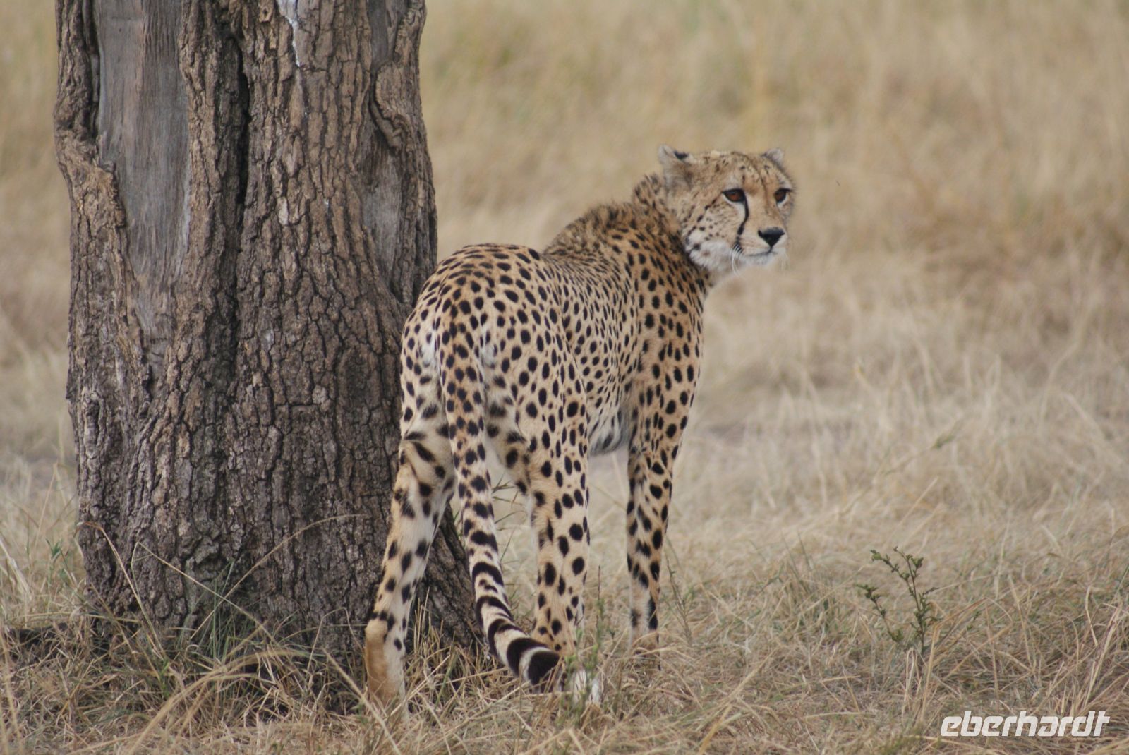Wir sichten erneut viele Tiere, darunter einen Geparden, zwei Löwinnen, die ein Gnu erlegt haben und dies verspeisten. Auf der Weiterfahrt erreicht uns die Meldung, dass eine Leopardin gesichtet wurde, natürlich sind wir (leider) nicht die einzigen, die dieses besondere Tier sehen möchten und so versammeln sich zu viele Fahrzeuge, deren Guides ebenso die best möglichste Sicht bieten möchten. Nach längerer Suche erscheint das Tier unmittelbar neben unserem Jeep, sodass wir nur noch 2-3 m entfernt sind. Zurück im Camp gibt es wieder ein schmackhaftes Abendessen für uns. Das heutige Thema: Afrikanische Spezialitäten mit viel Gemüse, dazu Lamm, Huhn und Rind. Wir kosten u.a.die typisch kenianische Sättigungsbeilage „Ugali“, eine Art Maispolenta, die hier das absolute Grundnahrungsmittel ist, dazu Kochbananenbeilagen, Spinat-Kartoffel-Püree, etc. Nach dem Essen tanzen die Masaikrieger für uns, wir erkennen viele unserer Wächter darunter wieder. Auch die berühmten Sprünge und Gesänge dürfen natürlich nicht fehlen. So endet ein weiterer erlebnisreicher Tag in der Masai Mara und wir dürfen gespannt sein, was der morgige Tag uns bringt.