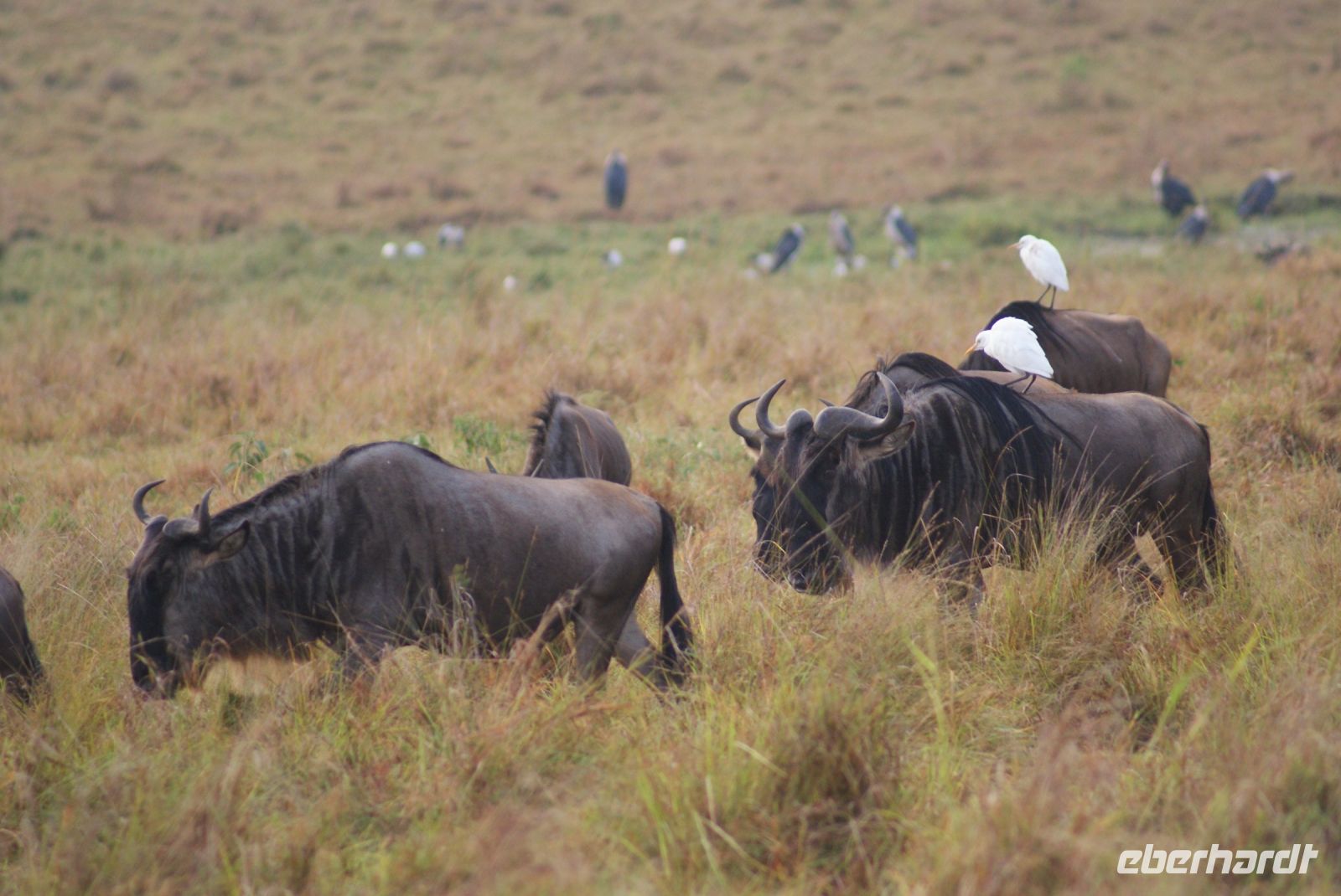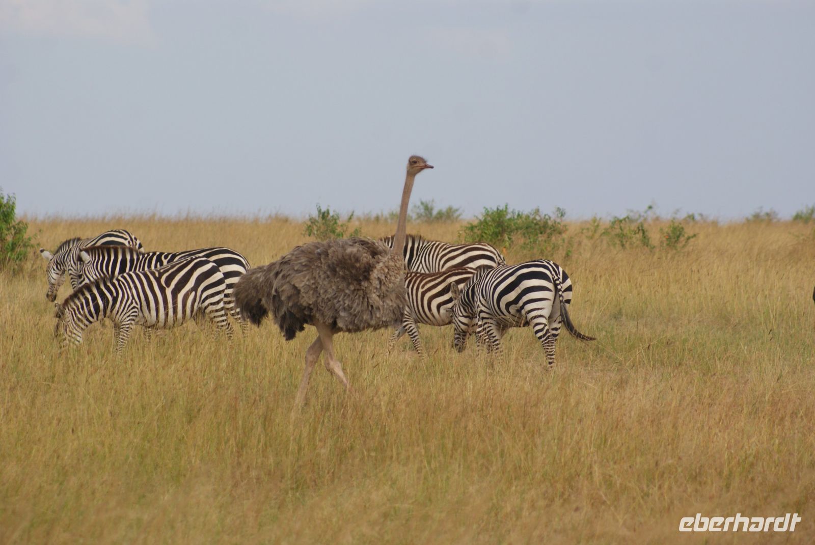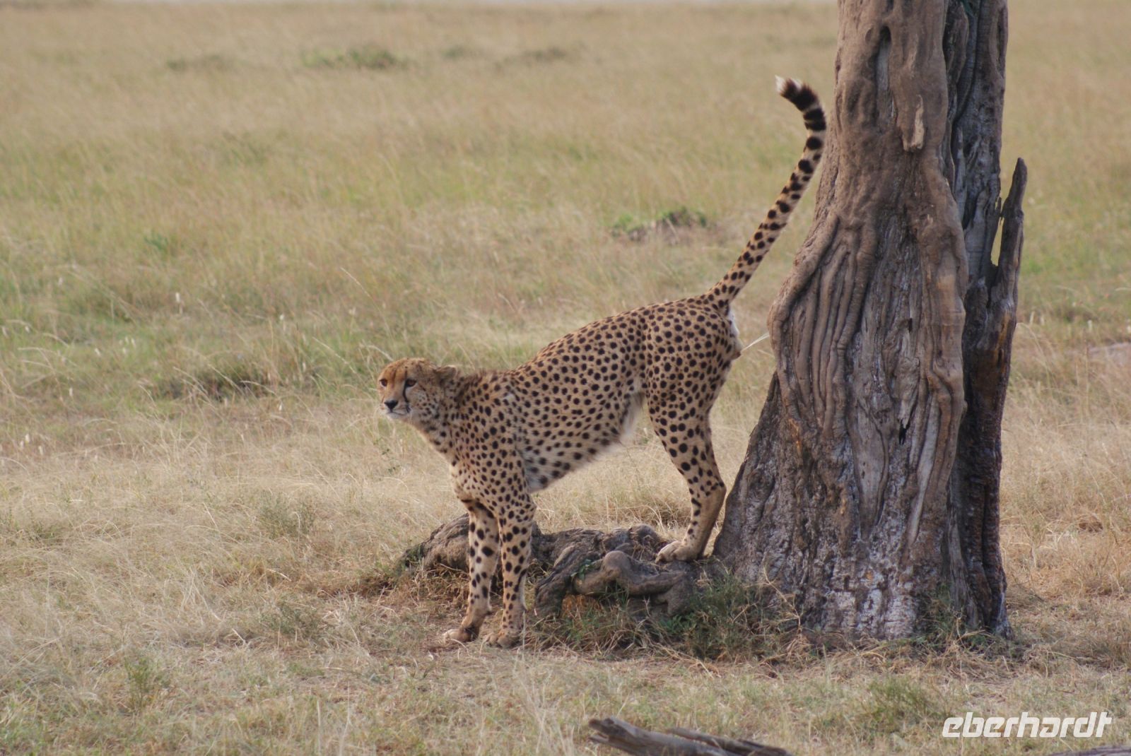 Wir verlassen den Lake Nakuru und über eine gut ausgebaute Überlandstraße geht es weiter durch Kenia Richtung Masai Mara. Hierzu benötigen wir fünf Stunden und haben eine Strecke von etwa 240 Km vor uns, die sich jedoch sehr interessant gestaltet mit herrlicher Landschaft, interessanten Dörfern, Landwirtschaft und typisch afrikanischer Musik in unserem Jeep. Unterwegs halten wir für einen Toilettenstopp an einem Souvenirladen, wo wir nochmals über so manches Mitbringsel verhandeln. Mittags erreichen wir das Sekenani Gate und während unsere Guides das Einreiseprozedere erledigen, beobachten wir das geschäftige Treiben der Masai Frauen, die vehement versuchen, ihre Waren an Mann und Frau zu bringen. Nun heißt es schnellstmöglich in die 1500 Km² große Masai Mara zu gelangen. Schnell ist es geschafft und wir dürfen in die „getupfte Savanne der Masai“, wie diese übersetzt heißt, eintreten. Schon kurz nach unserer Ankunft werden wir in unmittelbarer Nähe von der ersten Gnuherde mit Elefanten begrüßt, welch ein Empfang. Da das Mittagessen und der Check-in im Mara Bush Camp auf uns wartet, belassen wir es mit einem schnellen Foto. Bei Ankunft werden wir von Manager Nelson herzlich empfangen und per kurzem Briefing über die Besonderheiten des Camps aufgeklärt. Wir befinden uns jetzt mitten im Busch, keine Zäune schützen das Camp, sodass wir vor und nach Sonnenuntergang nur noch in Begleitung von Askaris, den einheimischen Wächtern unterwegs sein dürfen. Hier leben außer uns für die kommenden drei Tage auch Hippos, Krokodile und vielleicht auch der ein oder andere Elefant. Nach einem schmackhaften Mittagsmenü beziehen wir unsere neuen Herbergen und starten dann am Nachmittag erneut mit frischer Kraft zur Nachmittagspirschfahrt. Wir sehen Topiantilopen, Hyänen, Zebras, Strauße und zur Krönung einen Geparden in unmittelbarer Nähe vor uns. Ein rundum gelungenen Ankunftstag in der berühmten Masai Mara und wir freuen uns schon auf die kommenden Tage, in denen wir sicherlich Dank des Engagements unserer tollen Guides Caleb und Nick, unendlich viele schöne Tierbegegnungen haben werden. Am Abend speisen wir vom schmackhaften „Mongolischem Buffet“, von dem wir die Zutaten aussuchen und die beiden Köche diese vor unseren Augen fertigstellen. So sitzen wir bei Vollmond unterm Sternenhimmel und sind einfach nur voller schöner erster Eindrücke dieser besonderen Umgebung.