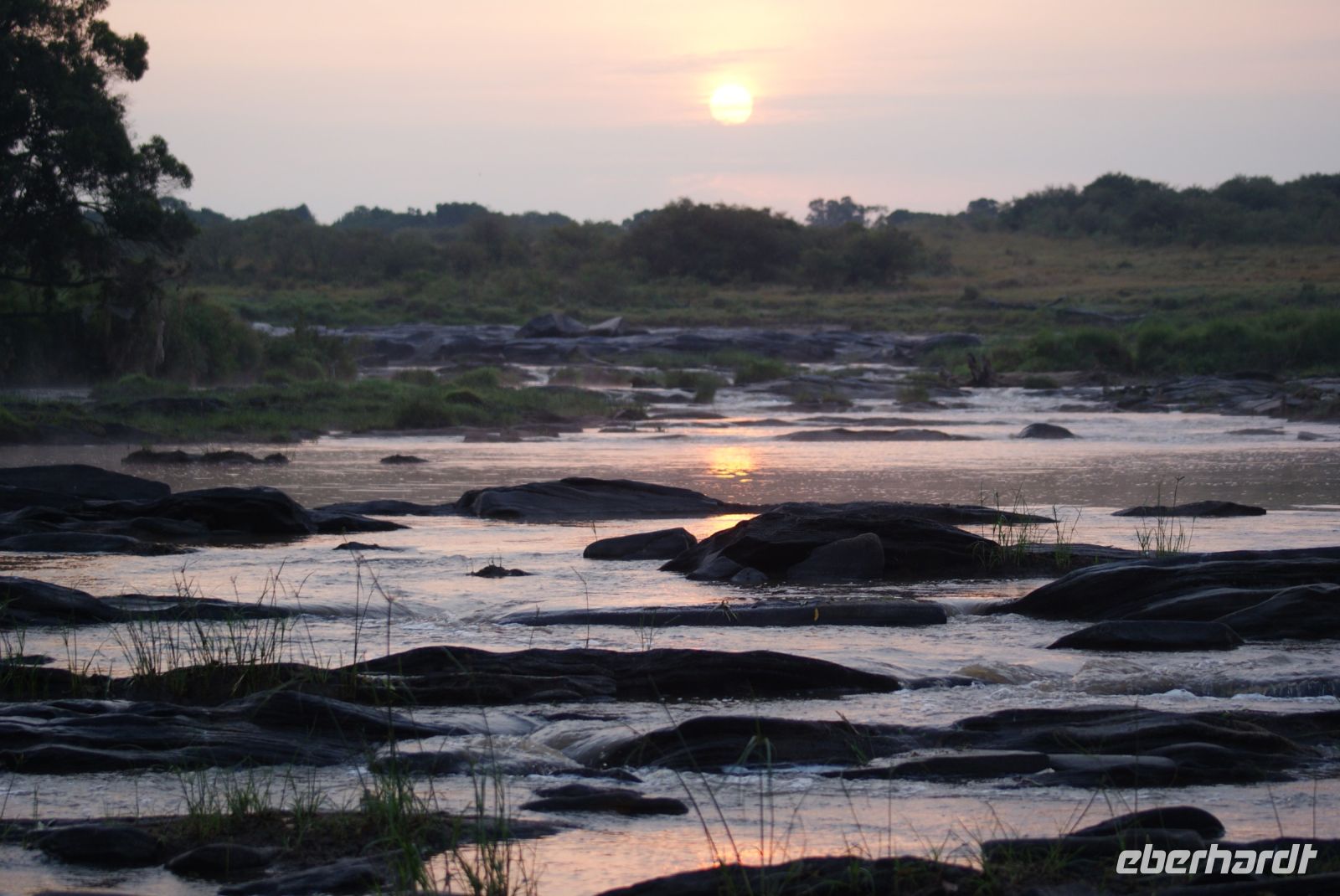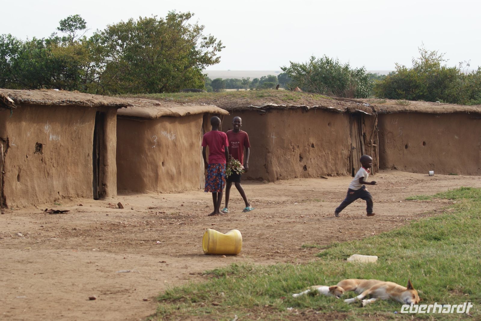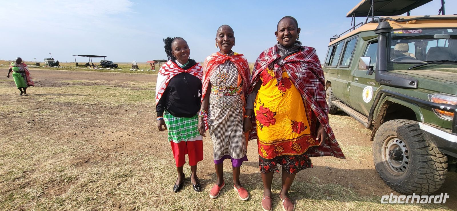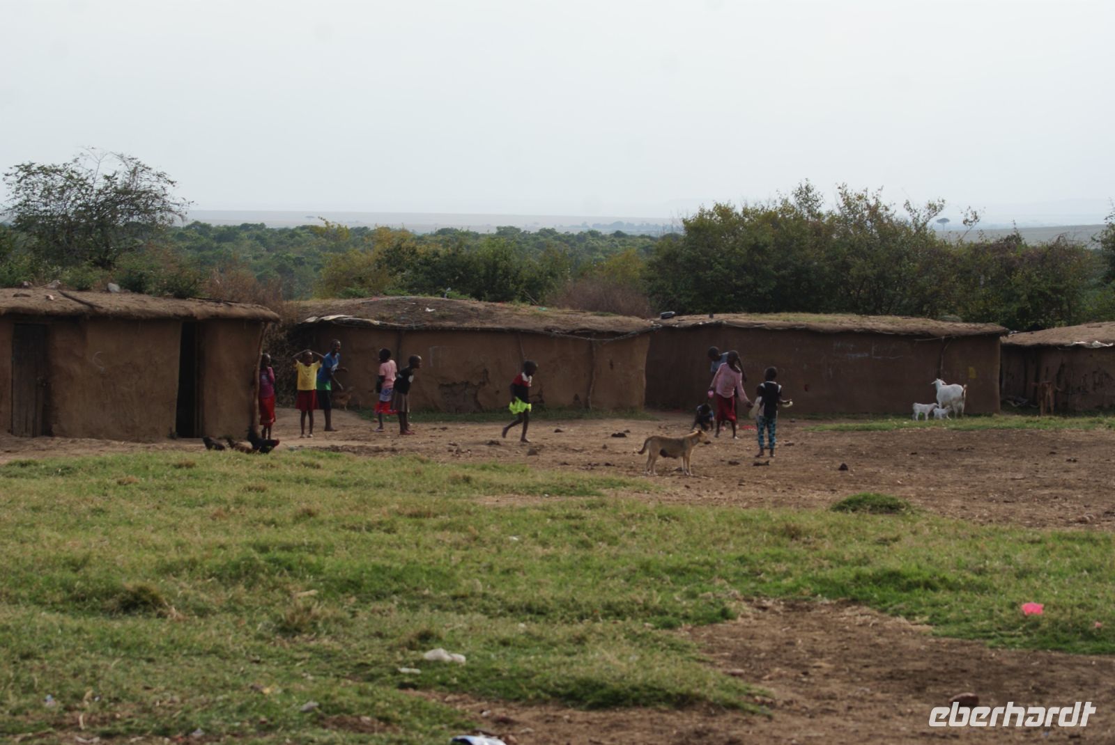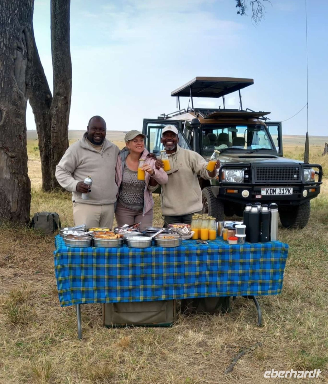 Nach einer angenehm ruhigen Nacht, nutzen wir erneut die frühen Morgenstunden und verlassen unser Camp um 06.30 Uhr. Auch heute nehmen wir unser leckeres Frühstück vom Camp zusammengestellt mit. Zunächst begegnen wir noch in der Dämmerung einer Elefantenherde und schauen den Müttern mit Kälbern beim Grasen zu. Hyänen passieren unsere Strecke, Schabrakenschakale kreuzen den Weg, Kuhantilopen am Horizont und Hippos im Fluss lassen auch diesen Morgen zu einem schönen Erlebnis werden. Nun steuern wir den Mara Fluss an, bauen hier unser Frühstück auf und speisen genüsslich mit Blick auf den Fluss und seine Bewohner. Hippos und Krokodile soweit das Auge reicht, eine unwirkliche Kulisse, von der wir umgeben sind. So verbringen wir einen wunderbaren Vormittag mit weiteren Tiersichtungen wie Hyänen und Geier am Büffelkadaver, Topis und Zebras in der Savanne der Masai Mara. Ein Traum für jeden Tierfreund, der dies einmal hautnah erleben möchte. Mittags kehren wir zurück ins Camp, wo exklusiv für uns ein sehr schmackhaftes Menü gezaubert wird. Einfach köstlich und ein super toller Service, da alles für uns frisch und nach unseren Wünschen zubereitet wird. Am Nachmittag treffen wir uns erneut, um ein in der Nähe gelegenes Masai Dorf zu besuchen. Guide Caleb besorgt im nahgelegenen Nachbarort Stifte und Schulhefte für die Masai Kinder, damit wir ein paar nützliche Gastgeschenke mitbringen können.