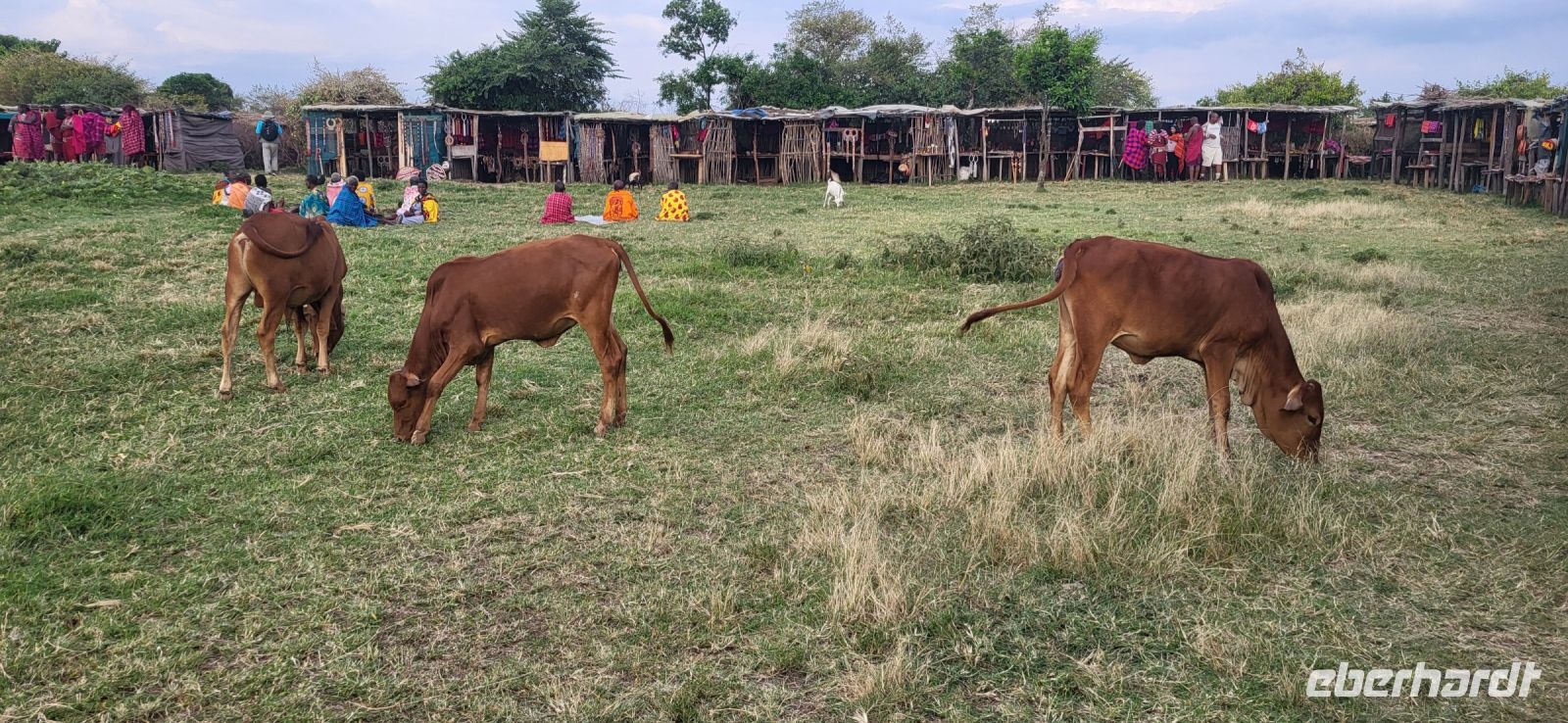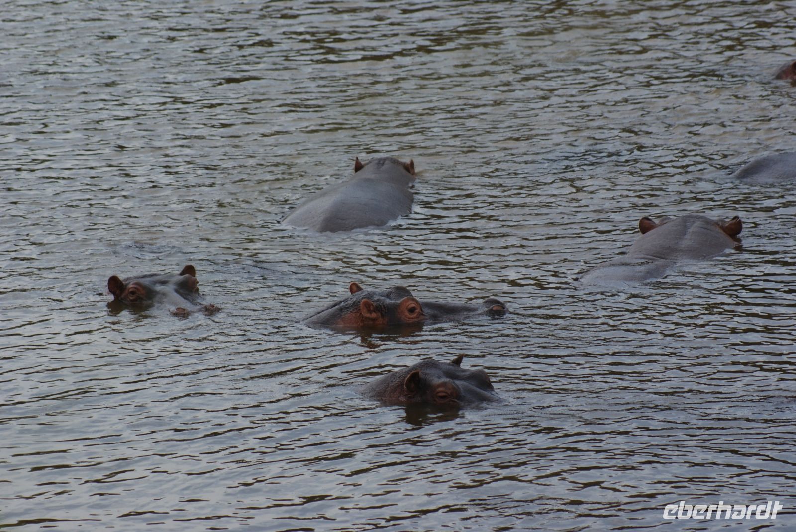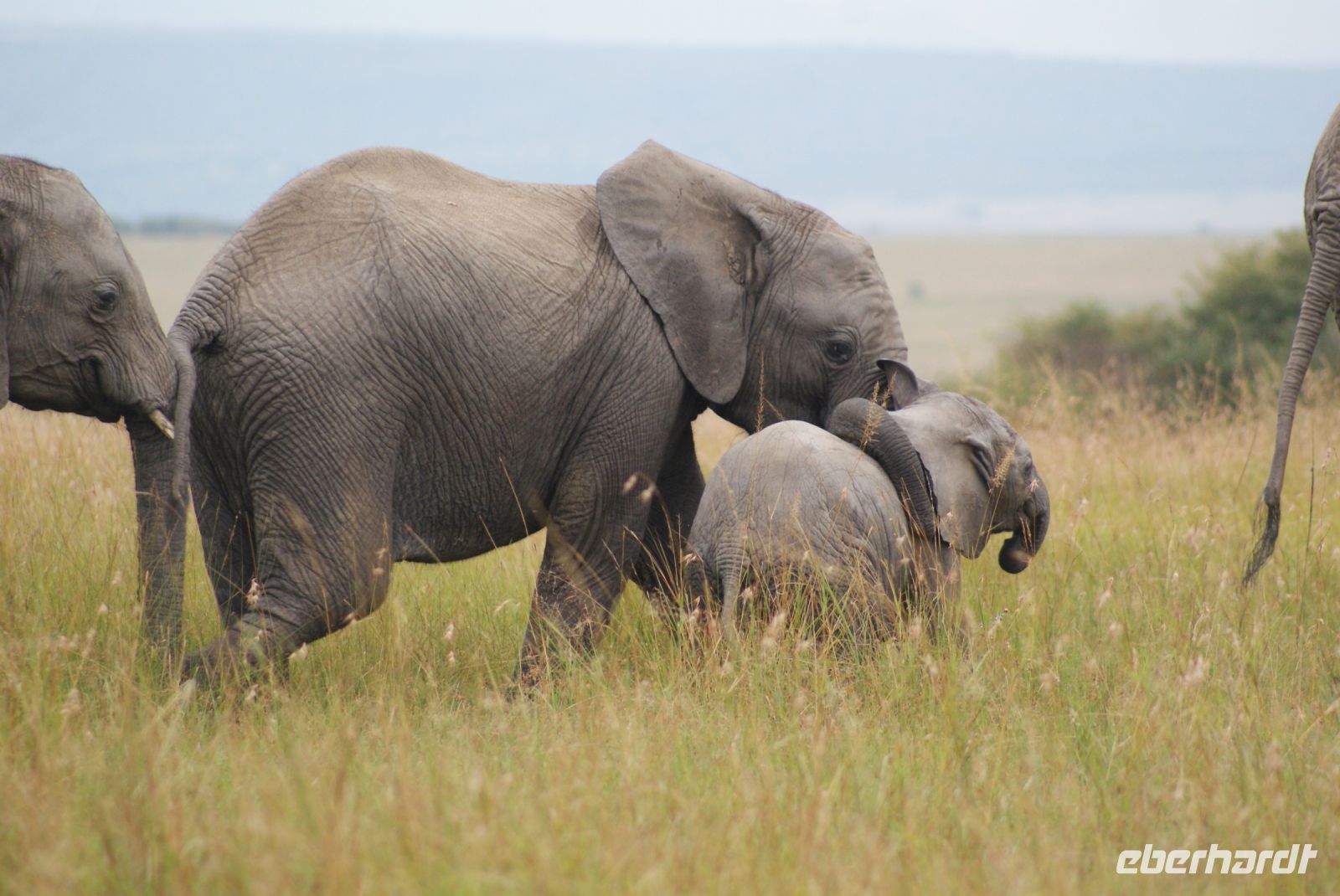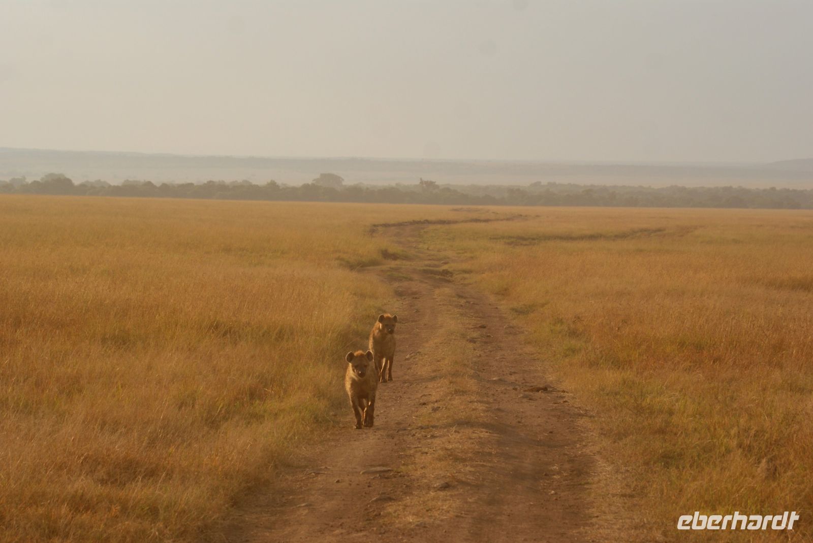 Nach einer angenehm ruhigen Nacht, nutzen wir erneut die frühen Morgenstunden und verlassen unser Camp um 06.30 Uhr. Auch heute nehmen wir unser leckeres Frühstück vom Camp zusammengestellt mit. Zunächst begegnen wir noch in der Dämmerung einer Elefantenherde und schauen den Müttern mit Kälbern beim Grasen zu. Hyänen passieren unsere Strecke, Schabrakenschakale kreuzen den Weg, Kuhantilopen am Horizont und Hippos im Fluss lassen auch diesen Morgen zu einem schönen Erlebnis werden. Nun steuern wir den Mara Fluss an, bauen hier unser Frühstück auf und speisen genüsslich mit Blick auf den Fluss und seine Bewohner. Hippos und Krokodile soweit das Auge reicht, eine unwirkliche Kulisse, von der wir umgeben sind. So verbringen wir einen wunderbaren Vormittag mit weiteren Tiersichtungen wie Hyänen und Geier am Büffelkadaver, Topis und Zebras in der Savanne der Masai Mara. Ein Traum für jeden Tierfreund, der dies einmal hautnah erleben möchte. Mittags kehren wir zurück ins Camp, wo exklusiv für uns ein sehr schmackhaftes Menü gezaubert wird. Einfach köstlich und ein super toller Service, da alles für uns frisch und nach unseren Wünschen zubereitet wird. Am Nachmittag treffen wir uns erneut, um ein in der Nähe gelegenes Masai Dorf zu besuchen. Guide Caleb besorgt im nahgelegenen Nachbarort Stifte und Schulhefte für die Masai Kinder, damit wir ein paar nützliche Gastgeschenke mitbringen können.