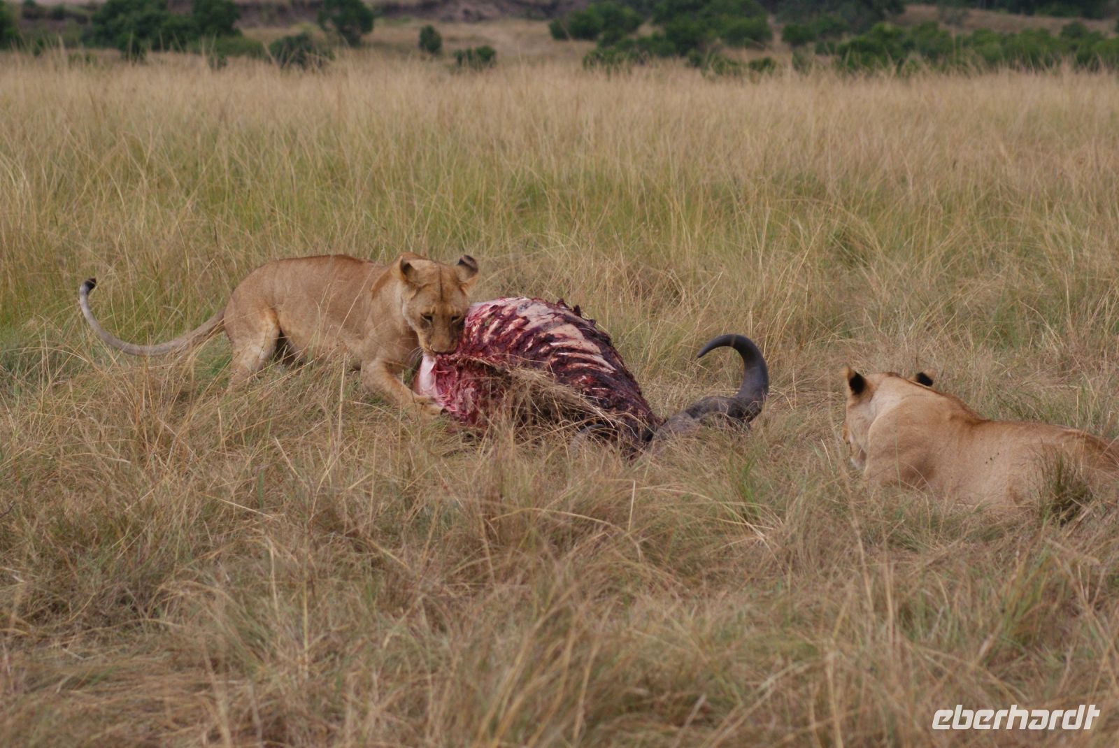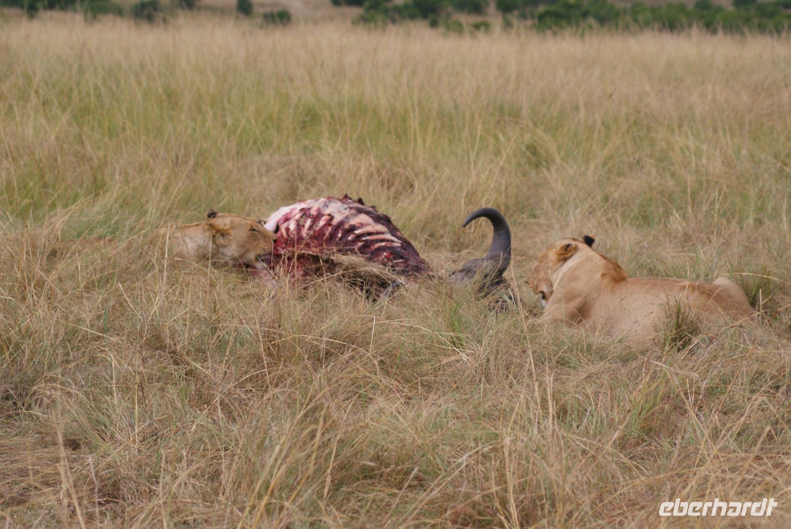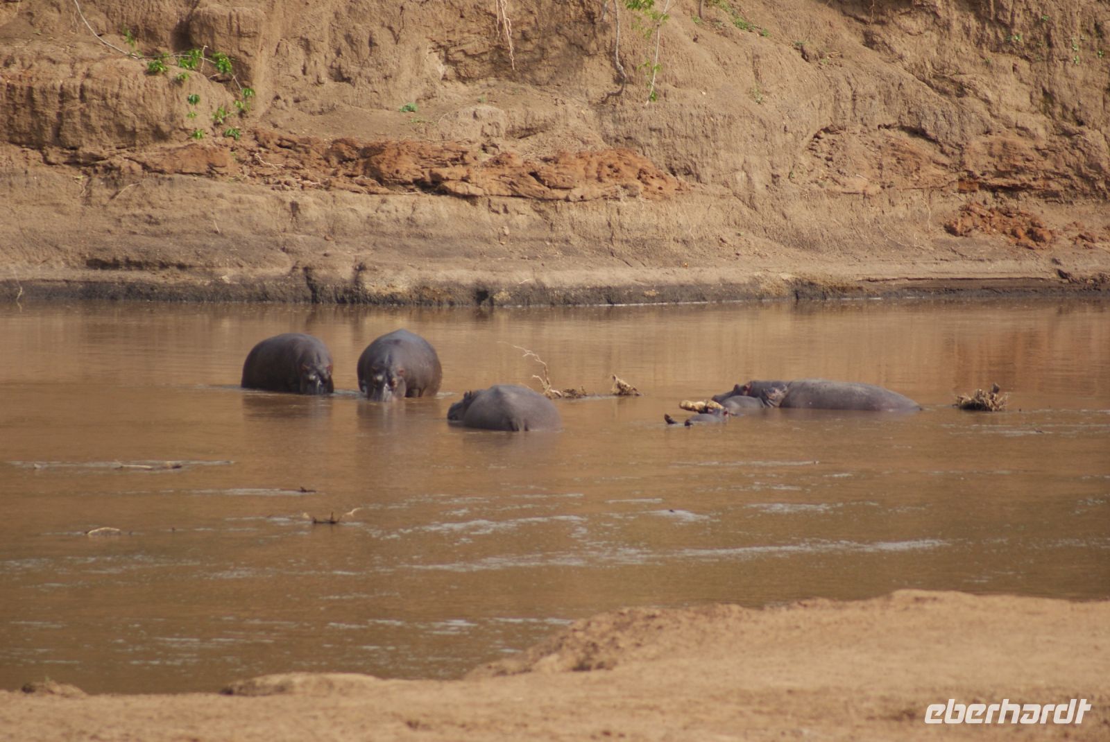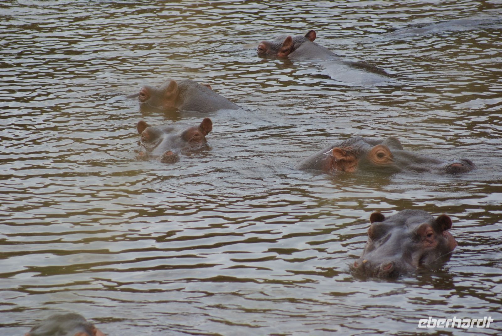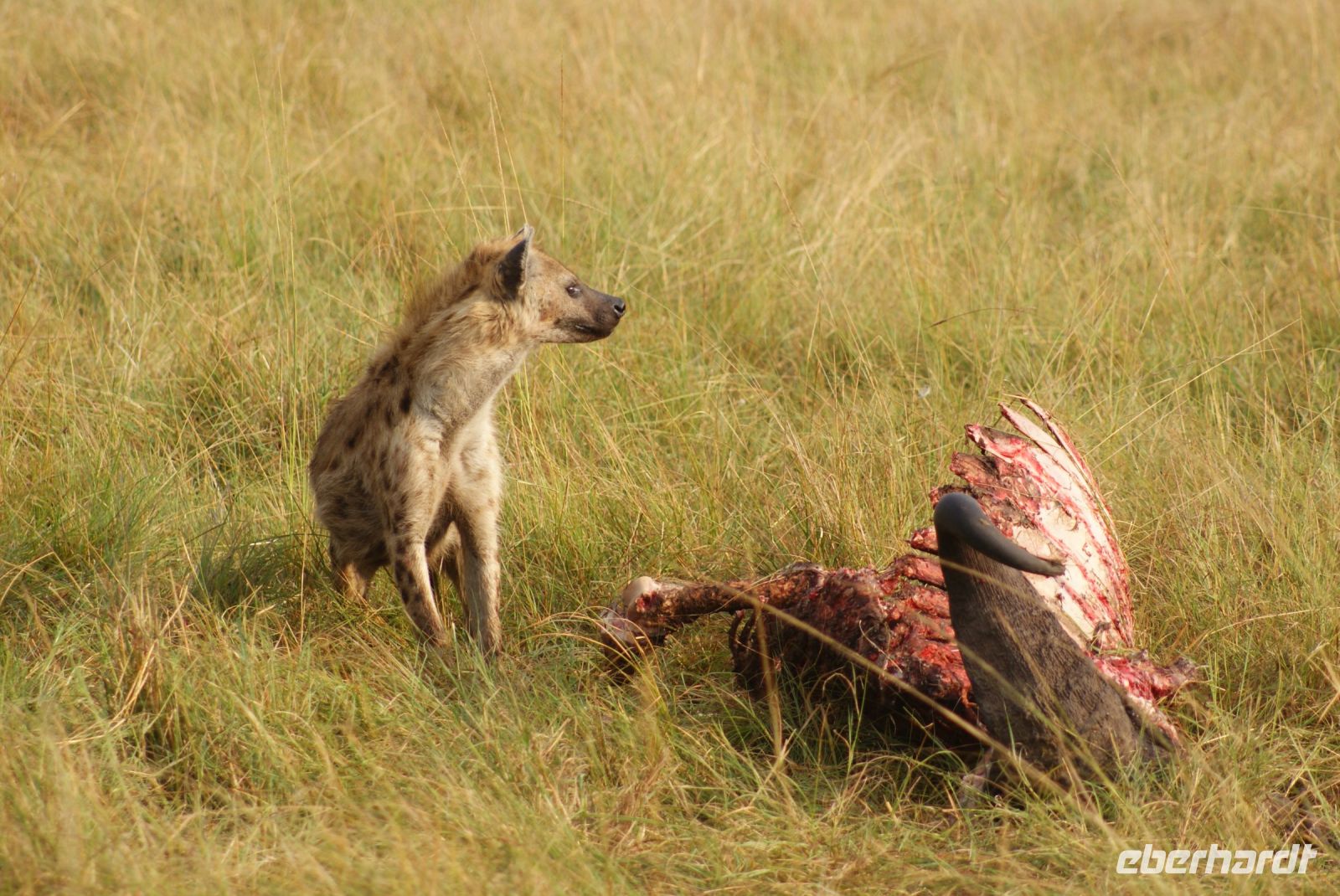 Nach einer angenehm ruhigen Nacht, nutzen wir erneut die frühen Morgenstunden und verlassen unser Camp um 06.30 Uhr. Auch heute nehmen wir unser leckeres Frühstück vom Camp zusammengestellt mit. Zunächst begegnen wir noch in der Dämmerung einer Elefantenherde und schauen den Müttern mit Kälbern beim Grasen zu. Hyänen passieren unsere Strecke, Schabrakenschakale kreuzen den Weg, Kuhantilopen am Horizont und Hippos im Fluss lassen auch diesen Morgen zu einem schönen Erlebnis werden. Nun steuern wir den Mara Fluss an, bauen hier unser Frühstück auf und speisen genüsslich mit Blick auf den Fluss und seine Bewohner. Hippos und Krokodile soweit das Auge reicht, eine unwirkliche Kulisse, von der wir umgeben sind. So verbringen wir einen wunderbaren Vormittag mit weiteren Tiersichtungen wie Hyänen und Geier am Büffelkadaver, Topis und Zebras in der Savanne der Masai Mara. Ein Traum für jeden Tierfreund, der dies einmal hautnah erleben möchte. Mittags kehren wir zurück ins Camp, wo exklusiv für uns ein sehr schmackhaftes Menü gezaubert wird. Einfach köstlich und ein super toller Service, da alles für uns frisch und nach unseren Wünschen zubereitet wird. Am Nachmittag treffen wir uns erneut, um ein in der Nähe gelegenes Masai Dorf zu besuchen. Guide Caleb besorgt im nahgelegenen Nachbarort Stifte und Schulhefte für die Masai Kinder, damit wir ein paar nützliche Gastgeschenke mitbringen können.