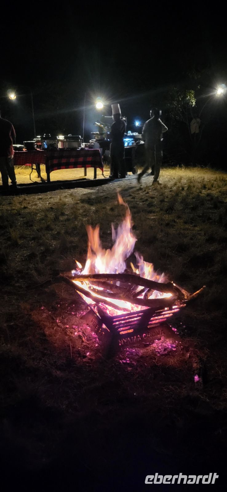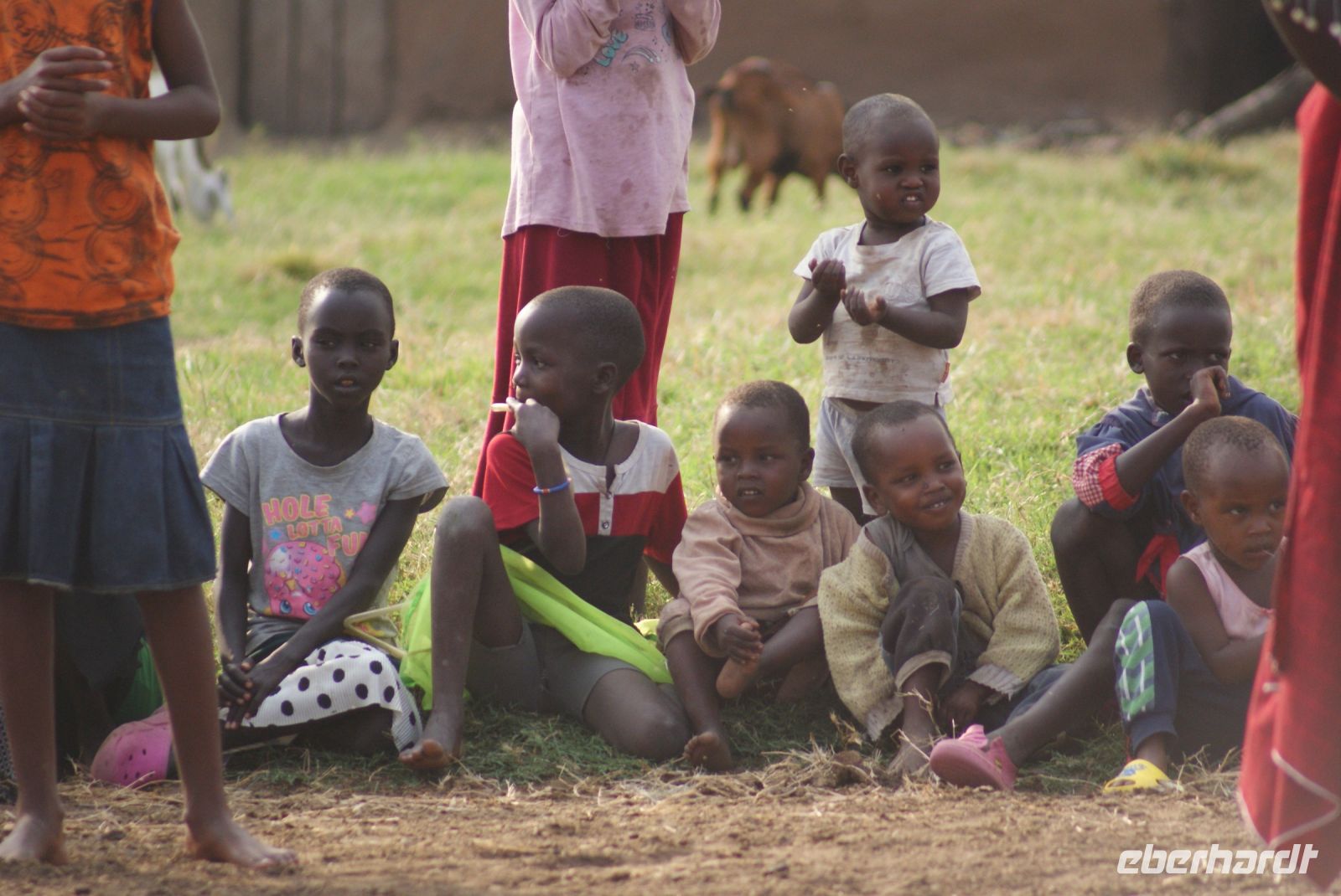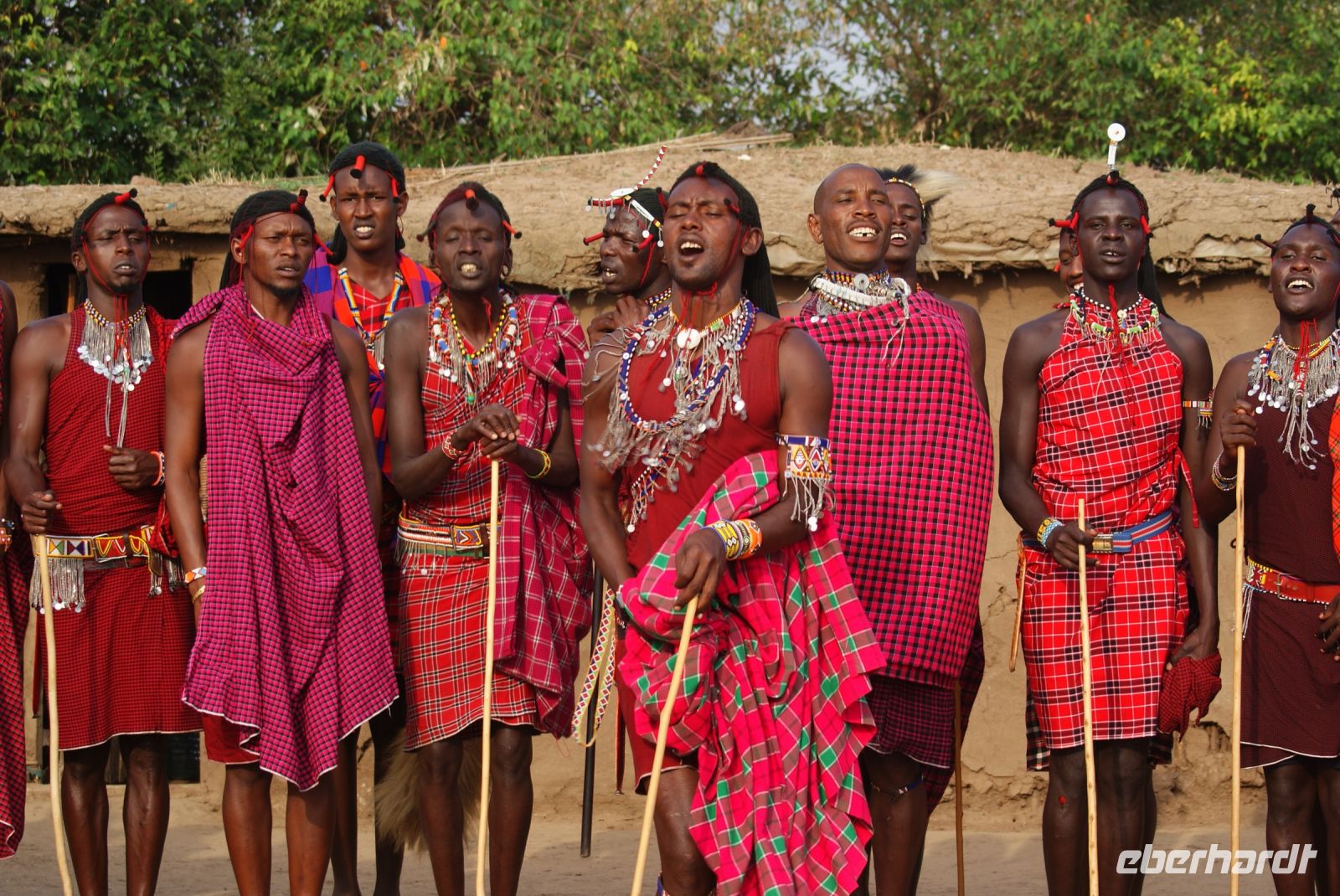 Nach Ankunft im Masai Dorf werden wir von Chief Robin und Guide Edward in Empfang genommen sowie 40 weiteren Dorfmitgliedern begrüßt und mit zwei Liedern der Masaifrauen und den Masai Kriegern willkommen heißen. Danach tanzen die Masai Krieger für uns und zeigen ihre enorme Sprungkraft. Anschließend demonstriert man uns, wie ohne moderne Hilfsmittel mit Reibung und verschiedenen Hölzern, dazu Elefantendung, Feuer gemacht wird. Wer möchte, darf einen Blick in eine Masai Hütte werfen. Diese wird von den Frauen mit Kuhdung und Erde gefertigt. Innen angekommen, besteht diese aus drei Räumen. Elternschlafzimmer, Kinder-und Gästezimmer. In der Mitte der Kochbereich und ein kleines Fenster, dass dem Tageslicht und Rauchabzug dient. Wir hören, dass das Dorf 250 Personen fasst, es 46 Häuser gibt, in denen 46 Frauen, deren Kinder und teilweise auch deren Ehemänner anwesend sind. Ein Masai Mann kann bis zu 11 Frauen heiraten, wenn er für jede Frau 10 Kühe aufbringt…Das Leben findet tagsüber eher außerhalb der Hütten statt und abends wird zur Sicherheit das Vieh in den Kral, also in das Innere der Community getrieben. Abschließend verteilen wir unsere Gaben an die sich brav aufreihenden Kinder, für die wir sicherlich mit unseren Geschenken ebenfalls eine Attraktion sind. Wir verlassen die Masai und kehren zurück in die Masai Mara. Das Bushcamp überrascht uns mit einem Sundowner in der Savanne und dazu noch mit kleinen Köstlichkeiten, die in der Savanne frisch für uns durch eine Köchin zubereitet werden. Welch ein Luxus, welch eine wunderbare Atmosphäre. Gemeinsam stimmen wir ein schönes Lied an und singen aus Leibeskräften: „Jambo, Jambo Bwana….“ Einfach nur schön! Am Abend erleben wir ein Bushdinner und werden zu einem Platz außerhalb des Camps gebracht. Es erfolgt ein Abendessen unterm Himmelszelt mit Lagerfeuer und nächtlicher Atmosphäre. Über uns ist der Vollmond hell erleuchtet und wirft ein zartes Licht über die Savanne. Schon sehr bald werden wir dieses traumhafte Camp und Campmanager Nelson mit wunderbarem Team schmerzlich vermissen, die uns beispiellos betreut und verwöhnt haben. Es war ein einmaliger Aufenthalt im Herzen Kenias, den niemand von uns missen möchte. Noch viel weniger gerne reisen wir von hier morgen ab….