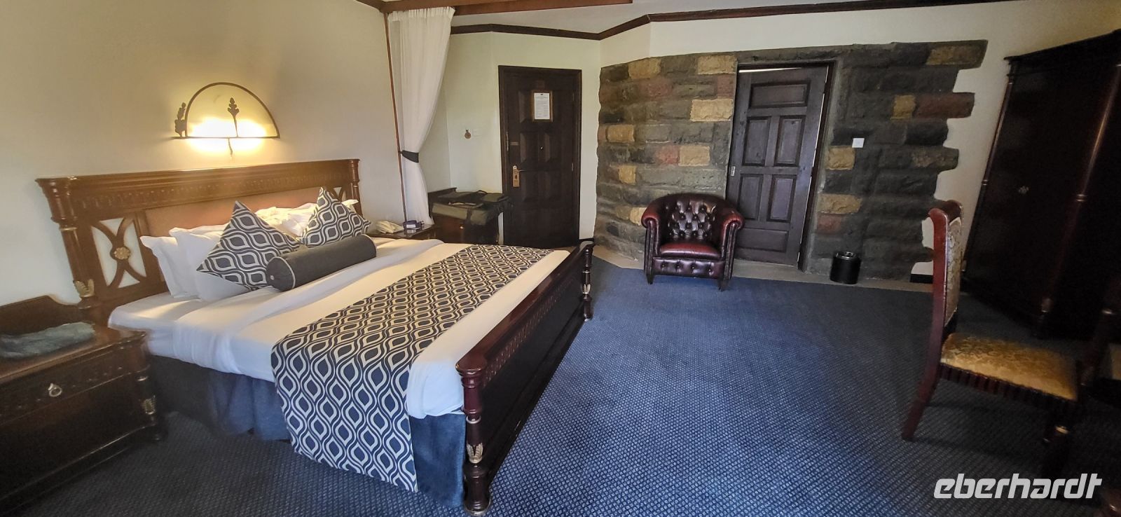Zunächst statten wir jedoch dem vor den Toren Nairobis gelegene berühmte Karen Blixen Museum einen Besuch ab. Ein Abschlusshighlight für alle Fans des Films „Jenseits von Afrika“, denn wir befinden uns nun am original Drehort und gleichzeitig dem eigentlichen Wohnhaus von Karen Blixen. Da der Film auf einer wahren Begebenheit beruht, ist es umso imposanter, die Räumlichkeiten und original Exponate aus vergangenen Tagen zu bestaunen. Ein magischer Moment. Selbst die Kleidung aus gleichnamigem Film mit Meryl Streep und Robert Redford befindet sich sichtbar im Kleiderschrank des Schlafzimmers. Der Ort an sich ist bestens erhalten, bzw. restauriert. Guide Jane erzählt uns die Eckdaten zu Karen Blixen und führt uns anschließend durch alle Räumlichkeiten. Wir lassen die besonderen Eindrücke auf uns wirken und umso schöner ist es, dass wir hier im Haus beinahe alleine unterwegs sind. Im Anschluss nehmen wir ein vorzügliches Mittagsbuffet im Karen Blixen Coffee Garden im gleichnamigen Stadtteil Karen ein, einer der Nobelviertel der Hauptstadt.