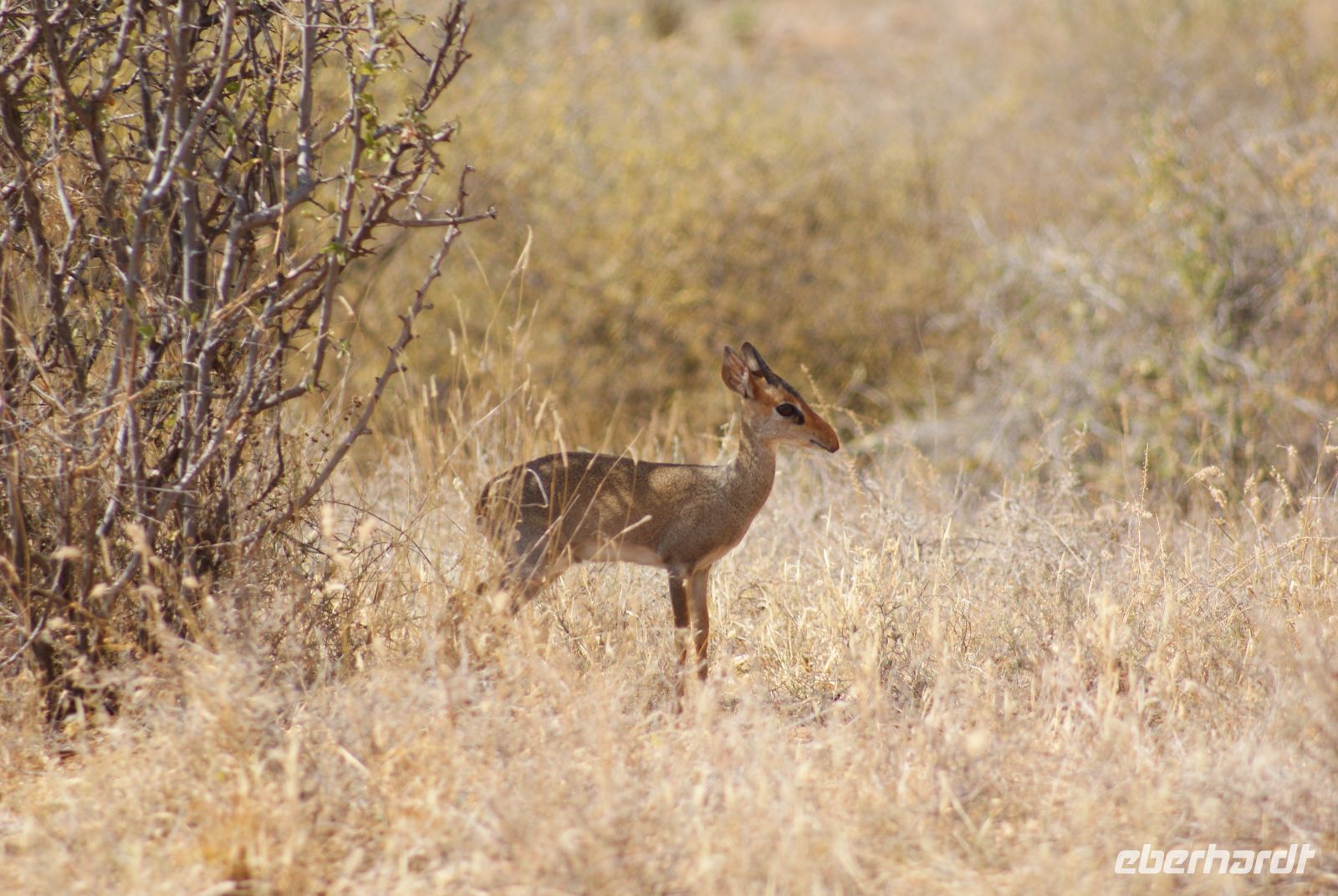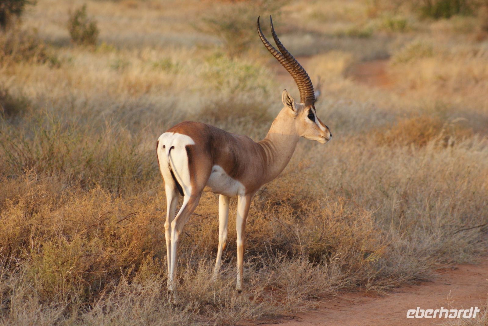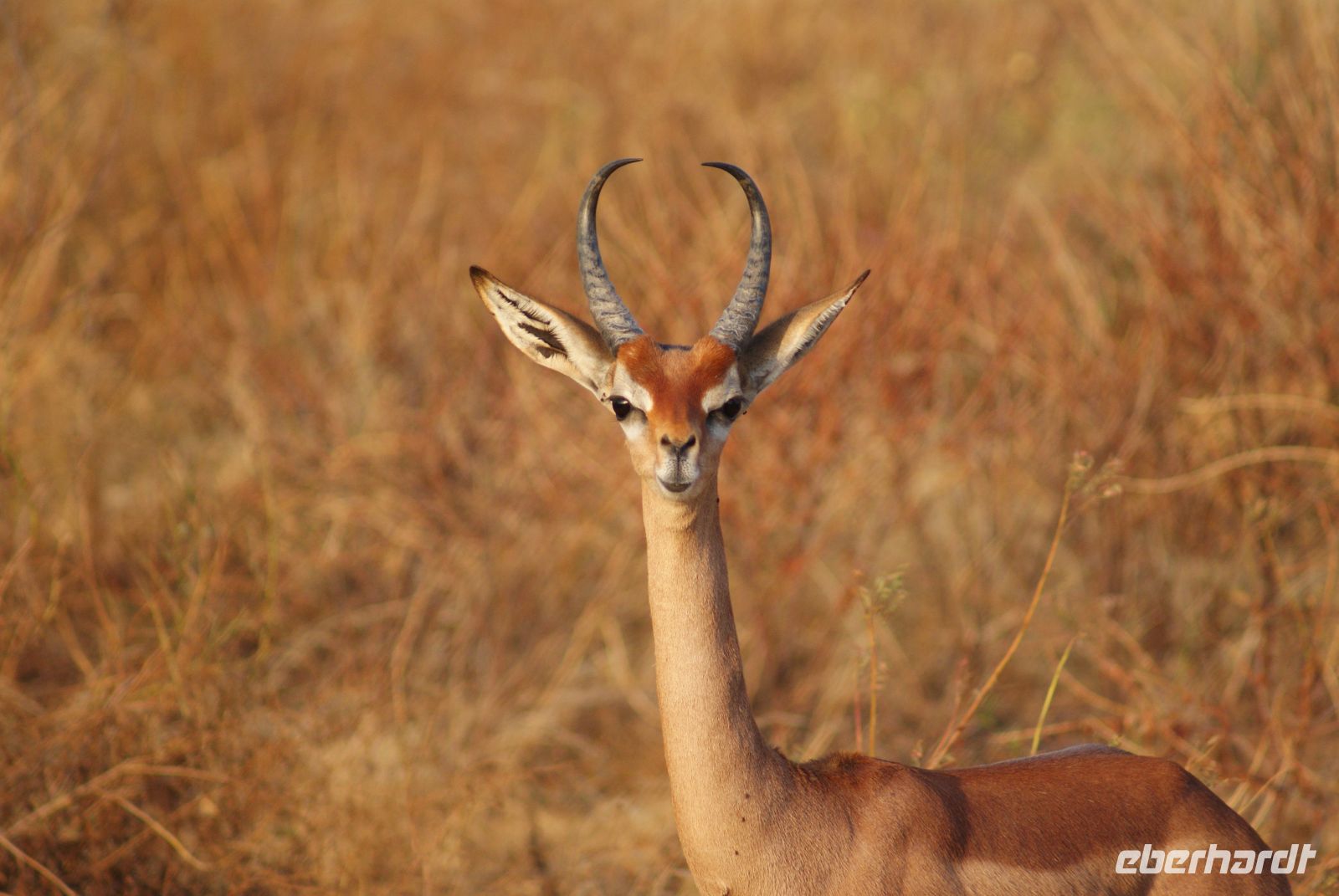 Mit einem sanften persönlichen Weckruf dazu ein Tablett mit duftendem Kaffee begrüßen uns die Campmitarbeiter am Zelt – durch eine kleine Schleuse wird der Kaffee ins Innere gereicht, so beginnt der Tag auf typisch afrikanische Weise: charmant, leise und mit Blick auf die Natur. Die kurz danach aufgehende Sonne taucht die trockene Savannenlandschaft in warmes Licht, als wir aufbrechen zu unserer morgendlichen Pirschfahrt. Das Frühstück ist im Gepäck – stilecht als „Bush Breakfast“, liebevoll vom Camp vorbereitet und in Taschen verpackt. Auch Tisch und Stühle reisen mit, denn wir haben uns für ein Frühstück mitten im Busch entschieden. Unsere Fahrt führt uns durch die wunderschöne Landschaft des Samburu National Reserve, einem der ursprünglichsten Parks Kenias. Das Reservat liegt nördlich des Mount Kenya und ist bekannt für seine besondere Tierwelt – viele Arten, die es nur nördlich des Äquators gibt, leben hier: darunter die endemische Rothschildgiraffe, das Grevyzebra und die Giraffengazelle, auch als Gerenuk bekannt. Schon am frühen Morgen zeigt sich das Reservat von seiner besten Seite. Wir beobachten zahlreiche Elefanten, die gemächlich durch das trockene Flussbett des Ewaso Nyiro ziehen. Kleine Dik Diks huschen durchs Unterholz – kaum größer als ein Hase und dabei so scheu wie possierlich. Ein majestätischer Raubadler kreist vor uns, während ein Graukopflist geduldig im Geäst sitzt. Höhepunkt der morgendlichen Fahrt sind ohne Frage drei Geparden, die sich mit gespitzten Ohren und fokussiertem Blick an ihre Beute heranpirschen. Die Spannung ist mit Händen zu greifen – ein echtes Safarierlebnis in freier Wildbahn. Später genießen wir unser Frühstück unter freiem Himmel – die Speisen haben wir am Vorabend gemeinsam mit dem Küchenchef ausgewählt, und sie schmecken so gut, wie sie uns angepriesen wurden. Ein kurzer „Busch-Stopp“ in sicherer Entfernung gehört natürlich dazu – Abenteuer mit Komfort, typisch Safari eben. Gegen Mittag kehren wir voller Eindrücke zurück ins Camp. Wir sind hungrig – nicht nur auf das nächste Abenteuer, sondern auch auf das köstliche Mittagessen, das schon auf uns wartet. Die Küche verwöhnt uns erneut mit liebevoll zubereiteten Gerichten. Nun noch ein wenig ruhen und schon ruft Nick und somit das nächste Safari-Kapitel – am Nachmittag geht es erneut hinaus in die weite Wildnis des Samburu-Nationalparks. Die Sonne taucht die Landschaft in warmes Licht, und schon bald begegnen wir den ersten scheuen Bewohnern: ein paar flinke Dik Diks huschen durchs trockene Buschland, kaum größer als ein Hase sind sie sehr possierlich anzusehen. Dann ein ganz besonderer Moment: Wir entdecken erneut Gerenuks! Die grazilen Antilopen mit den langen Hälsen geben einen Anblick, der uns schmunzeln lässt. Sie sehen aus wie eine Mischung aus Antilope und Giraffe – skurril, aber wunderschön.