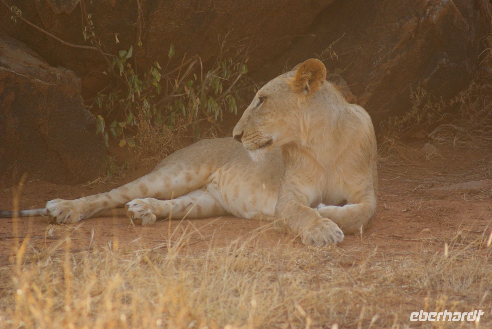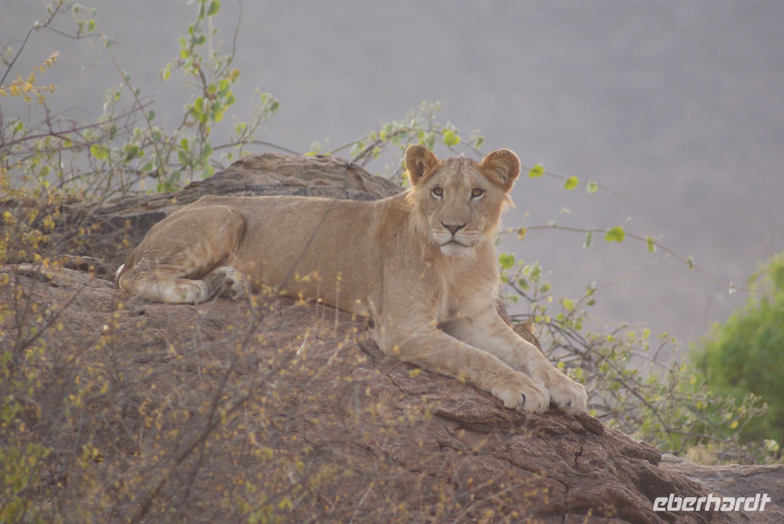 Unser letzter Morgen in Kenia beginnt nochmal ganz wild – im wahrsten Sinne des Wortes. Früh raus aus den Federn und rein in den Landcruiser, denn eine letzte Pirschfahrt steht auf dem Programm. Wir folgen Löwenspuren auf der Piste und fast wie bestellt, trohnt dieser nochmals auf einem Termitenhügel in der goldenen Morgensonne – majestätisch und gelassen. Ein würdiger Abschied aus der Tierwelt des Lumo Schutzgebiets!