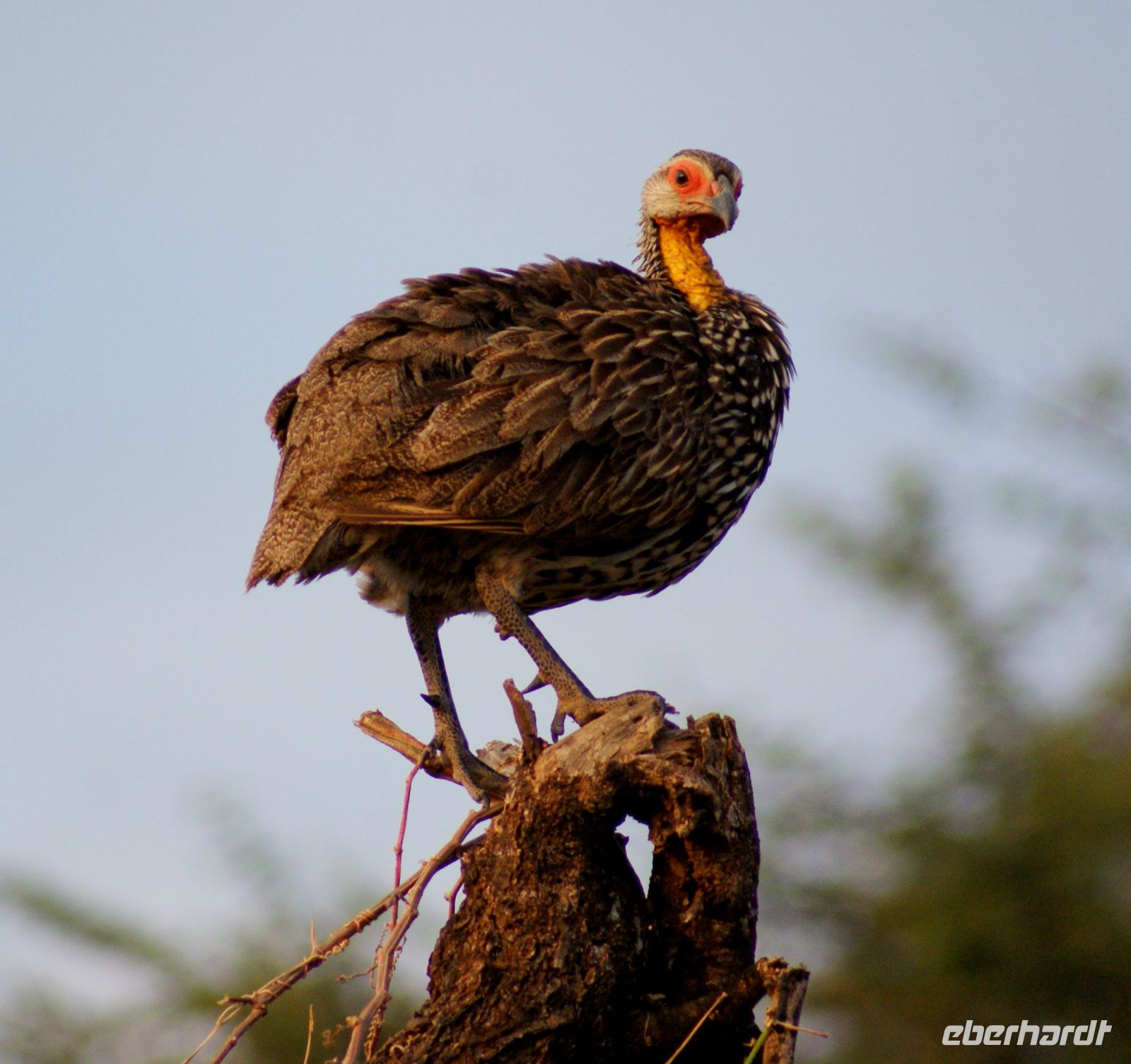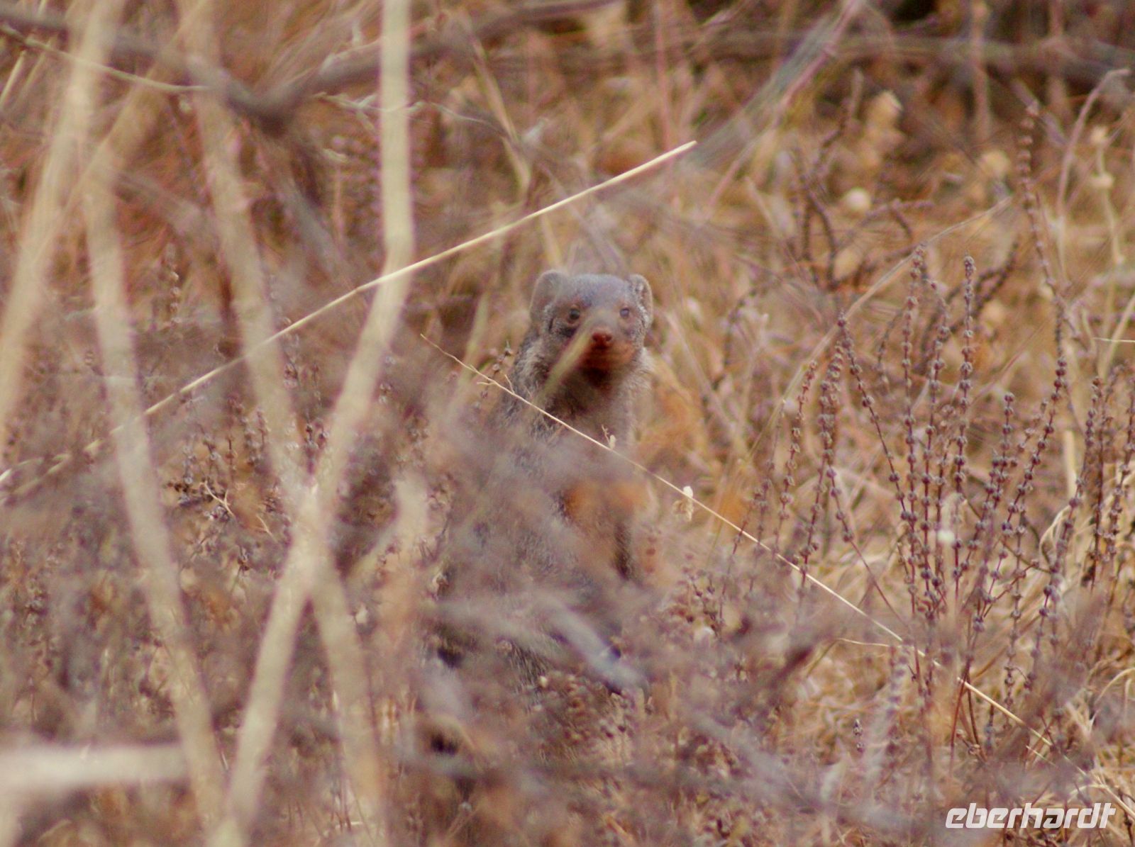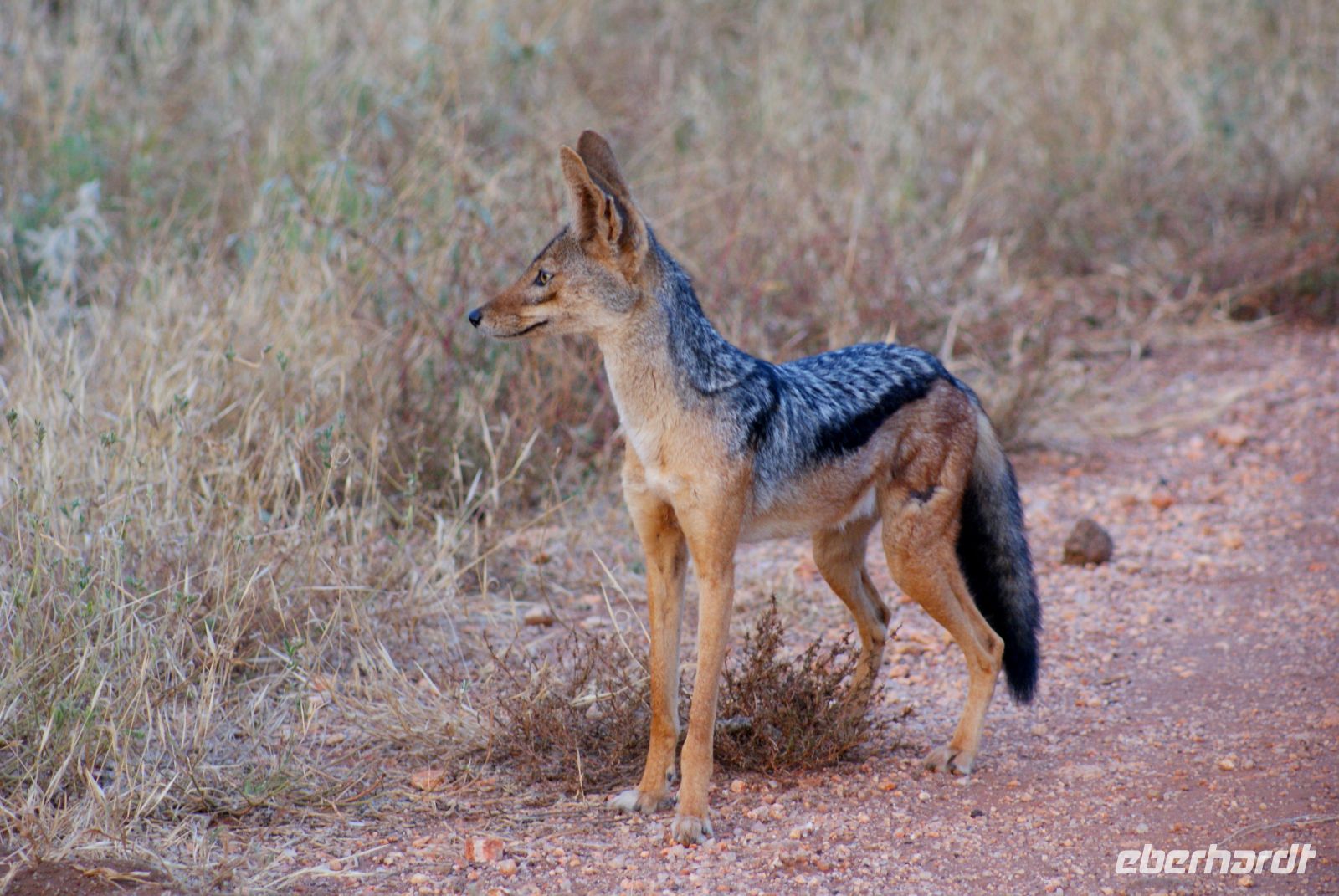Nach einer geruhsamen Nacht treffen wir uns mit dampfendem Kaffee in der Hand und starten in den Tag – vor uns erwacht die Savanne und wir hören bereits leises Plätschern an unseren beiden Wasserlöchern. Schon beim ersten Blick entdecken wir Bewegung: Eine Antilope huscht durchs hohe Gras, Vögel flattern aufgeregt von Ast zu Ast. Pünktlich um 06:15 Uhr brechen wir mit unserem Guide und Reisefamilienmitglied Nick zur Morgenpirsch auf. Die Sonne schiebt sich gerade über den Horizont, das Licht ist weich, golden – die Savanne erwacht. Und dann – ein Moment zum Innehalten: Ein Caracal! Eine wahre Safari-Sensation! Der schlanke Wildkatzenjäger mit den markanten schwarzen Pinselohren läuft direkt vor uns durch das dichte Gras. Selbst Nick, der schon unzählige Pirschfahrten hinter sich hat, ist völlig aus dem Häuschen. Caracals sind extrem scheu und nachtaktiv – sie zu Gesicht zu bekommen, ist ein echter Glückstreffer. Wir halten die Luft an, staunen, fotografieren, schweigen vor Ehrfurcht.
