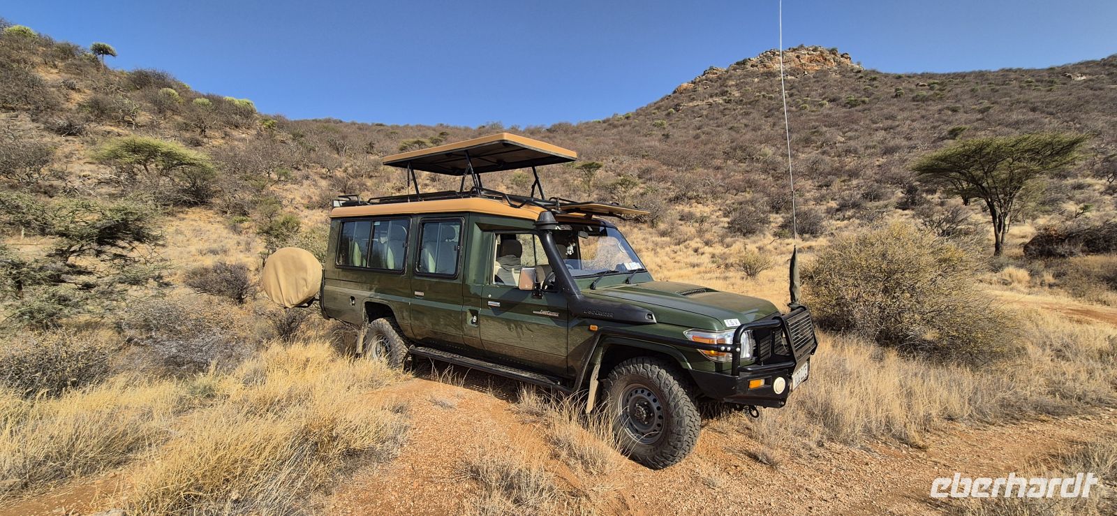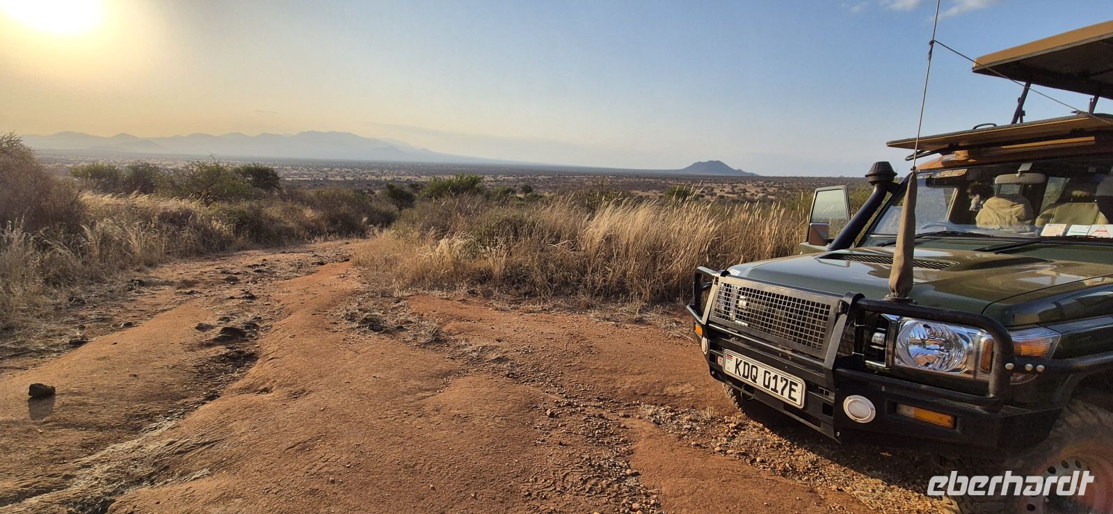 Nach dem ersten gemeinsamen und sehr reichhaltigen Frühstück treffen wir uns abfahrbereit in der Lobby. Unser Driverguide Nick erwartet uns schon, bereit für unser gemeinsames Abenteuer. Seit langem sind Nick und ich, Susanne Schirmann, Reisebegleiterin von Eberhardt TRAVEL GmbH, ein bewährtes, eingespieltes Team und wir freuen uns schon lange auf die erneute Zusammenarbeit. Der Toyota Landcruiser (für uns unser „Jeep“) steht bereit, das Gepäck ist verstaut, die Gäste richten sich ein und los geht’s – Nairobi lassen wir hinter uns, und steuern Samburu vor uns an.