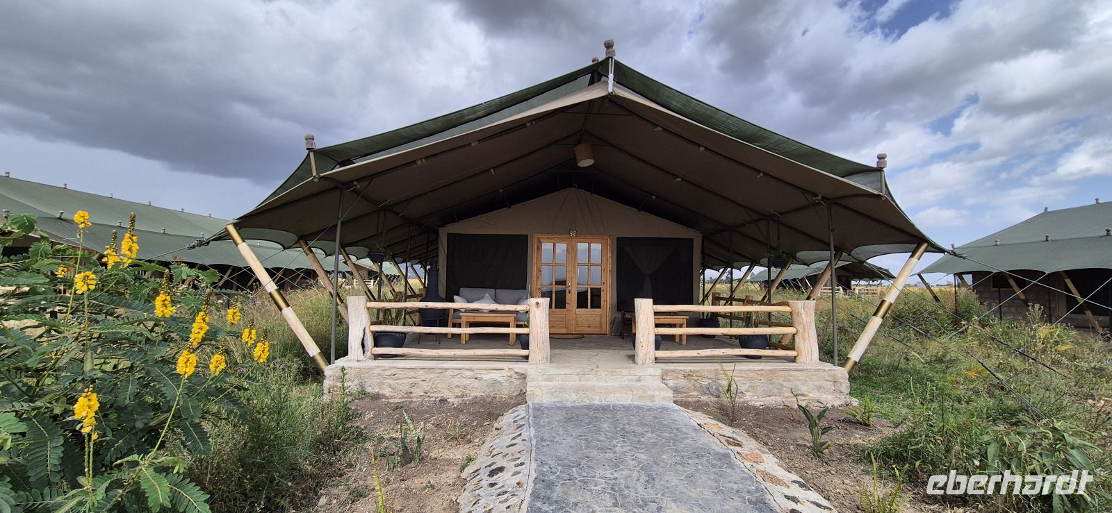 Gegen Mittag erreichen wir das Maisha Sweetwaters Camp. Bereits beim Empfang spüren wir: Hier erwartet uns wieder etwas ganz Besonderes. Die Begrüßung ist ausgesprochen freundlich und wir staunen nicht schlecht über die Weitläufigkeit dieser erst ein Jahr jungen Anlage. Nach einem köstlichen Mittagessen beziehen wir unsere Luxuszelte – stilvoll, komfortabel und mit liebevollen Details ausgestattet. Von unserer Terrasse aus blicken wir in die weite Landschaft und wissen: Hier werden wir uns wohlfühlen.