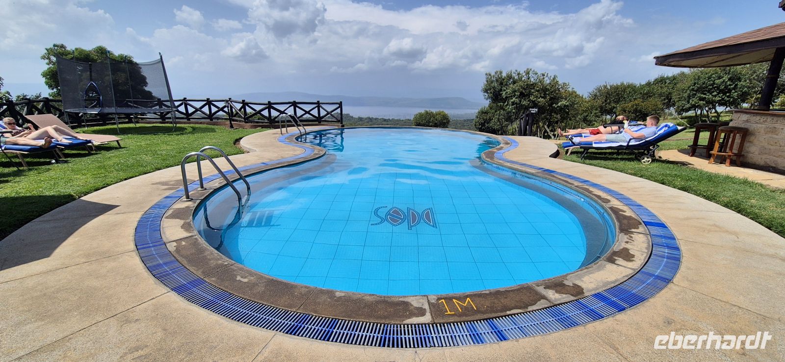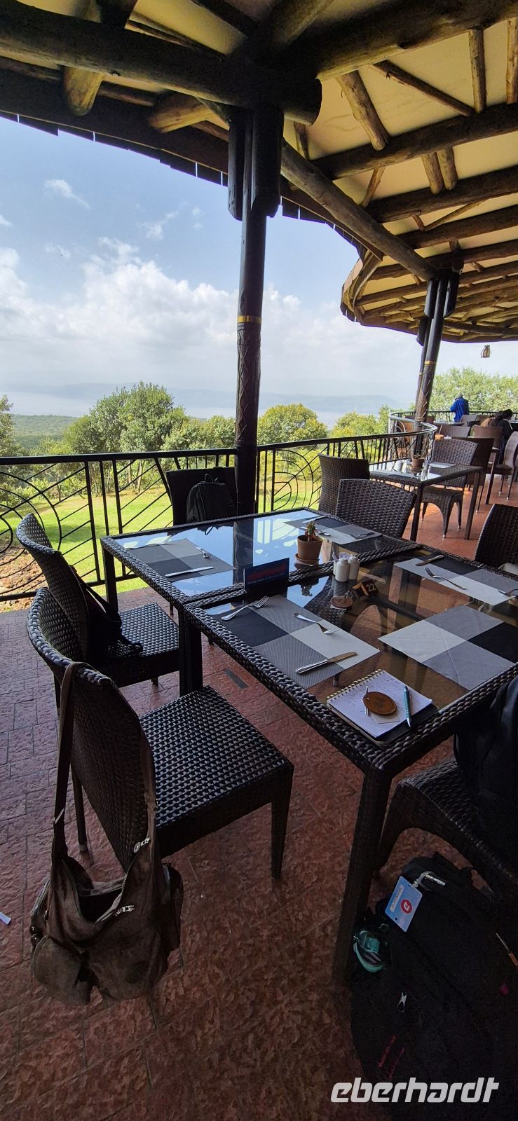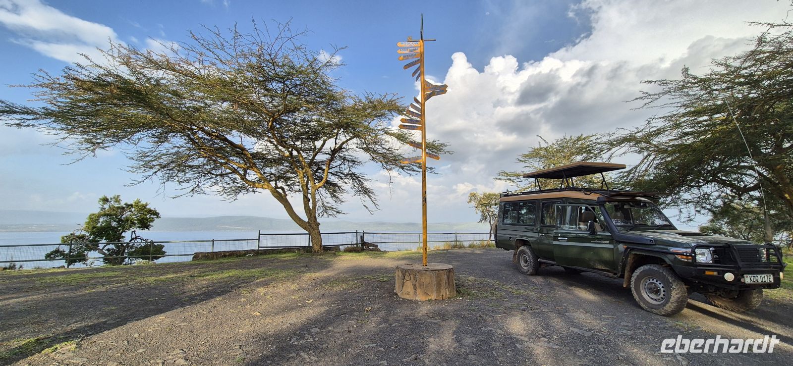Mittags kehren wir zur Lodge zurück, wo ein leckeres Mittagessen und ein reichhaltiges Buffet auf uns wartet. Danach gönnen wir uns eine wohlverdiente Pause – schließlich wartet am Nachmittag die zweite Safari-Etappe auf uns. Nun geht’s los zur Nachmittagspirschfahrt. Die Sonne steht tiefer, das Licht wird goldener – beste Bedingungen für Tierbeobachtungen. Wir stoppen am berühmten Aussichtspunkt „Out of Africa Lookout“. Der Blick von hier oben auf den See ist spektakulär – und wir haben ihn ganz für uns allein. Eine kleine, stille Magie liegt über dem Moment. Die anschließende Fahrt führt uns auf neue Wege durch den Park – eine landschaftlich wunderschöne Strecke. Wir sehen erneut Pelikane und andere Wasservögel, dann – fast wie ein Abschiedsgeschenk – nochmals drei Nashörner, die zügig im Busch direkt neben unserem Fahrweg verschwinden. Safari-Glück pur! Abends erreichen wir die Lodge. Ein kurzes Frischmachen, dann geht’s zum Abendessen, wo wir den Tag Revue passieren lassen. Ein Tag voller Tierbegegnungen, spannender Naturerlebnisse und echter Safari-Magie geht zu Ende. Und auch ohne Flamingos: Lake Nakuru begeistert uns auf seine ganz eigene Weise.