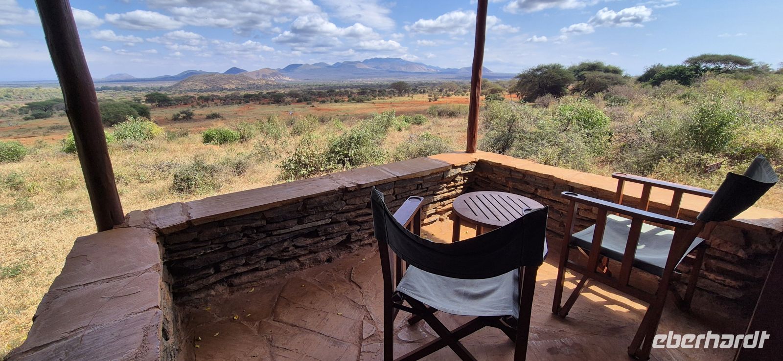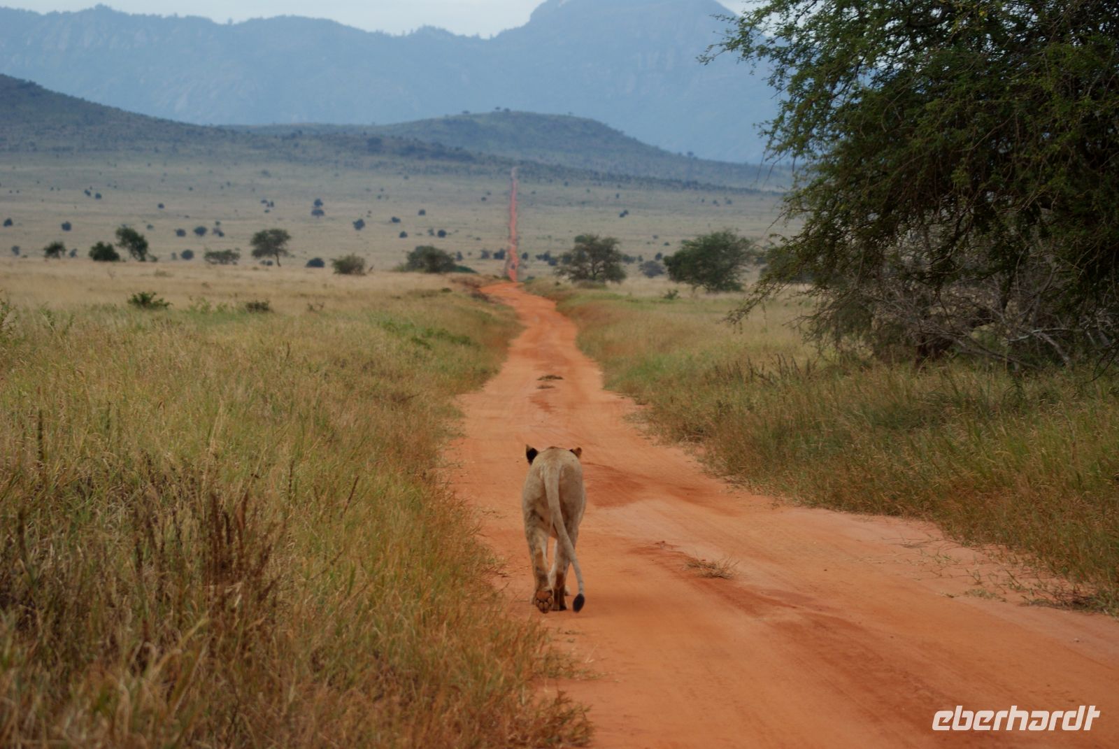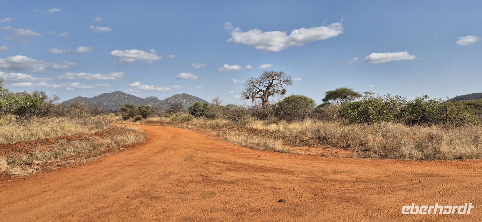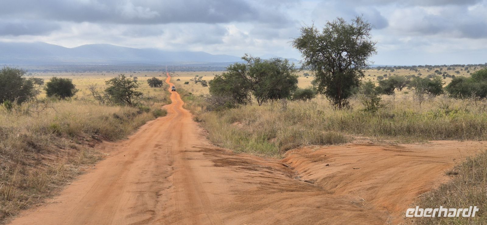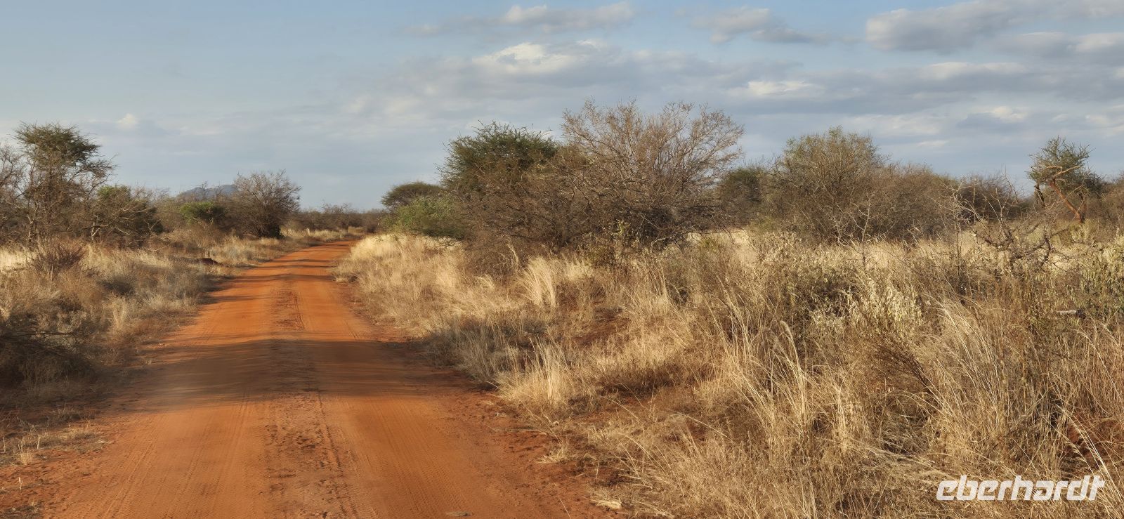Am frühen Abend – nach stolzen 420 Kilometern – erreichen wir das Eingangstor zum Tsavo-West-Nationalpark: „Mtito Andei“. Jetzt heißt es noch einmal: Zähne zusammenbeißen, denn die letzten 30 Kilometer bis zur Kilaguni Serena Safari Lodge führen über eine etwas holprige Piste. Aber unser Guide und Fahrer Nick hat wie immer alles bestens und auch die Schotterpiste im Griff. Was uns dann erwartet, ist jede Strapaze wert.