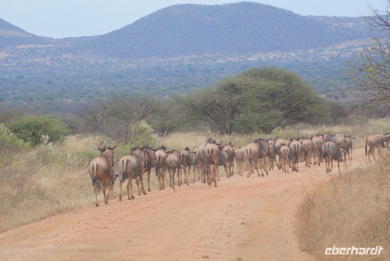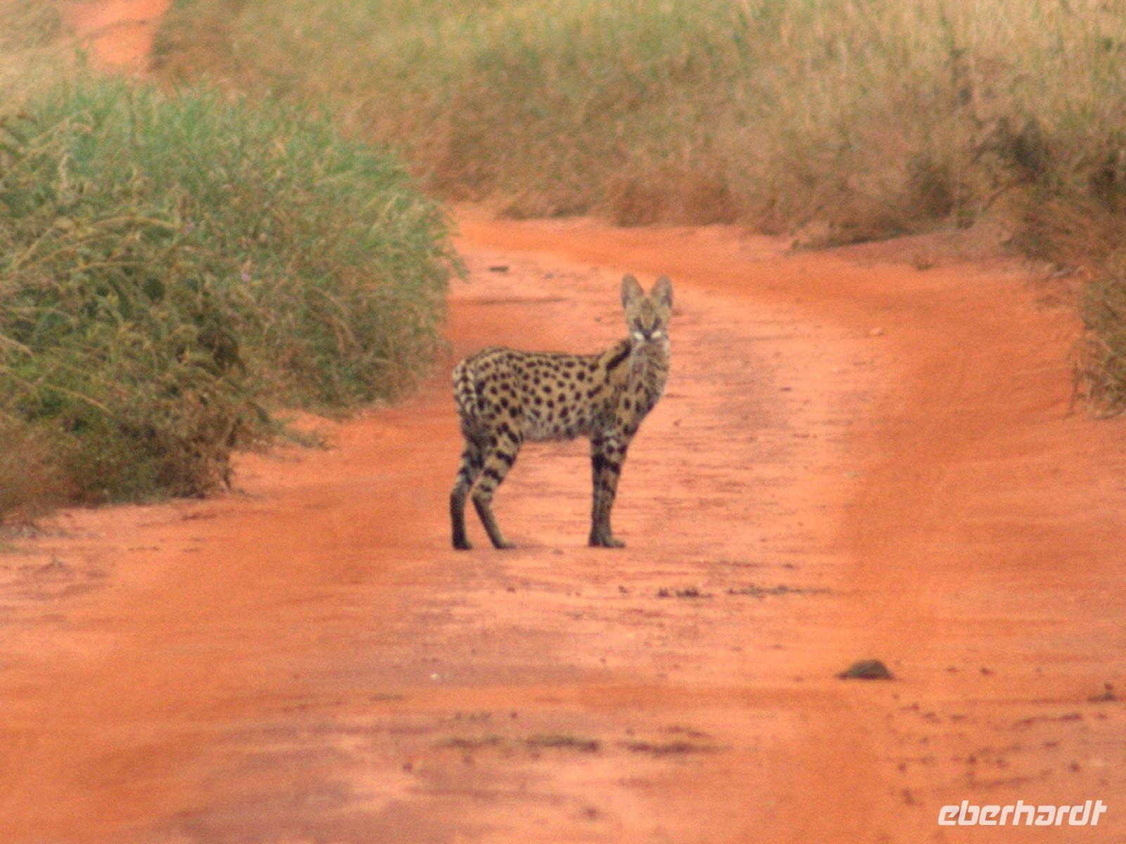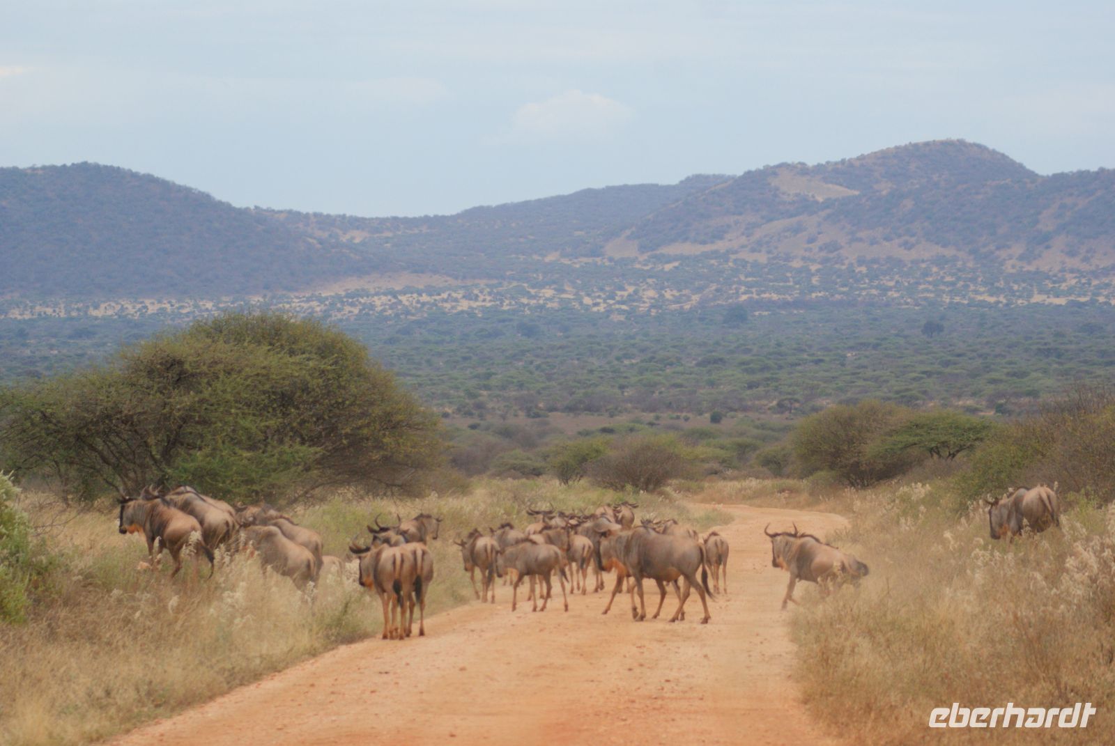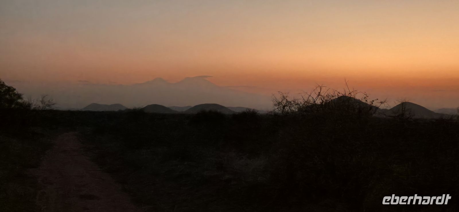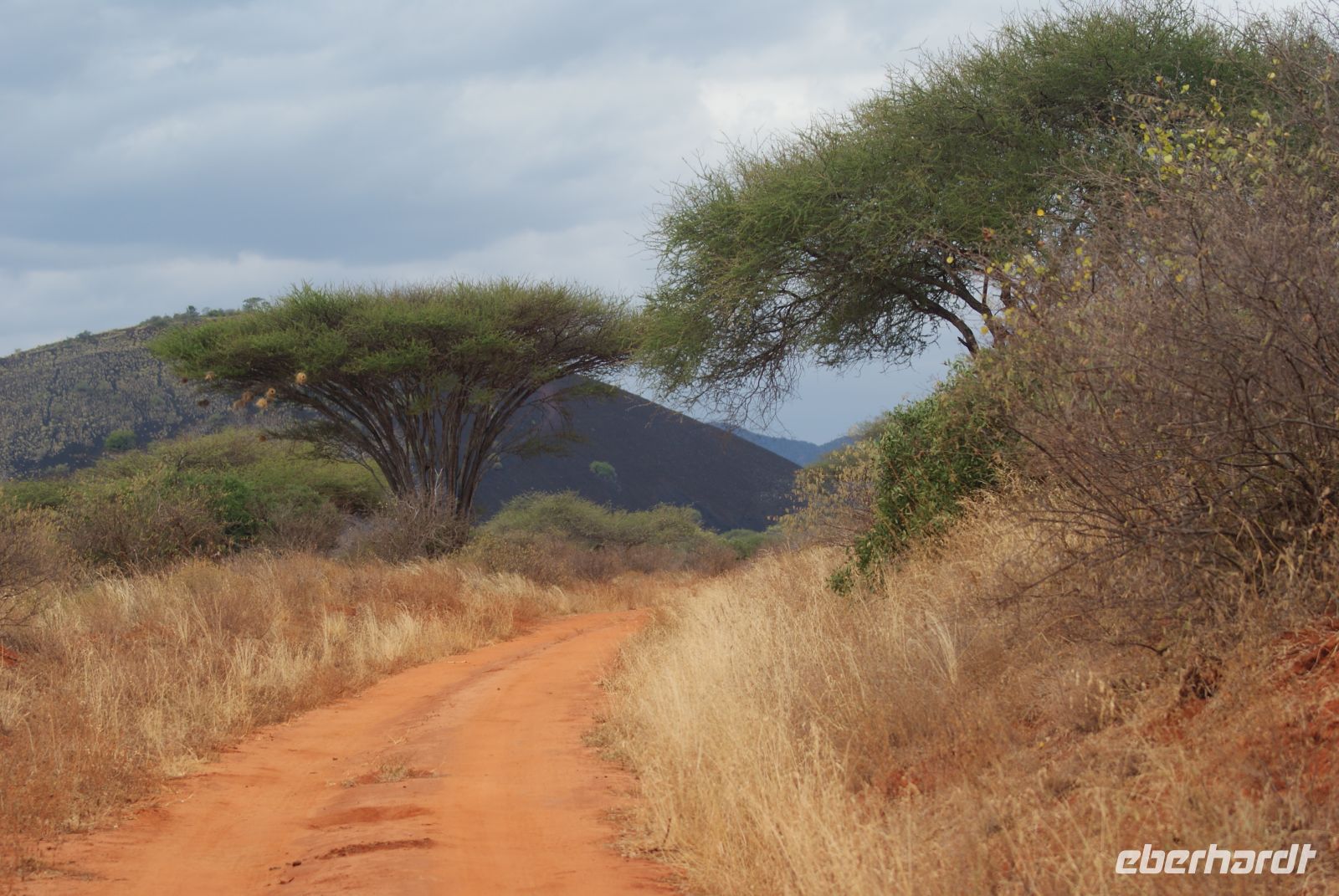 Am frühen Abend – nach stolzen 420 Kilometern – erreichen wir das Eingangstor zum Tsavo-West-Nationalpark: „Mtito Andei“. Jetzt heißt es noch einmal: Zähne zusammenbeißen, denn die letzten 30 Kilometer bis zur Kilaguni Serena Safari Lodge führen über eine etwas holprige Piste. Aber unser Guide und Fahrer Nick hat wie immer alles bestens und auch die Schotterpiste im Griff. Was uns dann erwartet, ist jede Strapaze wert.