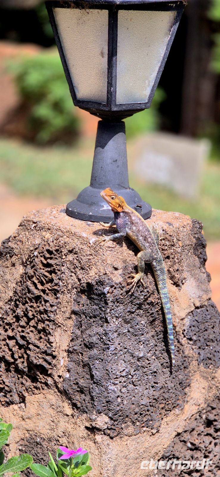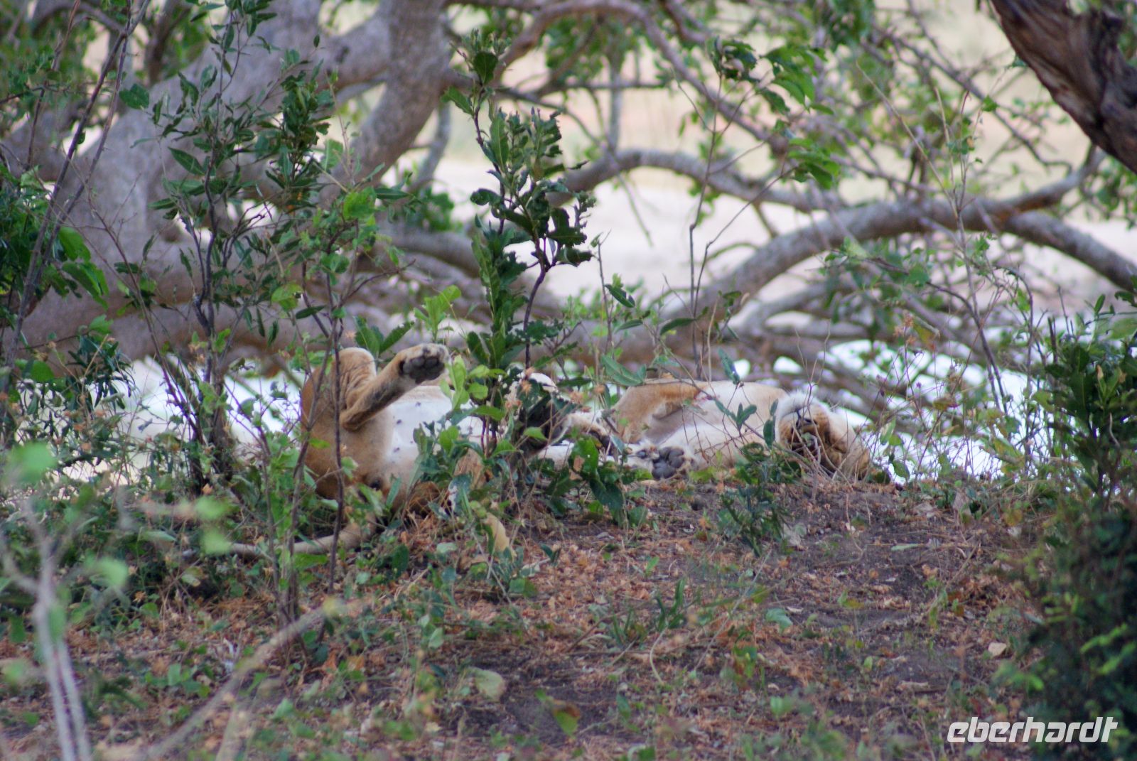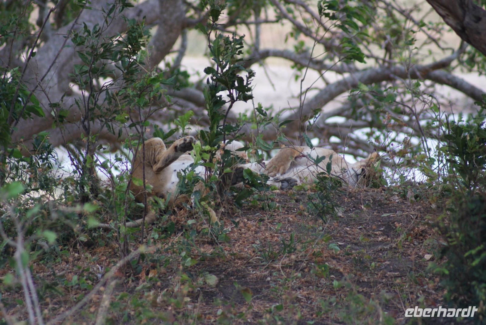 Aber das Beste kommt am Nachmittag: gemeinsam starten wir zu einer spannenden Pirschfahrt im Lumo Community Wildlife Sanctuary, das von lokalen Gemeinden betrieben wird und ein wichtiges Schutzgebiet zwischen Tsavo-West und Tsavo Ost bildet. Und was für eine Safari das wird! Gleich mehrere Löwen lassen sich blicken – einige dösen im hohen Gras, andere spazieren seelenruhig direkt vor oder an unserem Fahrzeug vorbei. Ein majestätischer Anblick! Es ist beeindruckend zu sehen, wie gelassen und selbstbewusst diese Großkatzen durch ihr Revier streifen. Die Nachmittagssonne taucht die Szene in warmes Goldlicht – die Krönung bildet eine Löwin, die es sich auf einem Wegweiser gemütlich gemacht hat! Zum Einbruch der Dunkelheit kehren wir zurück ins Camp, wo das Abendessen heute etwas früher serviert wird. Da das Camp nicht eingezäunt ist, werden wir im Dunkeln von einem freundlichen Wächter begleitet. Ein beruhigendes Gefühl – denn hier draußen in der Wildnis gehört die Nacht den Tieren.
